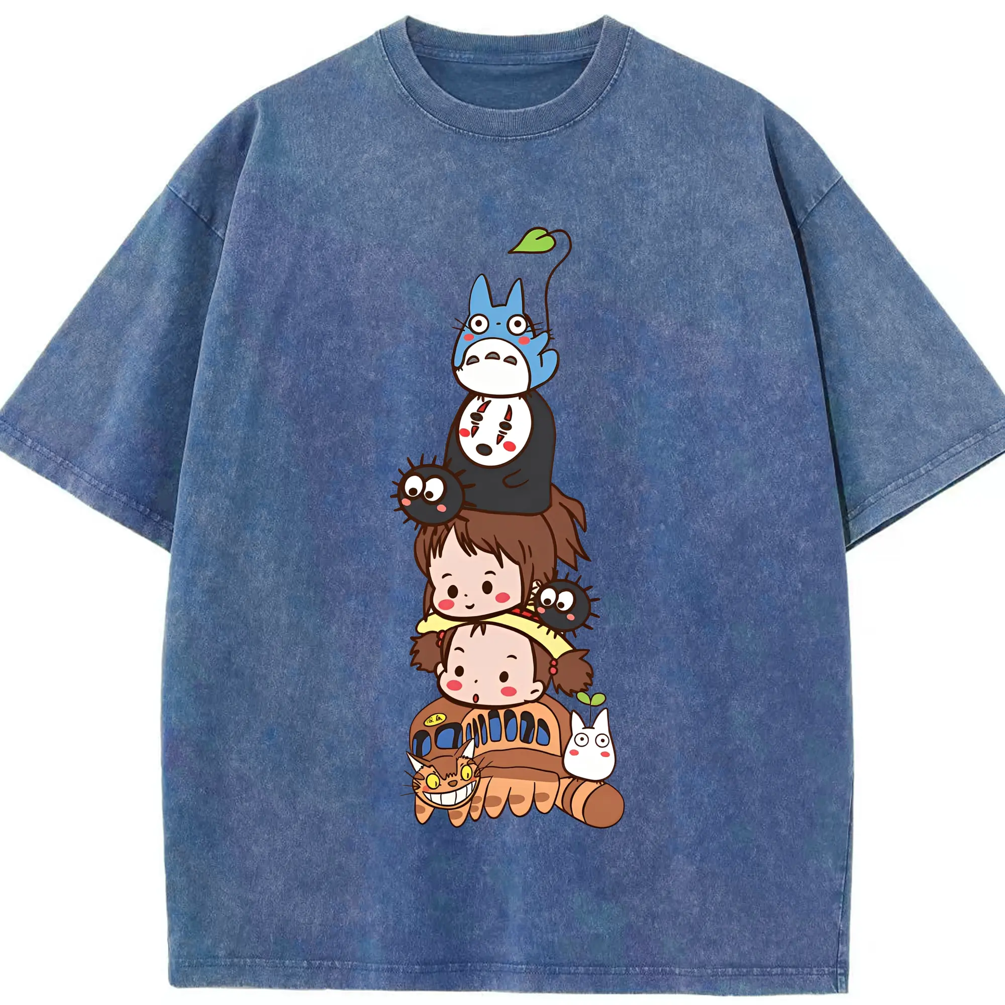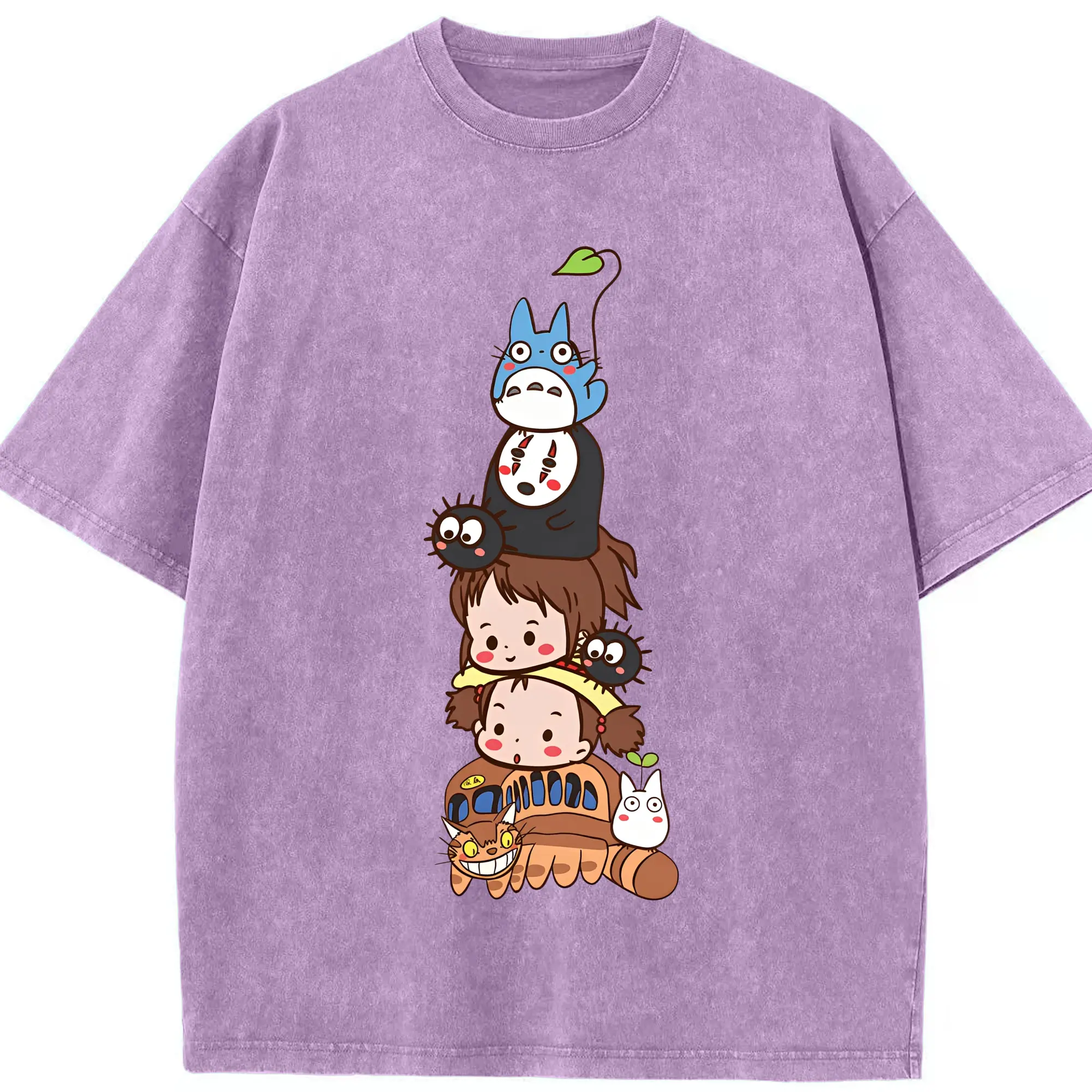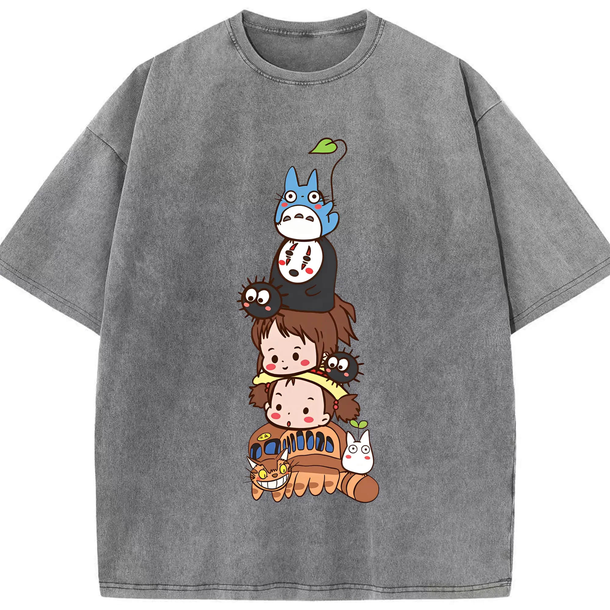 となりのトトロネコバス草壁メイサツキ積み重ね - 綿100% 半袖Tシャツ ・ フロントプリント ・ 快適 通気性 ・ 日常使い 散歩 スポーツ用