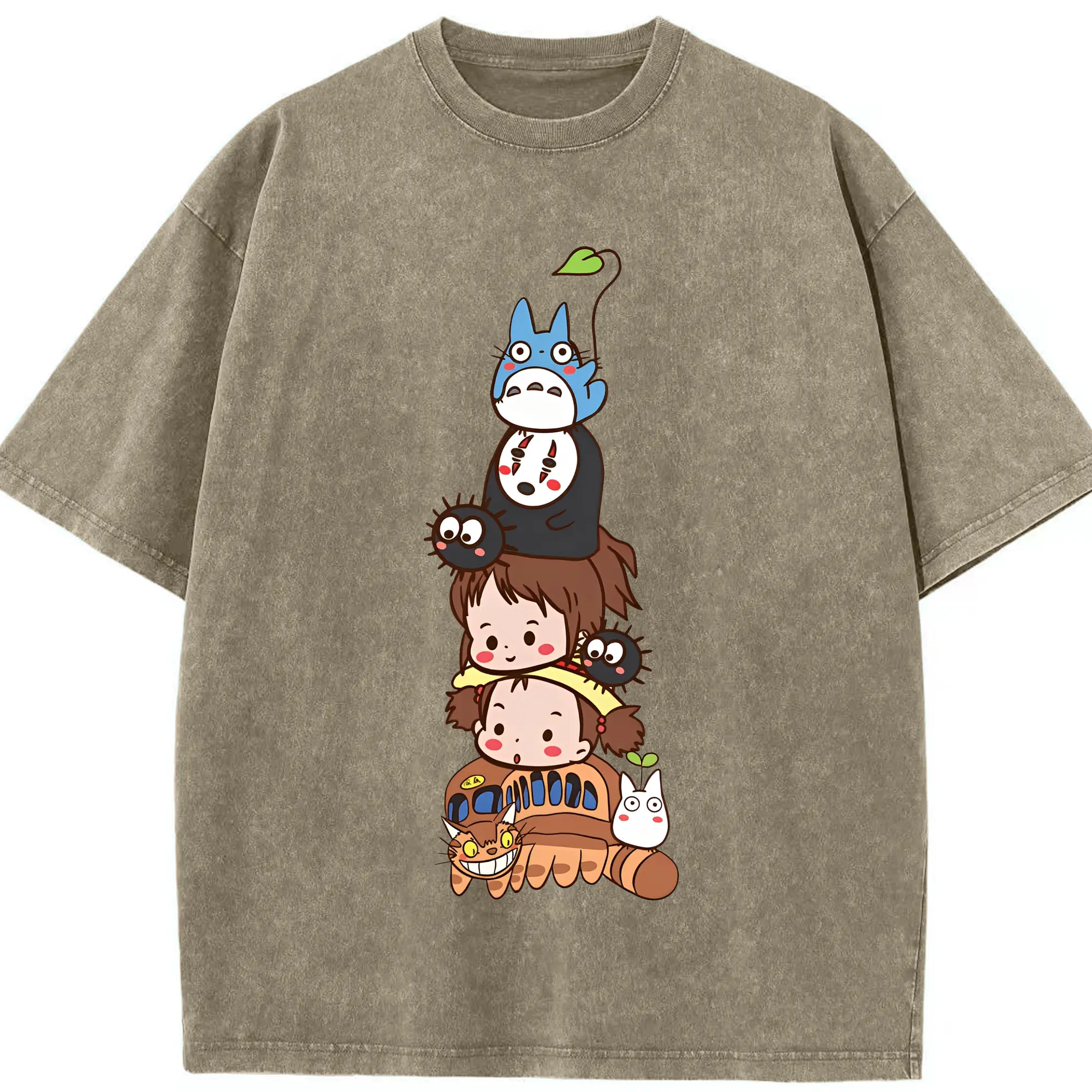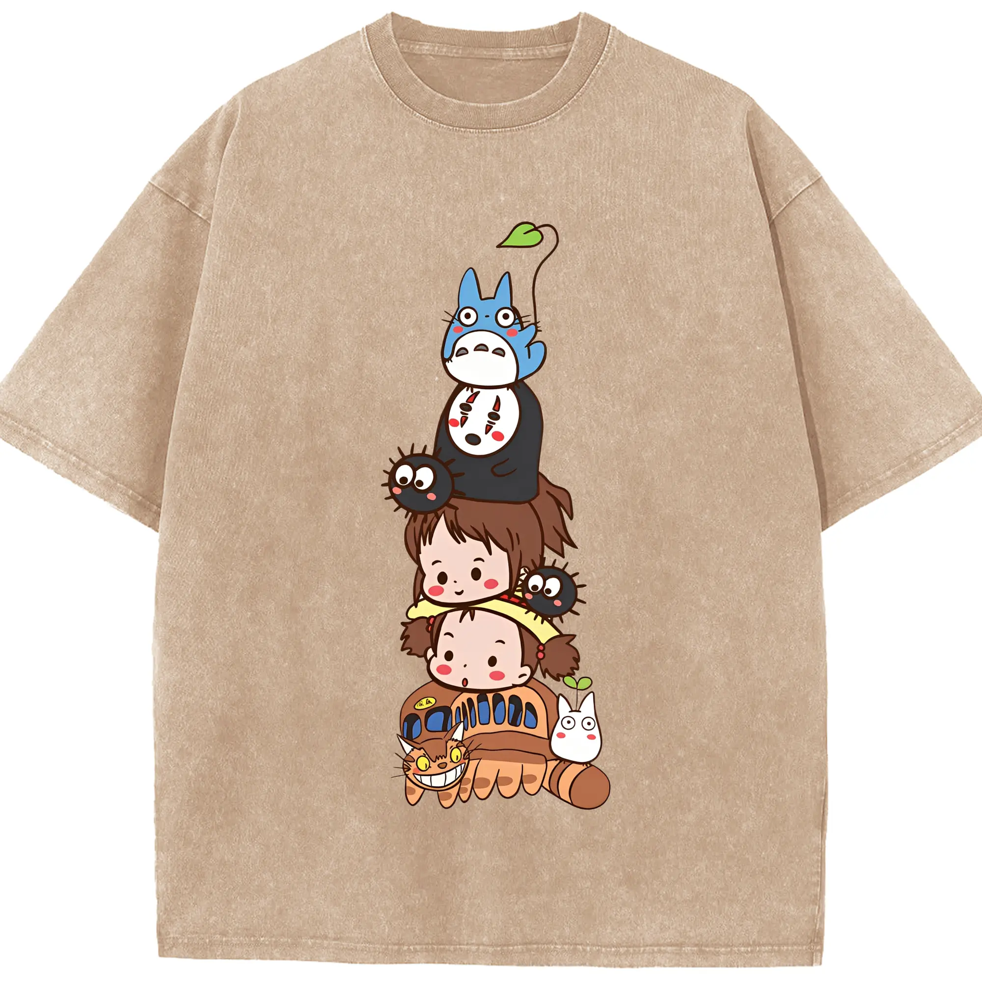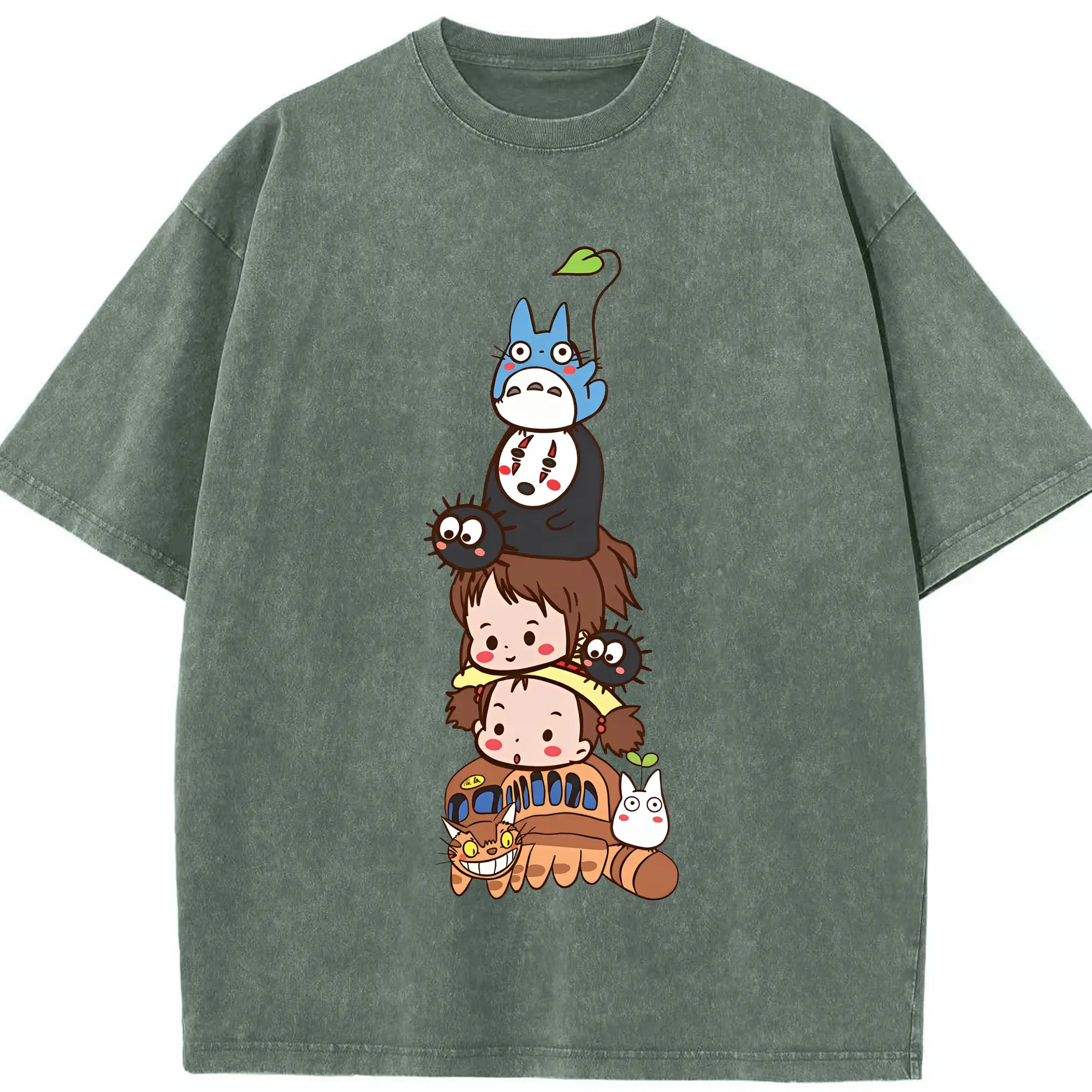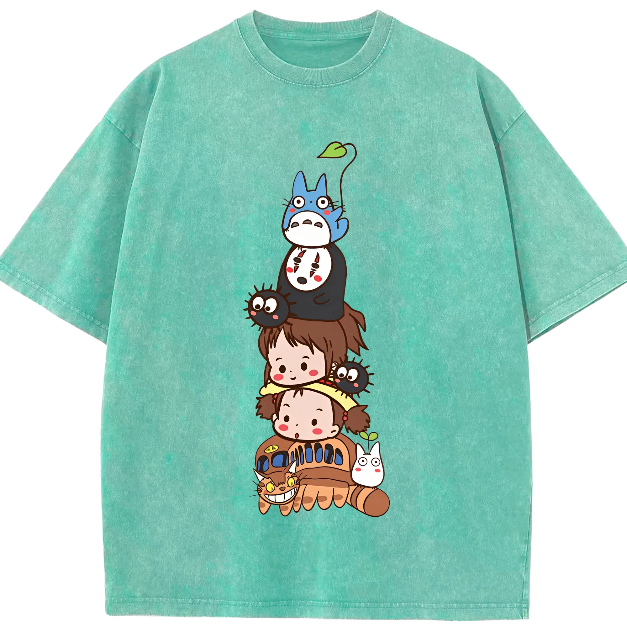 となりのトトロネコバス草壁メイサツキ積み重ね - 綿100% 半袖Tシャツ ・ フロントプリント ・ 快適 通気性 ・ 日常使い 散歩 スポーツ用