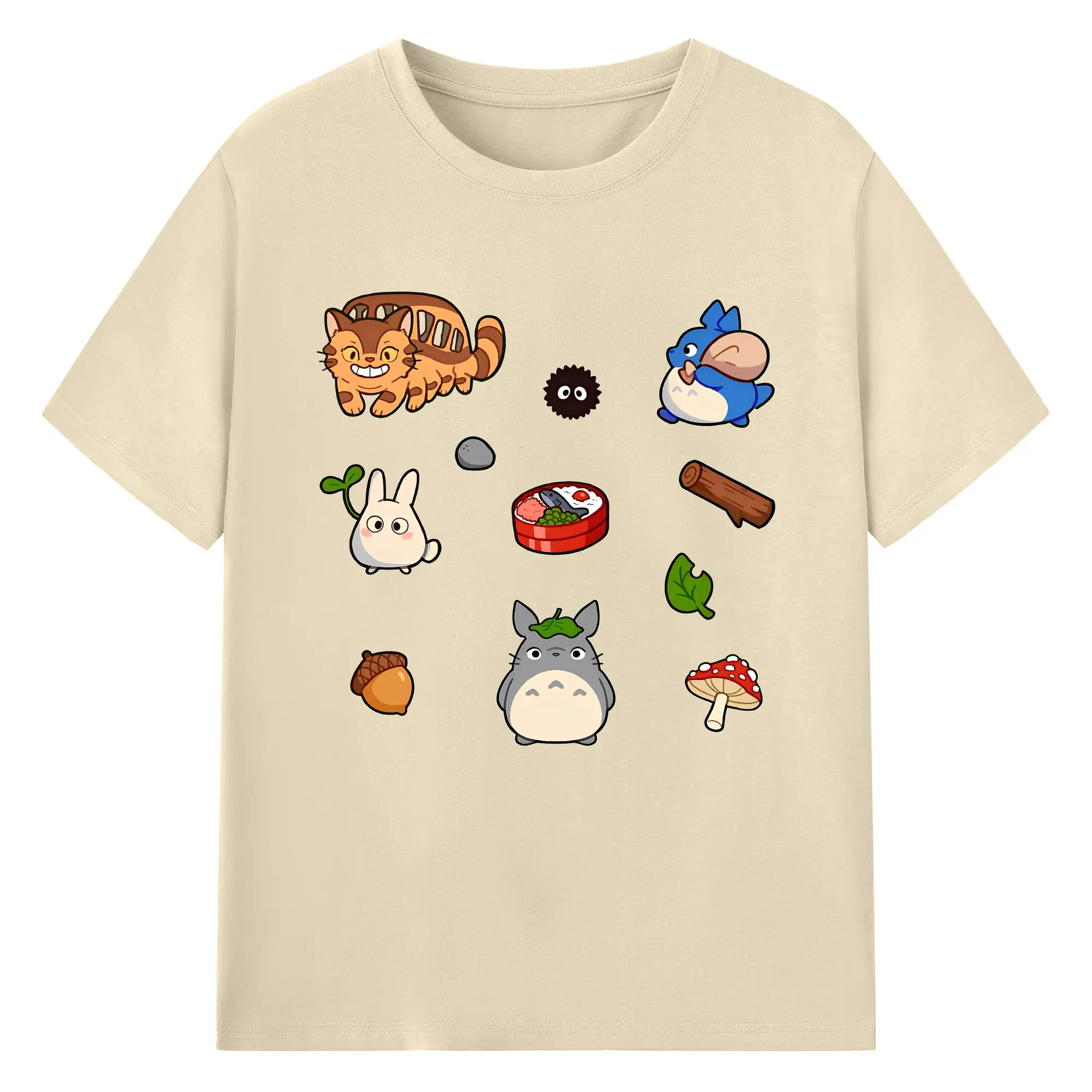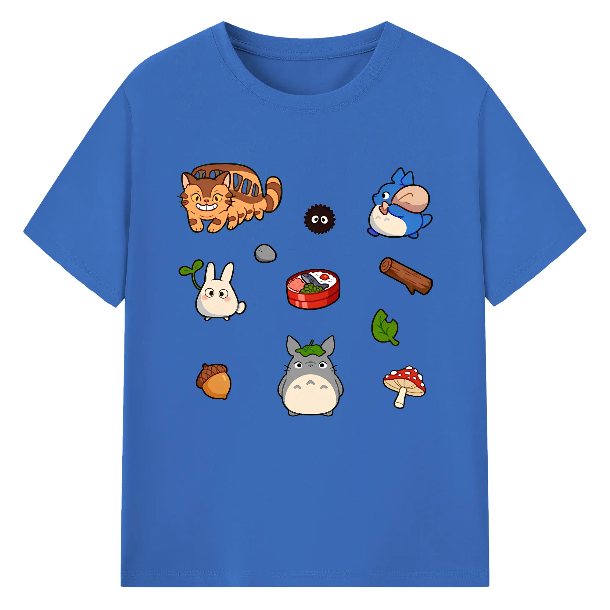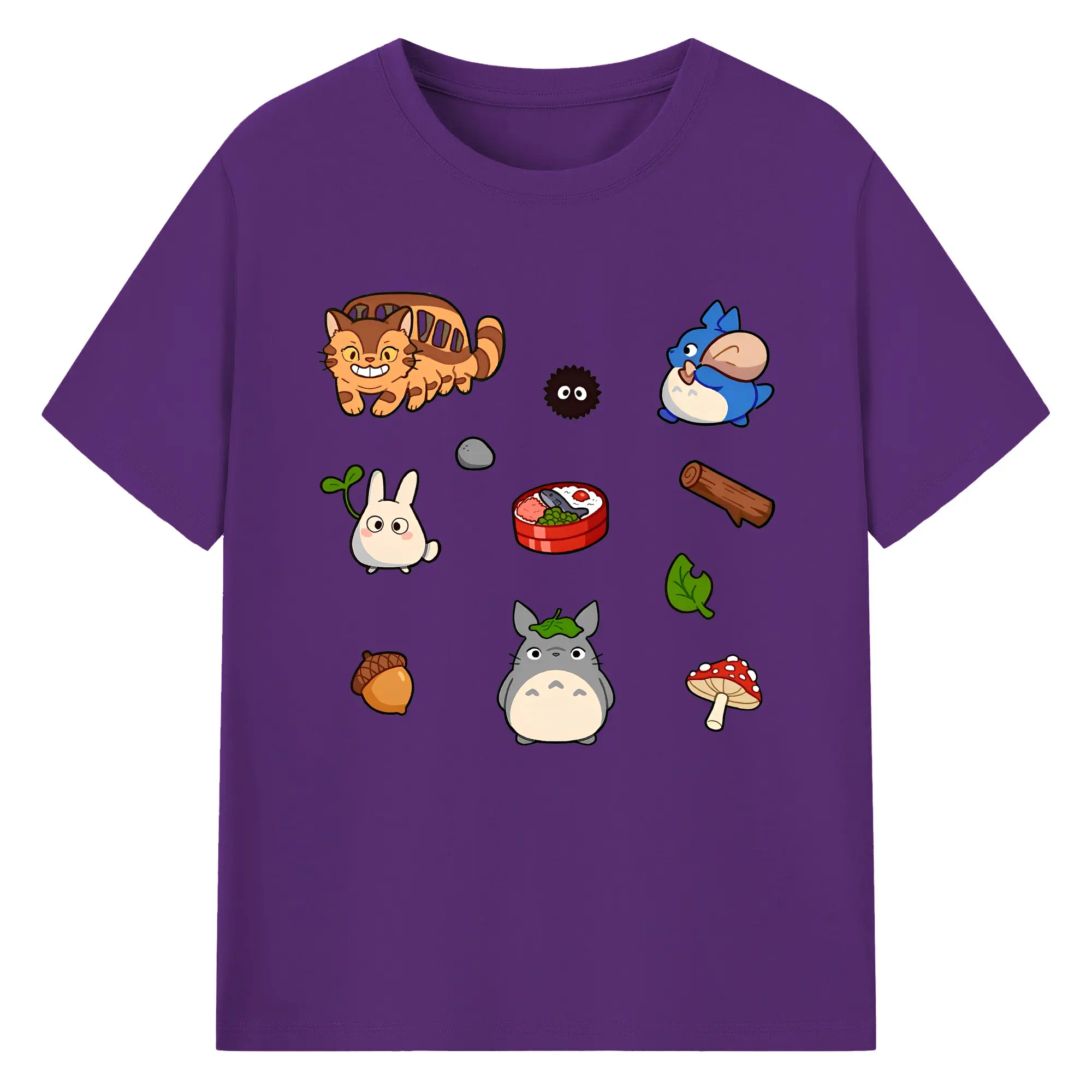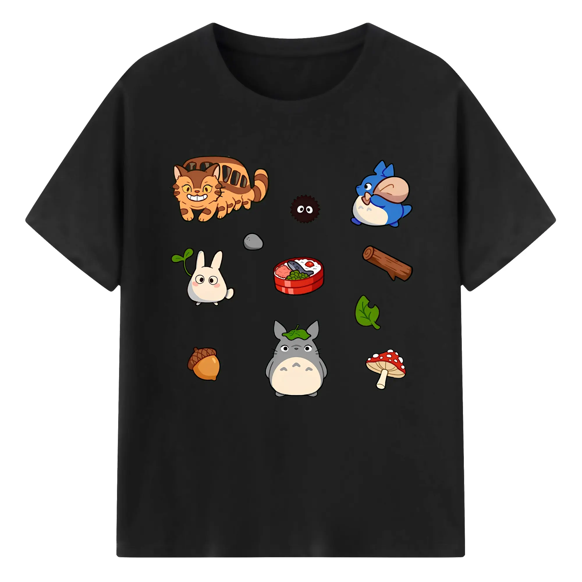 となりのトトロファミリー 数量限定 - 綿100% ヴィンテージ風 半袖Tシャツ ・ フロントプリント ・ 柔らか肌触り ・ 通気性 快適 ・ スポーツ カジュアル 外出用