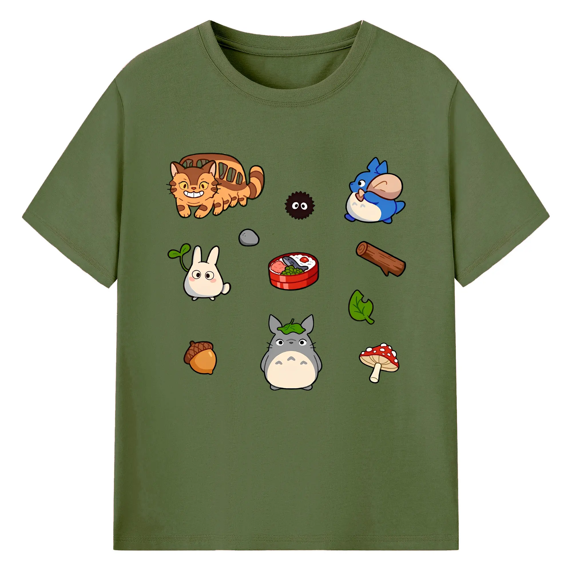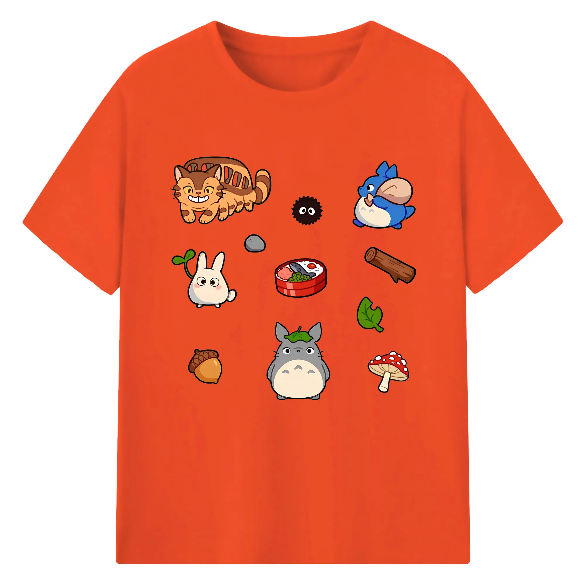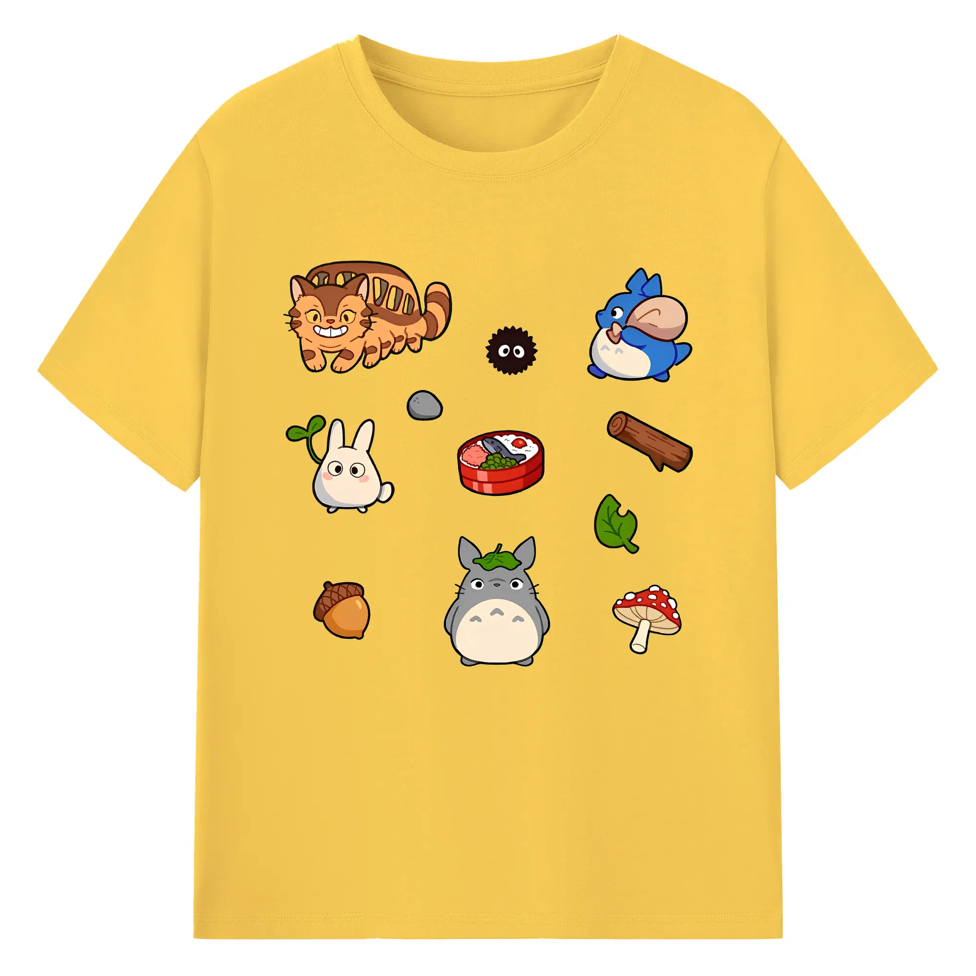 となりのトトロファミリー 数量限定 - 綿100% ヴィンテージ風 半袖Tシャツ ・ フロントプリント ・ 柔らか肌触り ・ 通気性 快適 ・ スポーツ カジュアル 外出用