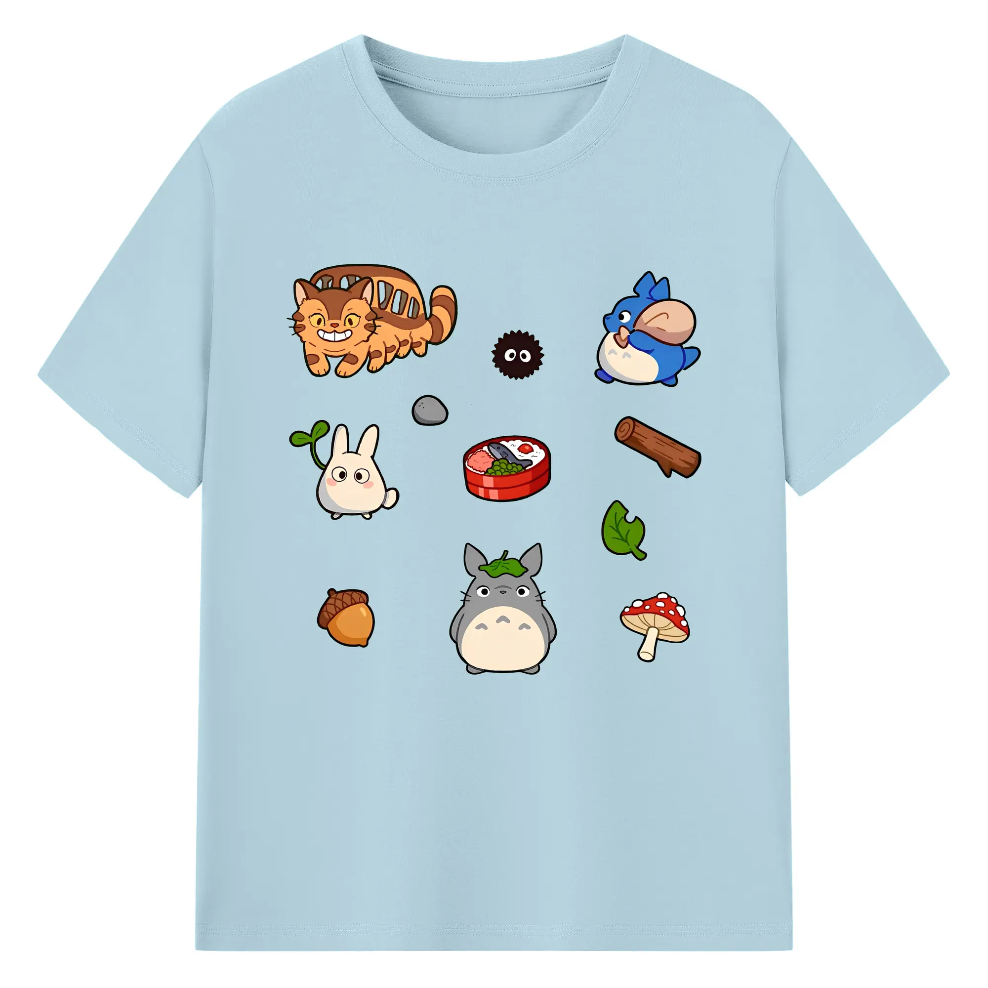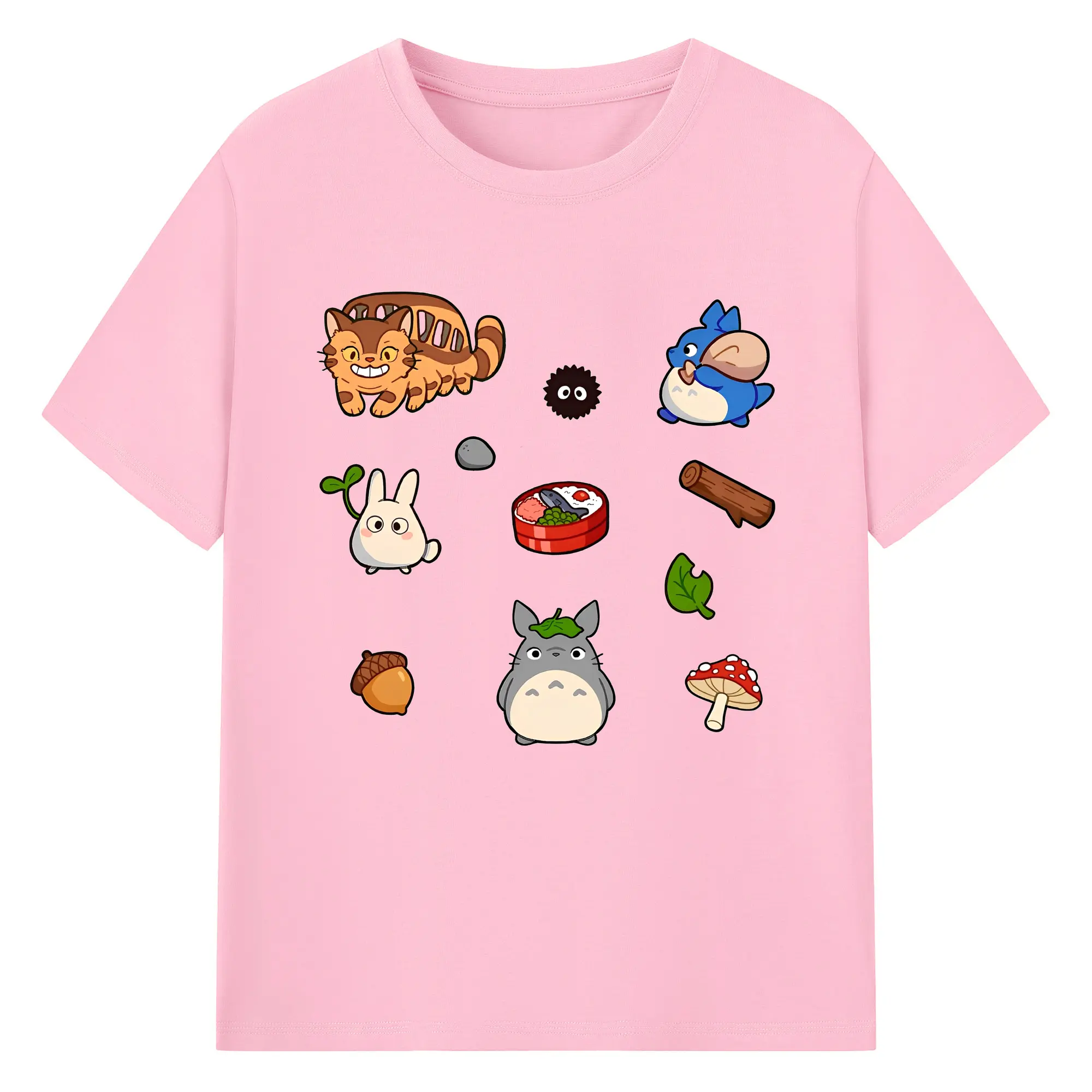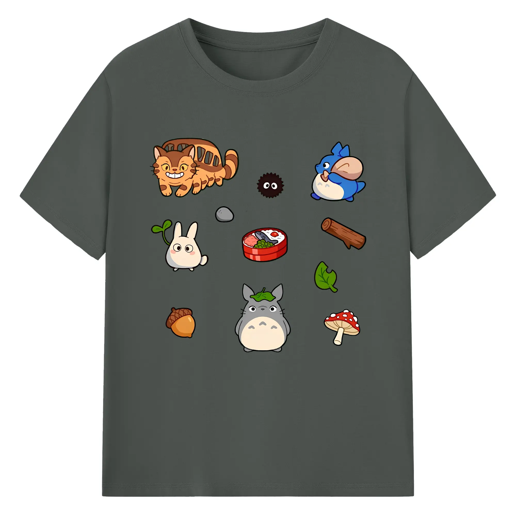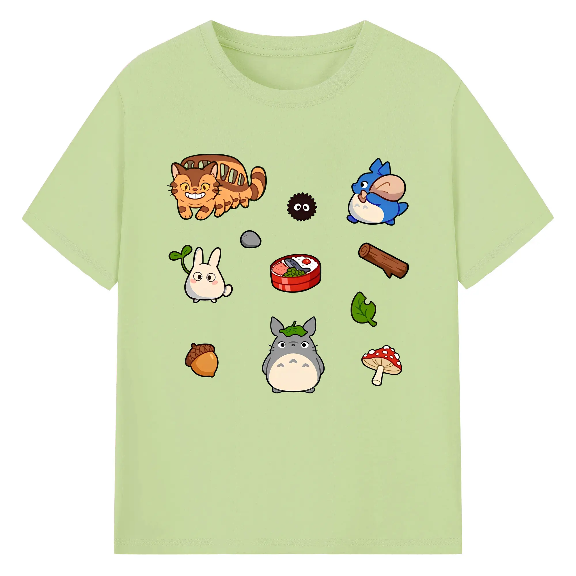 となりのトトロファミリー 数量限定 - 綿100% ヴィンテージ風 半袖Tシャツ ・ フロントプリント ・ 柔らか肌触り ・ 通気性 快適 ・ スポーツ カジュアル 外出用