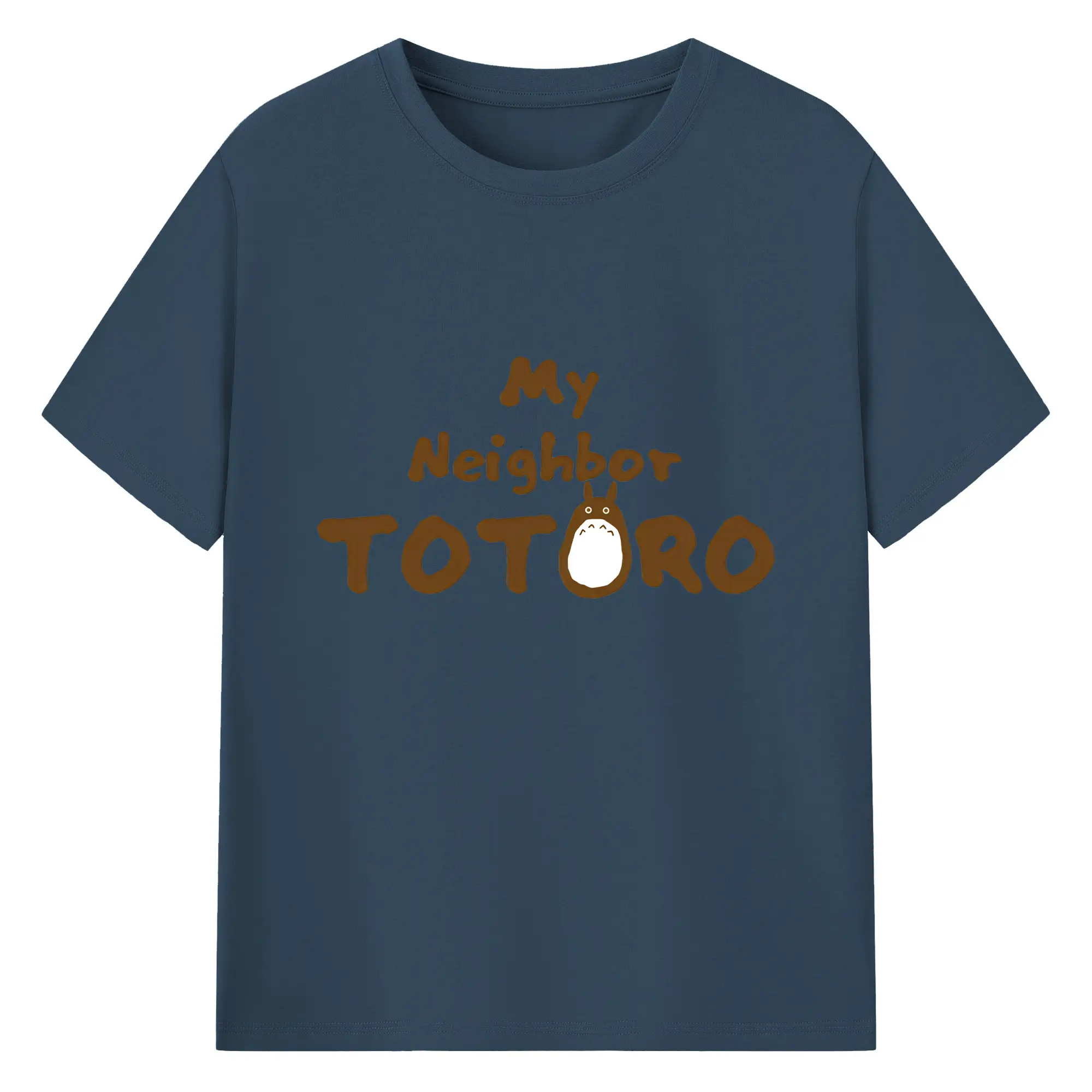 となりのトトロミニマルロゴ - 綿100% ヴィンテージ風 半袖Tシャツ ・ フロントプリント ・ 柔らか肌触り ・ 通気性 快適 ・ スポーツ カジュアル 外出用