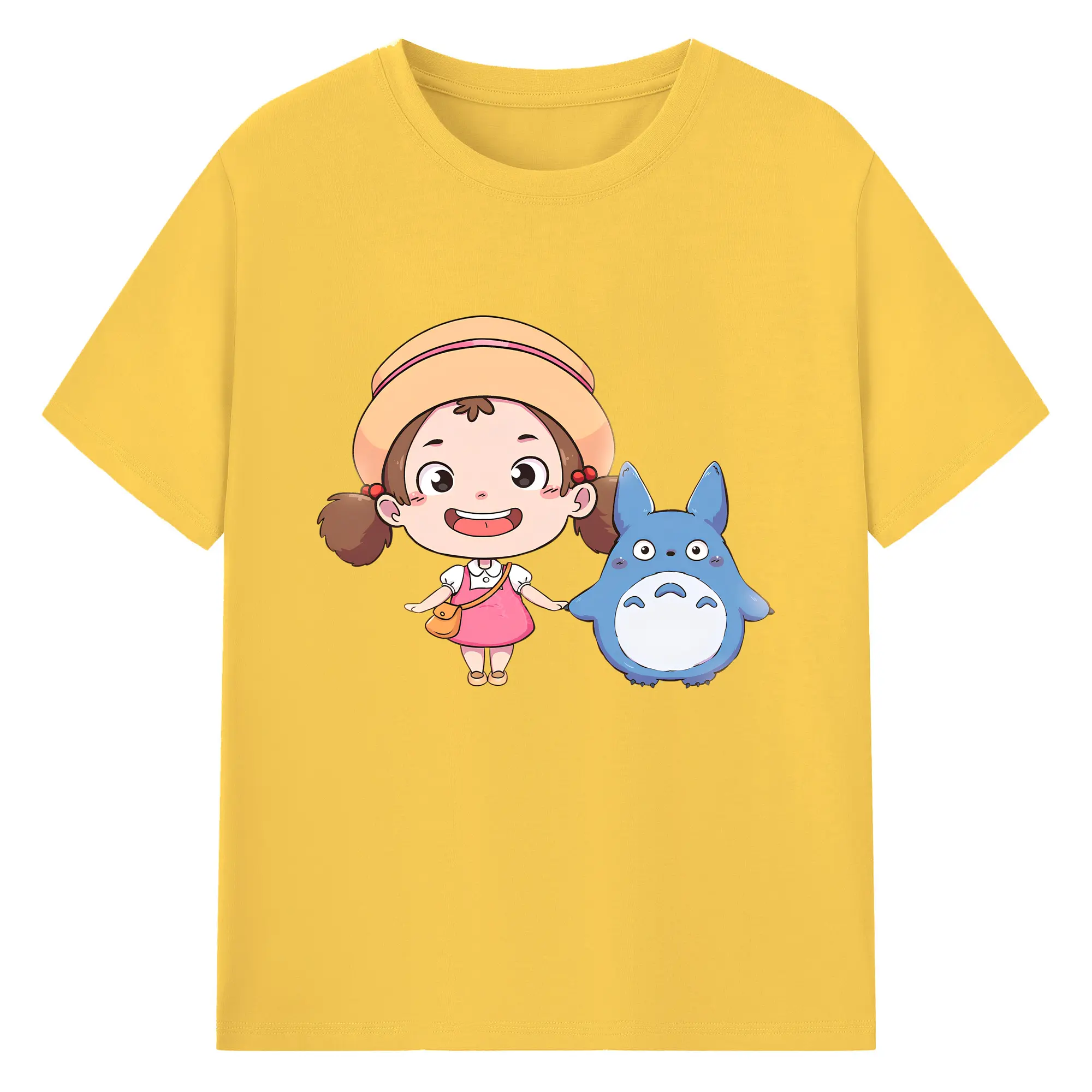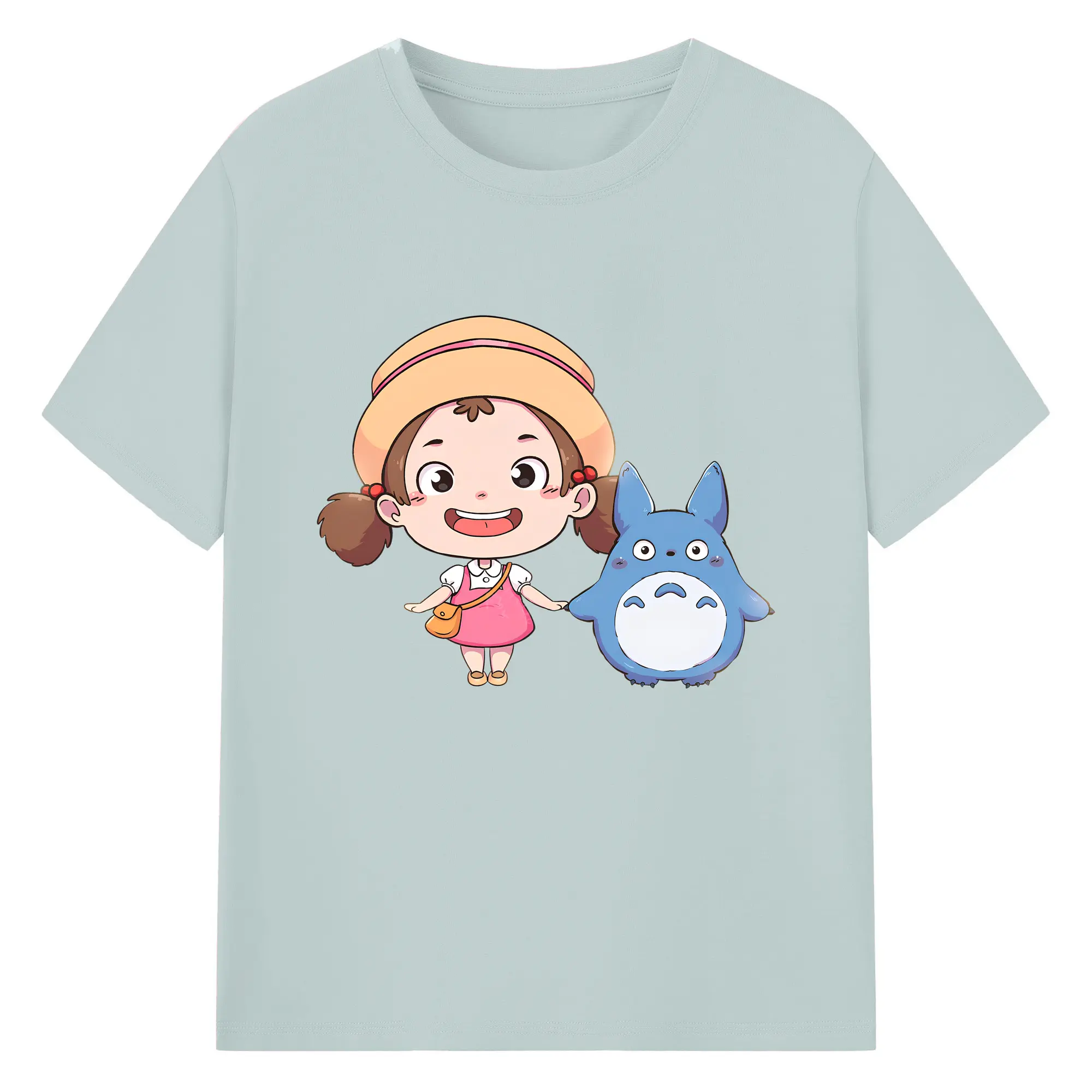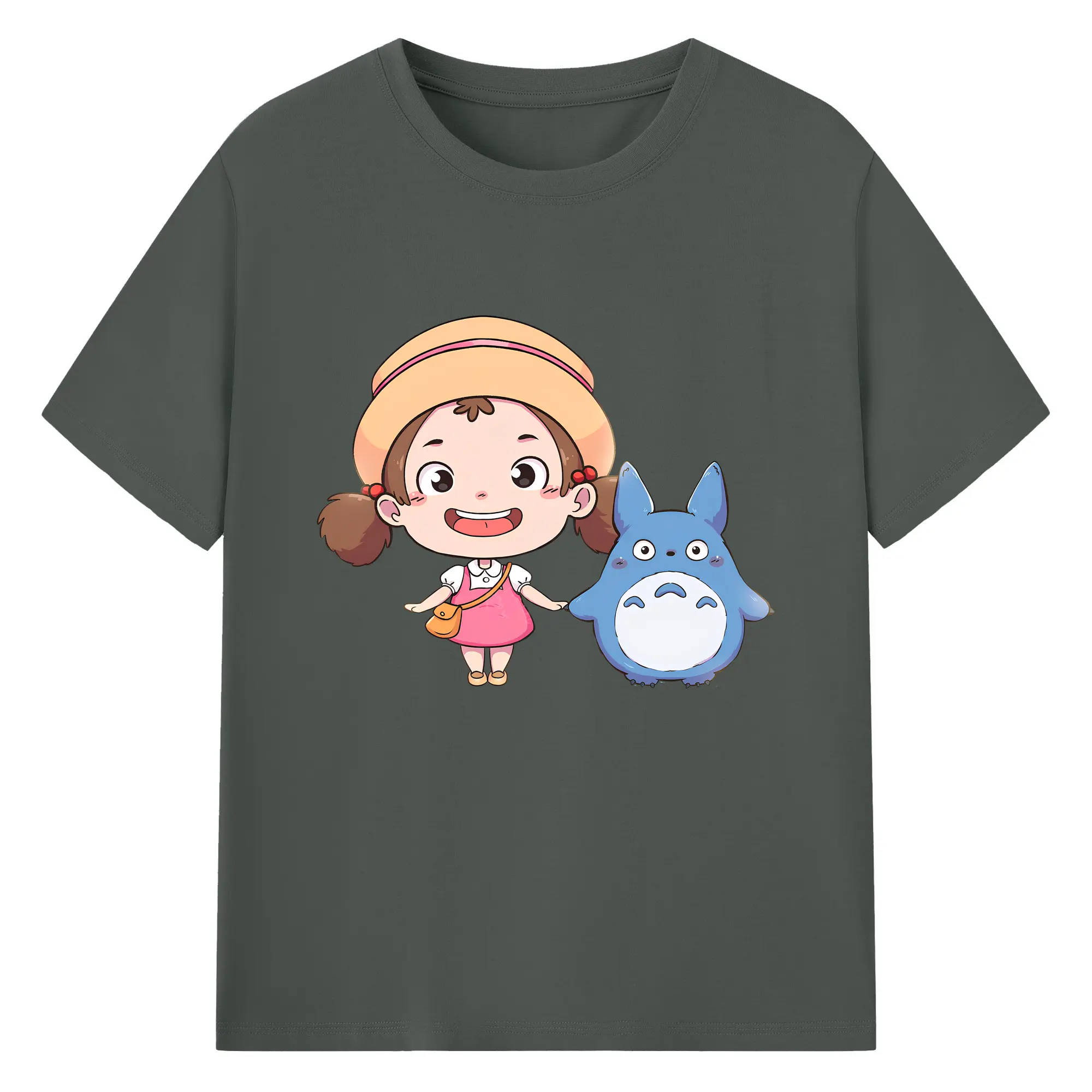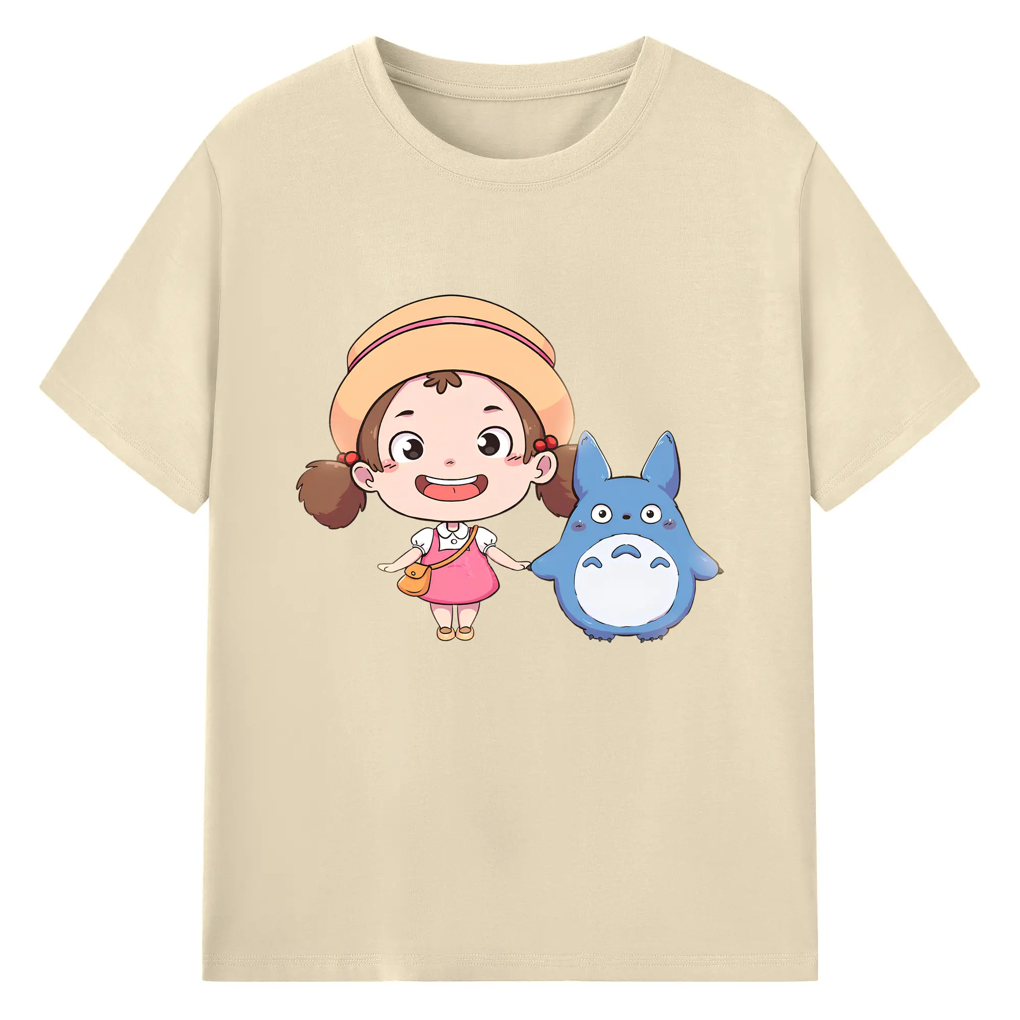 となりのトトロ可愛い草壁メイ - 綿100% ヴィンテージ風 半袖Tシャツ ・ フロントプリント ・ 柔らか肌触り ・ 通気性 快適 ・ スポーツ カジュアル 外出用