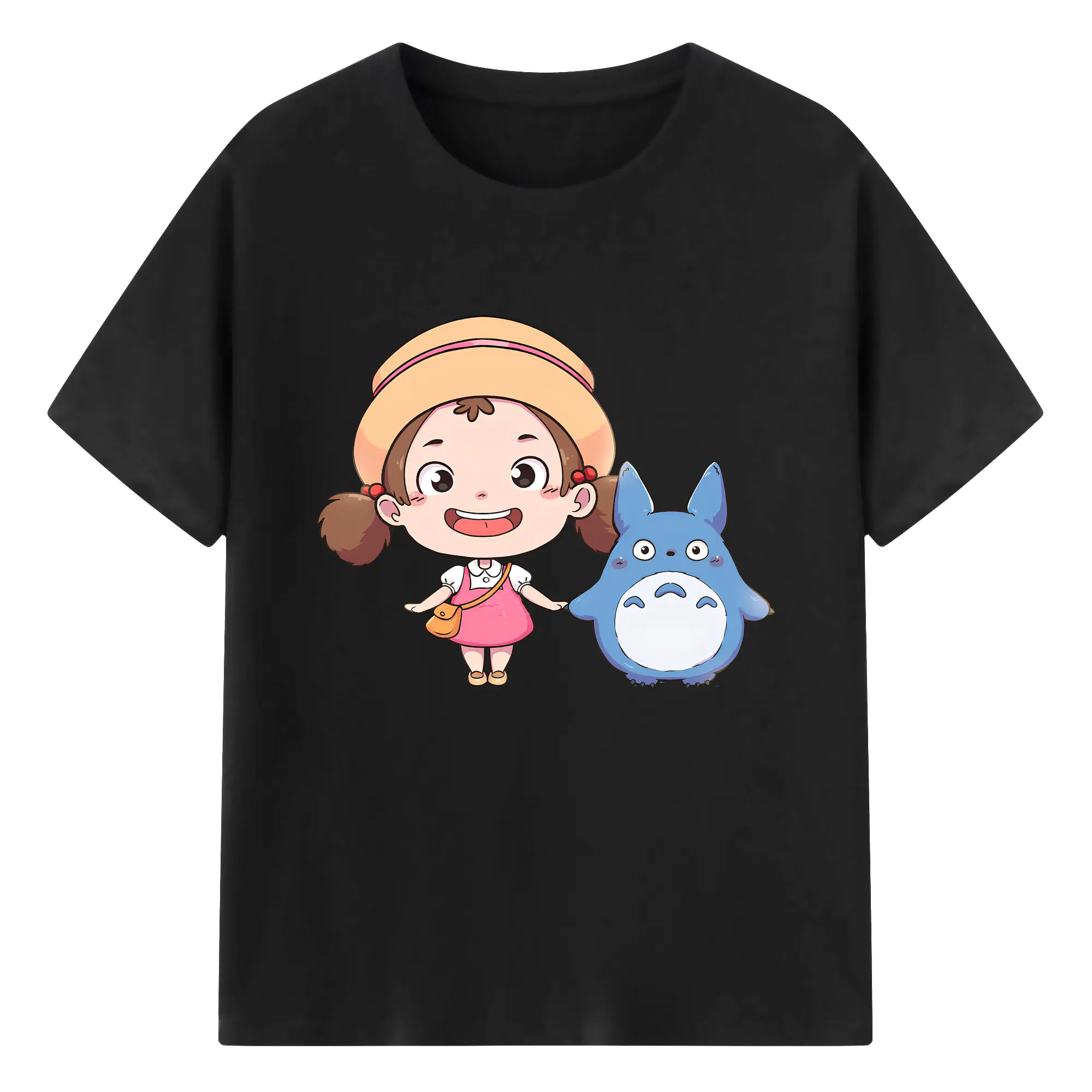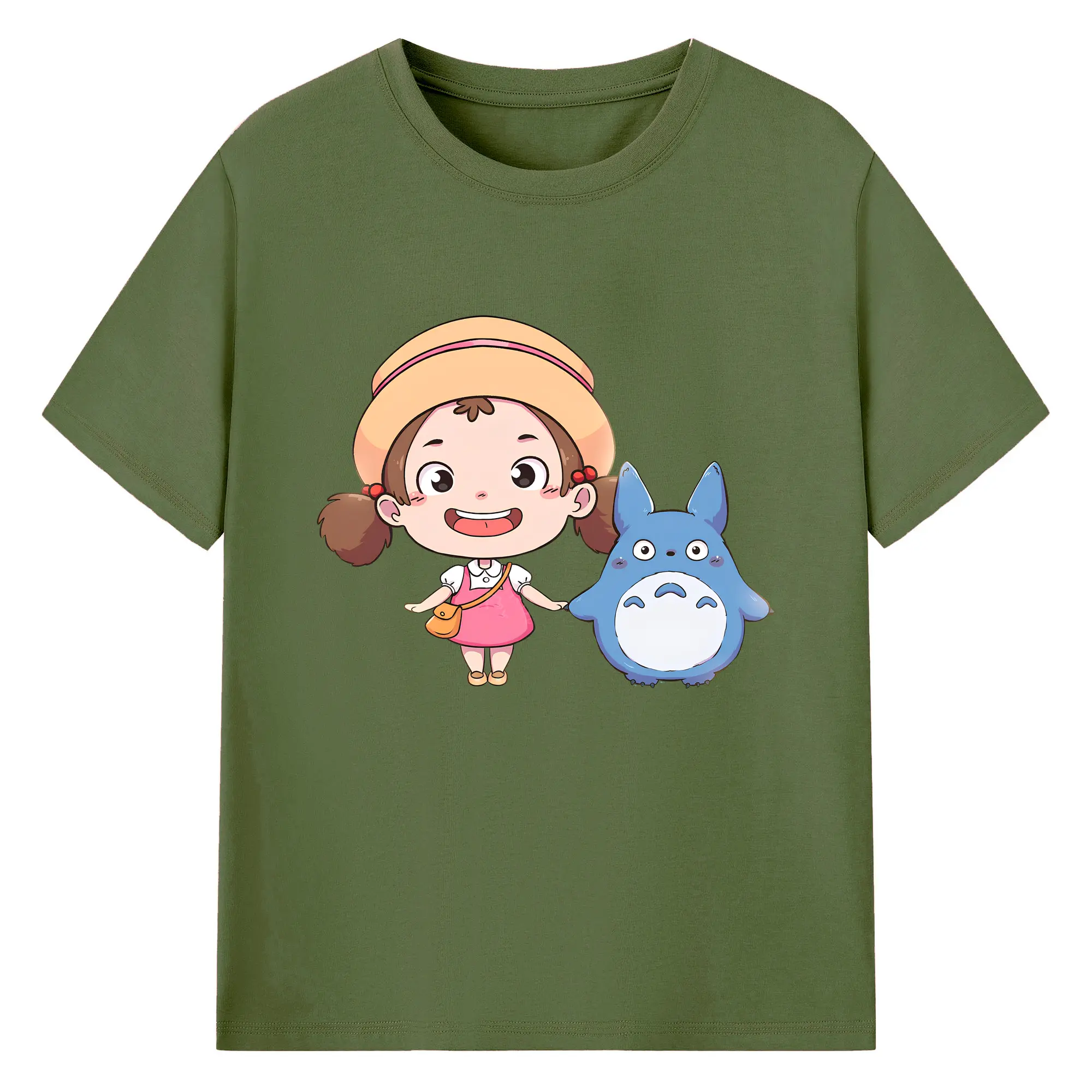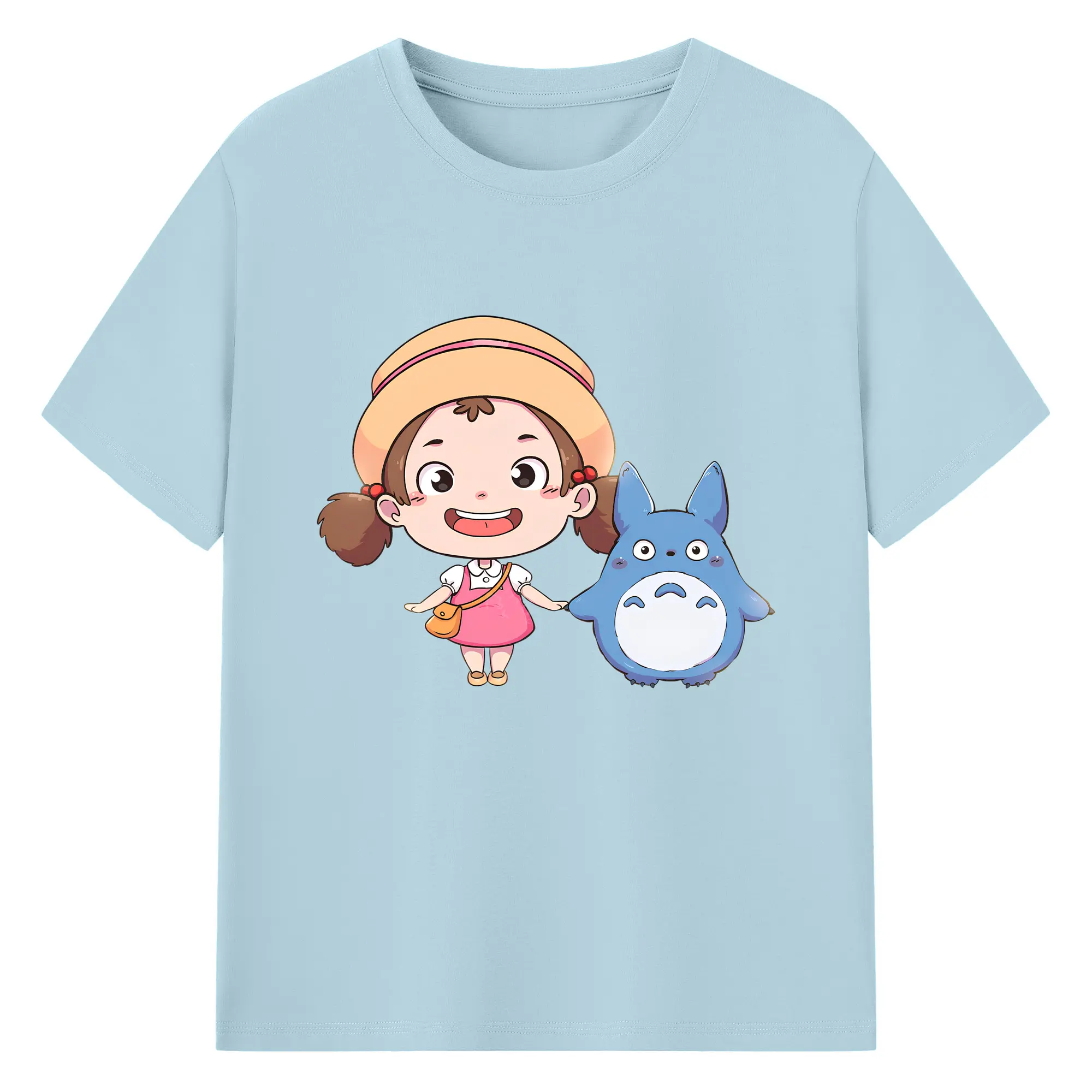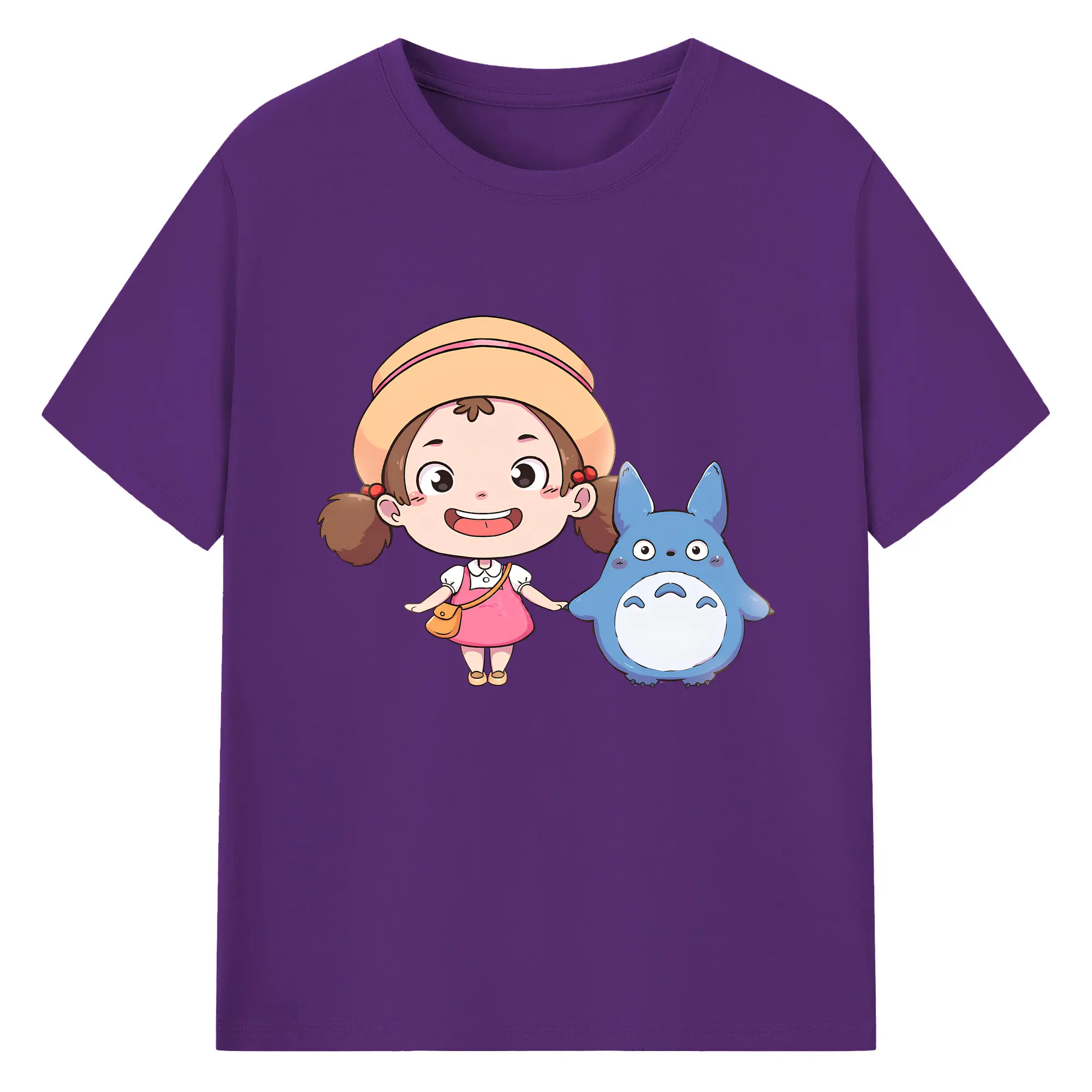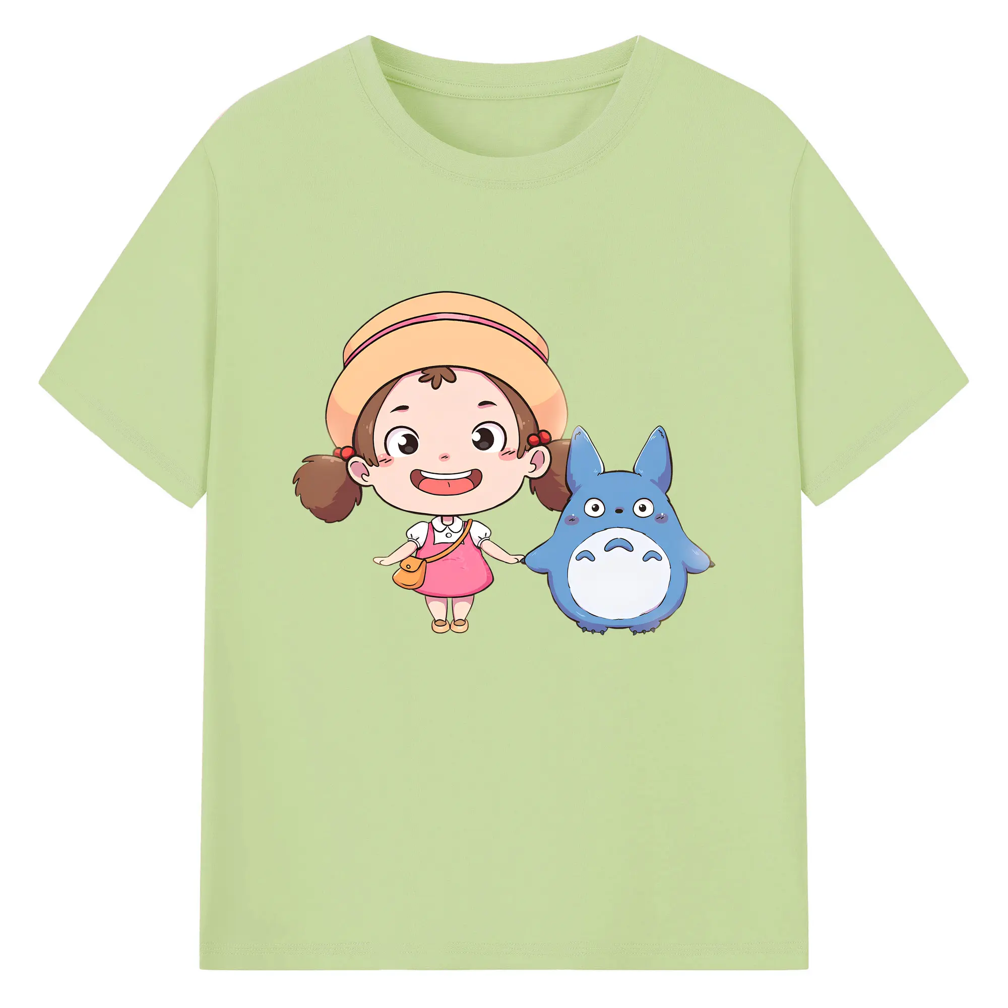 となりのトトロ可愛い草壁メイ - 綿100% ヴィンテージ風 半袖Tシャツ ・ フロントプリント ・ 柔らか肌触り ・ 通気性 快適 ・ スポーツ カジュアル 外出用