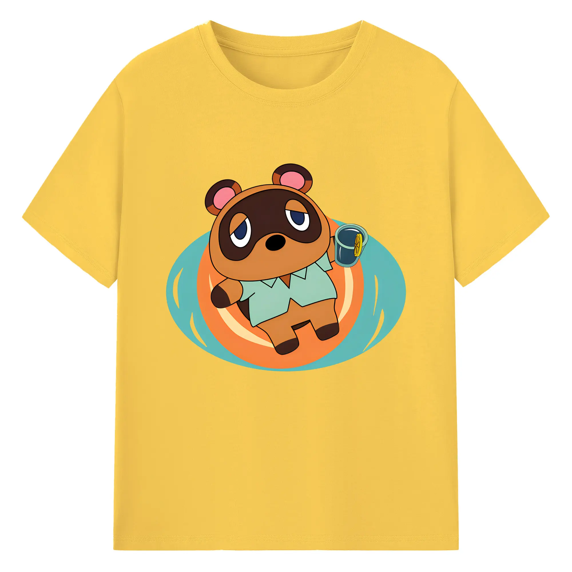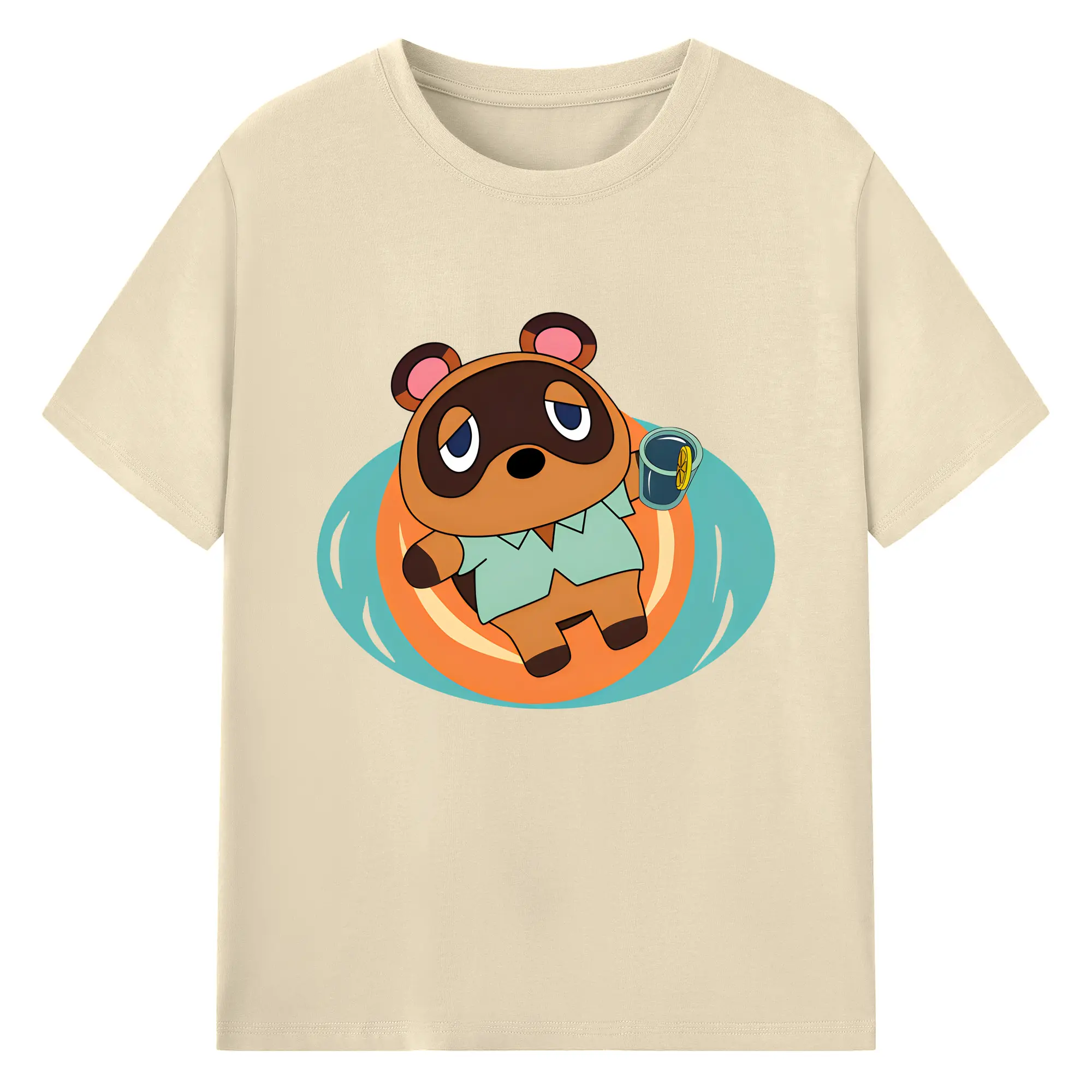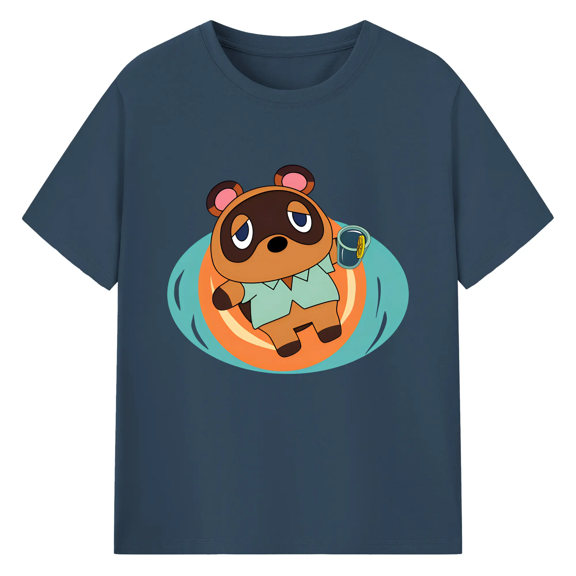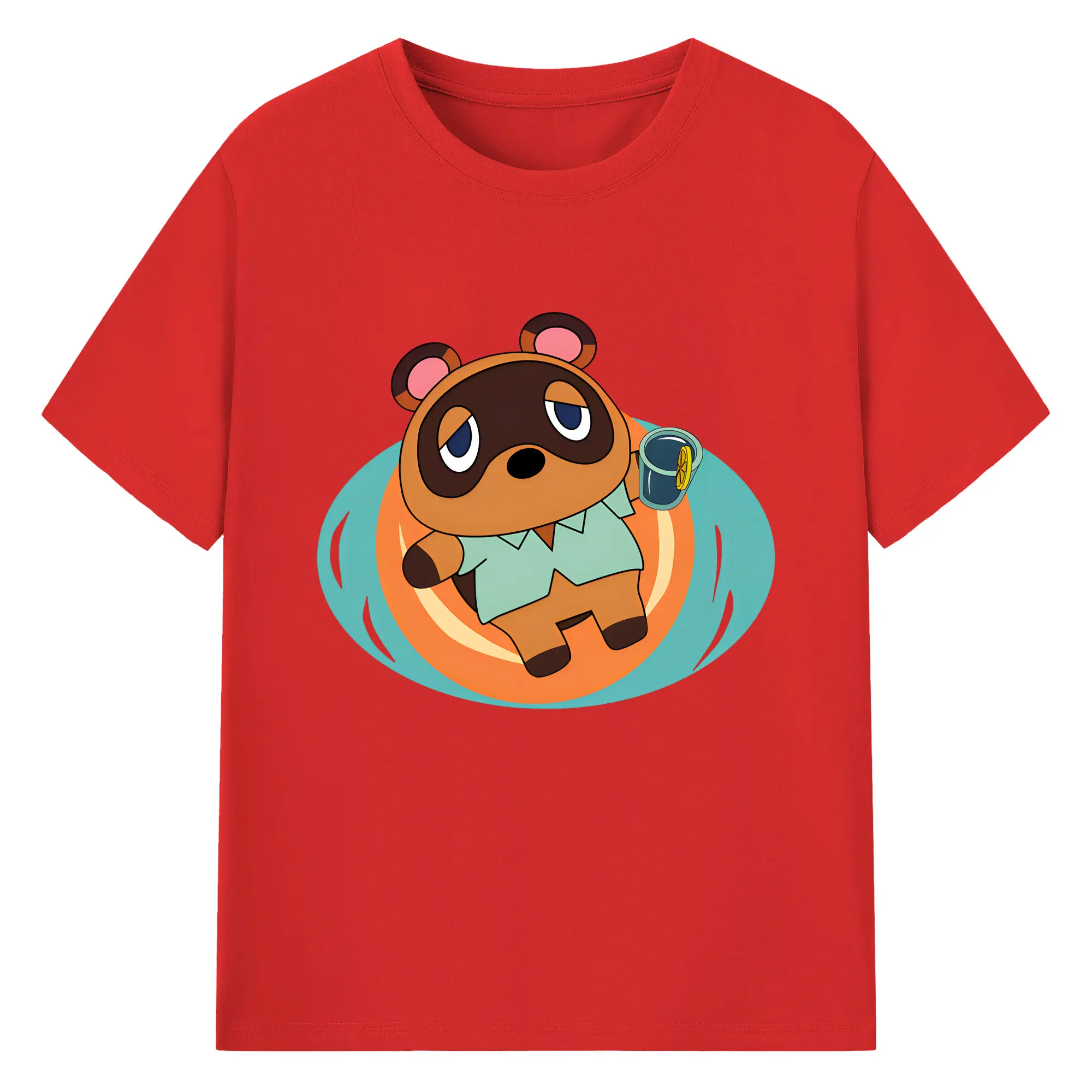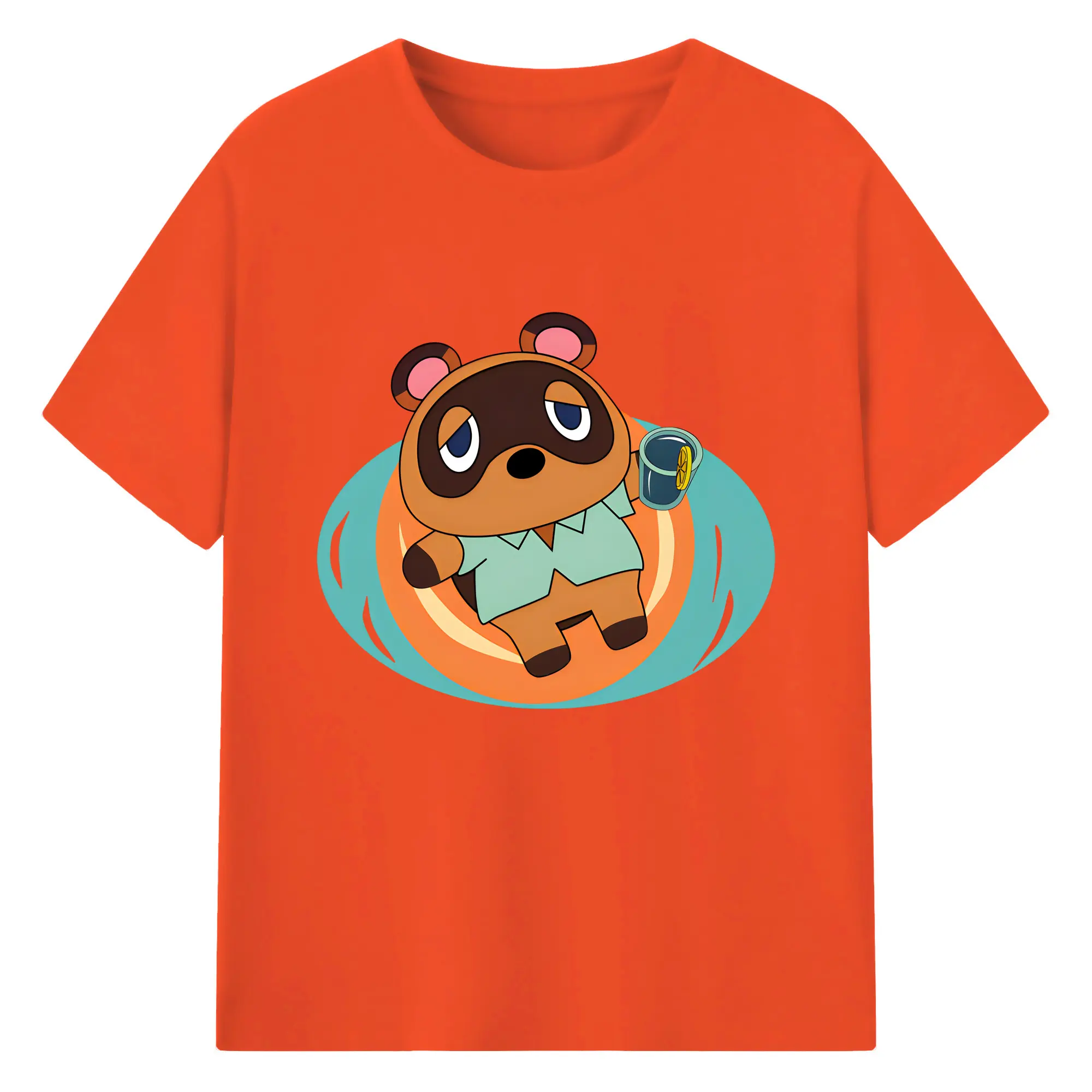 どうぶつの森 たぬきち 癒し系キャラクター - 綿100% ヴィンテージ風 半袖Tシャツ ・ フロントプリント ・ 柔らか肌触り ・ 通気性 快適 ・ スポーツ カジュアル 外出用