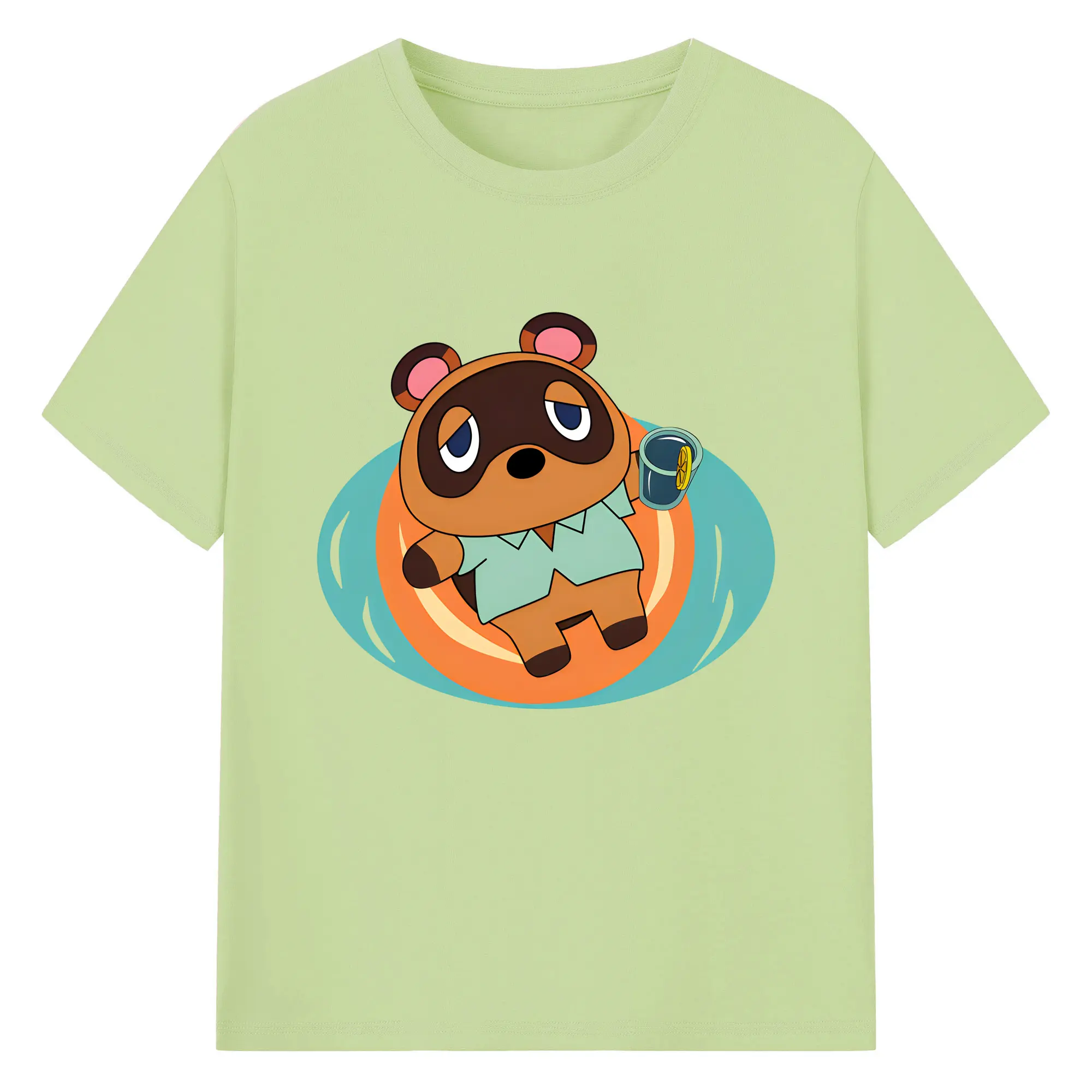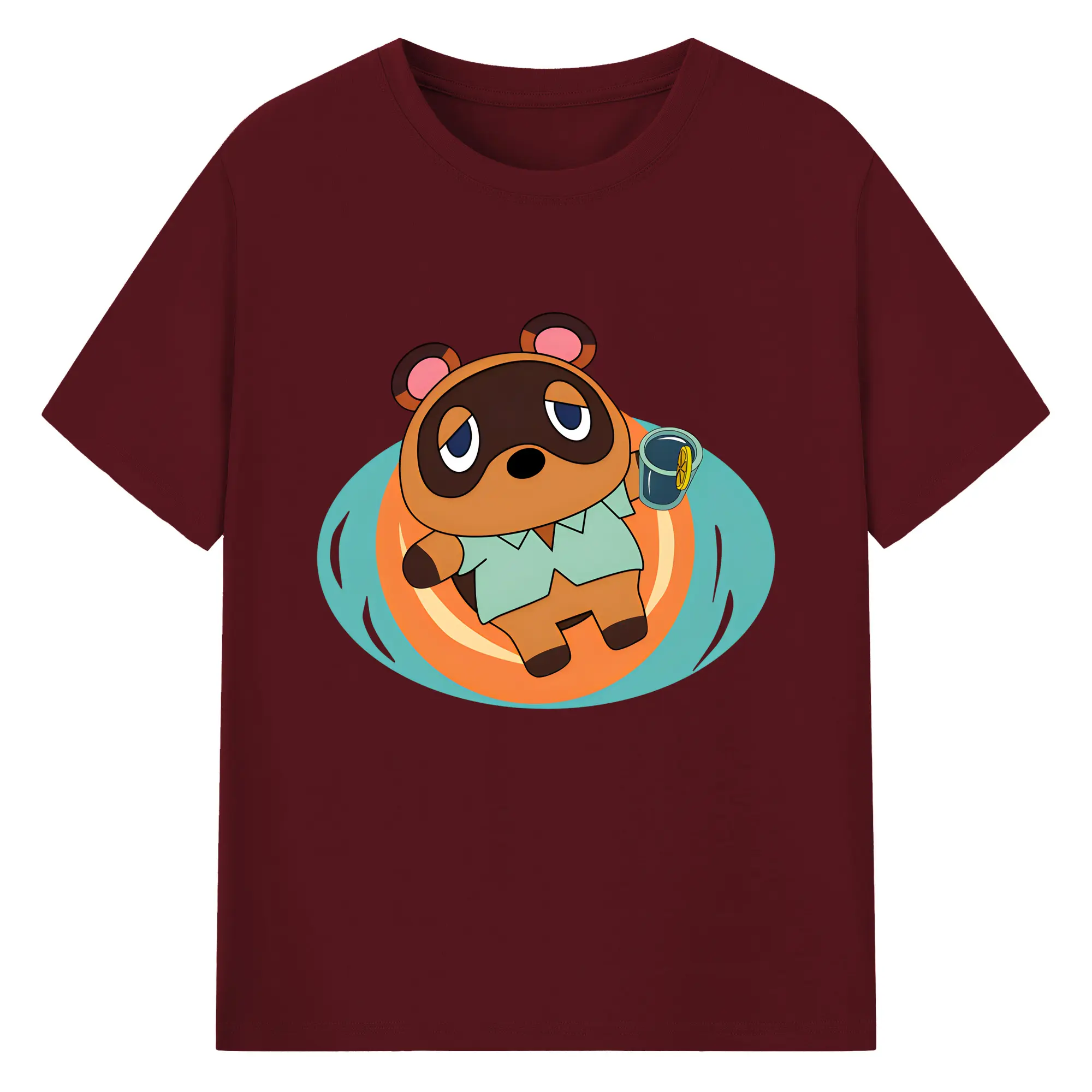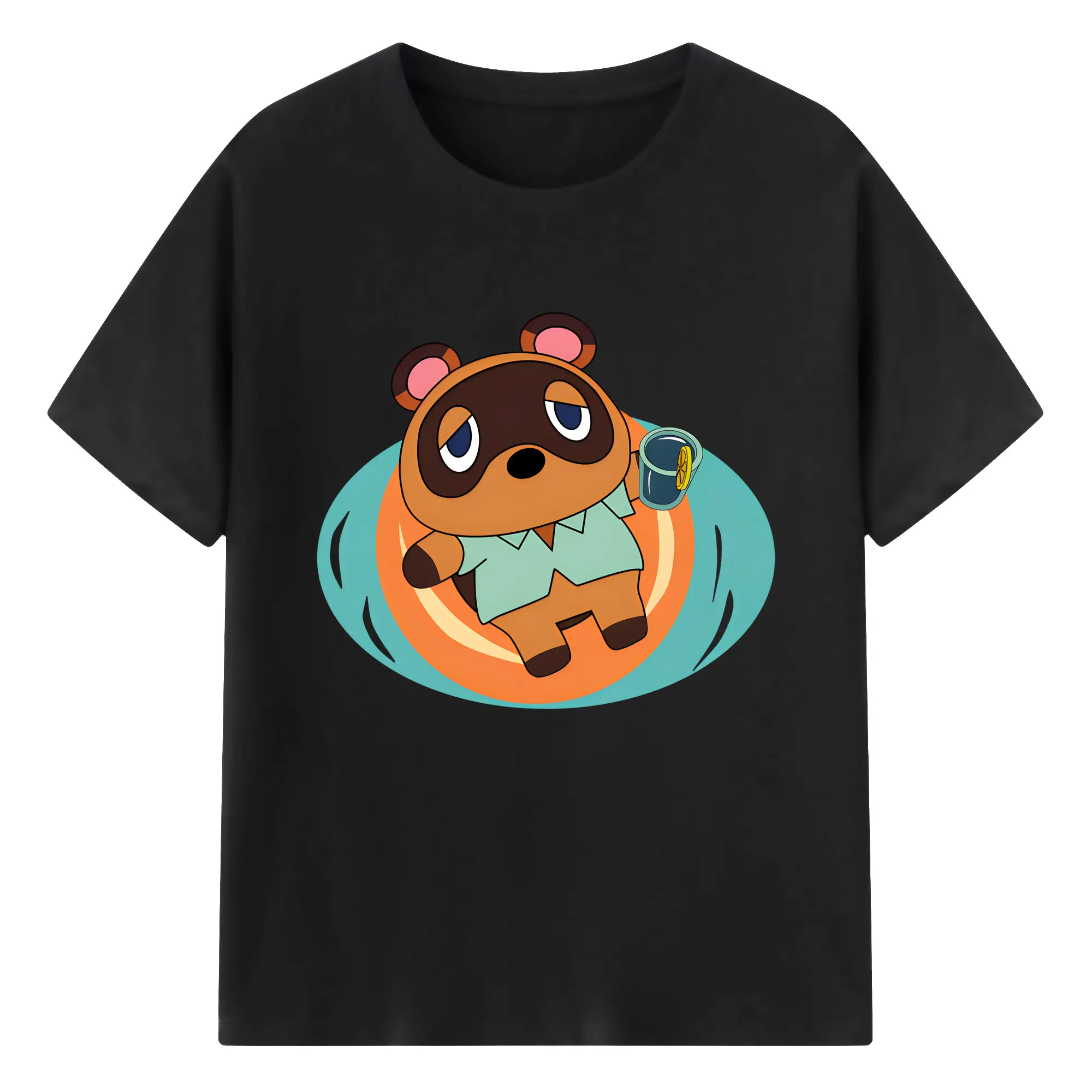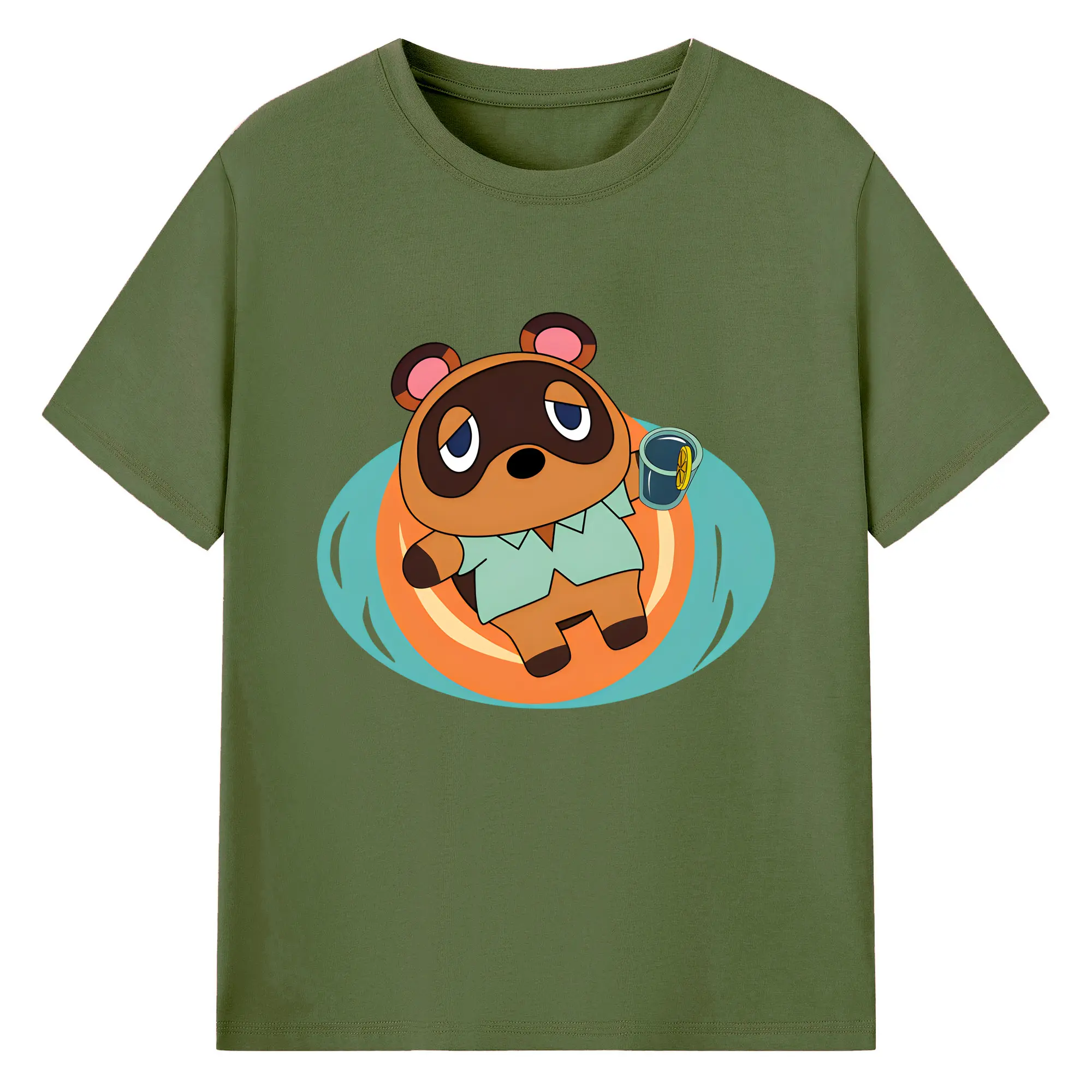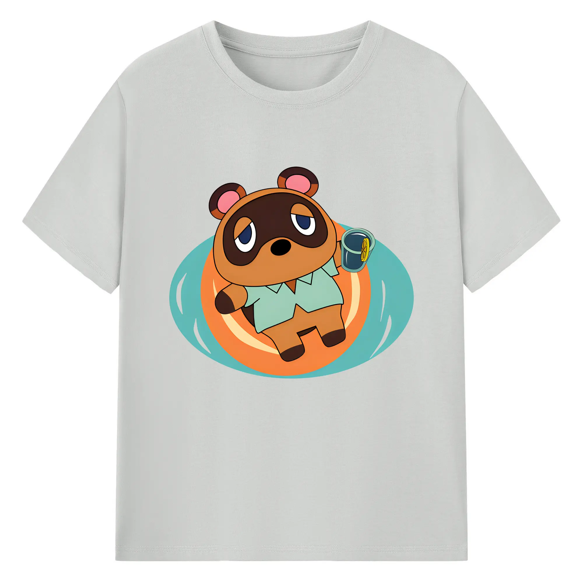 どうぶつの森 たぬきち 癒し系キャラクター - 綿100% ヴィンテージ風 半袖Tシャツ ・ フロントプリント ・ 柔らか肌触り ・ 通気性 快適 ・ スポーツ カジュアル 外出用