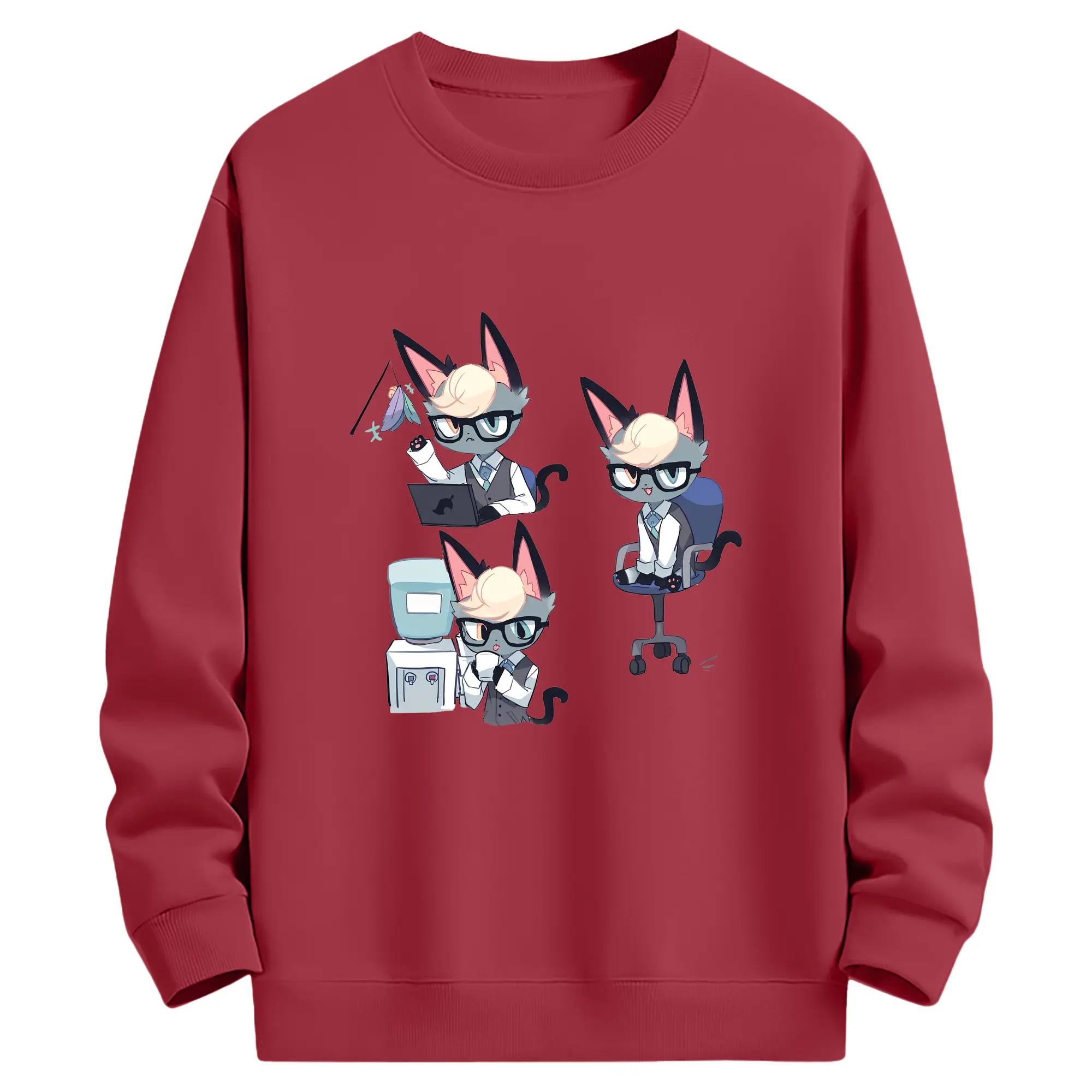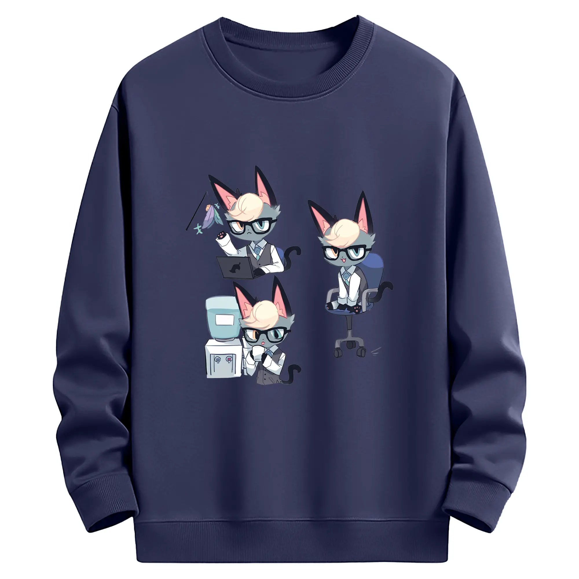 Mofusand 怪獣ネコモチーフ おもしろ&キュート - 高品質 クルーネック スウェット ・ コットン59% ポリエステル41% ・ ユニセックス 長袖 トレーナー ・ カジュアル デイリー スポーツ 散歩用