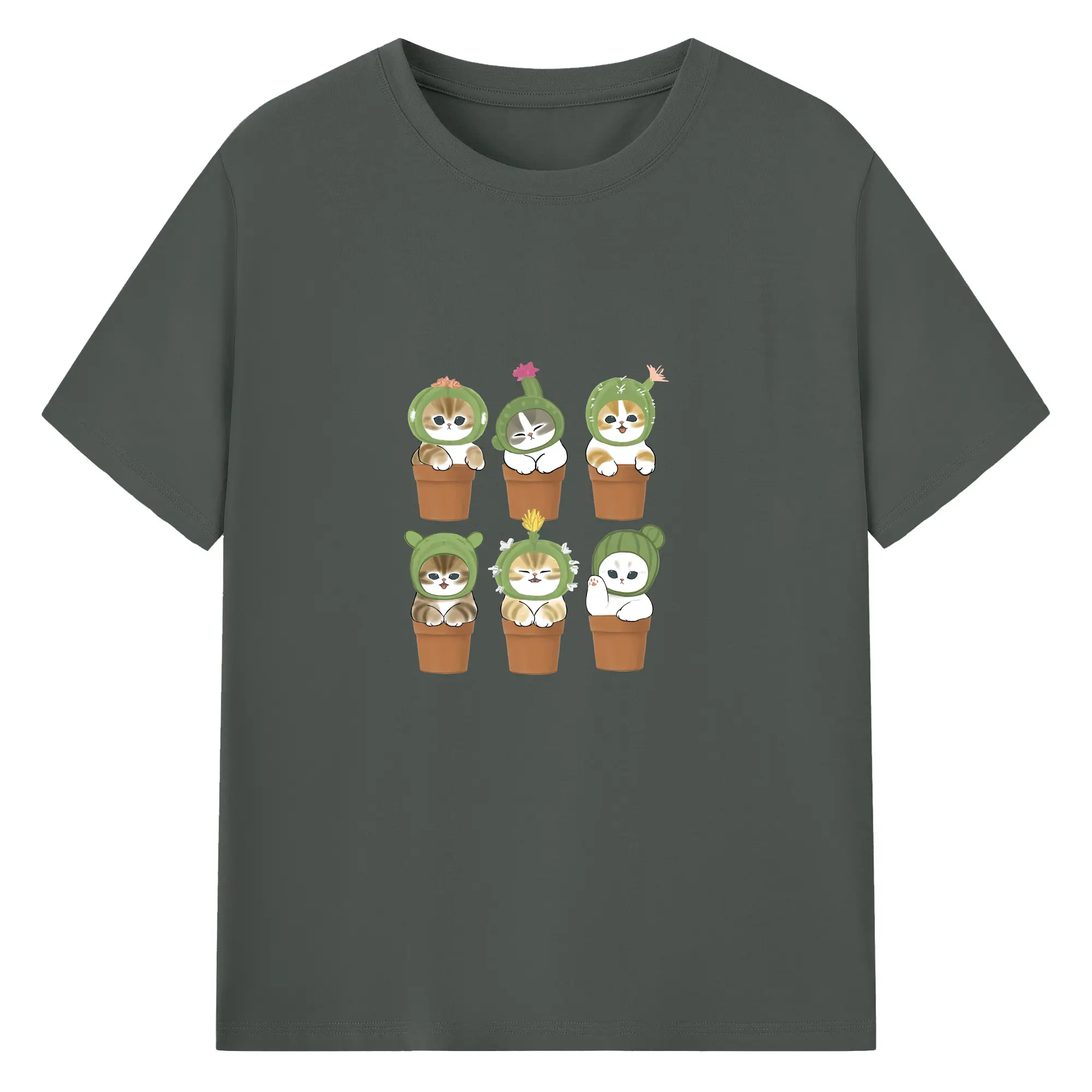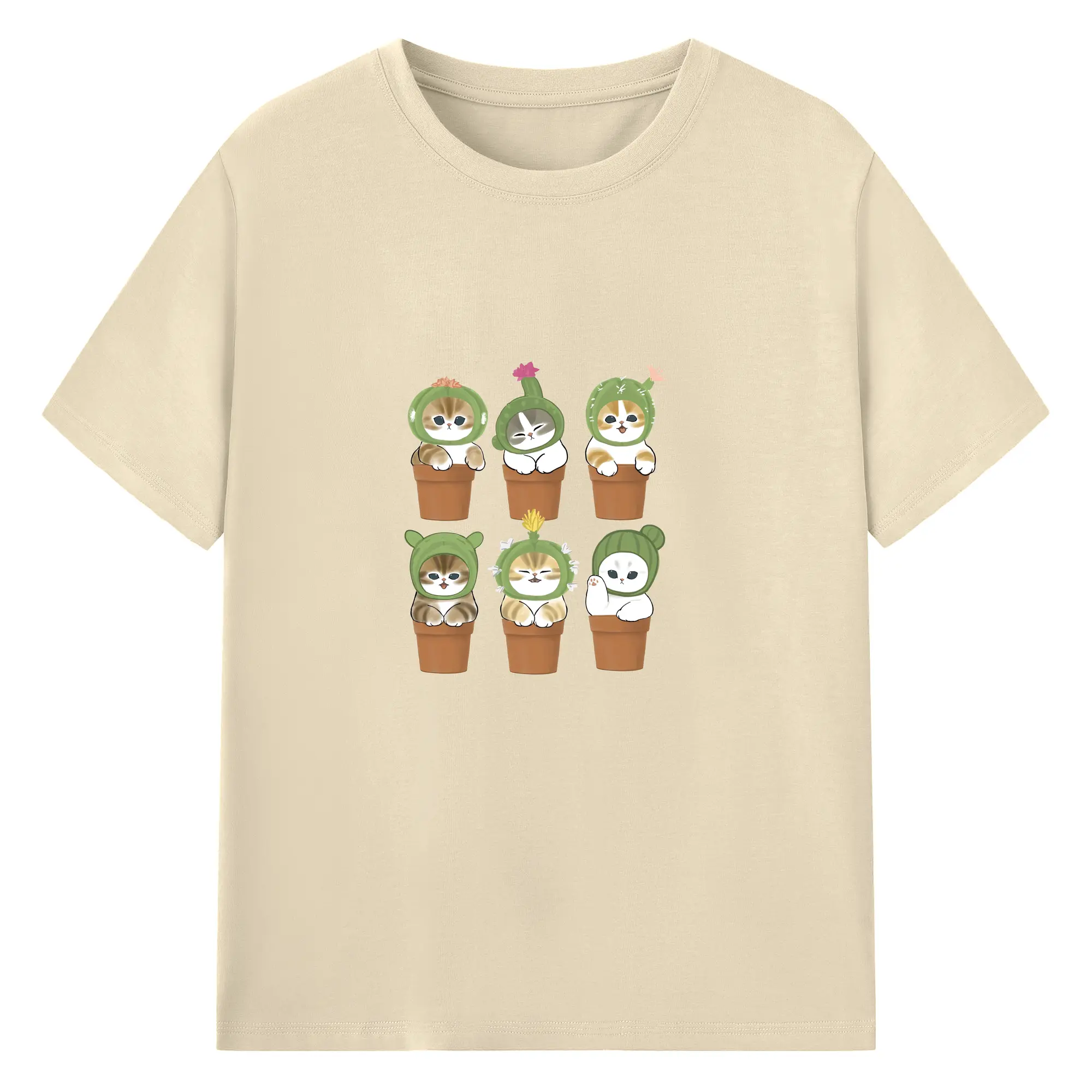 ふわふわで可愛い「mofusand」のサボテンが登場! - 綿100% ヴィンテージ風 半袖Tシャツ ・ フロントプリント ・ 柔らか肌触り ・ 通気性 快適 ・ スポーツ カジュアル 外出用