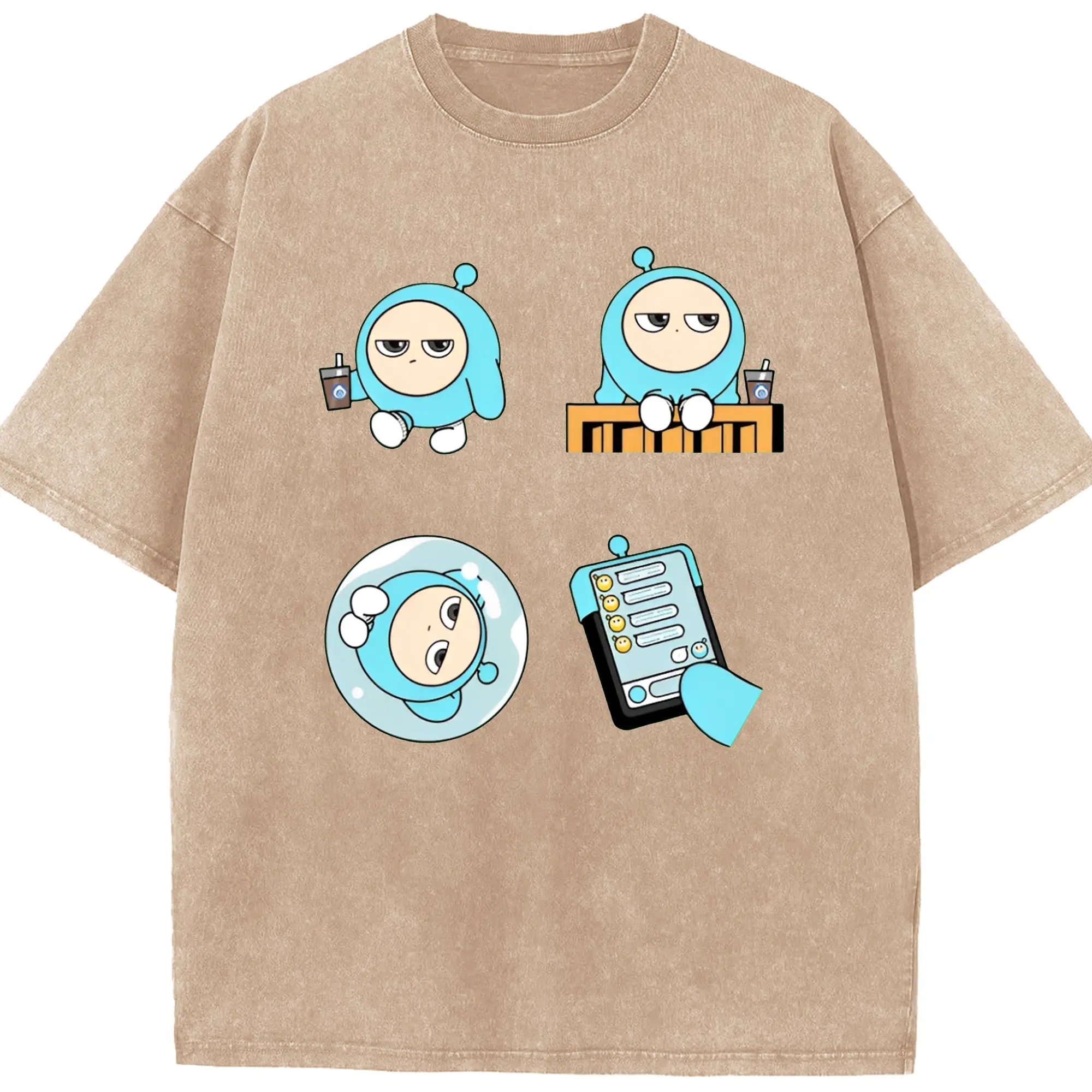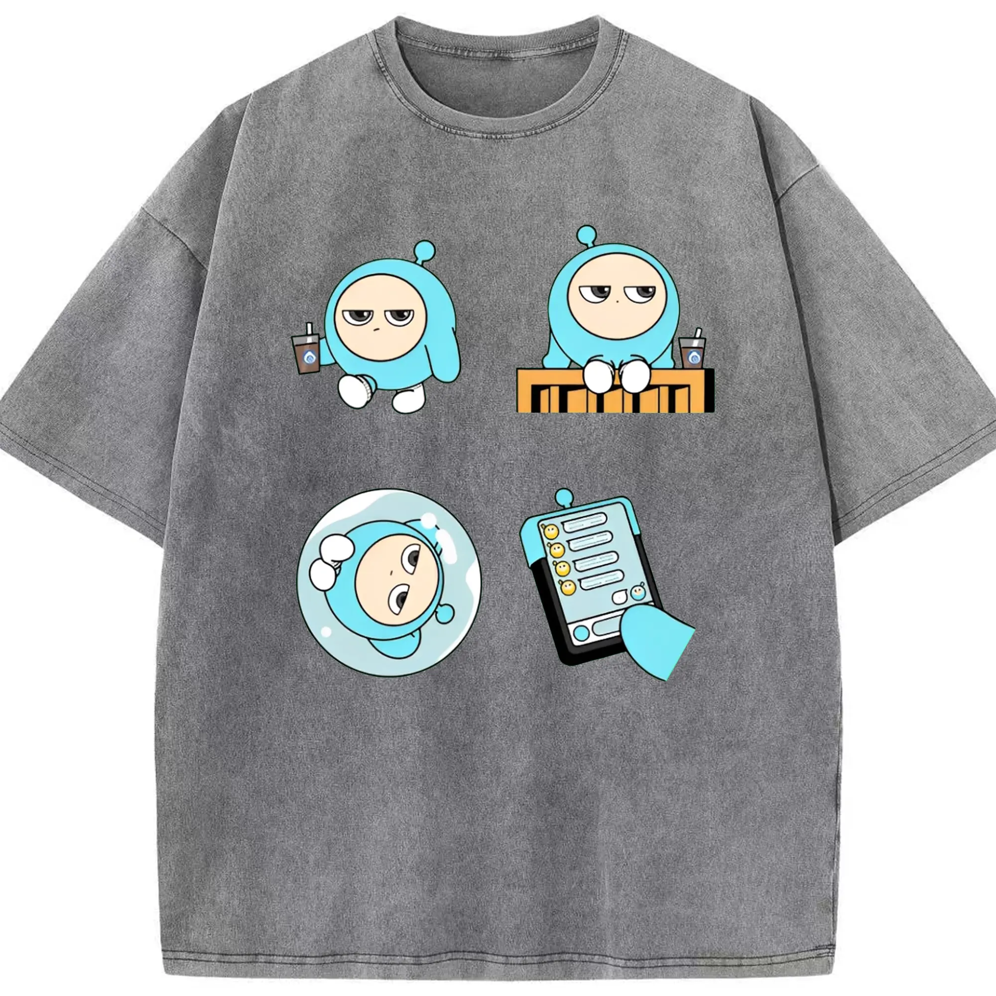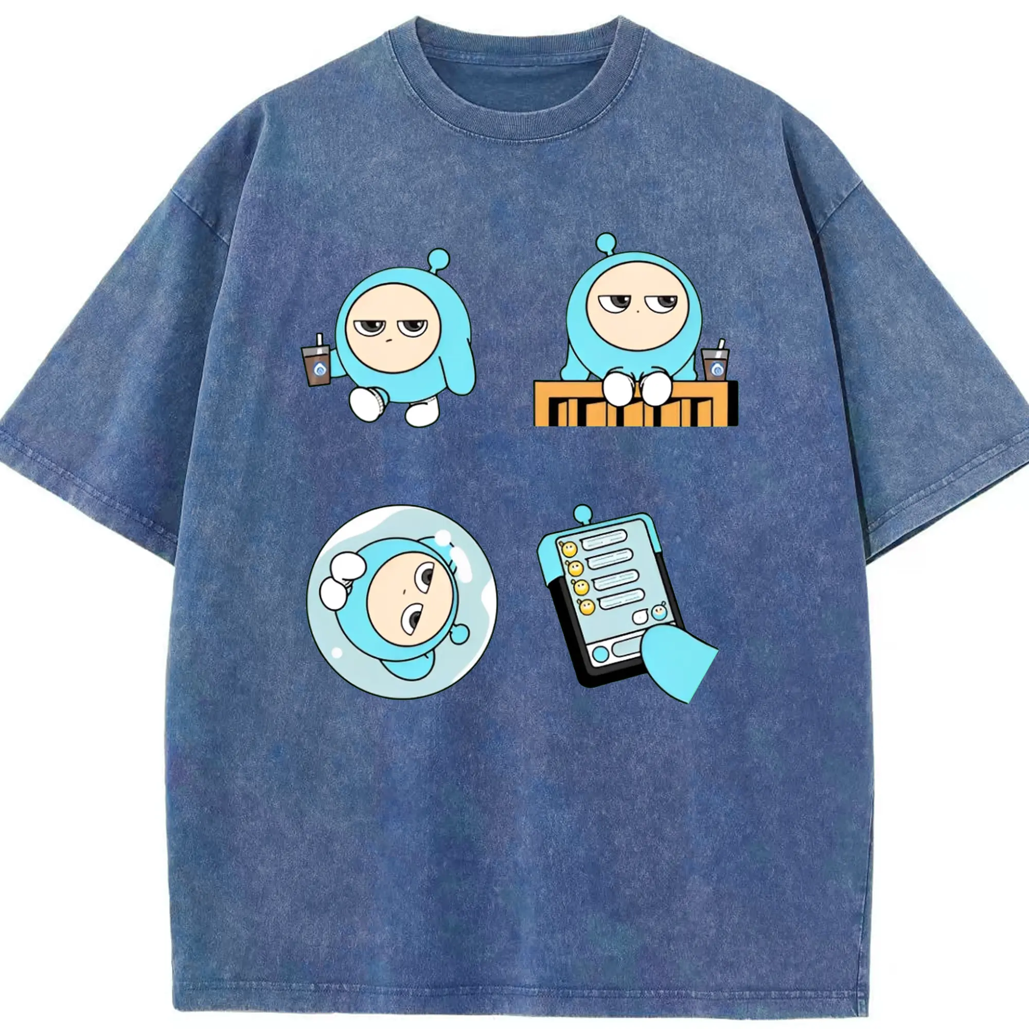 「ふわふわブルーエッグ!エギーパーティー 蛋小藍 公式キャラ - 綿100% 半袖Tシャツ ・ フロントプリント ・ 快適 通気性 ・ 日常使い 散歩 スポーツ用