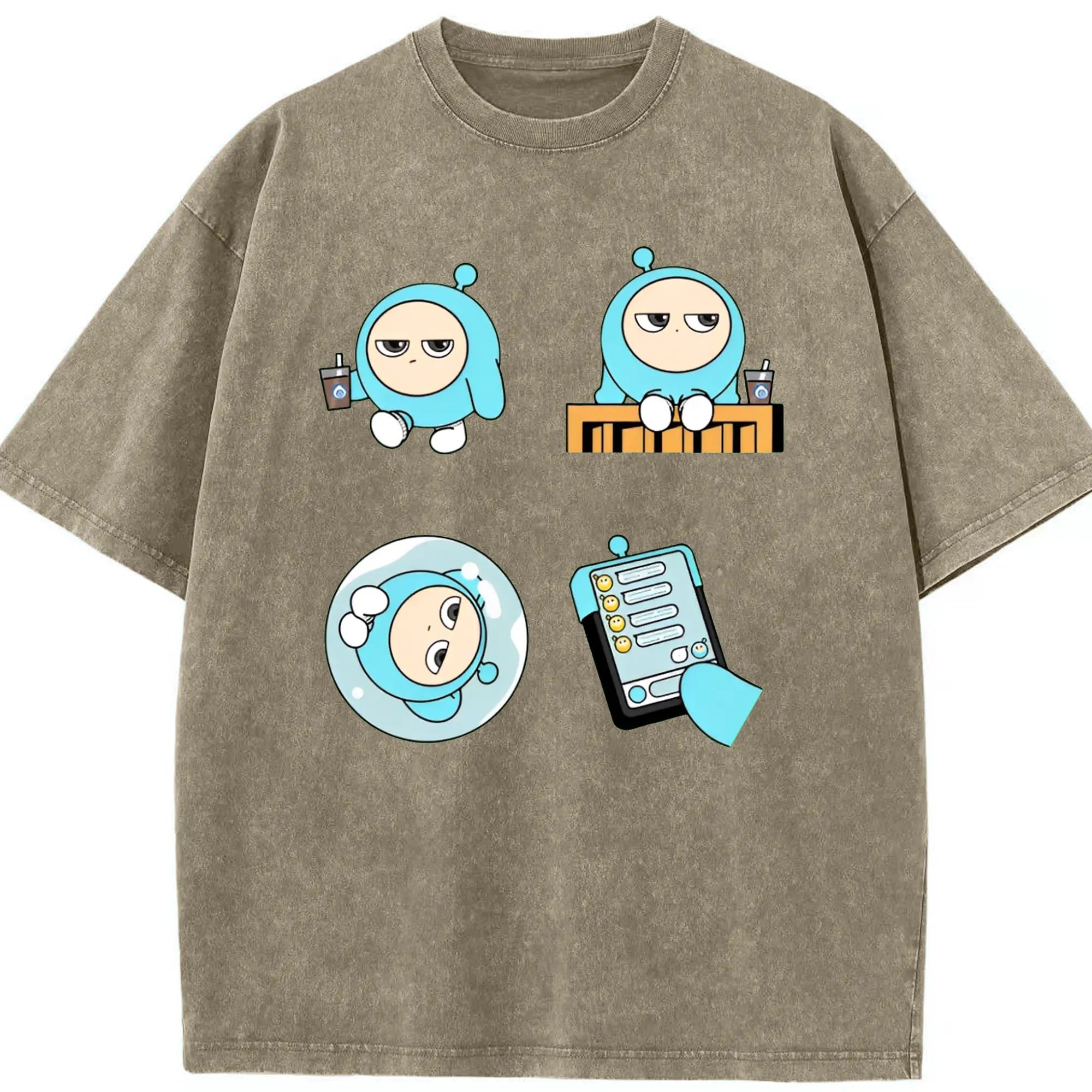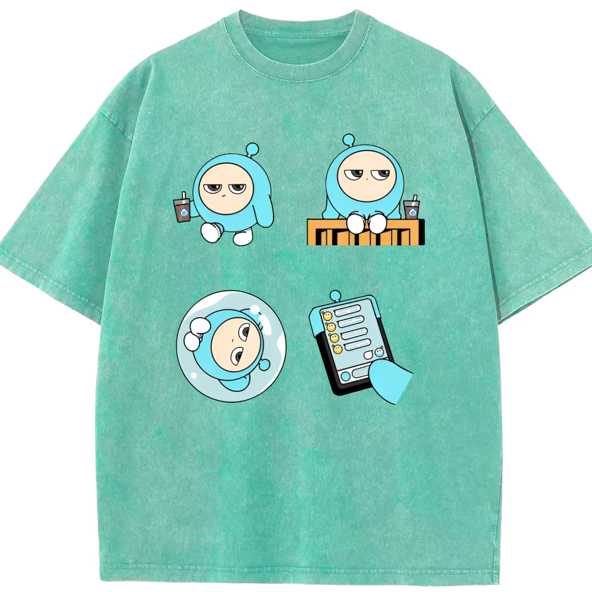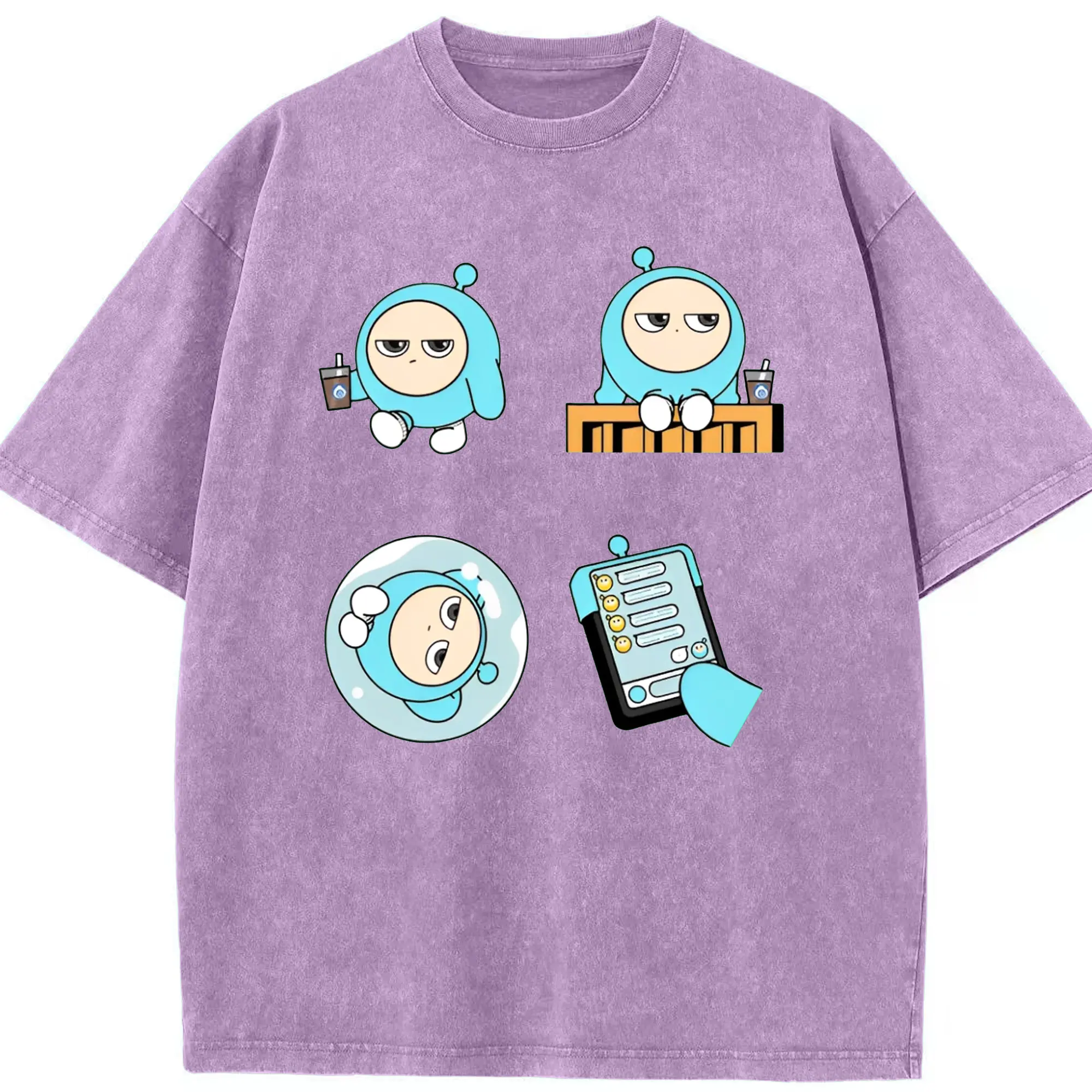 「ふわふわブルーエッグ!エギーパーティー 蛋小藍 公式キャラ - 綿100% 半袖Tシャツ ・ フロントプリント ・ 快適 通気性 ・ 日常使い 散歩 スポーツ用