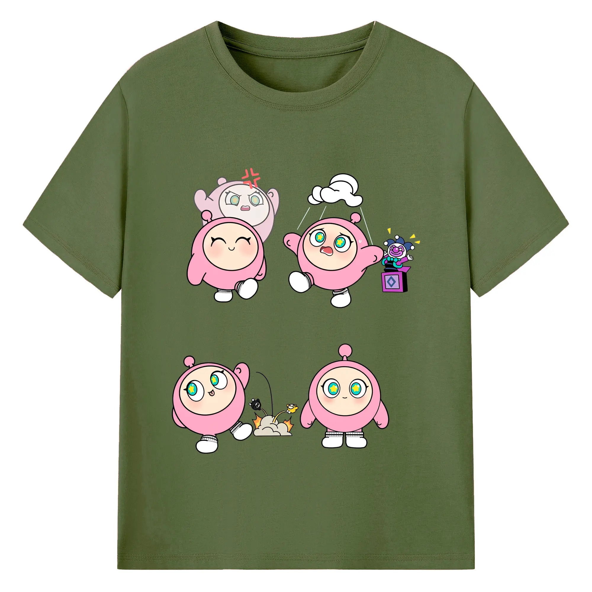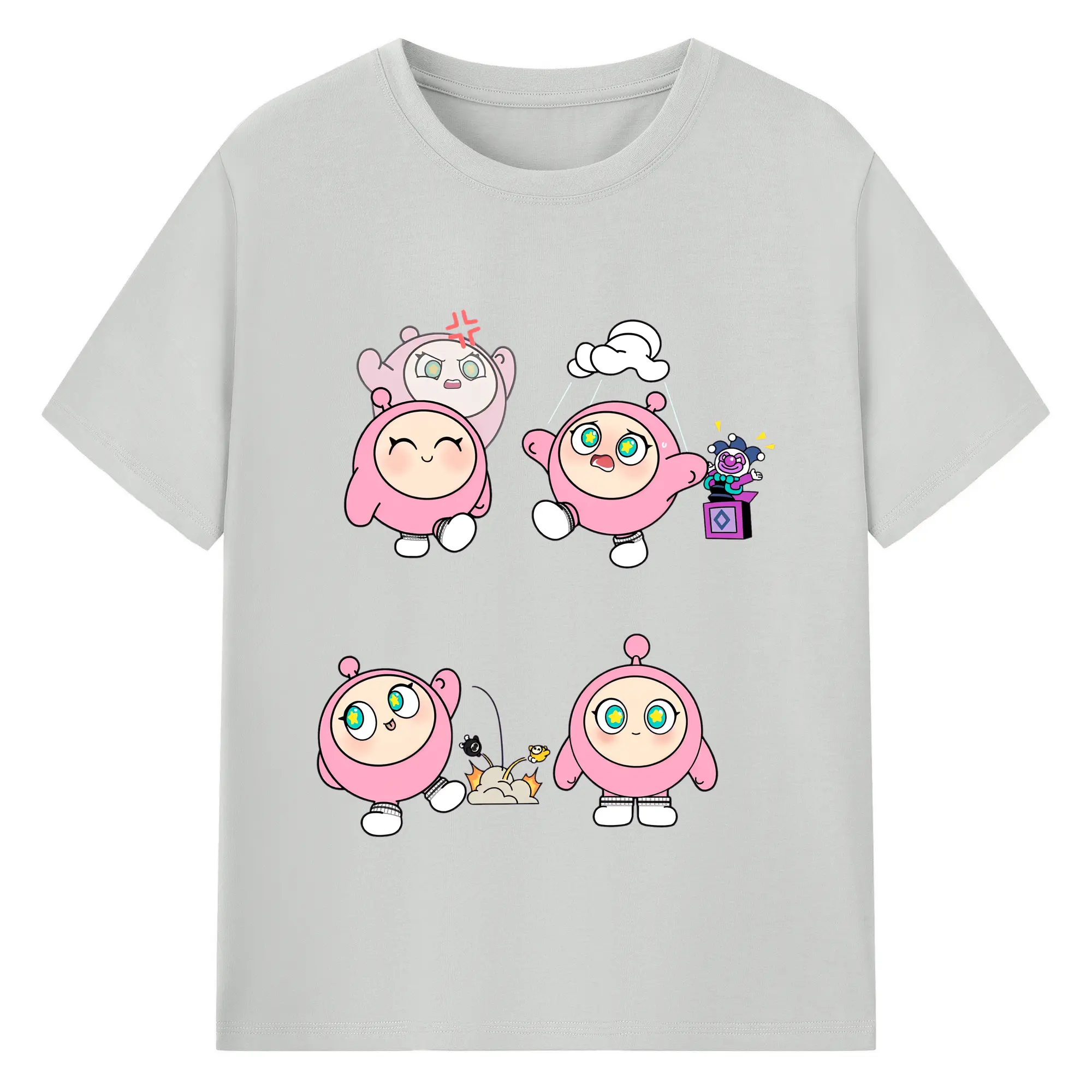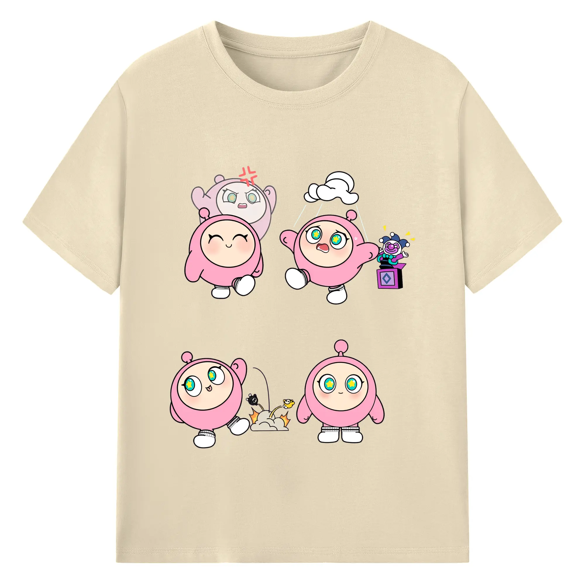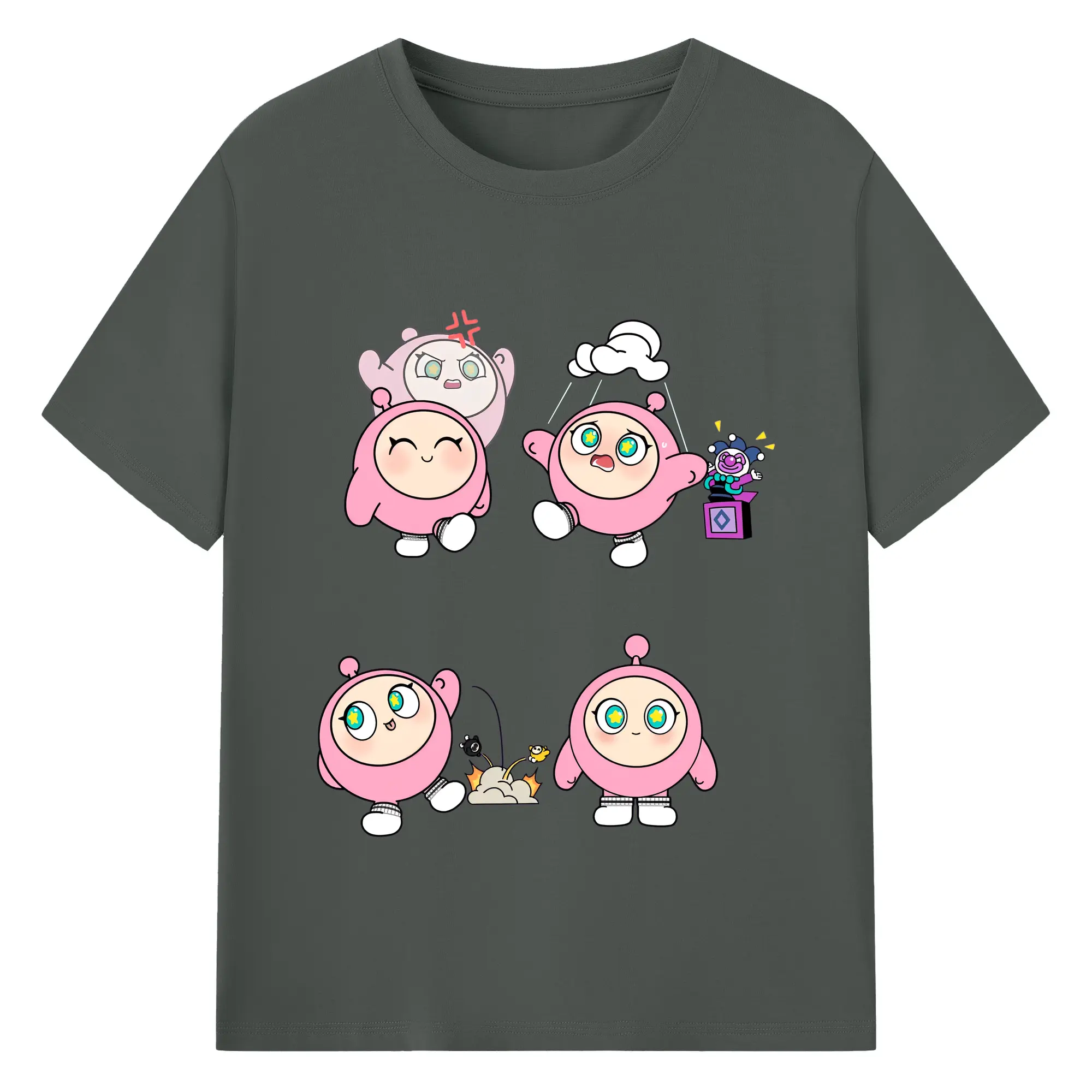 ふわふわ蛋小粉💗 ゲームの世界から飛び出したキュート - 綿100% ヴィンテージ風 半袖Tシャツ ・ フロントプリント ・ 柔らか肌触り ・ 通気性 快適 ・ スポーツ カジュアル 外出用