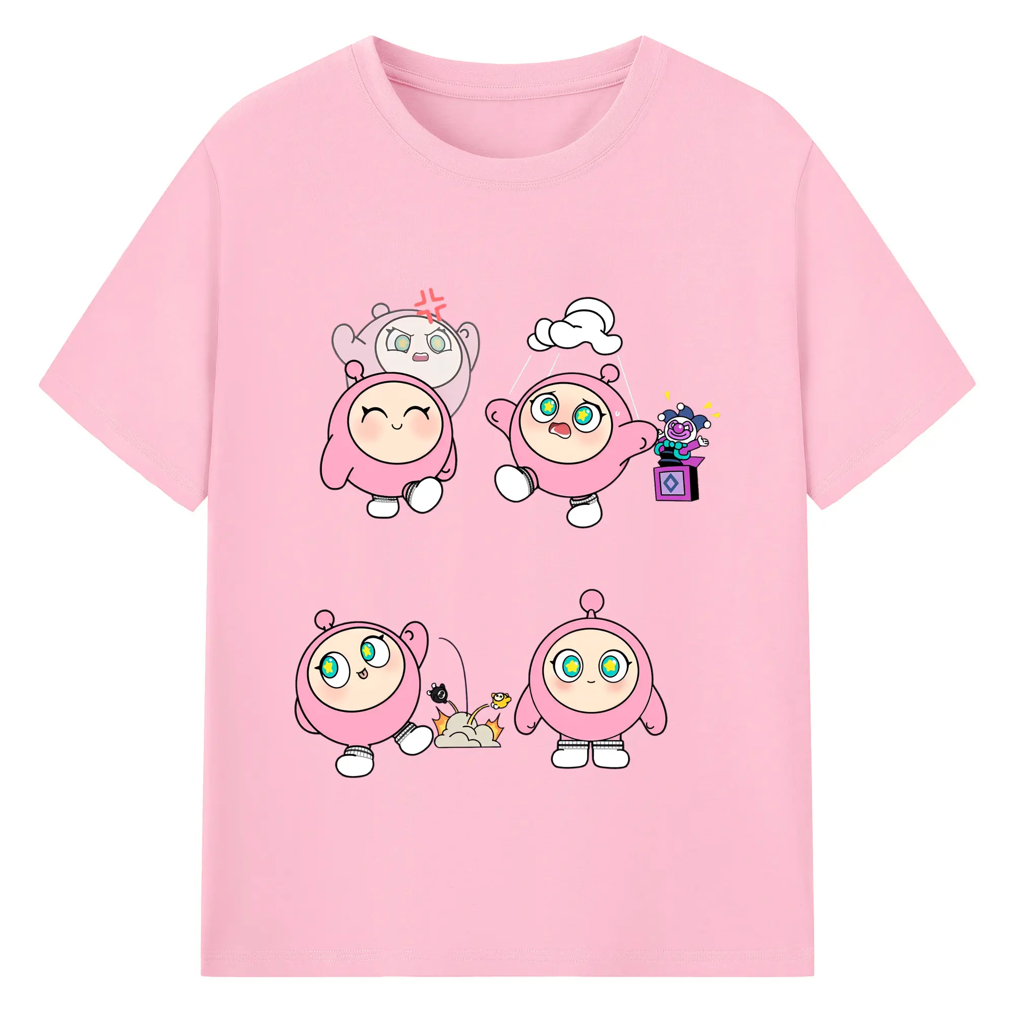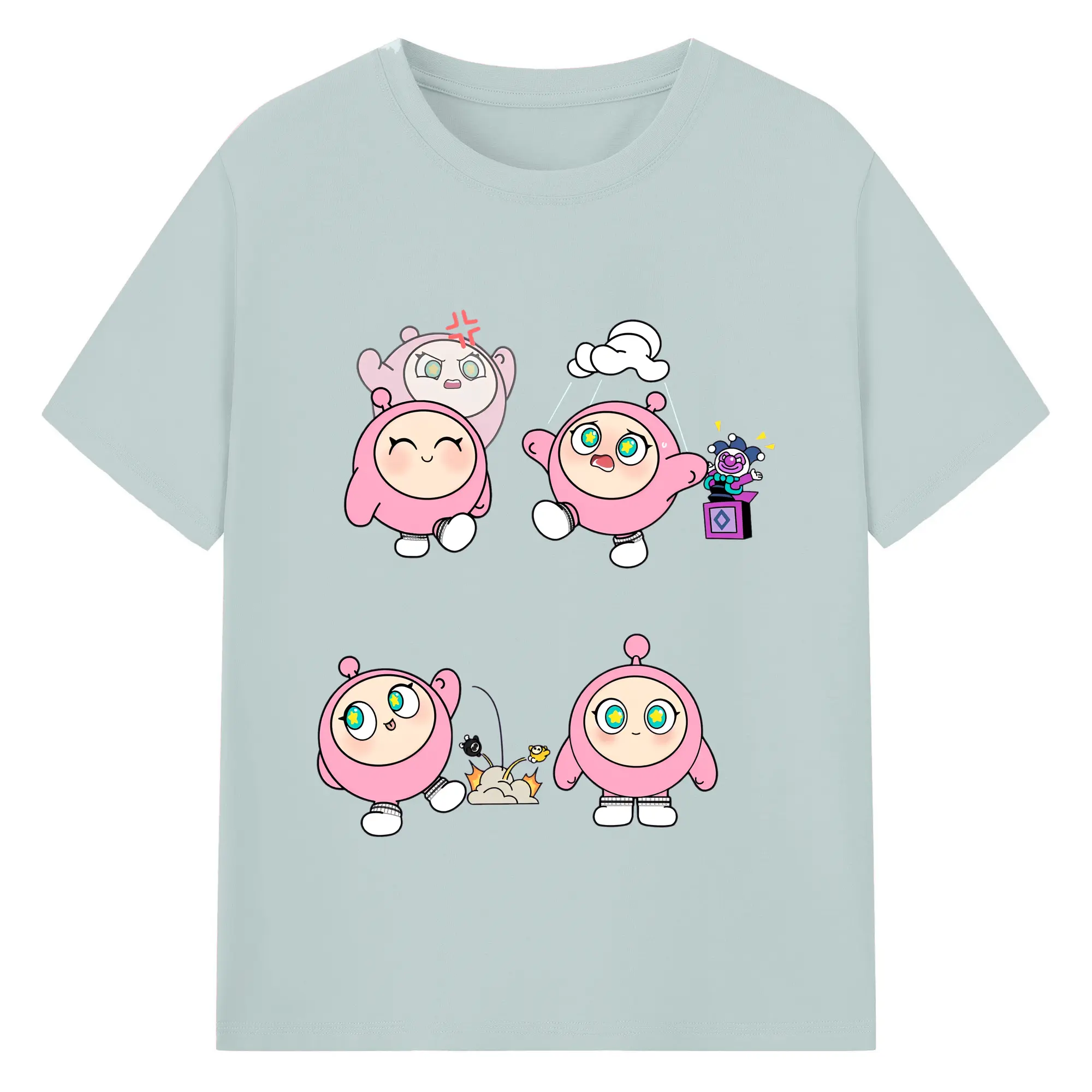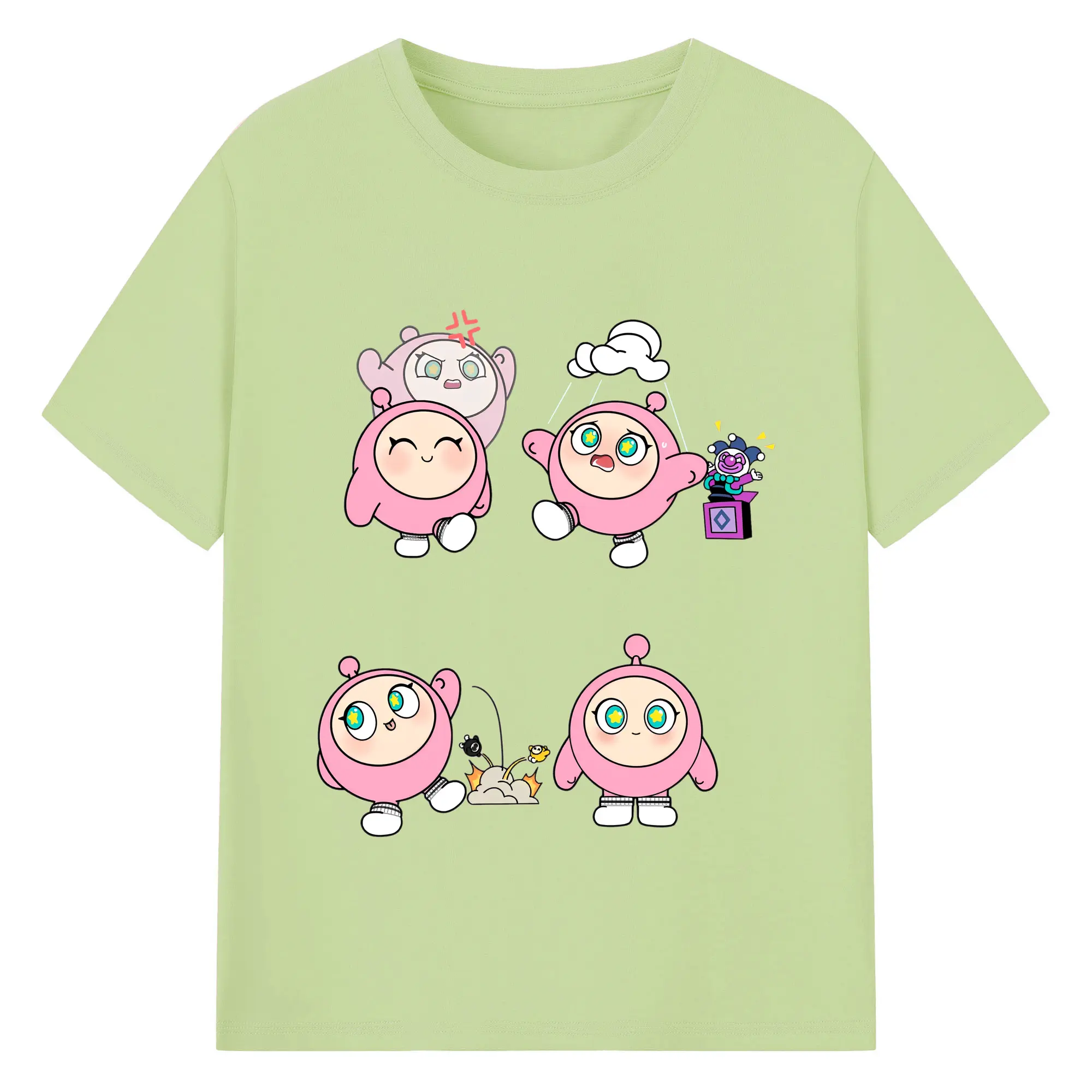 ふわふわ蛋小粉💗 ゲームの世界から飛び出したキュート - 綿100% ヴィンテージ風 半袖Tシャツ ・ フロントプリント ・ 柔らか肌触り ・ 通気性 快適 ・ スポーツ カジュアル 外出用