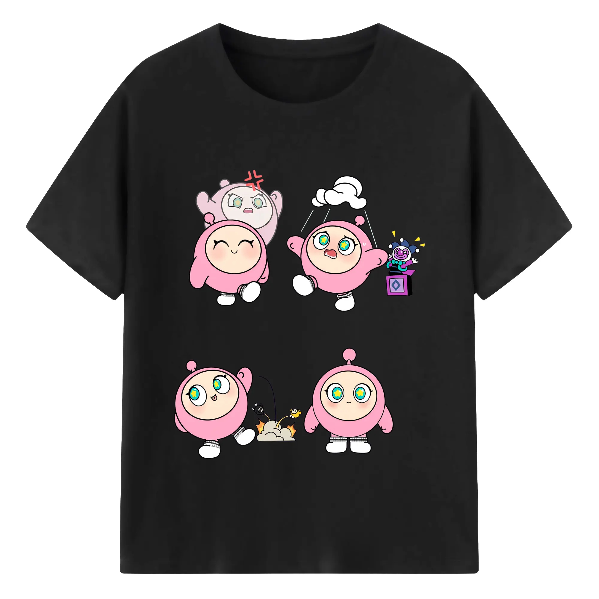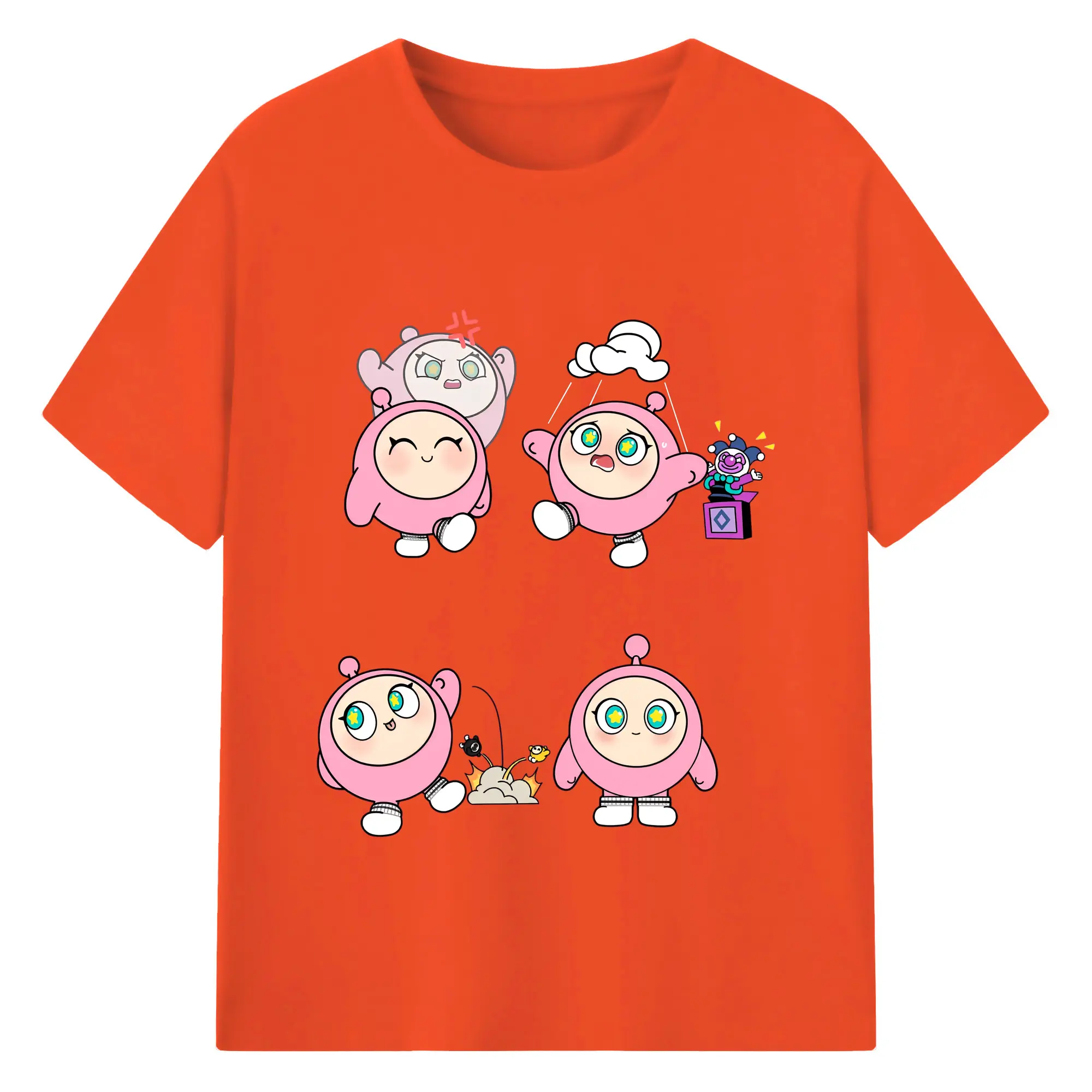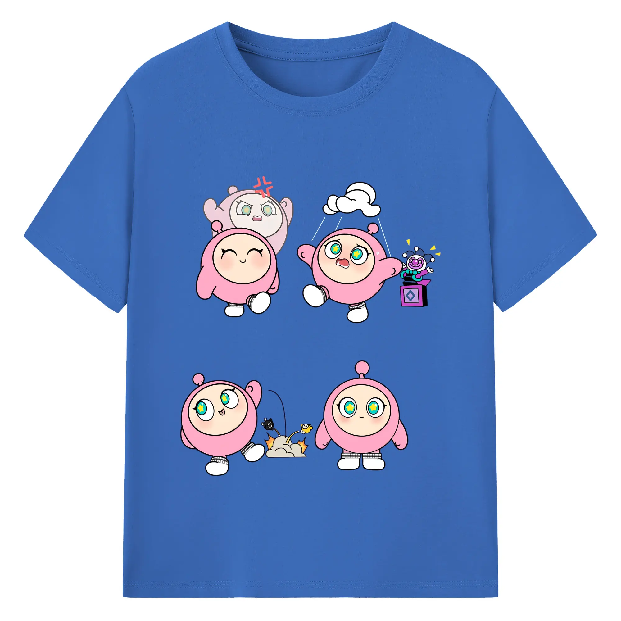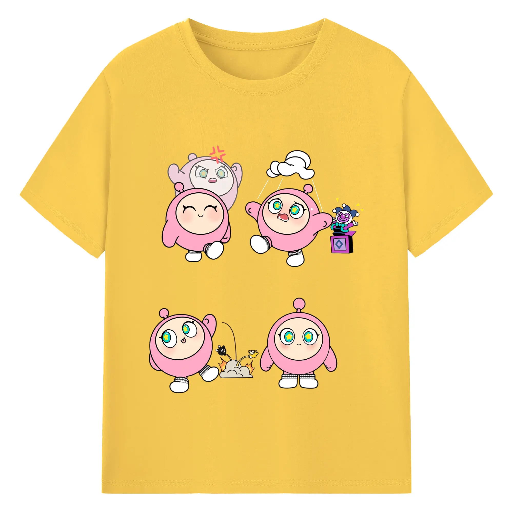 ふわふわ蛋小粉💗 ゲームの世界から飛び出したキュート - 綿100% ヴィンテージ風 半袖Tシャツ ・ フロントプリント ・ 柔らか肌触り ・ 通気性 快適 ・ スポーツ カジュアル 外出用