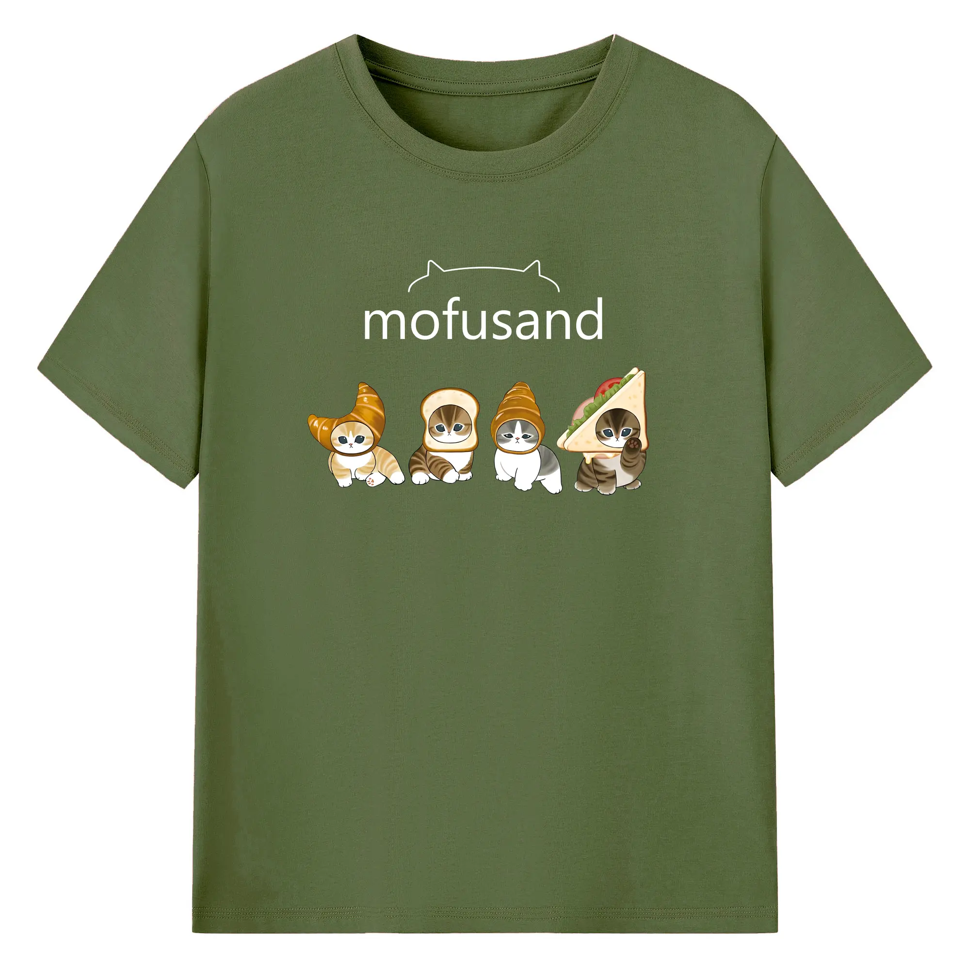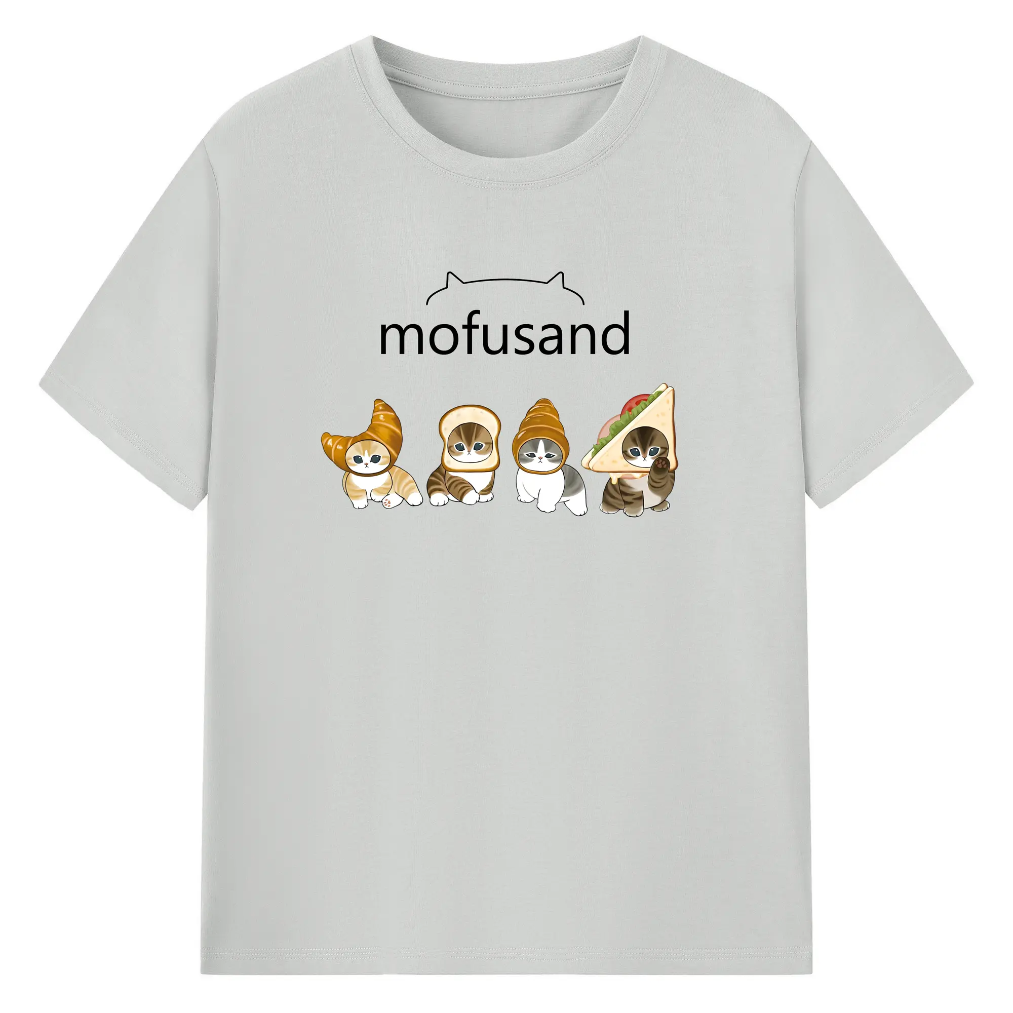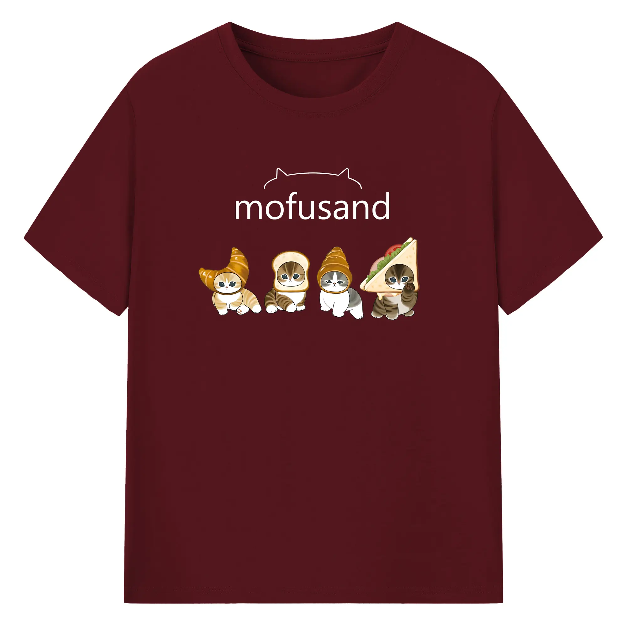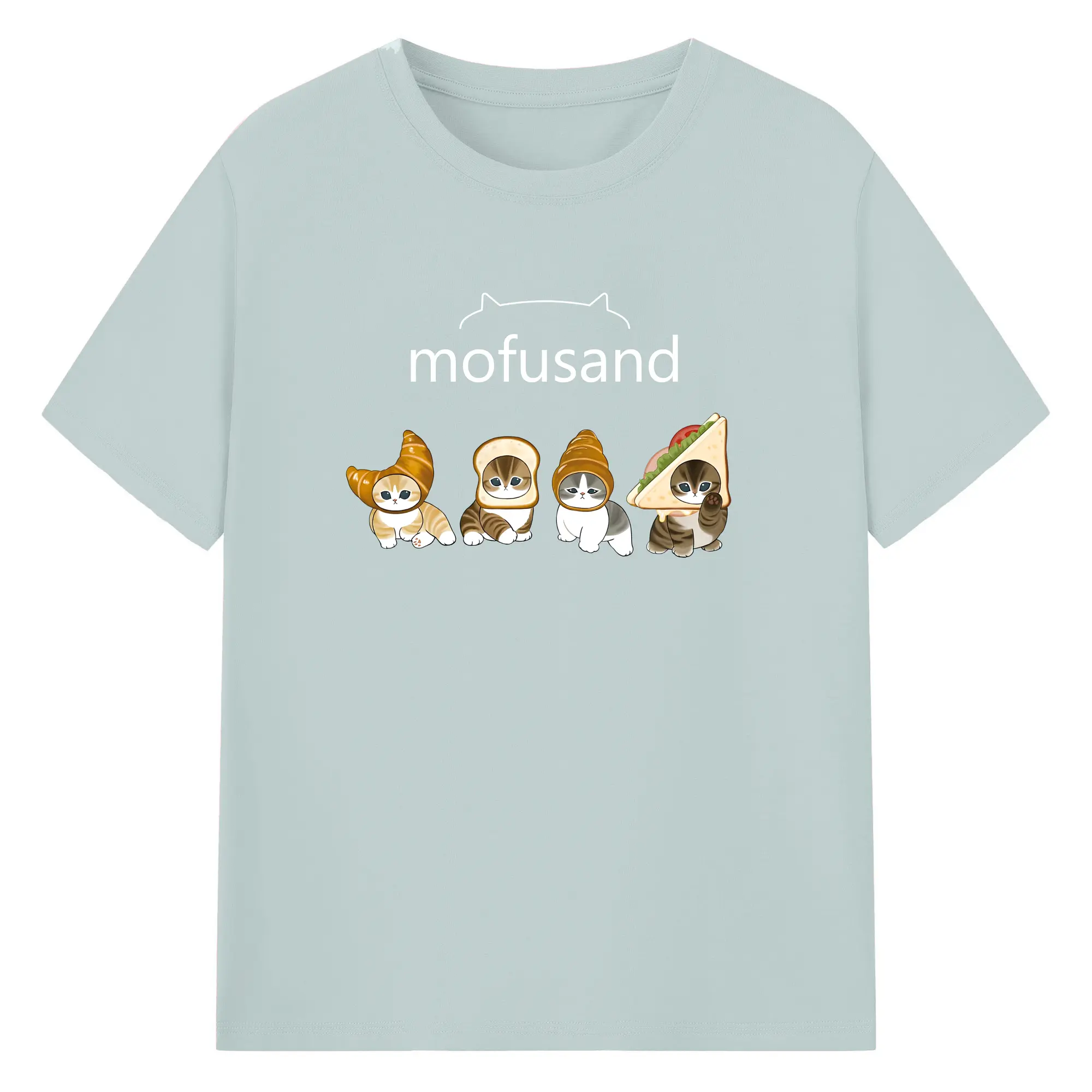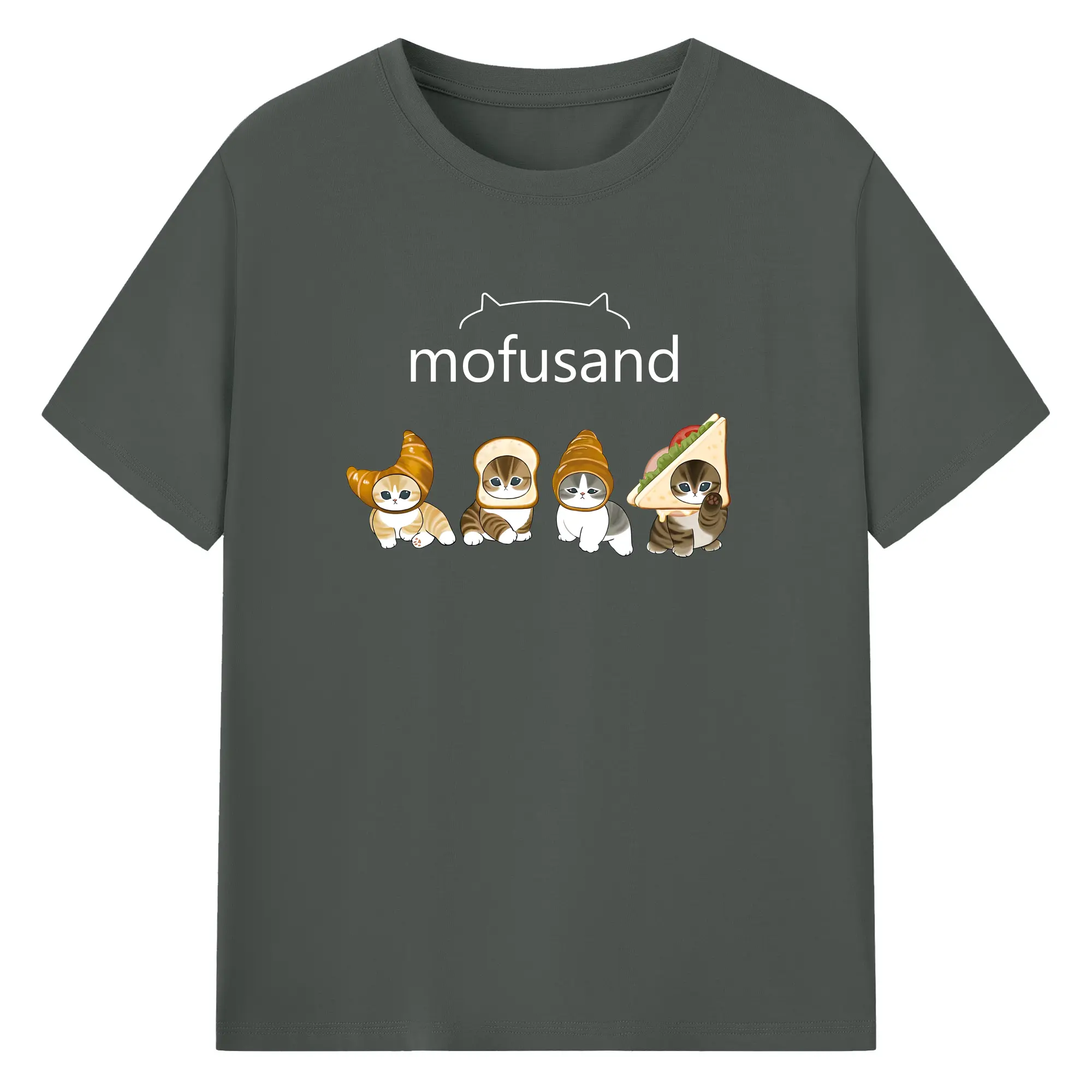 もふもふのにゃんこが美味しいパンになった - 綿100% ヴィンテージ風 半袖Tシャツ ・ フロントプリント ・ 柔らか肌触り ・ 通気性 快適 ・ スポーツ カジュアル 外出用
