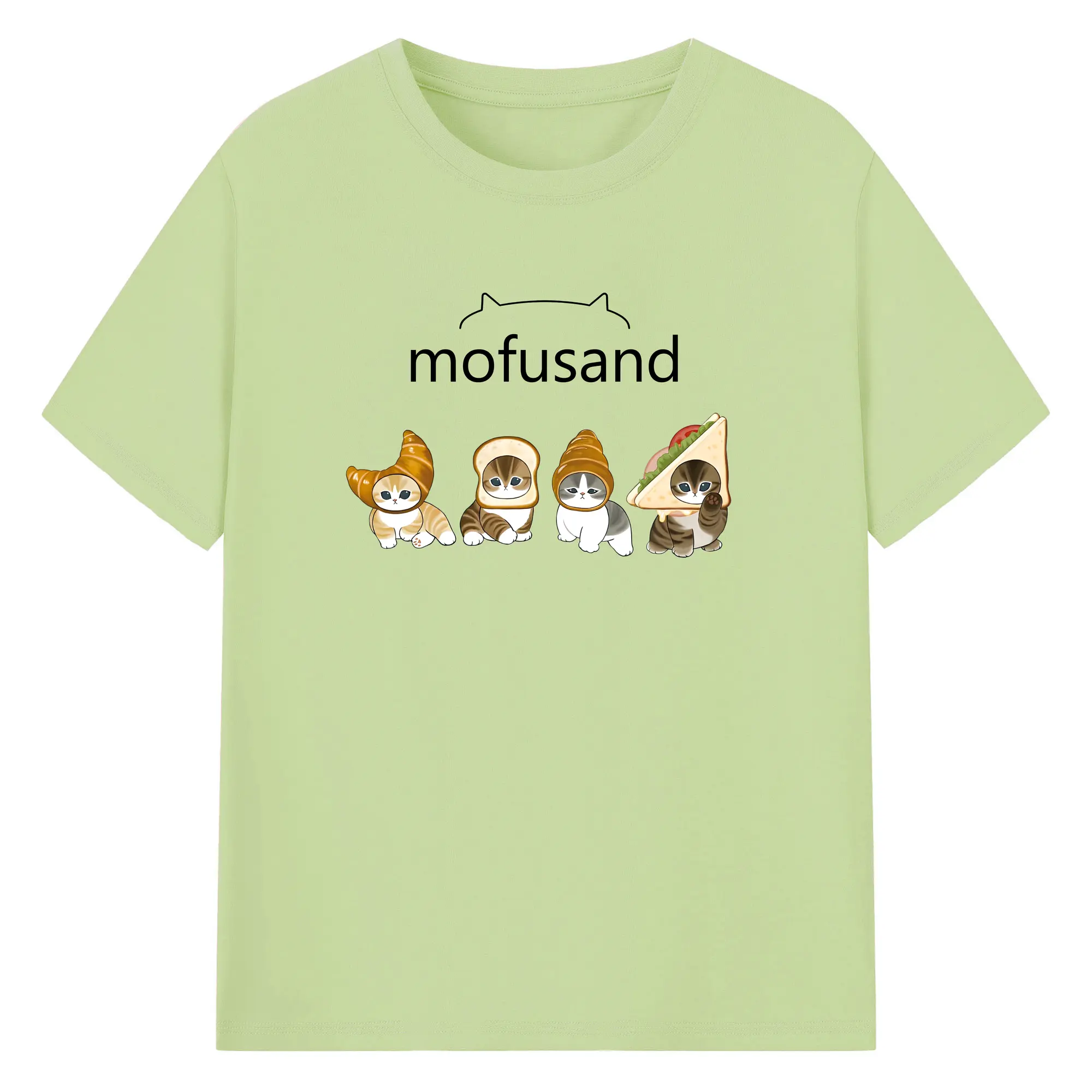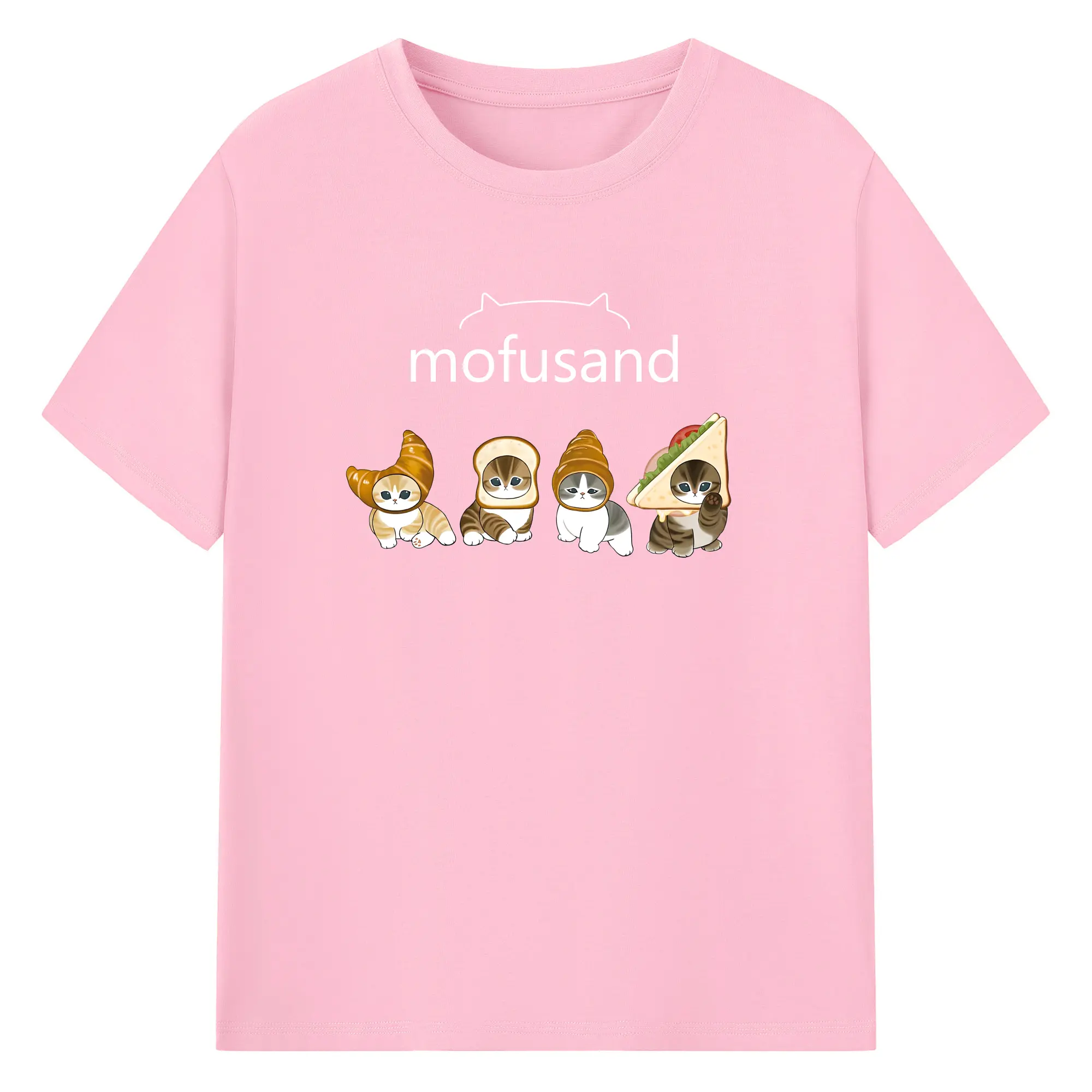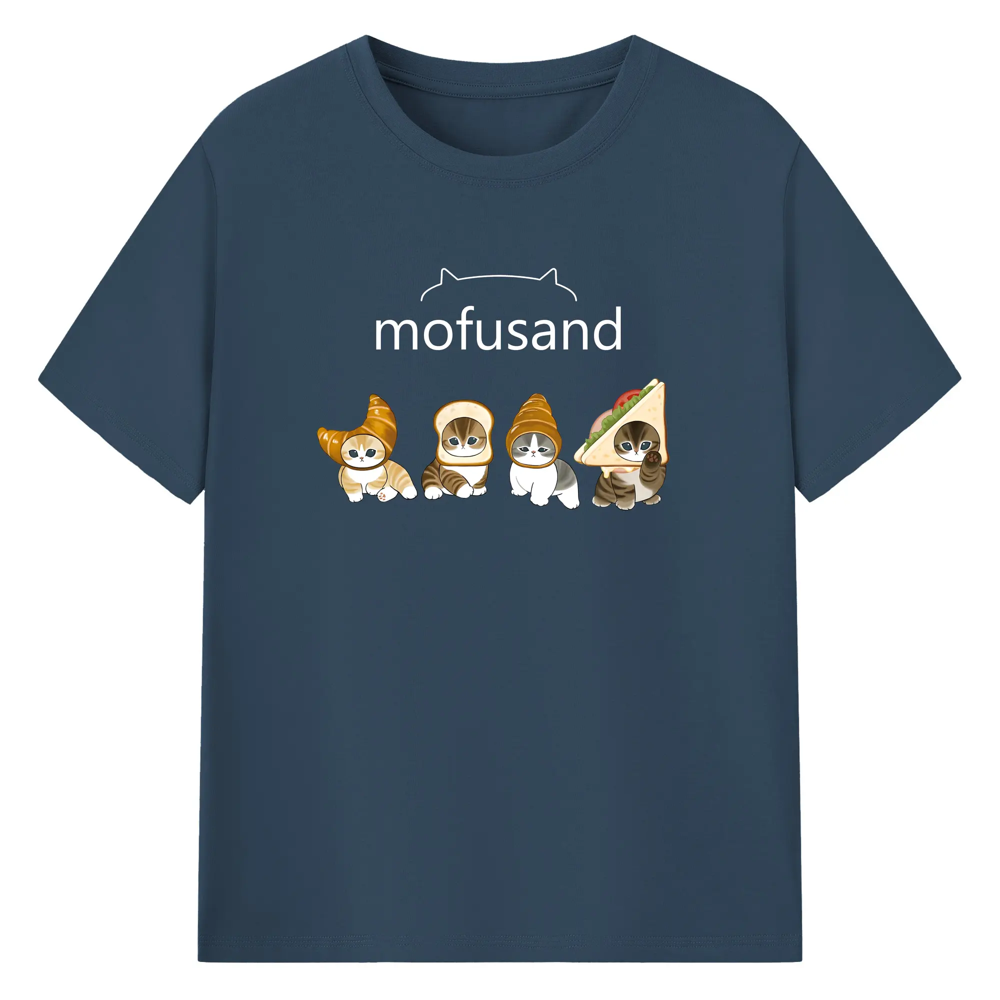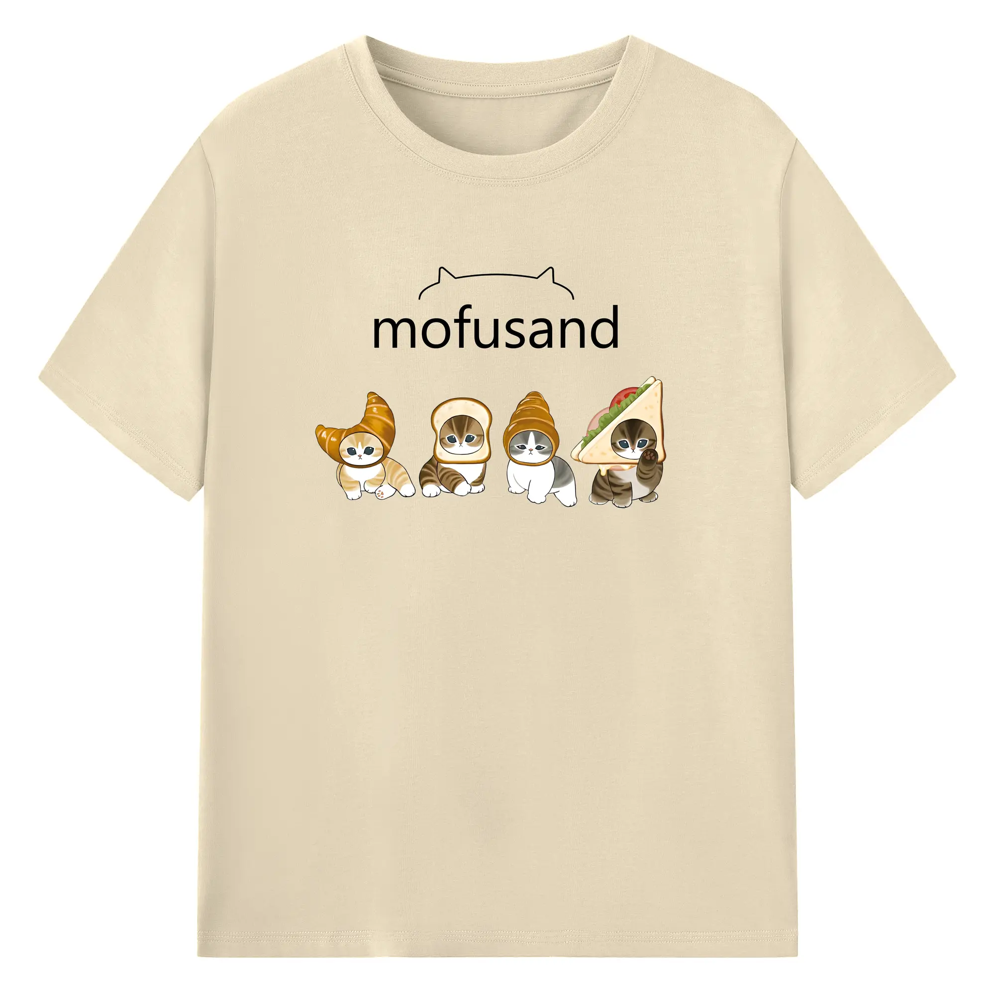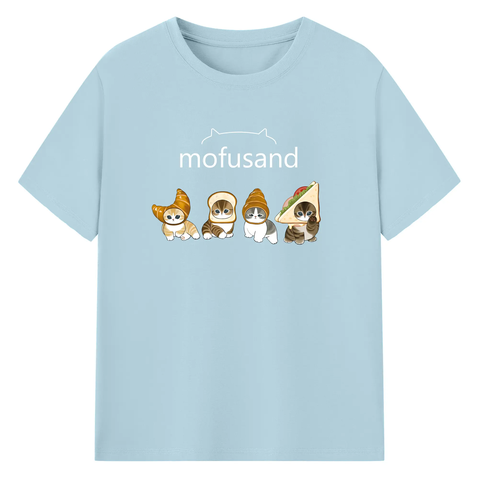 もふもふのにゃんこが美味しいパンになった - 綿100% ヴィンテージ風 半袖Tシャツ ・ フロントプリント ・ 柔らか肌触り ・ 通気性 快適 ・ スポーツ カジュアル 外出用