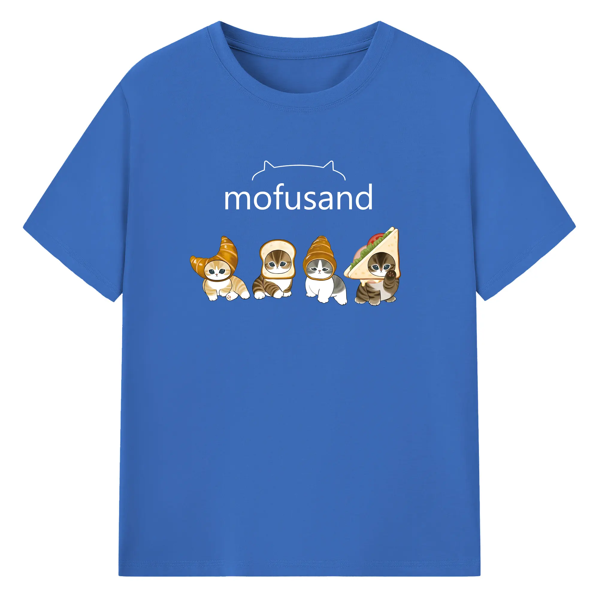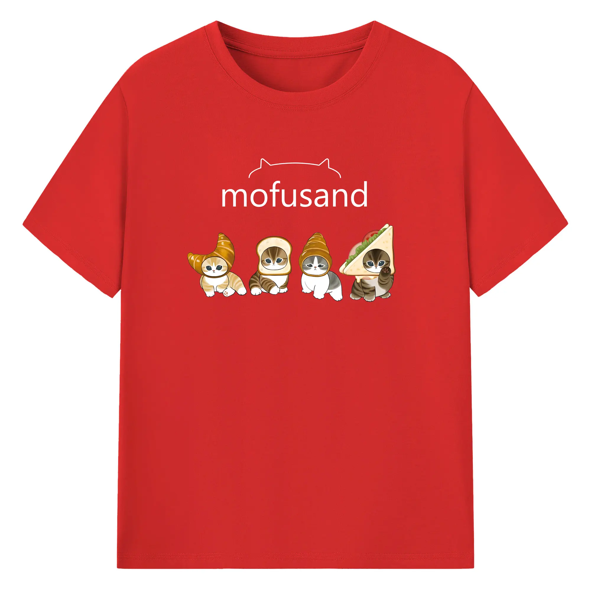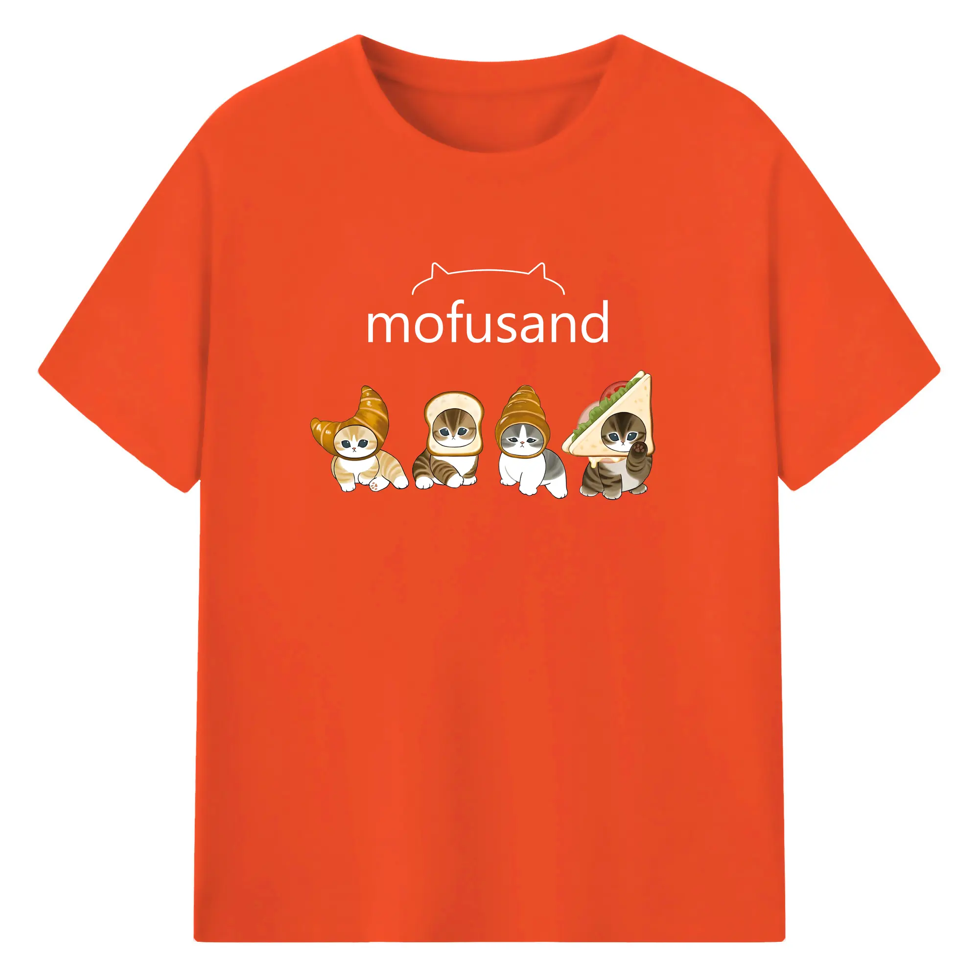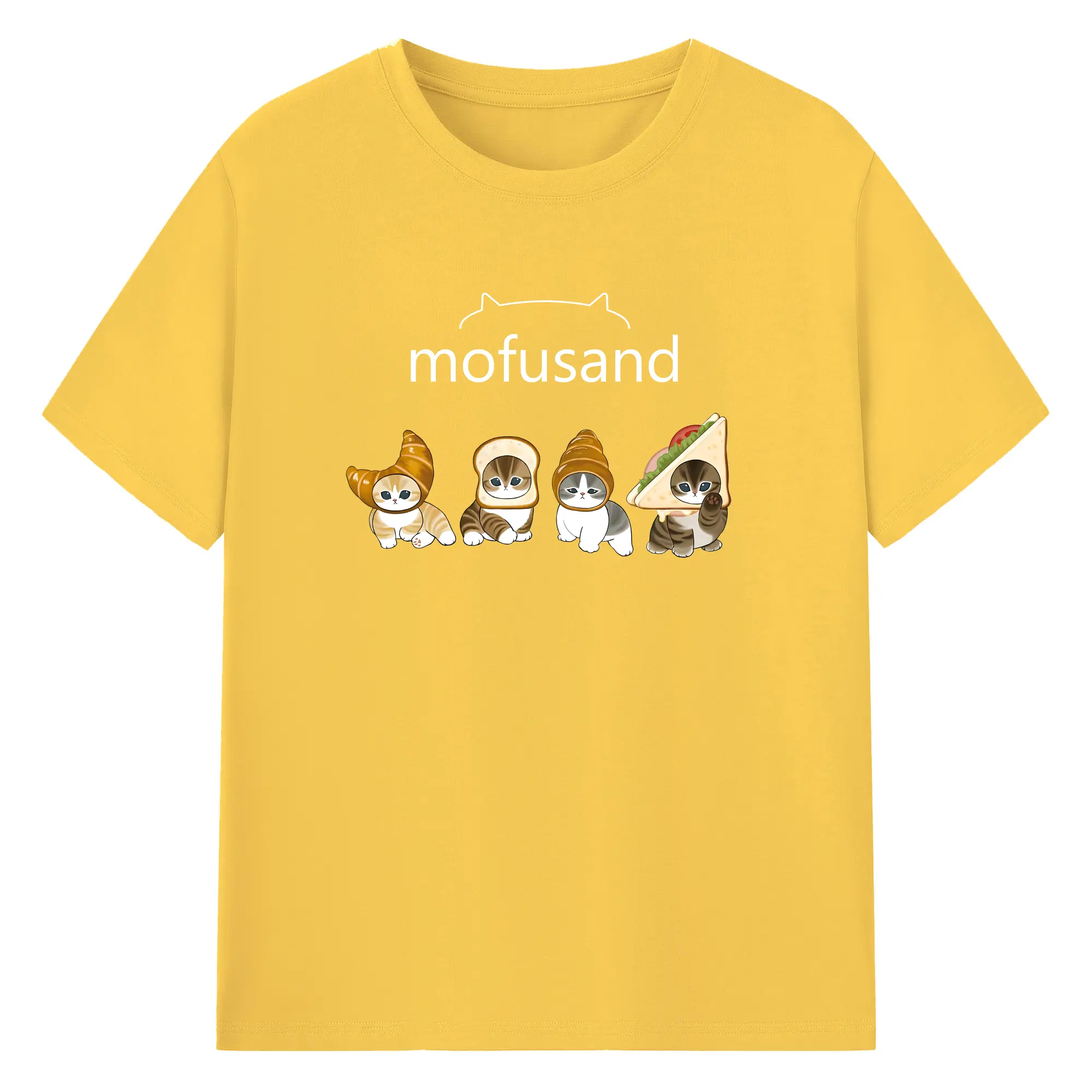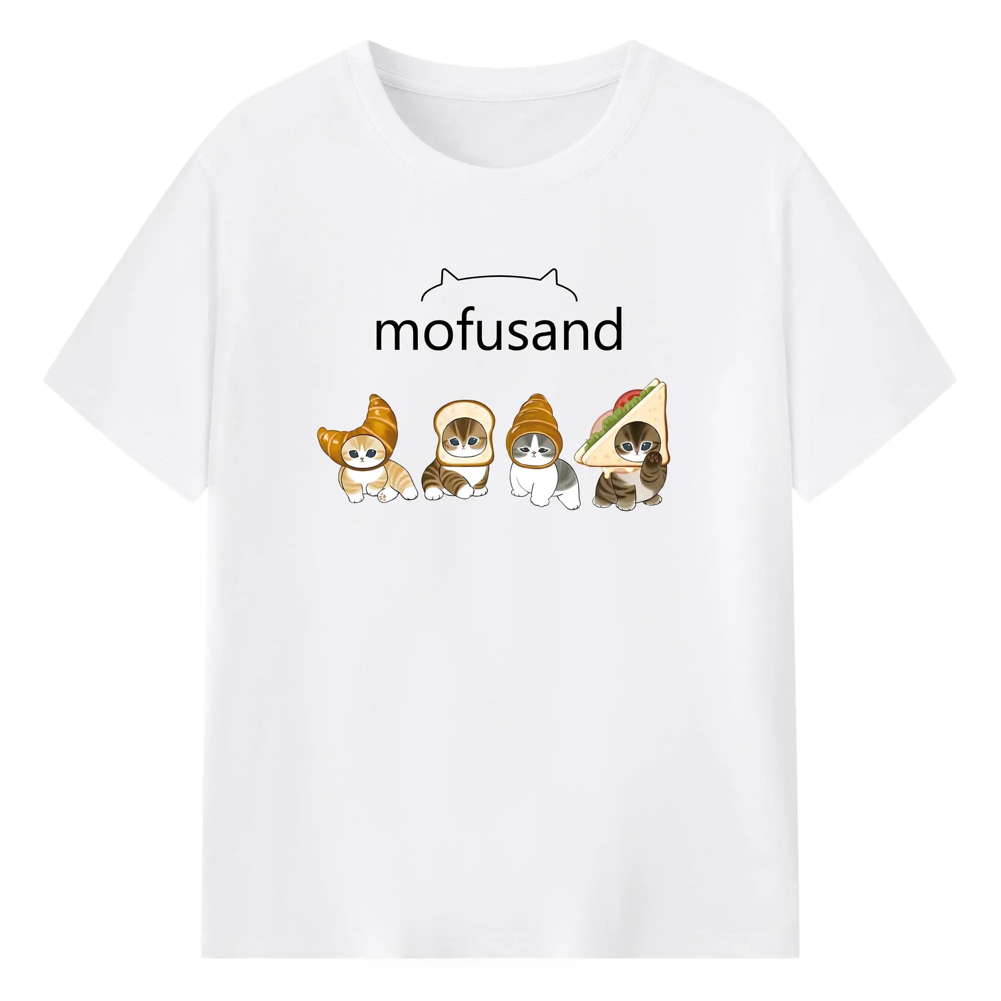 もふもふのにゃんこが美味しいパンになった - 綿100% ヴィンテージ風 半袖Tシャツ ・ フロントプリント ・ 柔らか肌触り ・ 通気性 快適 ・ スポーツ カジュアル 外出用