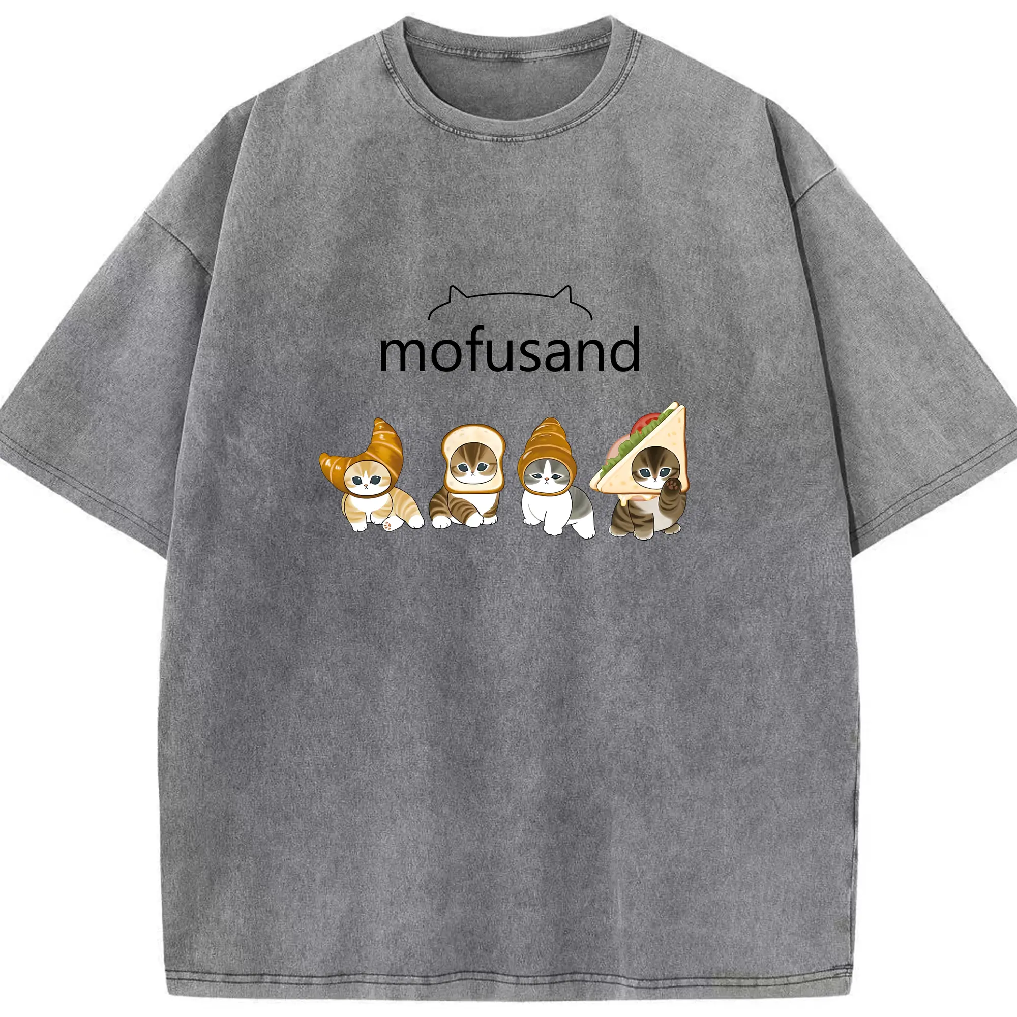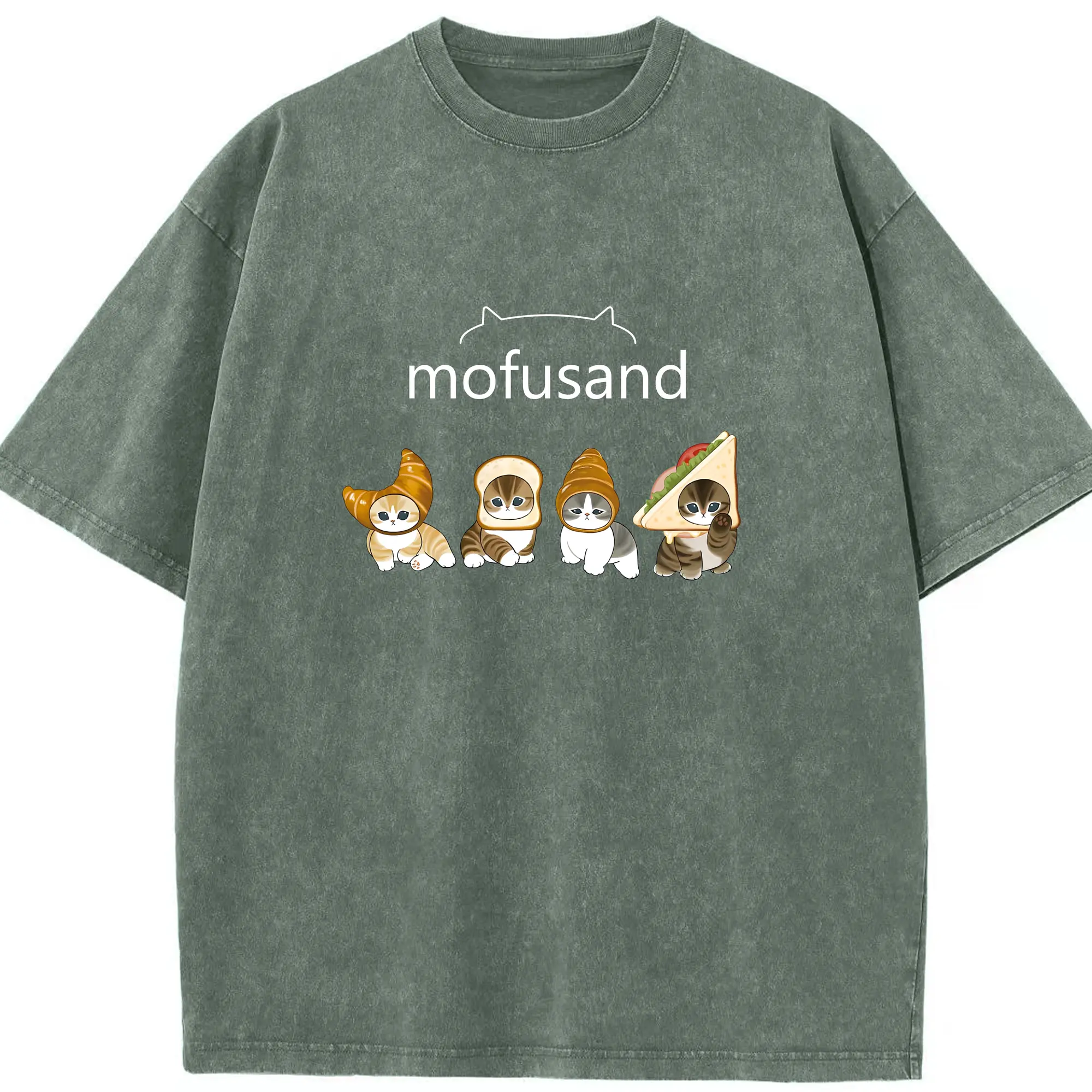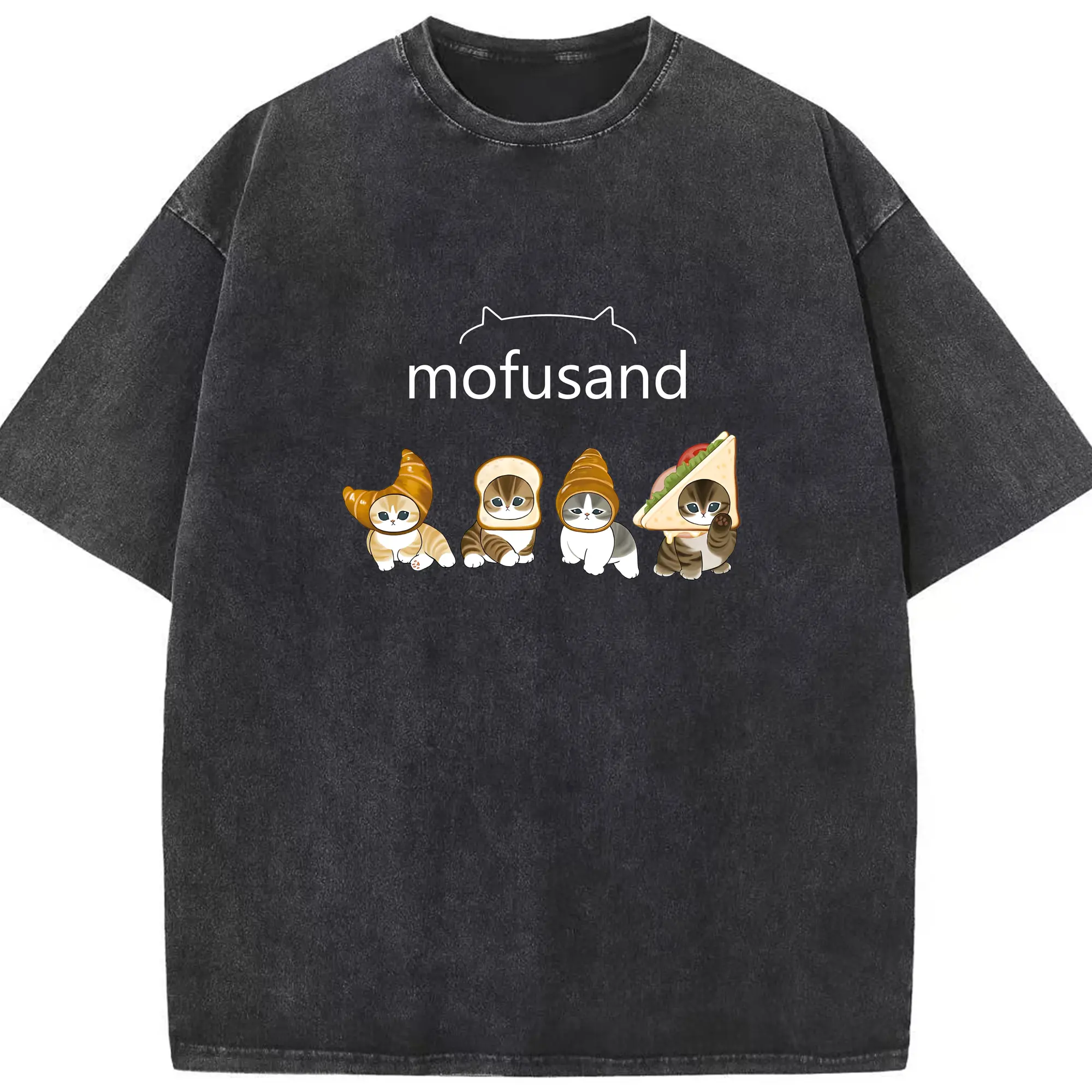もふもふのにゃんこが美味しいパンになった - 綿100% 半袖Tシャツ ・ フロントプリント ・ 快適 通気性 ・ 日常使い 散歩 スポーツ用