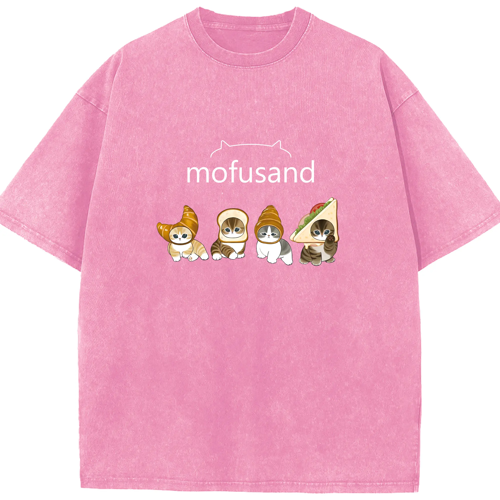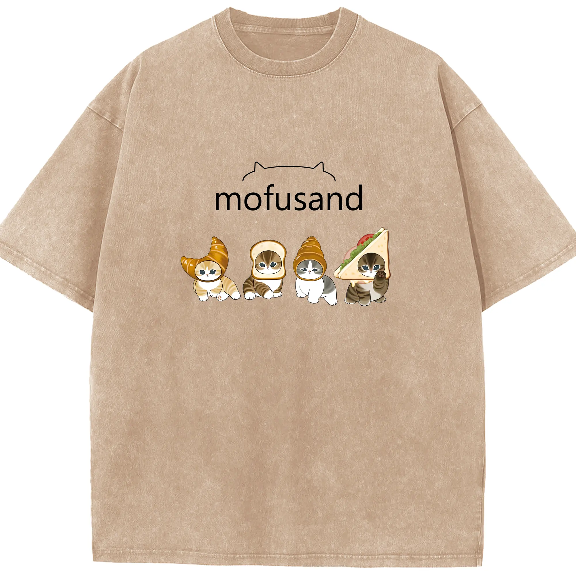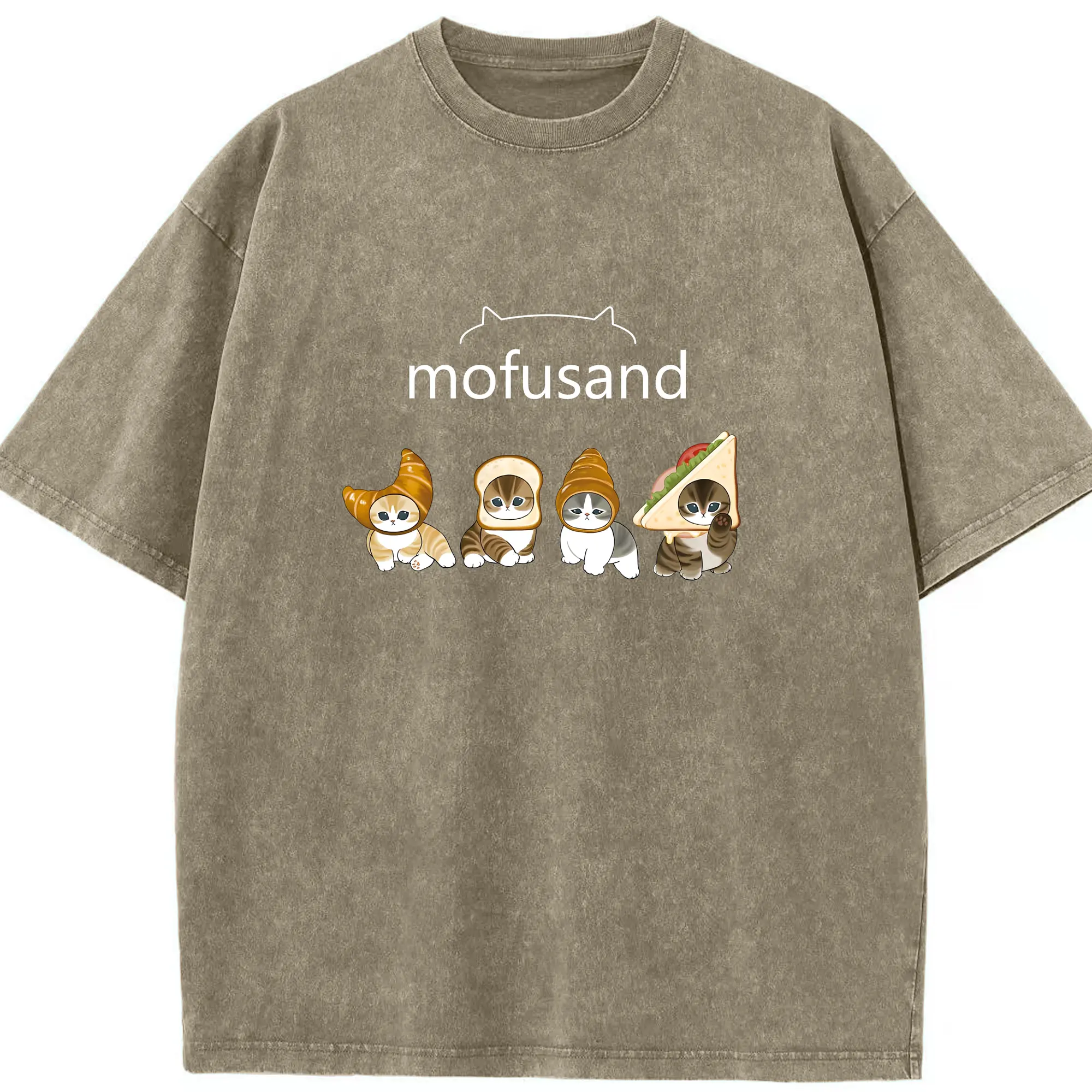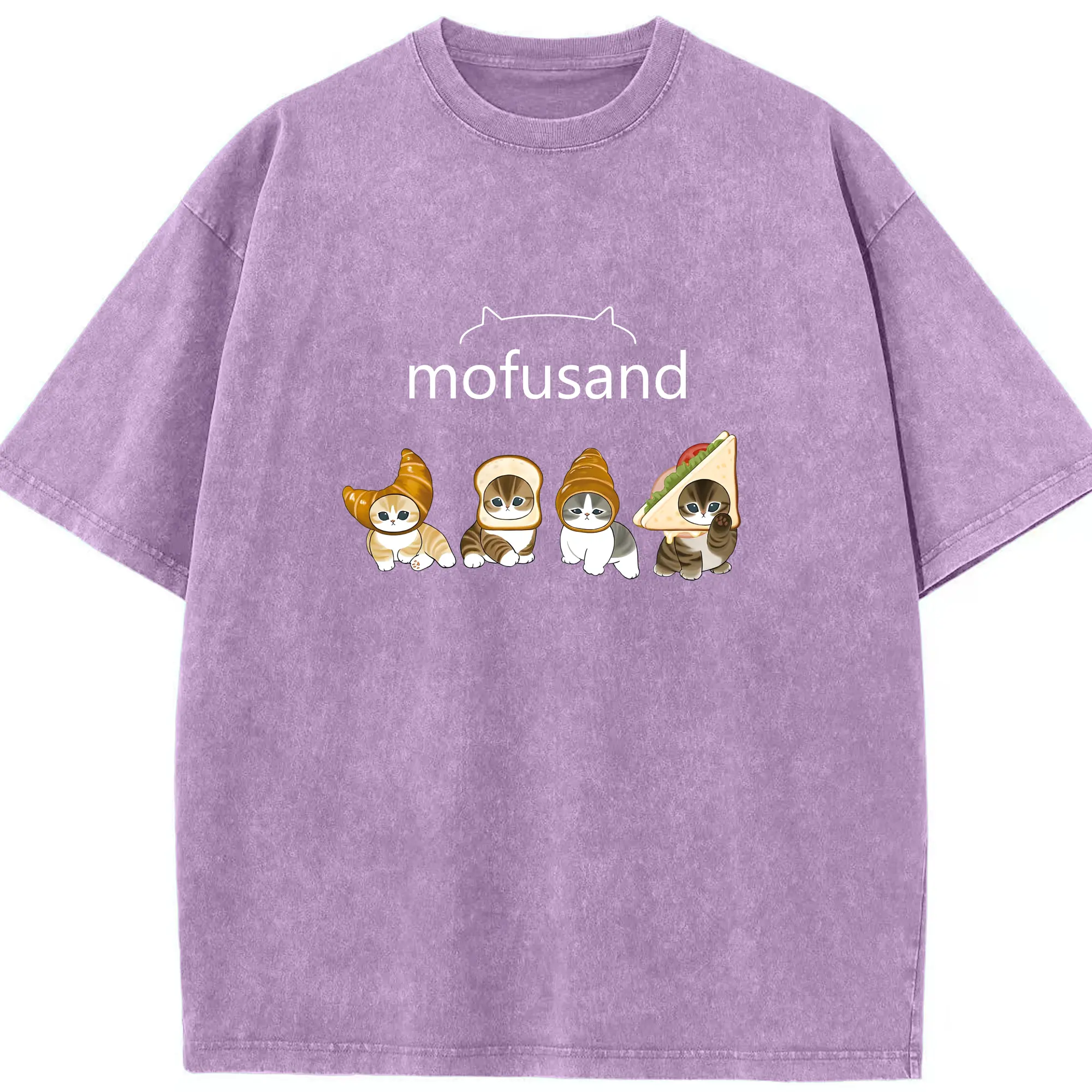 もふもふのにゃんこが美味しいパンになった - 綿100% 半袖Tシャツ ・ フロントプリント ・ 快適 通気性 ・ 日常使い 散歩 スポーツ用