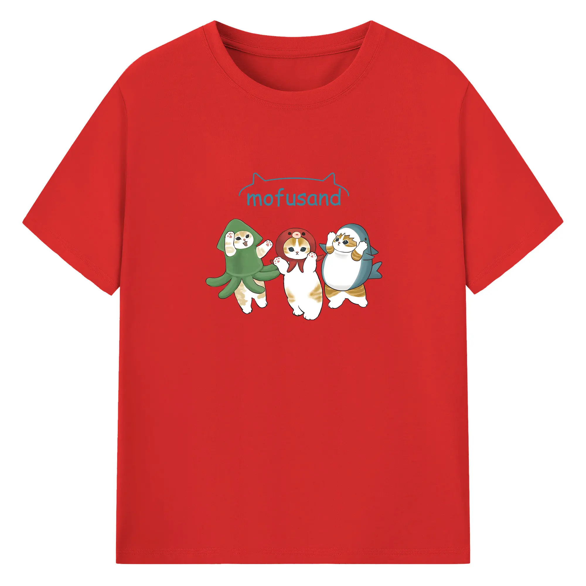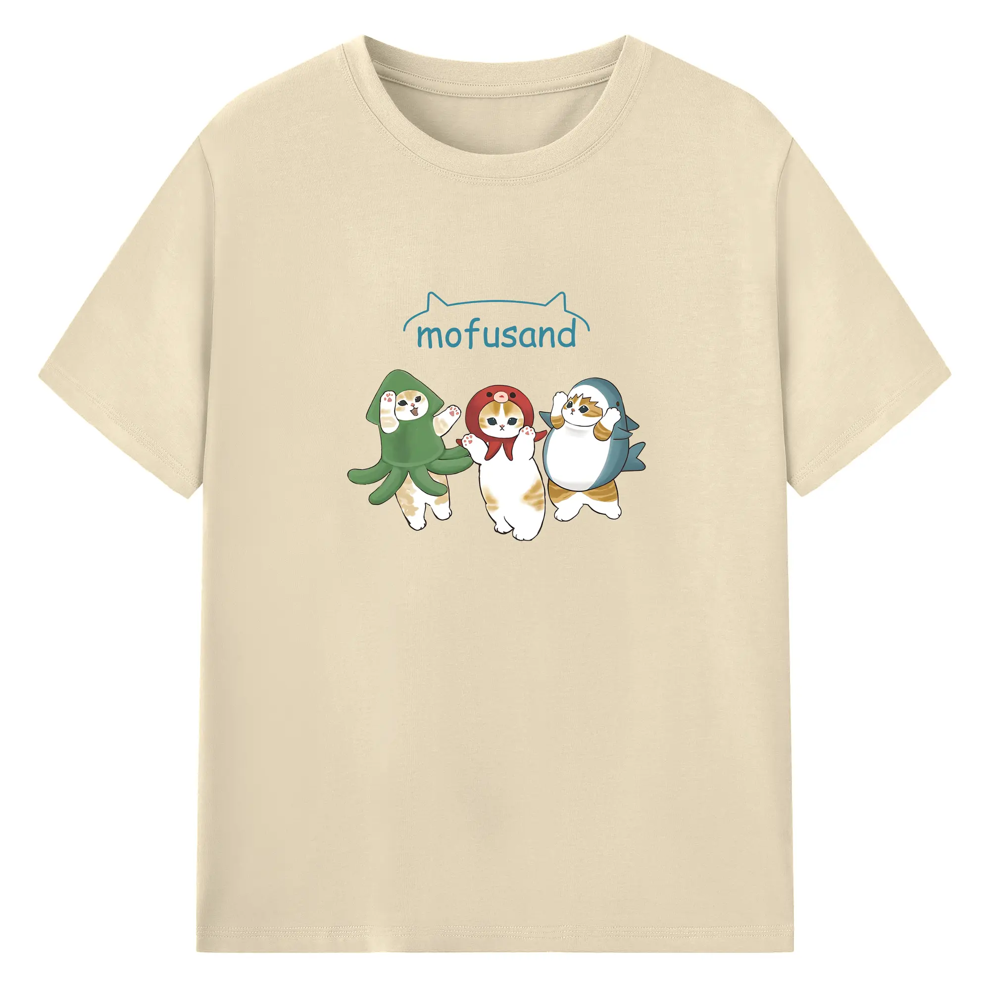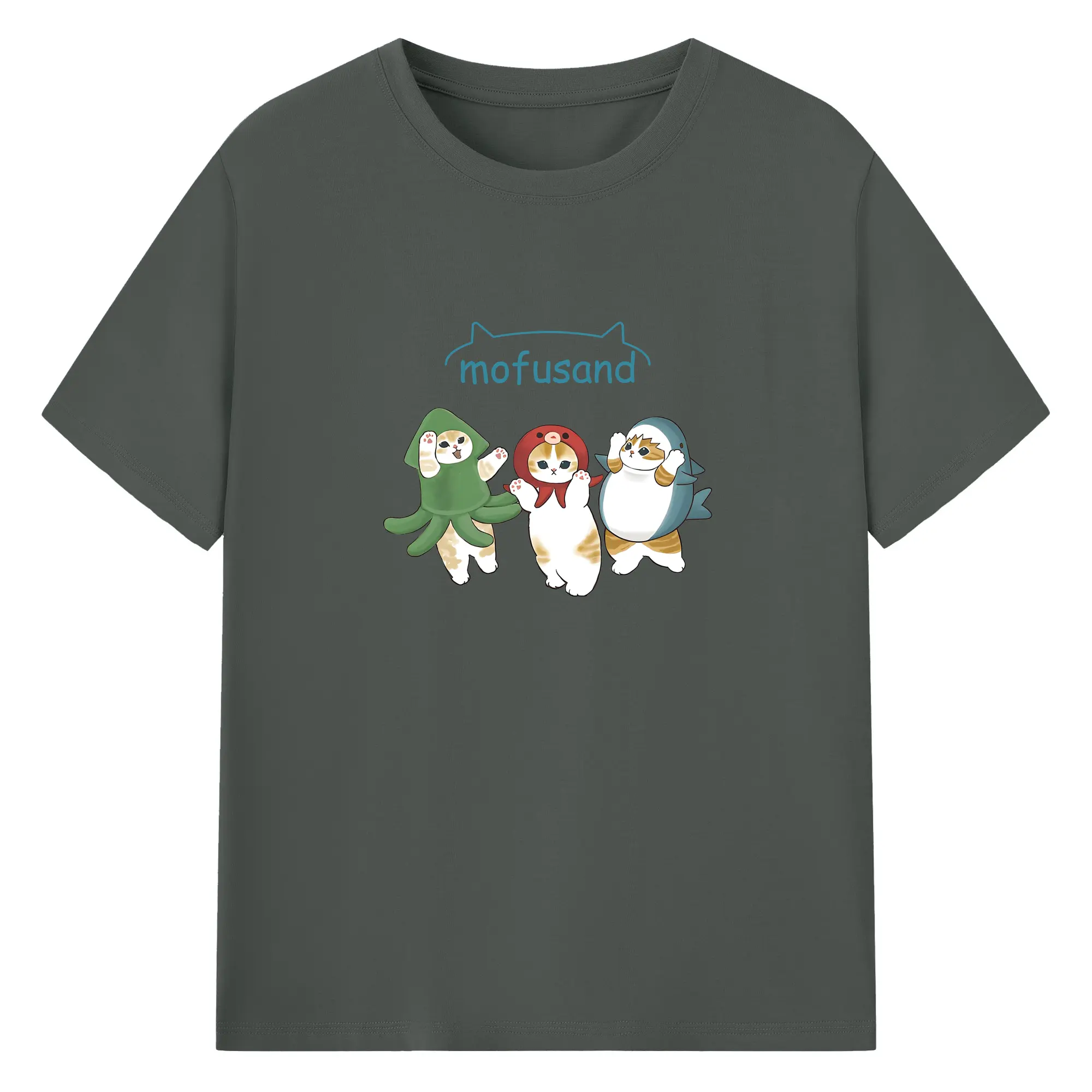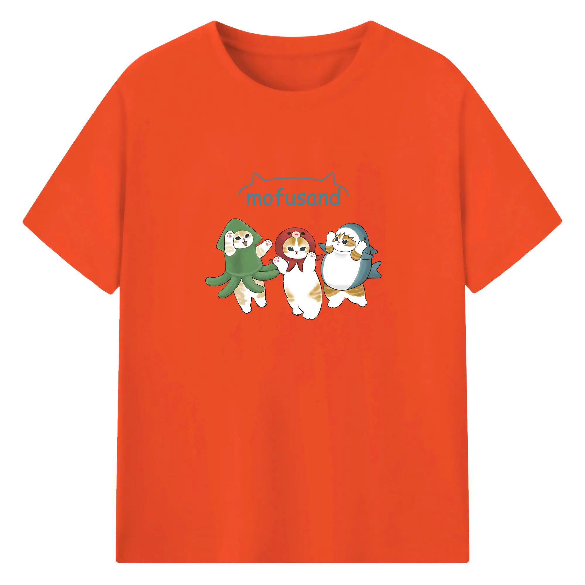 もふもふのにやんこ動物モチーフの着ぐるみ - 綿100% ヴィンテージ風 半袖Tシャツ ・ フロントプリント ・ 柔らか肌触り ・ 通気性 快適 ・ スポーツ カジュアル 外出用