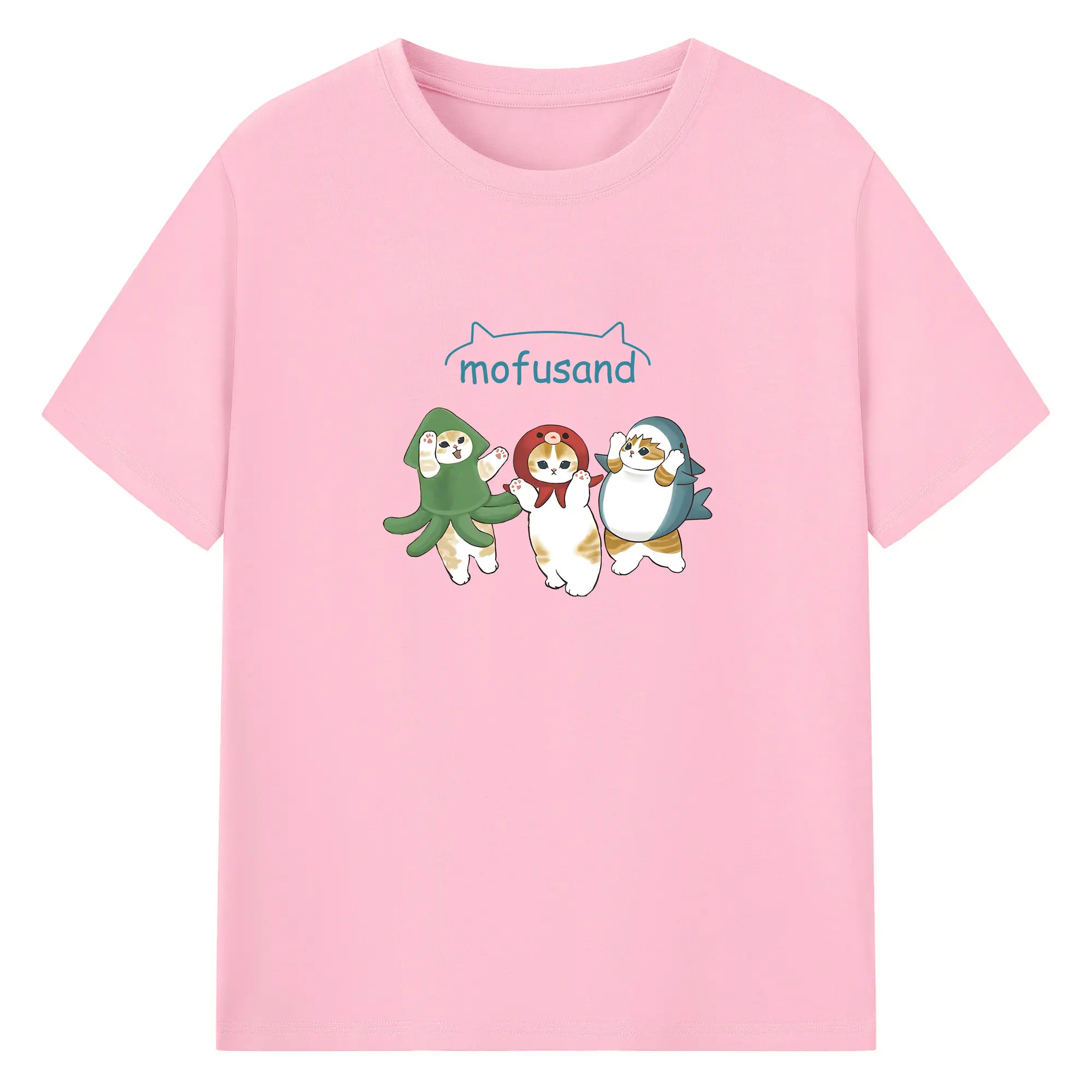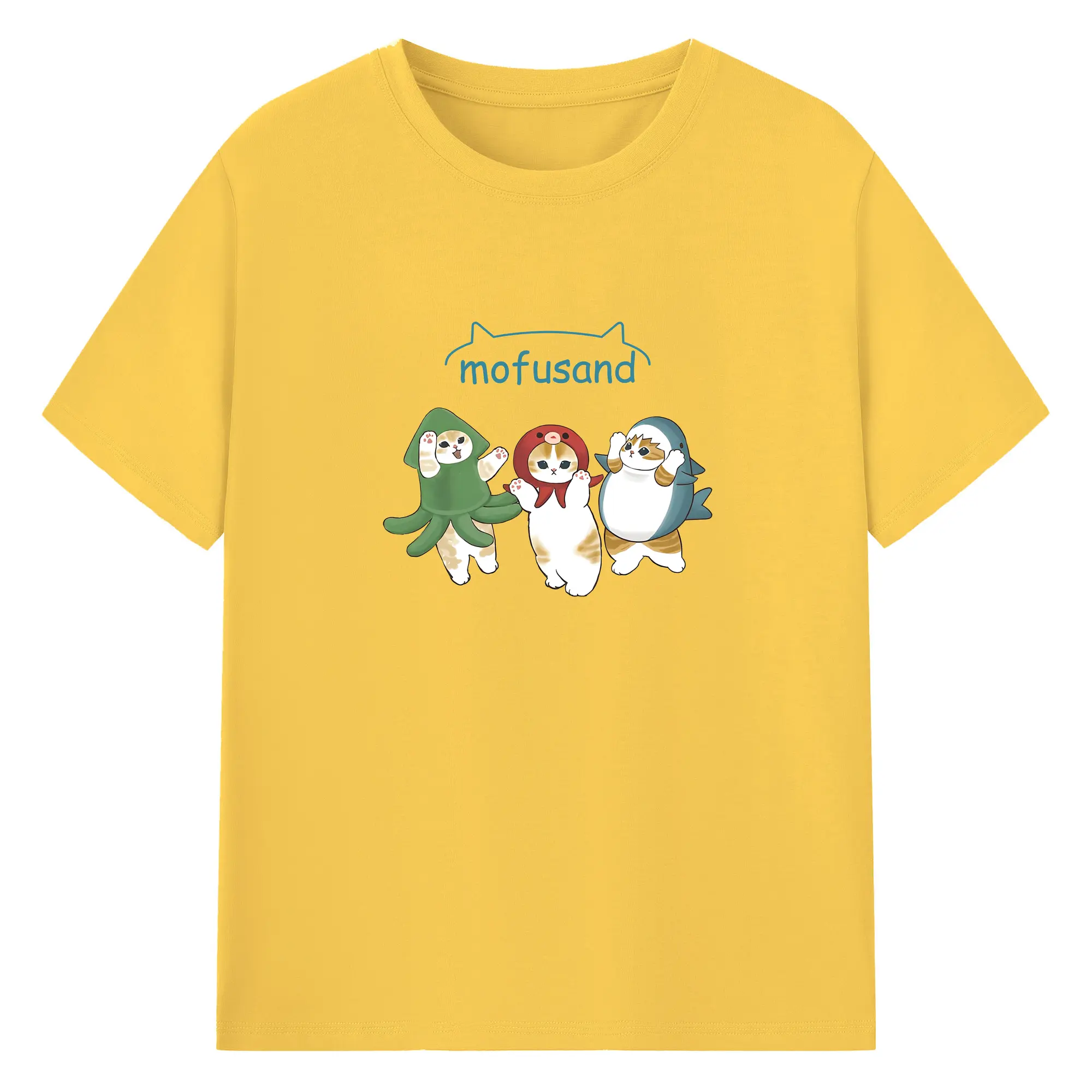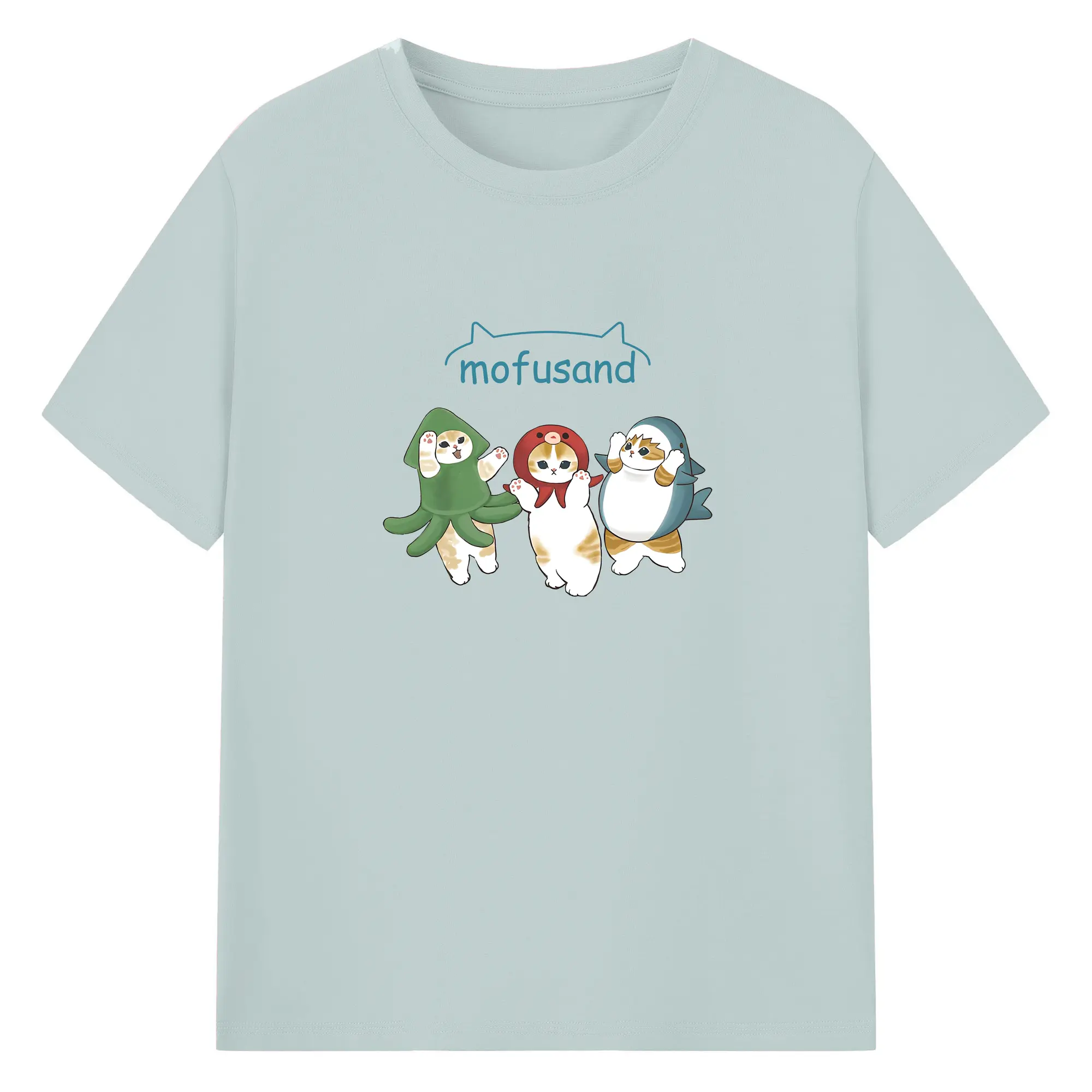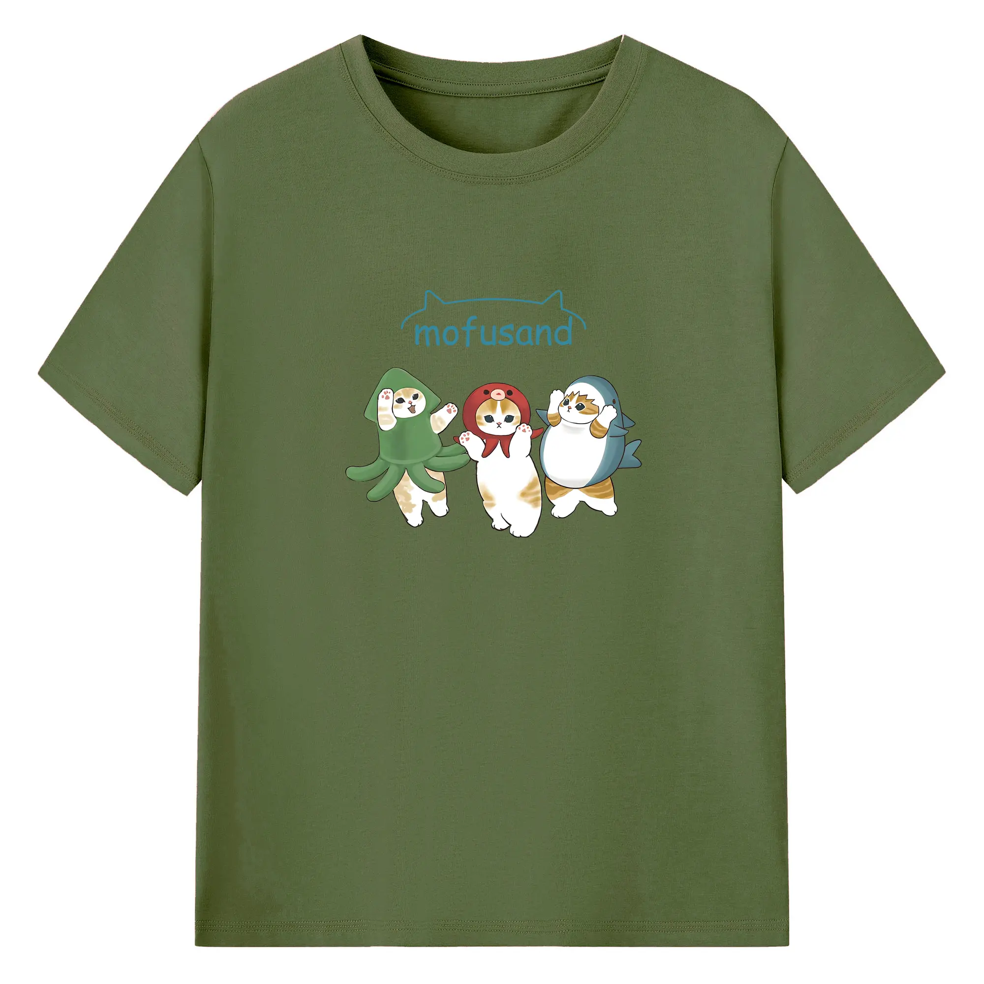 もふもふのにやんこ動物モチーフの着ぐるみ - 綿100% ヴィンテージ風 半袖Tシャツ ・ フロントプリント ・ 柔らか肌触り ・ 通気性 快適 ・ スポーツ カジュアル 外出用