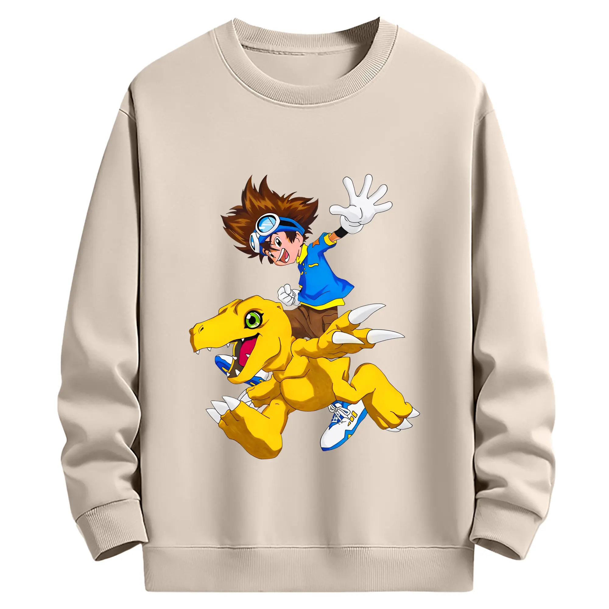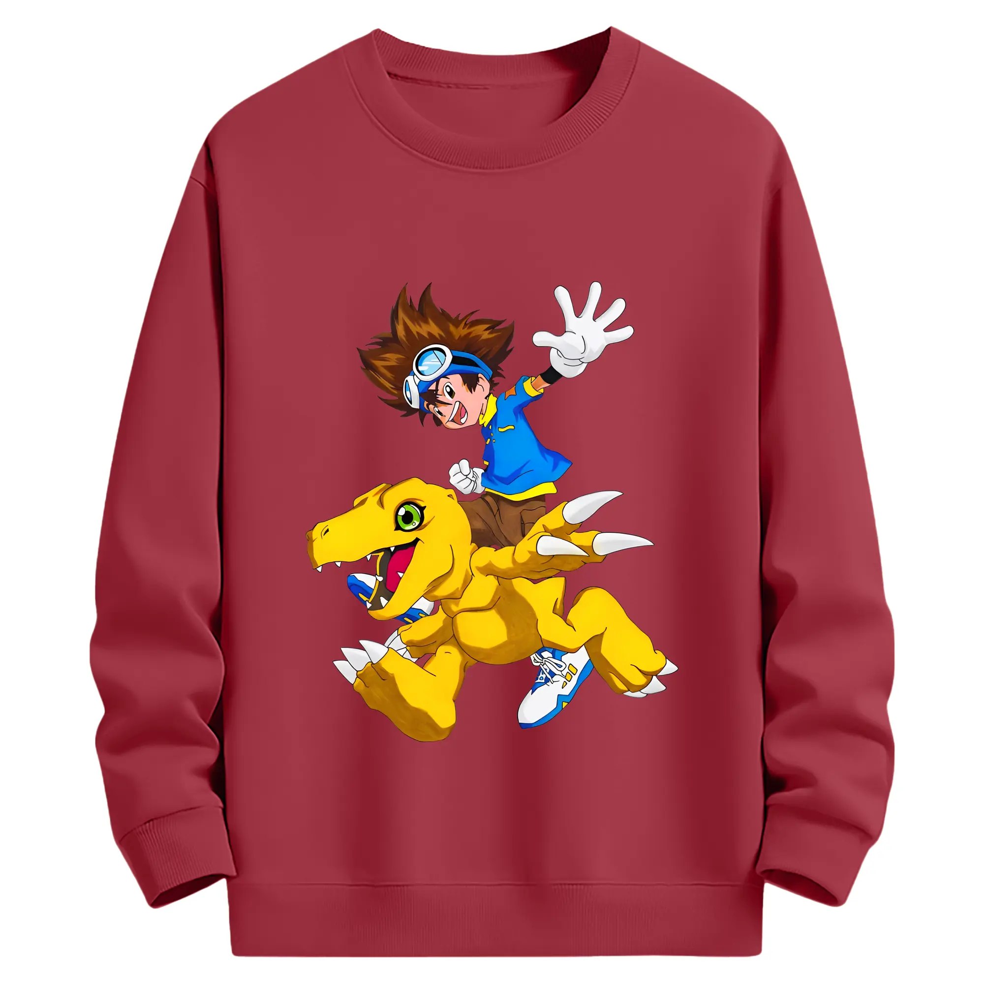 アグモン八神 太一限定 - 綿100% ヴィンテージ風 半袖Tシャツ ・ フロントプリント ・ 柔らか肌触り ・ 通気性 快適 ・ スポーツ カジュアル 外出用