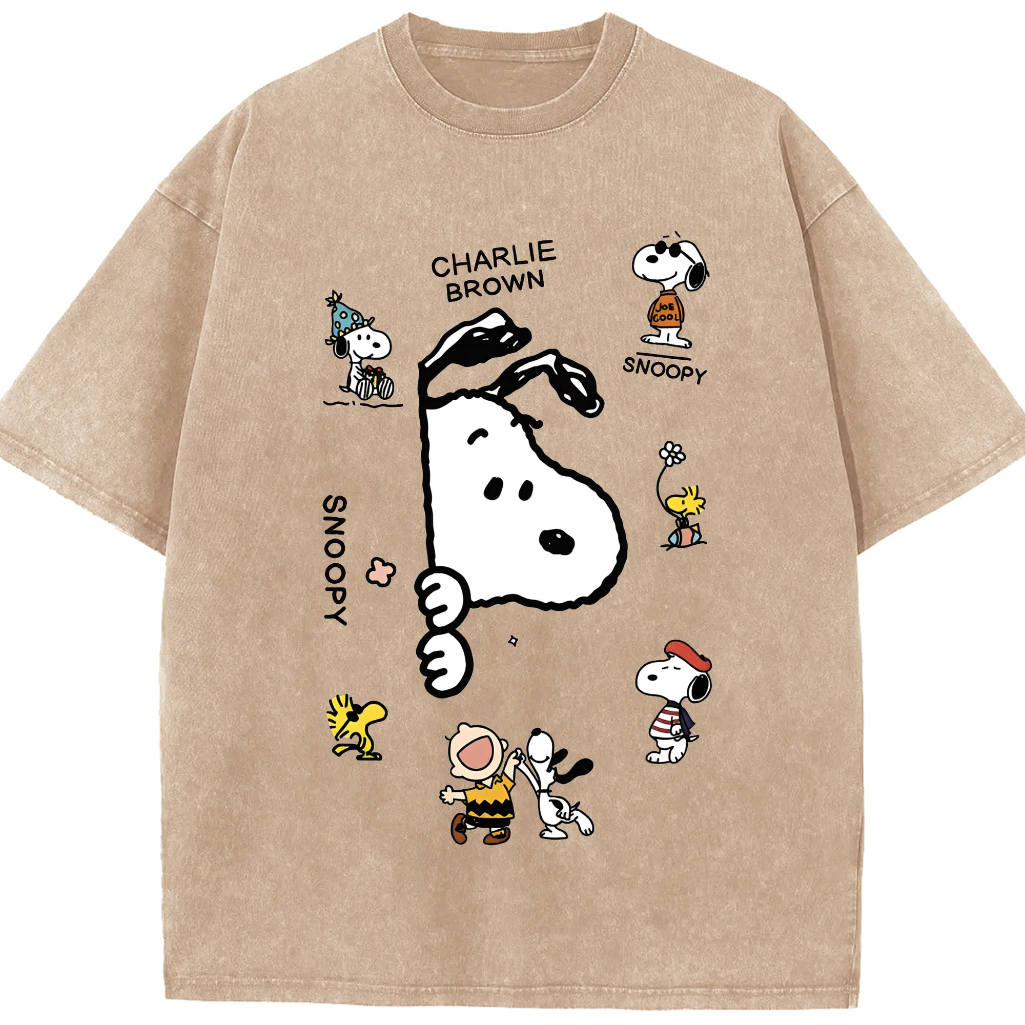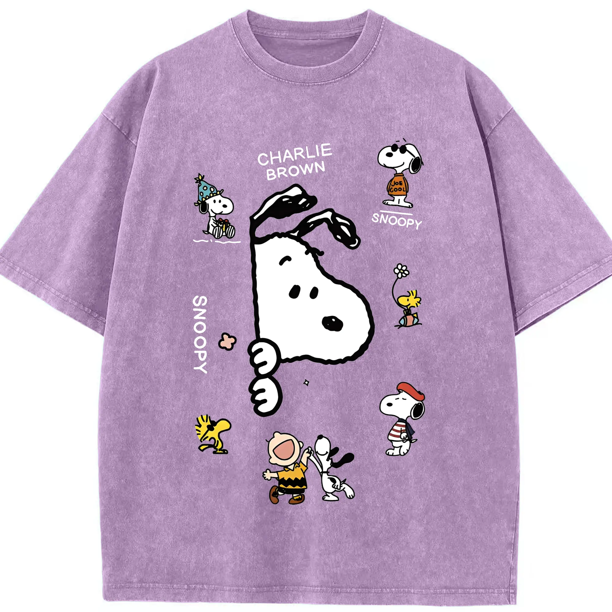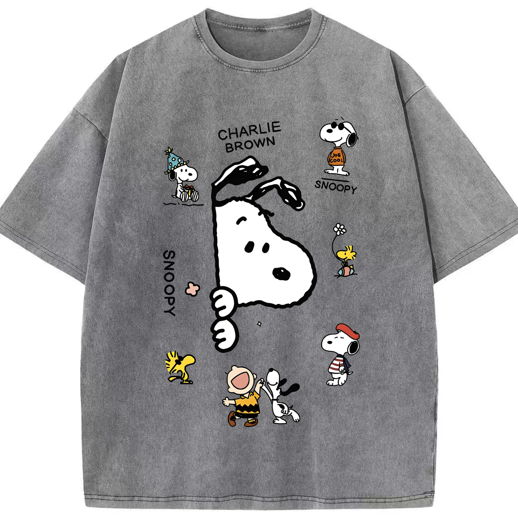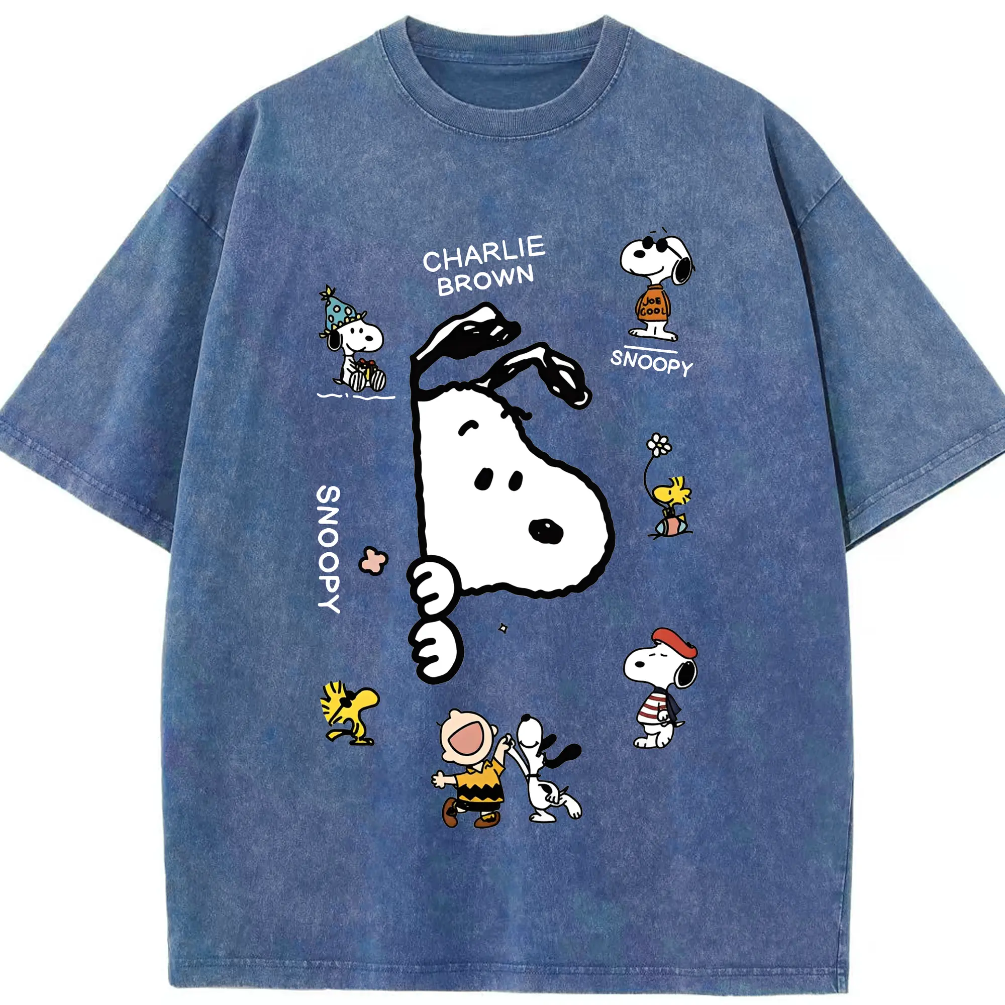 ウッドストックとスヌーピー パーティー限定 - 綿100% ヴィンテージ風 半袖Tシャツ ・ フロントプリント ・ 柔らか肌触り ・ 通気性 快適 ・ スポーツ カジュアル 外出用