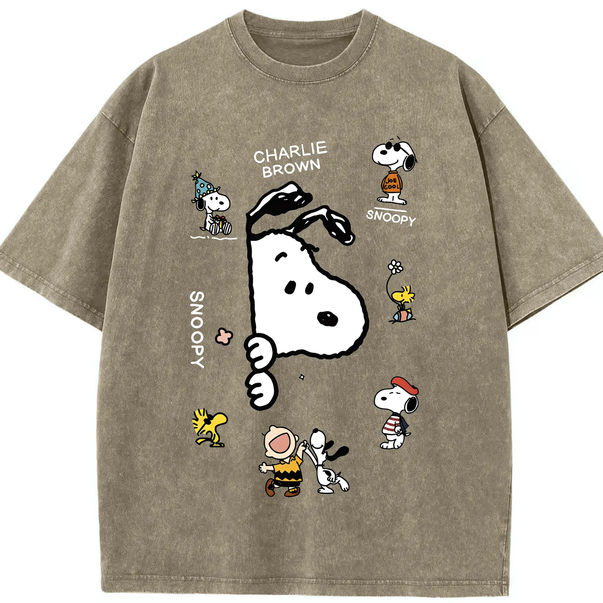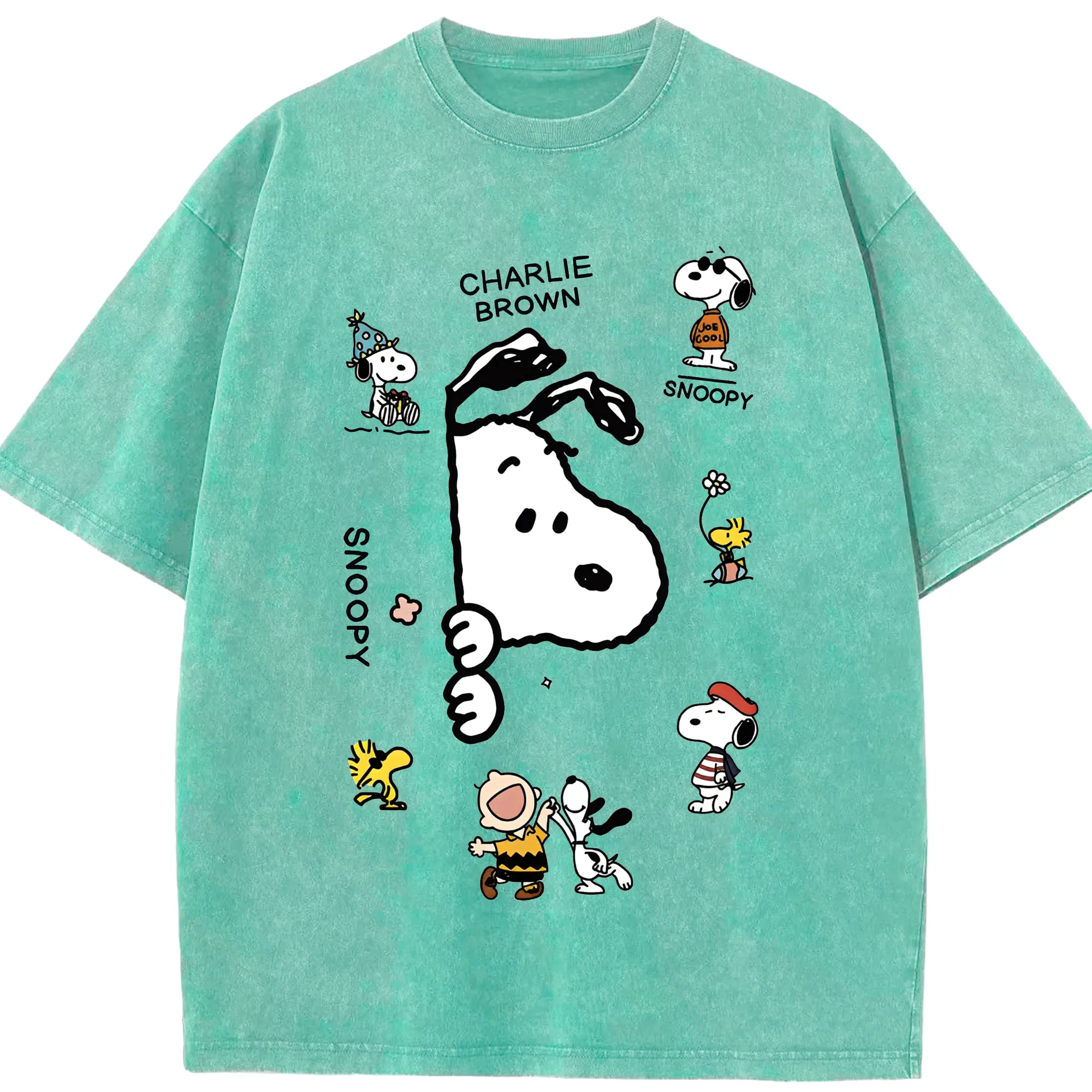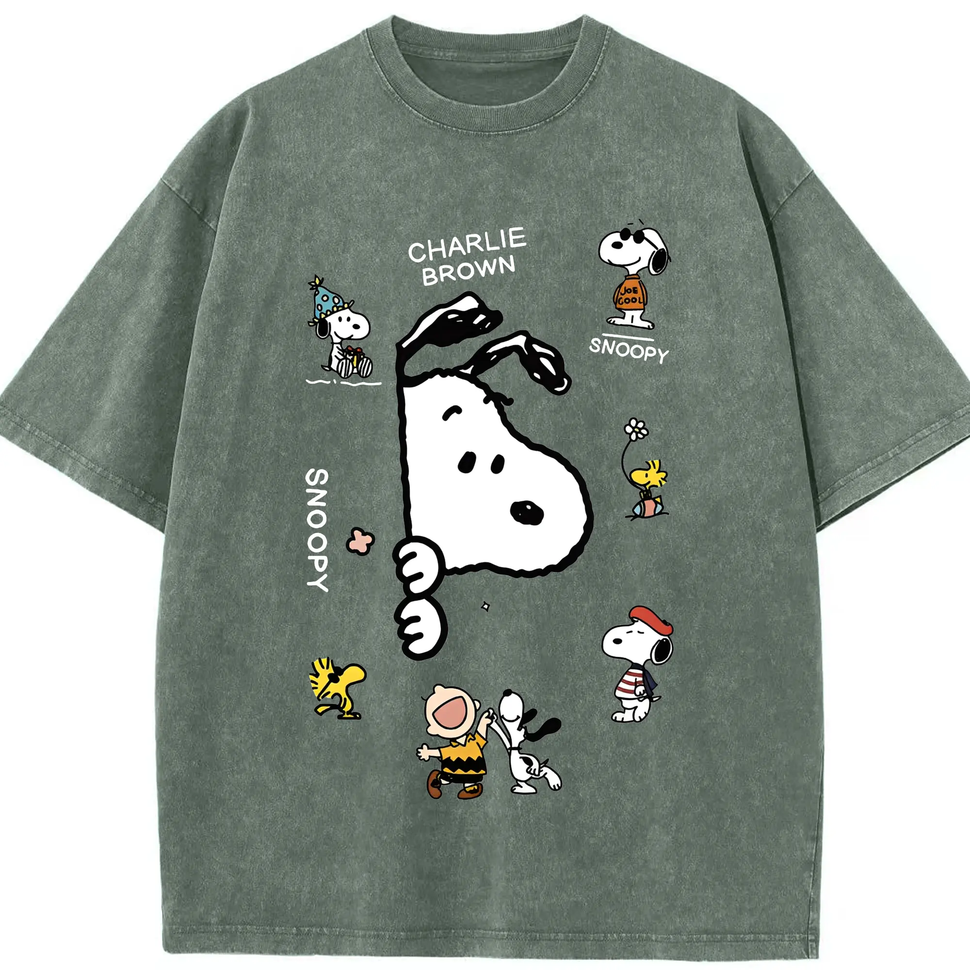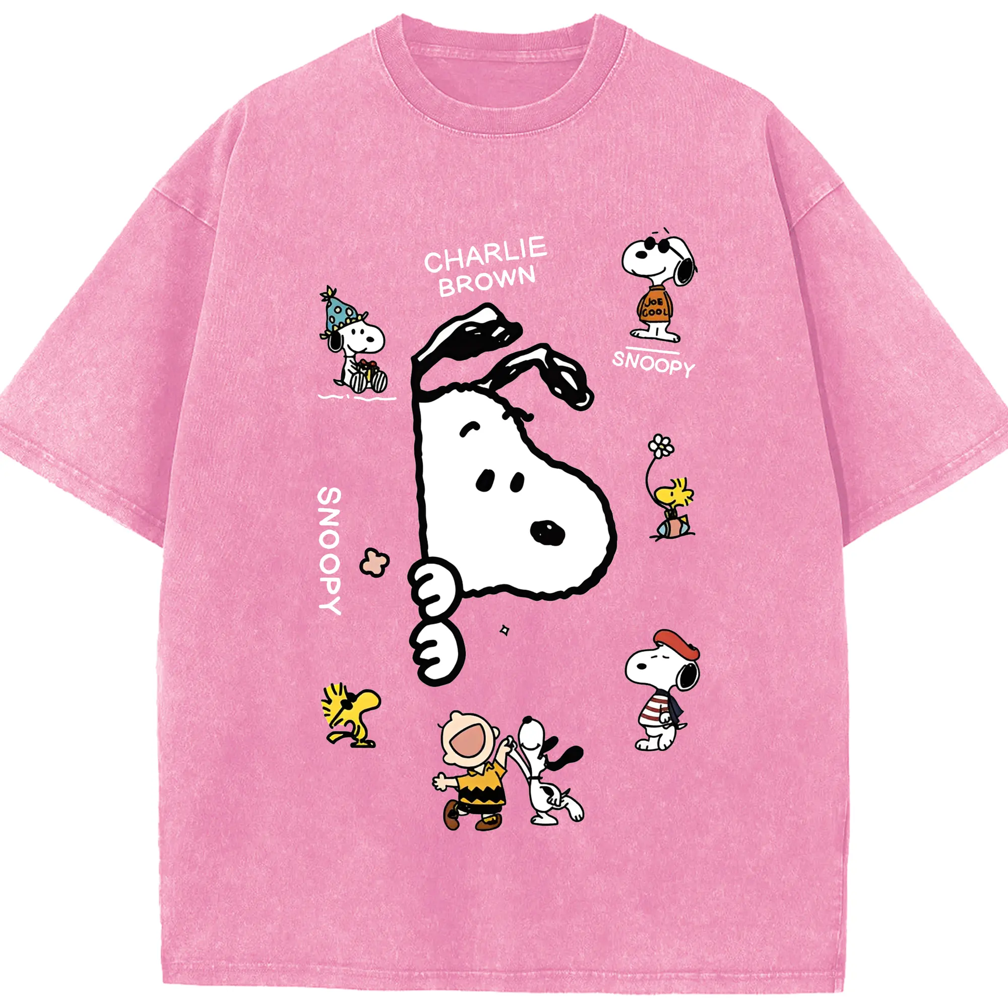 ウッドストックとスヌーピー パーティー限定 - 綿100% ヴィンテージ風 半袖Tシャツ ・ フロントプリント ・ 柔らか肌触り ・ 通気性 快適 ・ スポーツ カジュアル 外出用