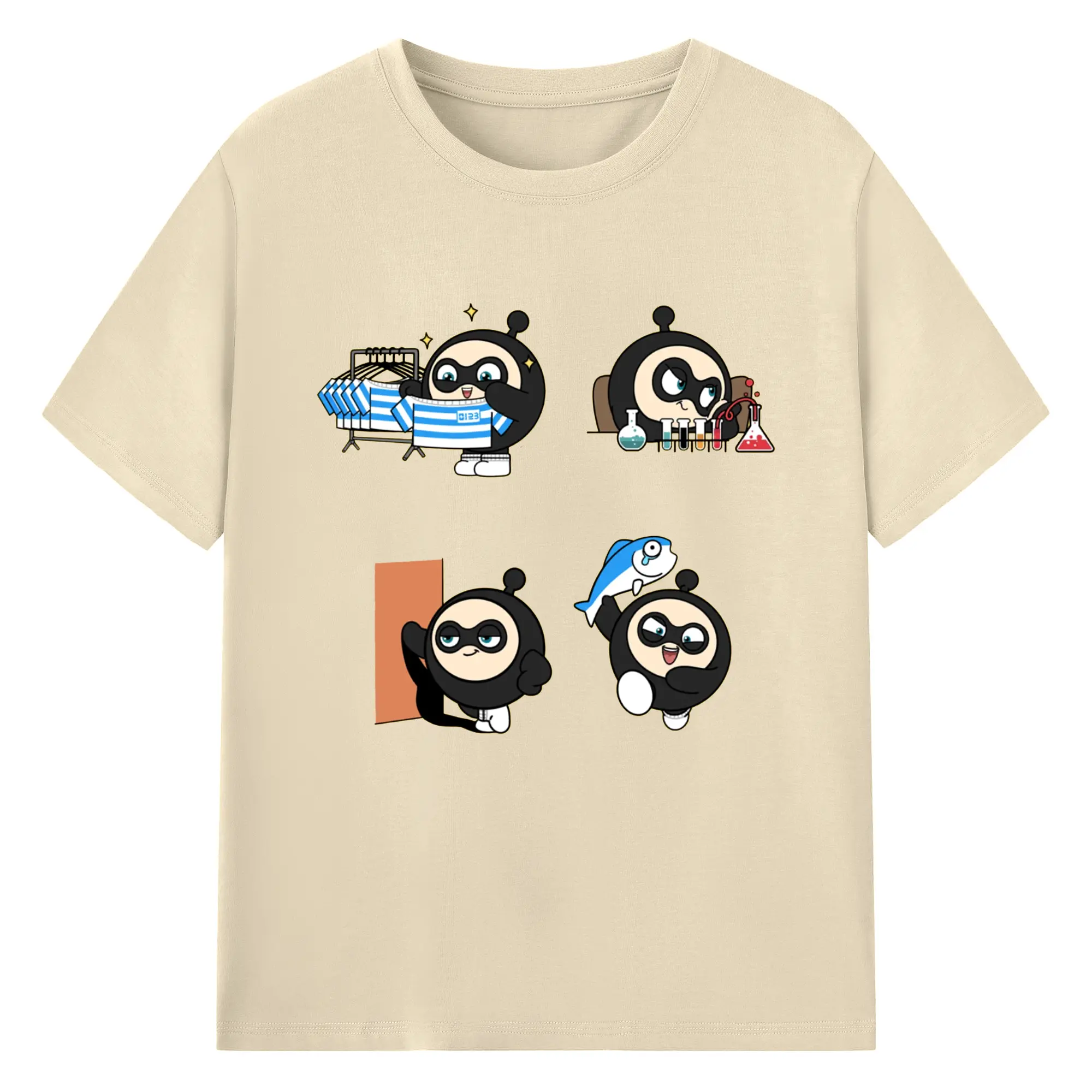 2025新作mofusand&クロミ - 綿100% 半袖Tシャツ ・ フロントプリント ・ 快適 通気性 ・ 日常使い 散歩 スポーツ用