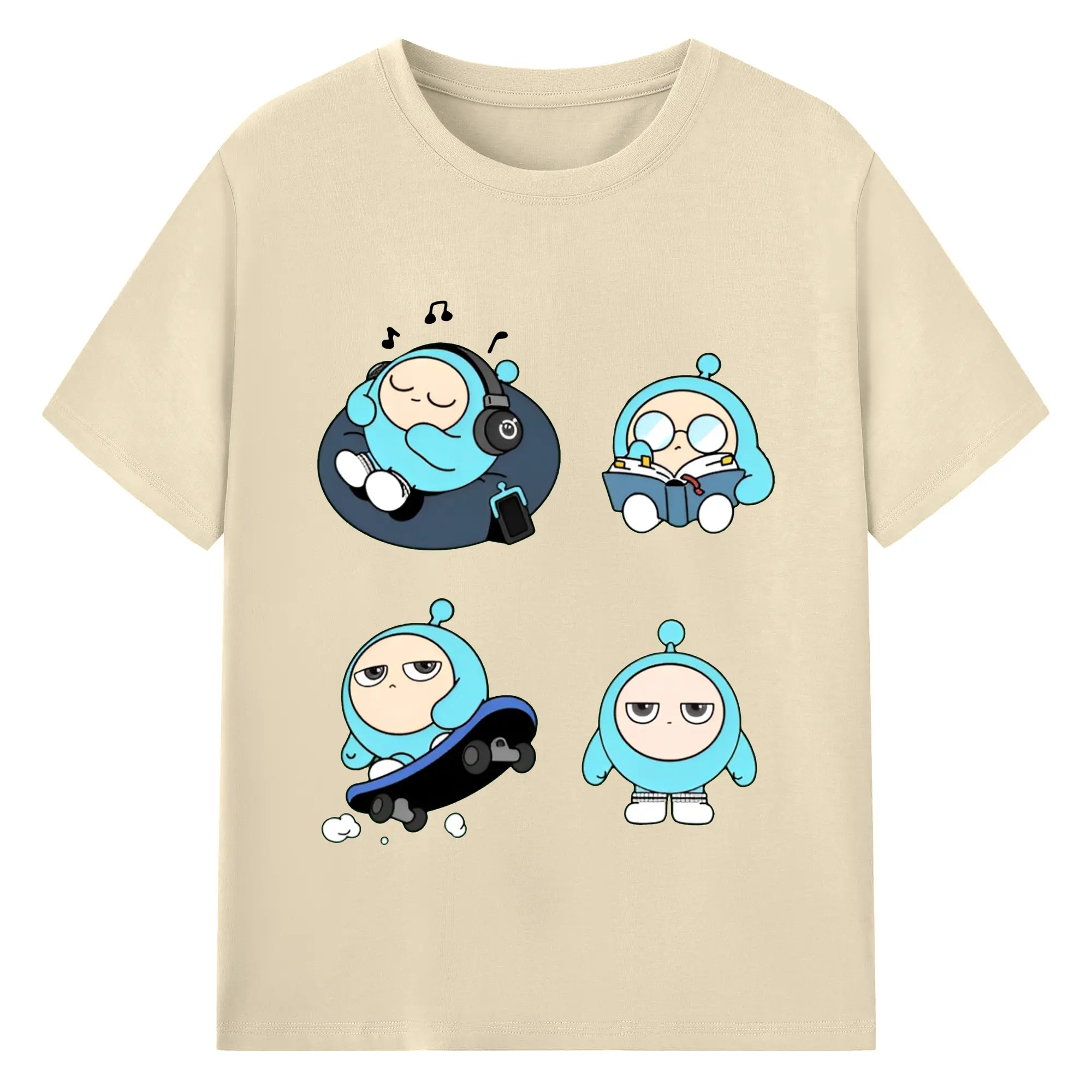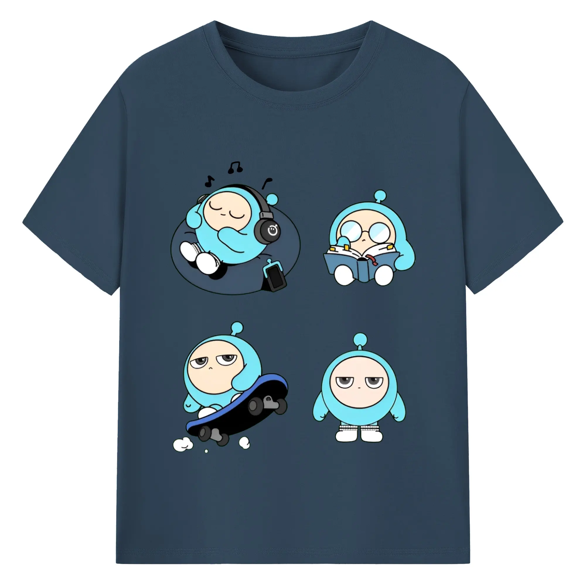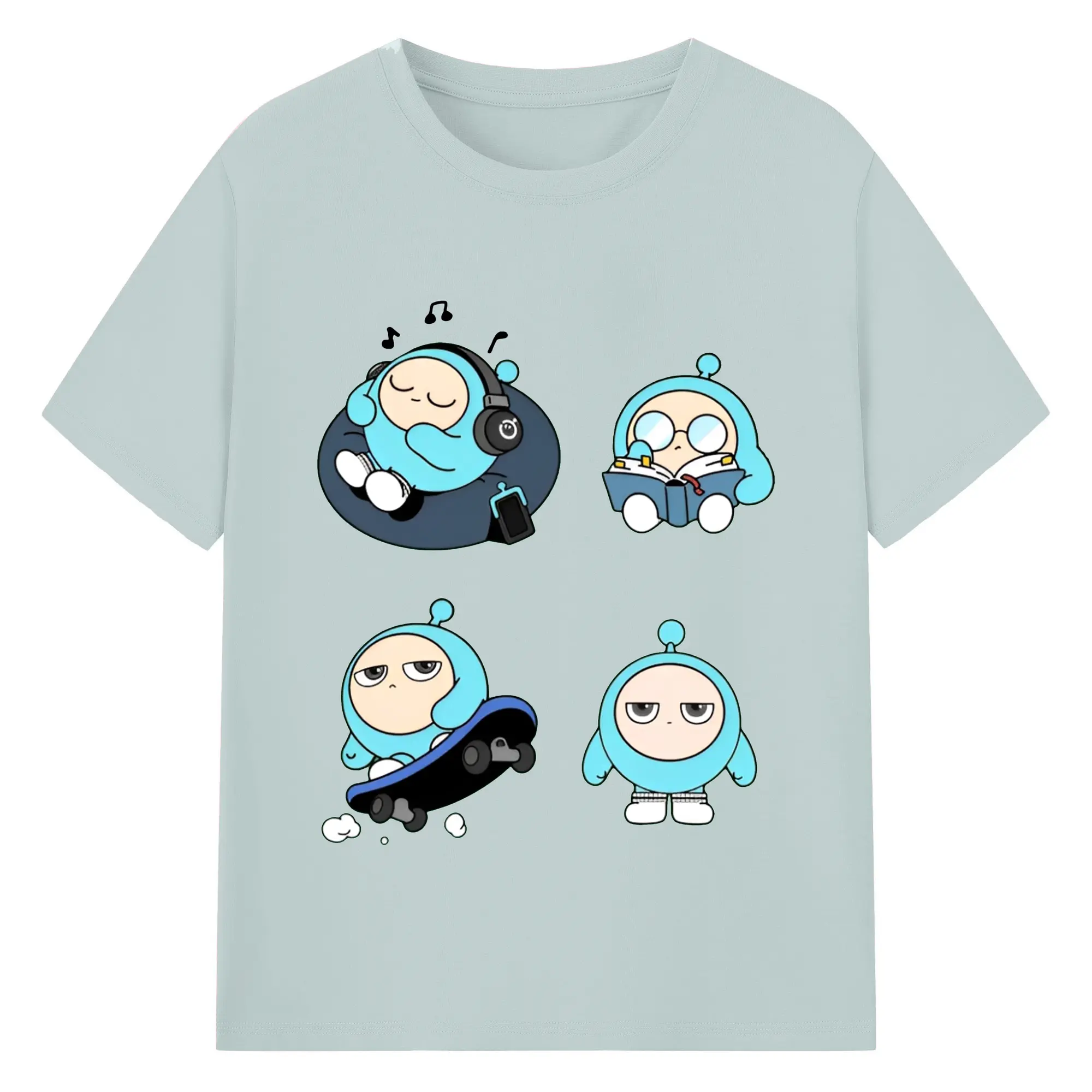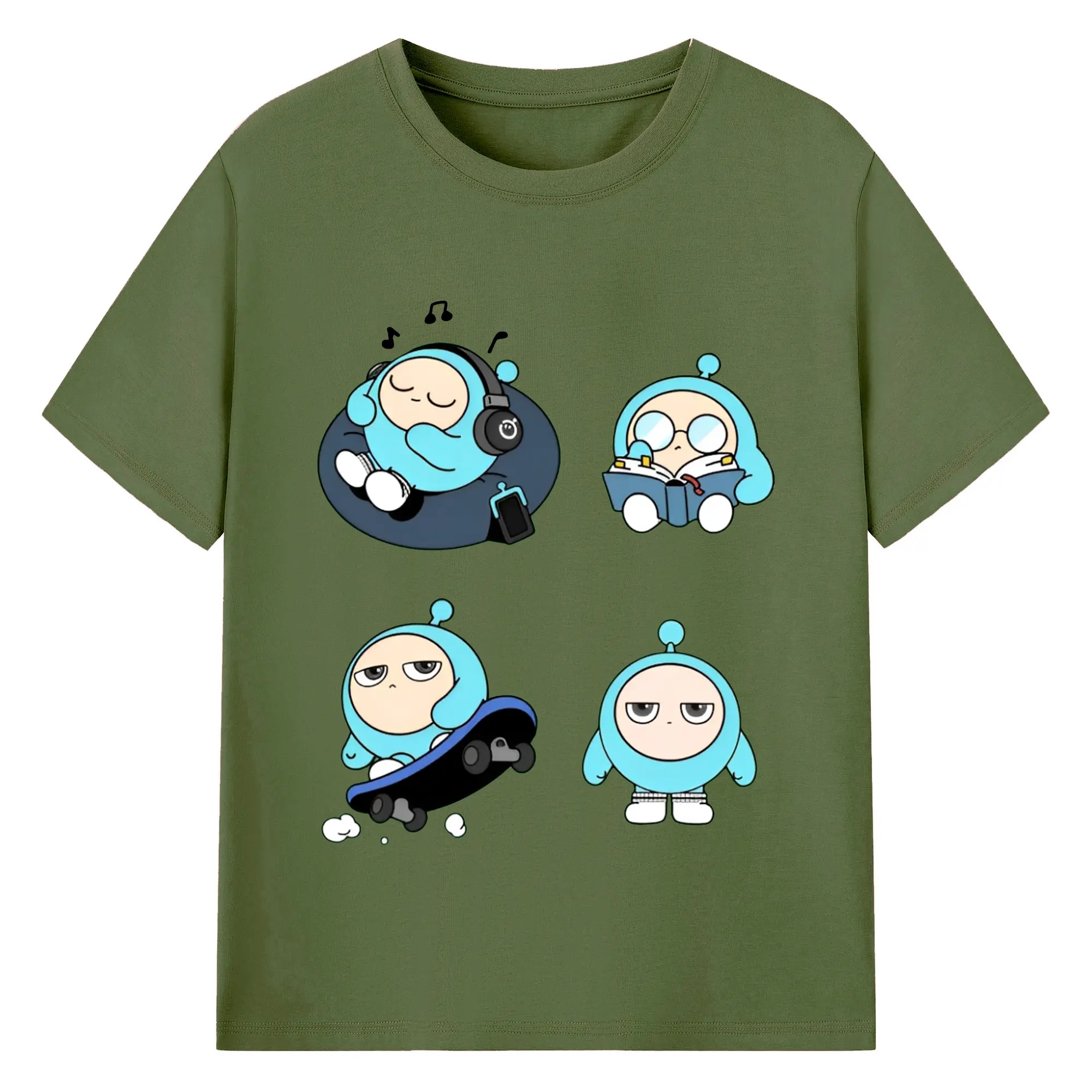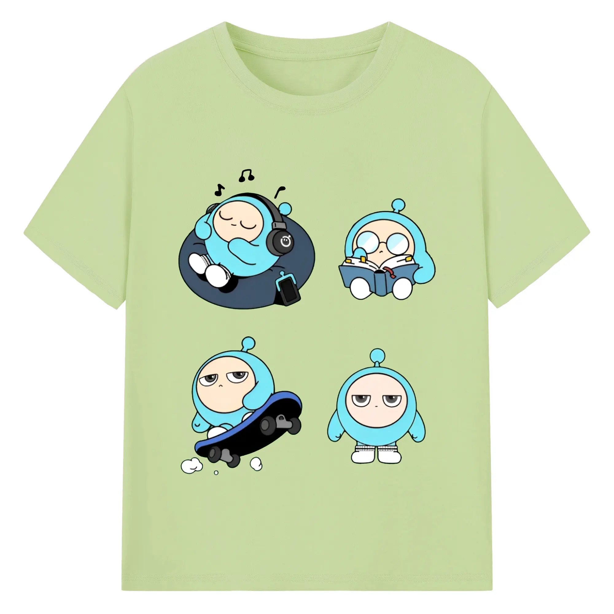蛋仔パーティー 蛋小緑 キャラクター 可愛いゲームグッズ - 綿100% 半袖Tシャツ ・ フロントプリント ・ 快適 通気性 ・ 日常使い 散歩 スポーツ用