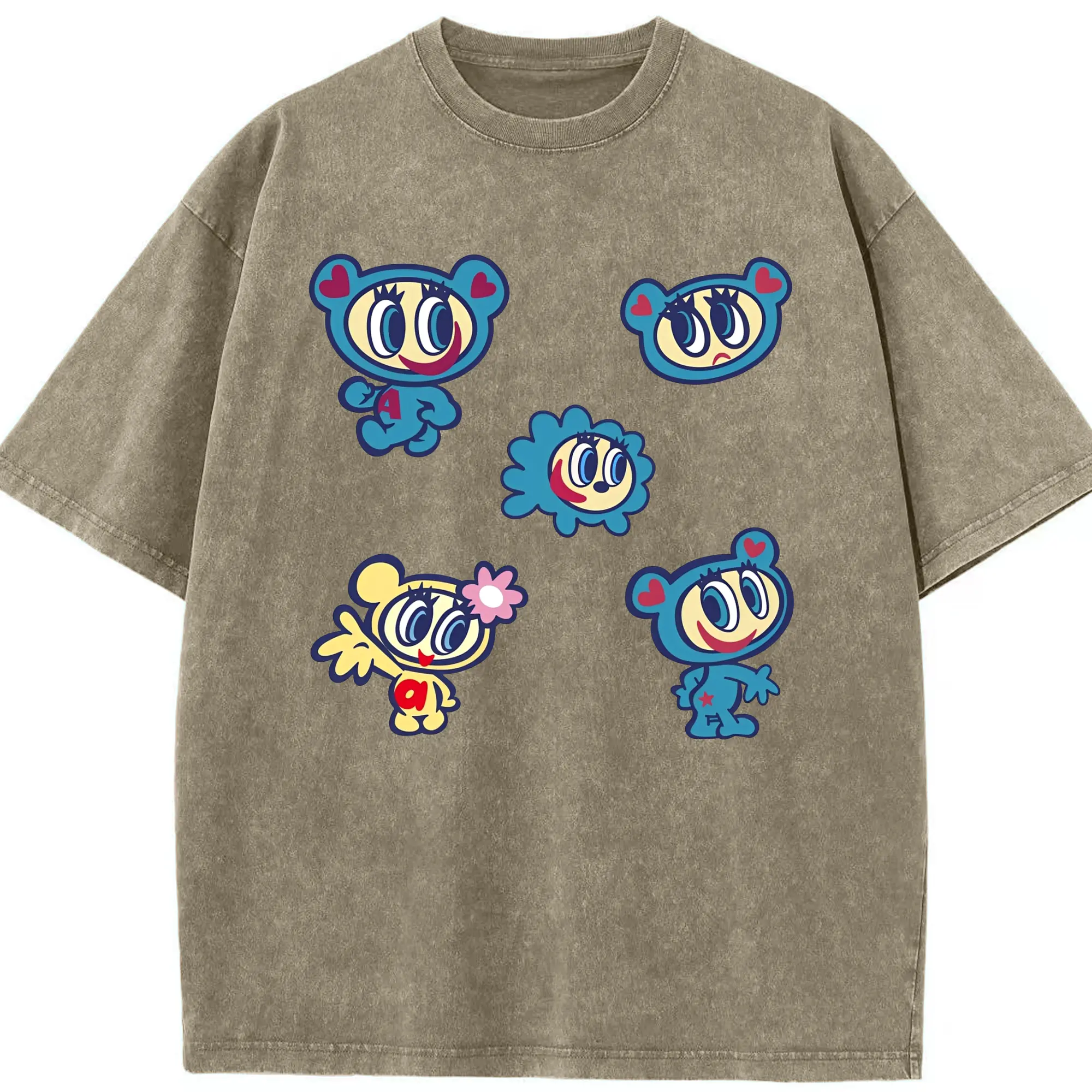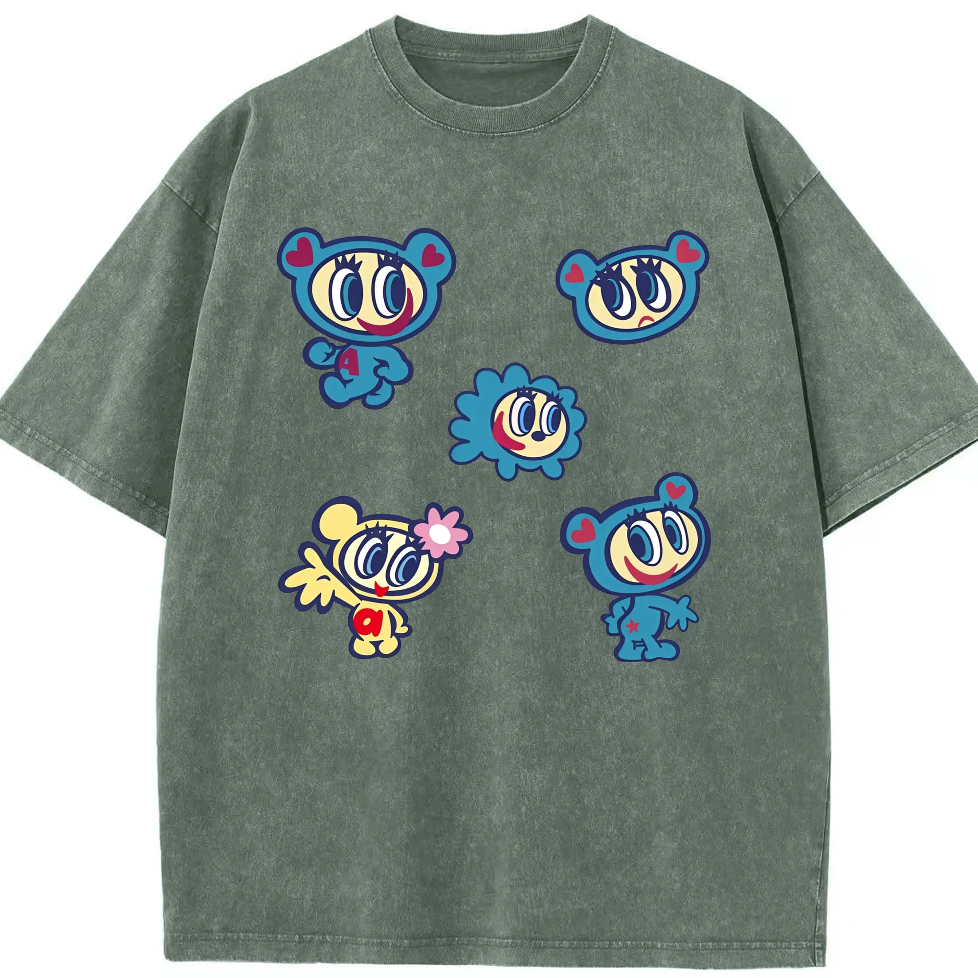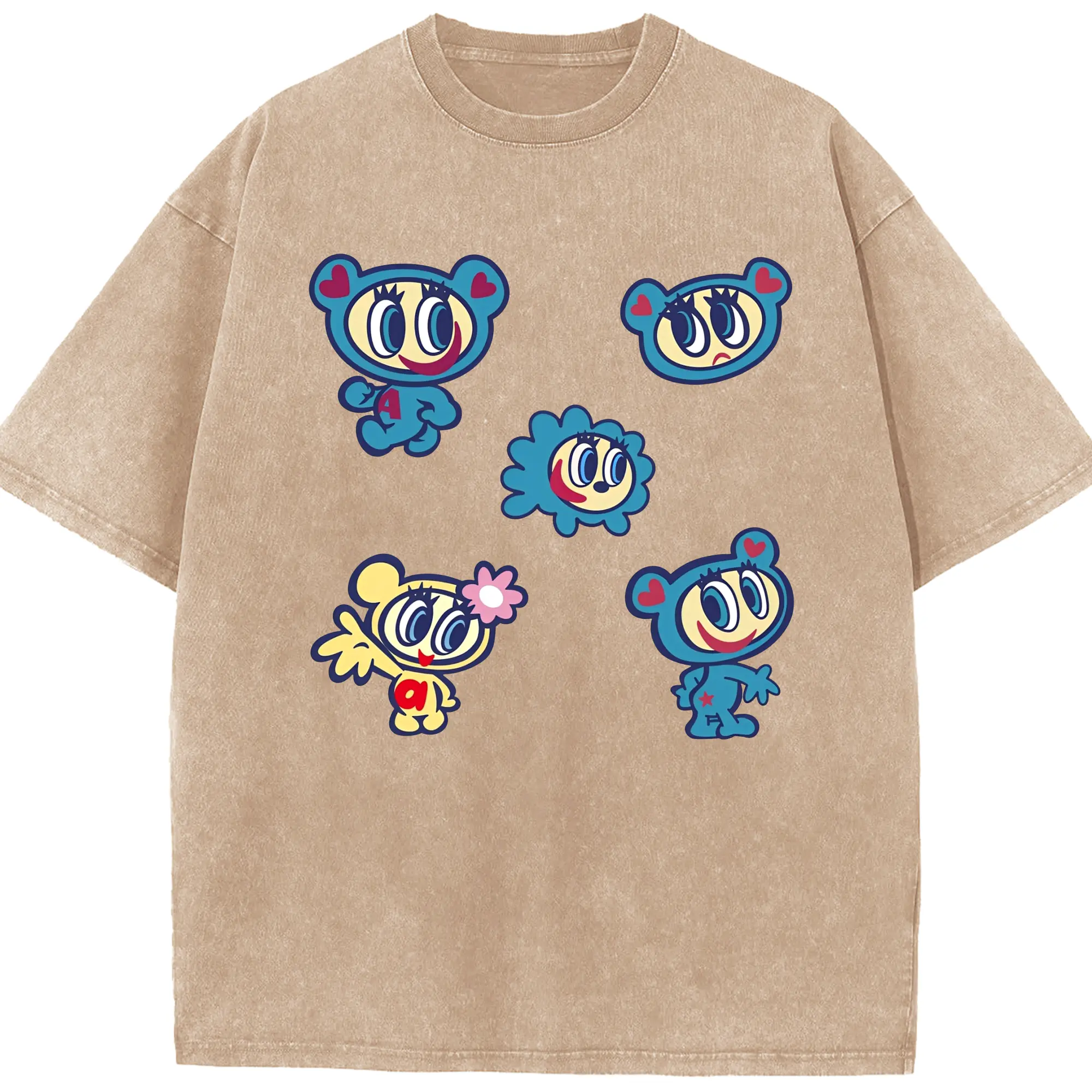 【人気急上昇】たぬきち グッズ風デザイン - 綿100% ヴィンテージ風 半袖Tシャツ ・ フロントプリント ・ 柔らか肌触り ・ 通気性 快適 ・ スポーツ カジュアル 外出用