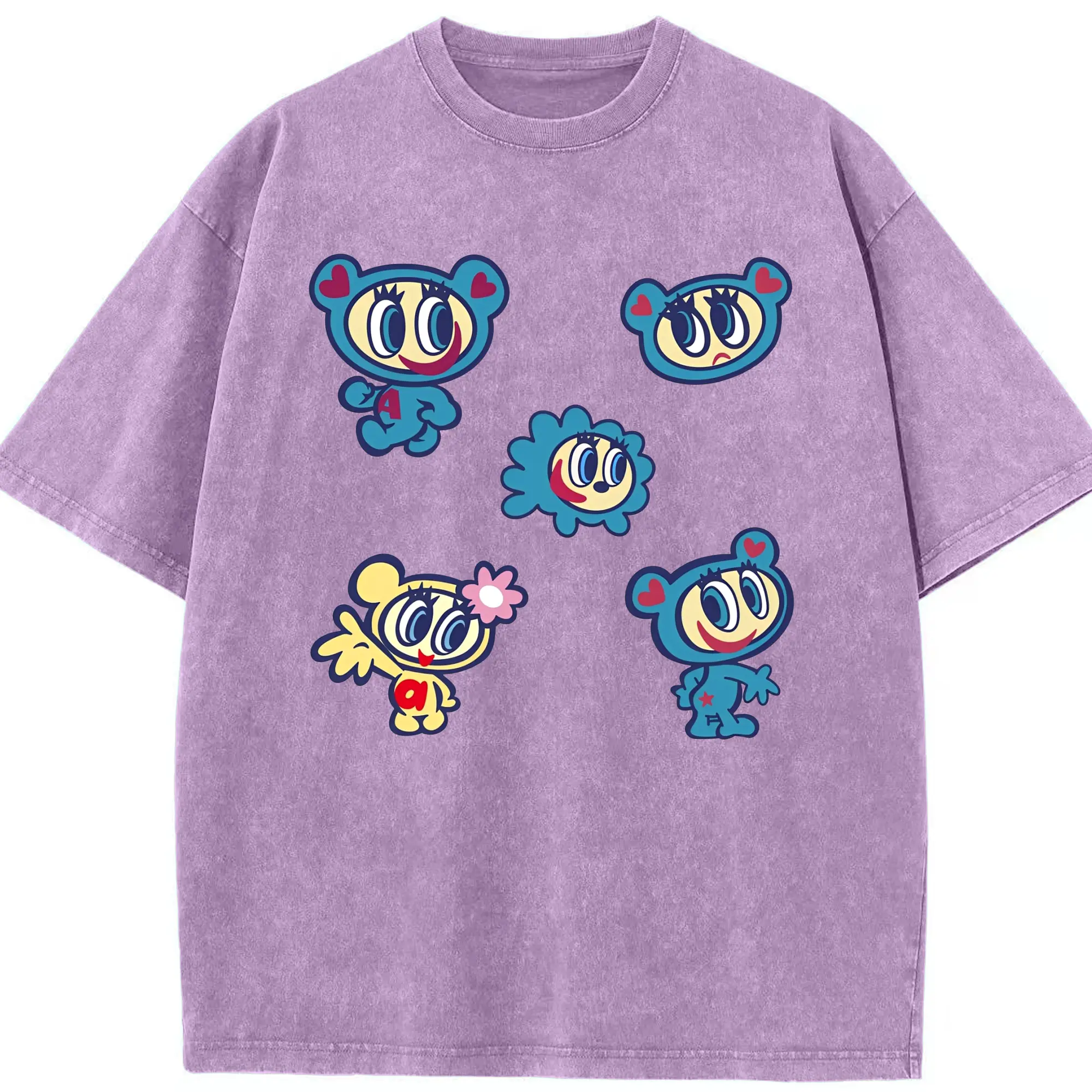 ドラえもん ×スティッチコラボ - 綿100% ヴィンテージ風 半袖Tシャツ ・ フロントプリント ・ 柔らか肌触り ・ 通気性 快適 ・ スポーツ カジュアル 外出用