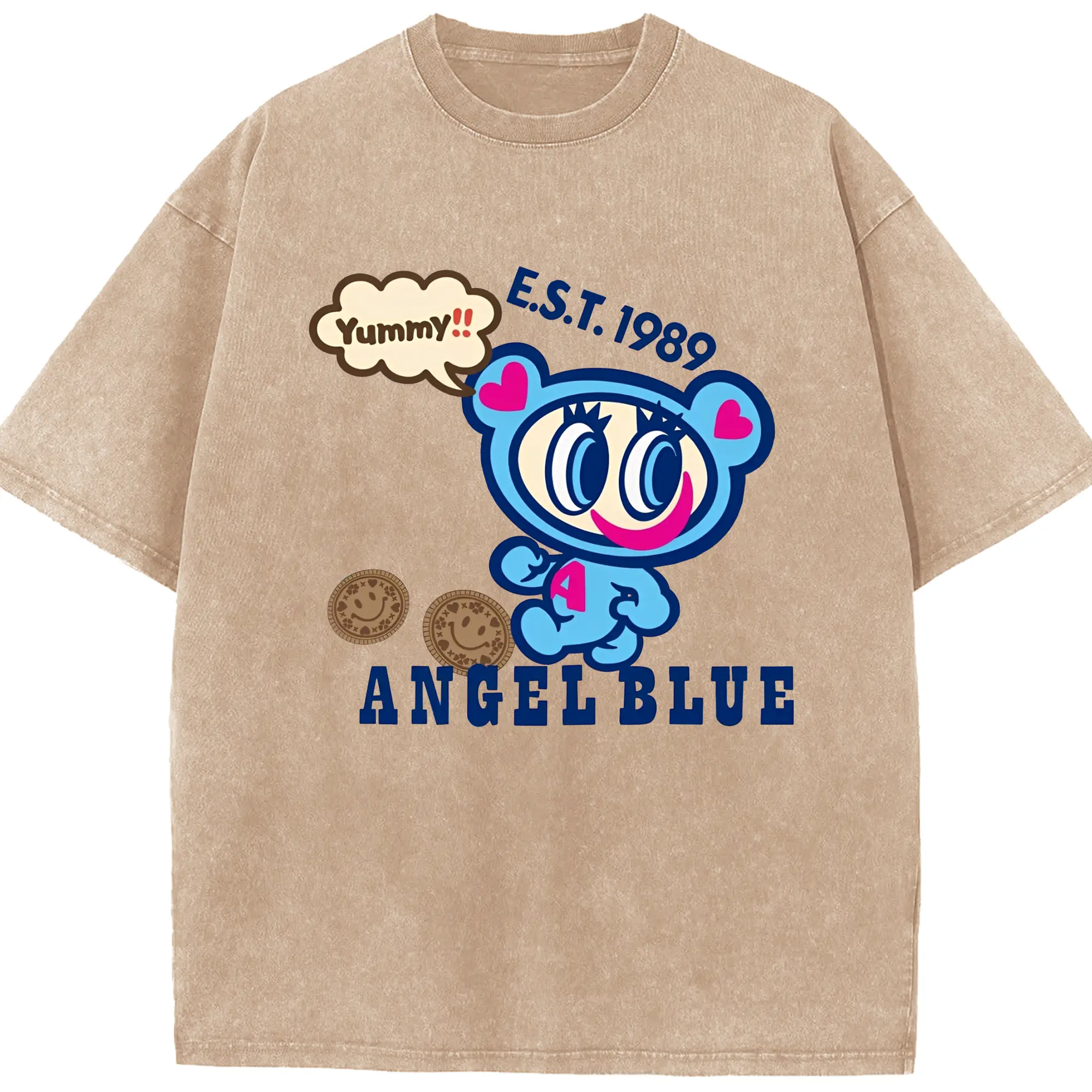 もふもふmofusand人気のテディ - 綿100% ヴィンテージ風 半袖Tシャツ ・ フロントプリント ・ 柔らか肌触り ・ 通気性 快適 ・ スポーツ カジュアル 外出用