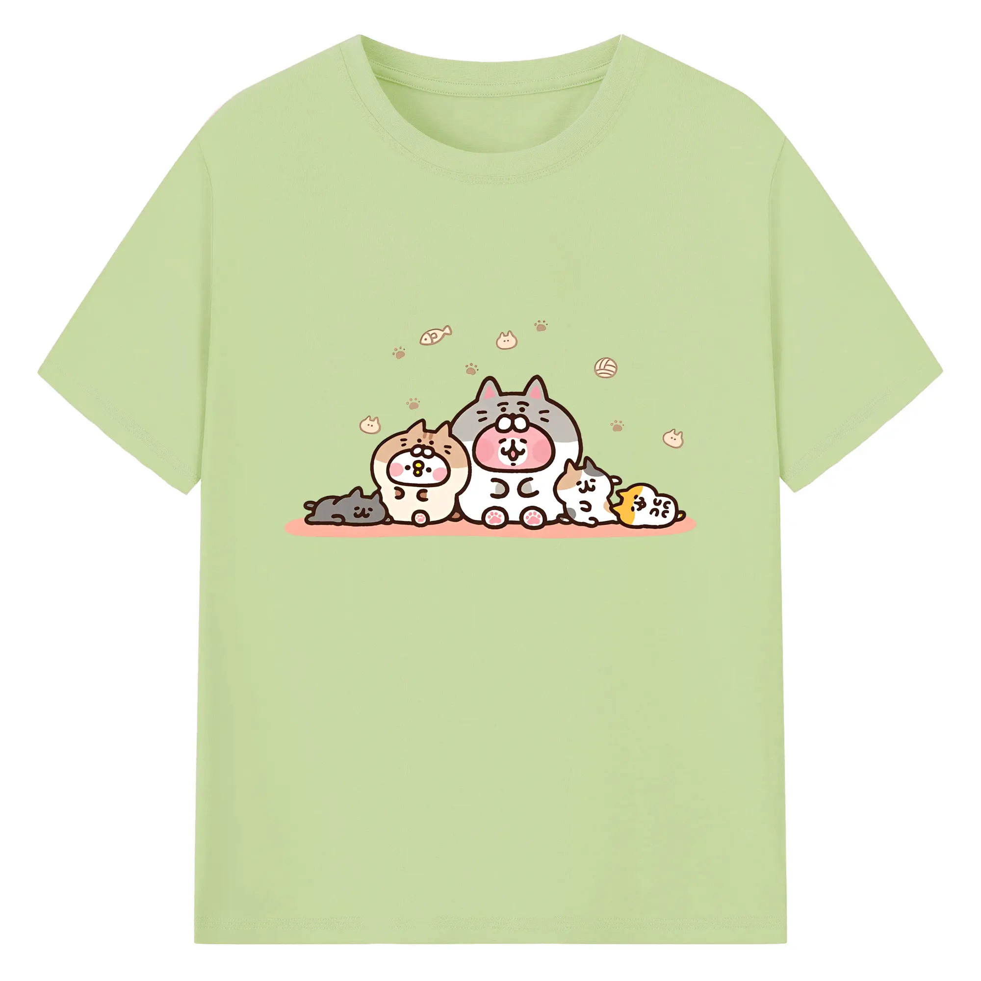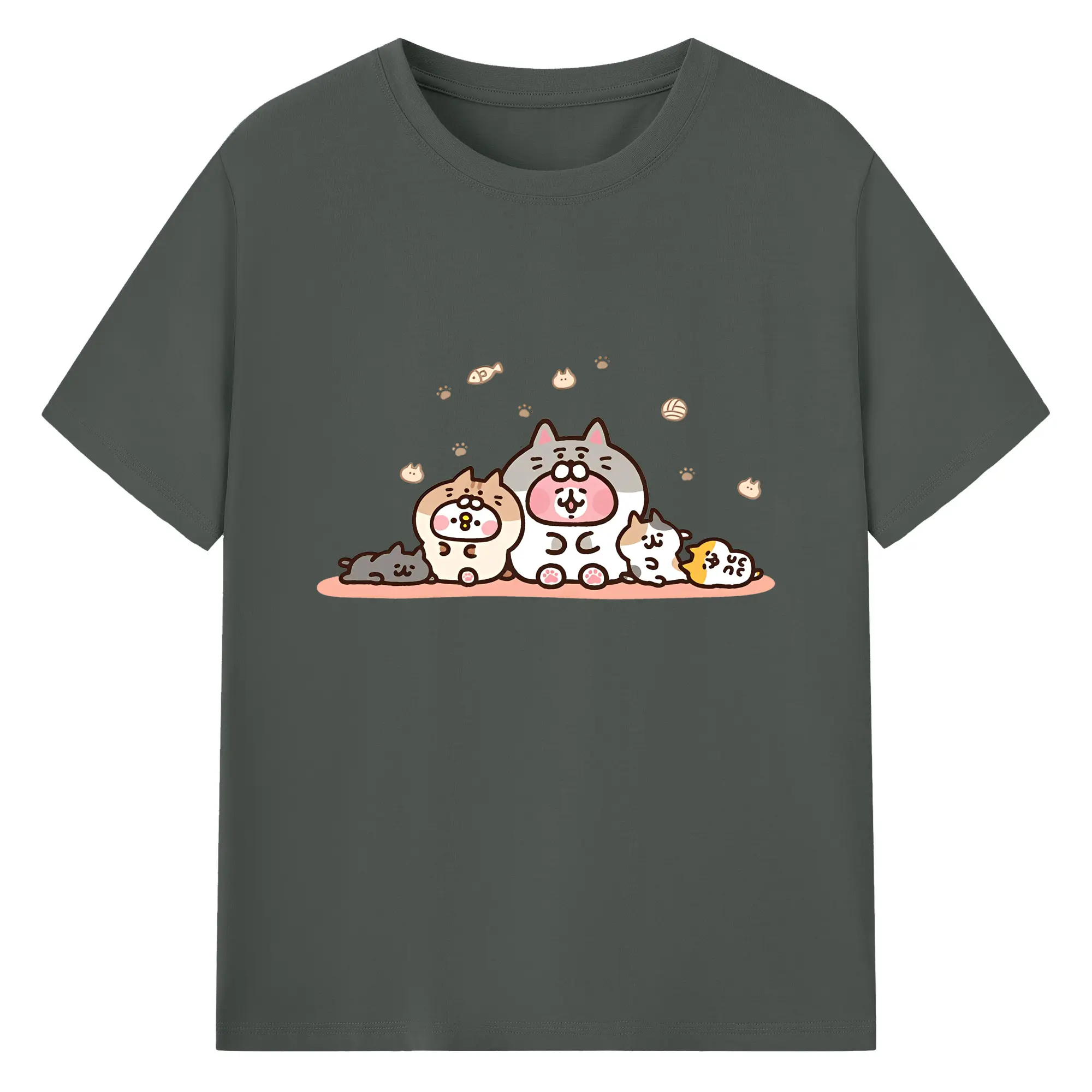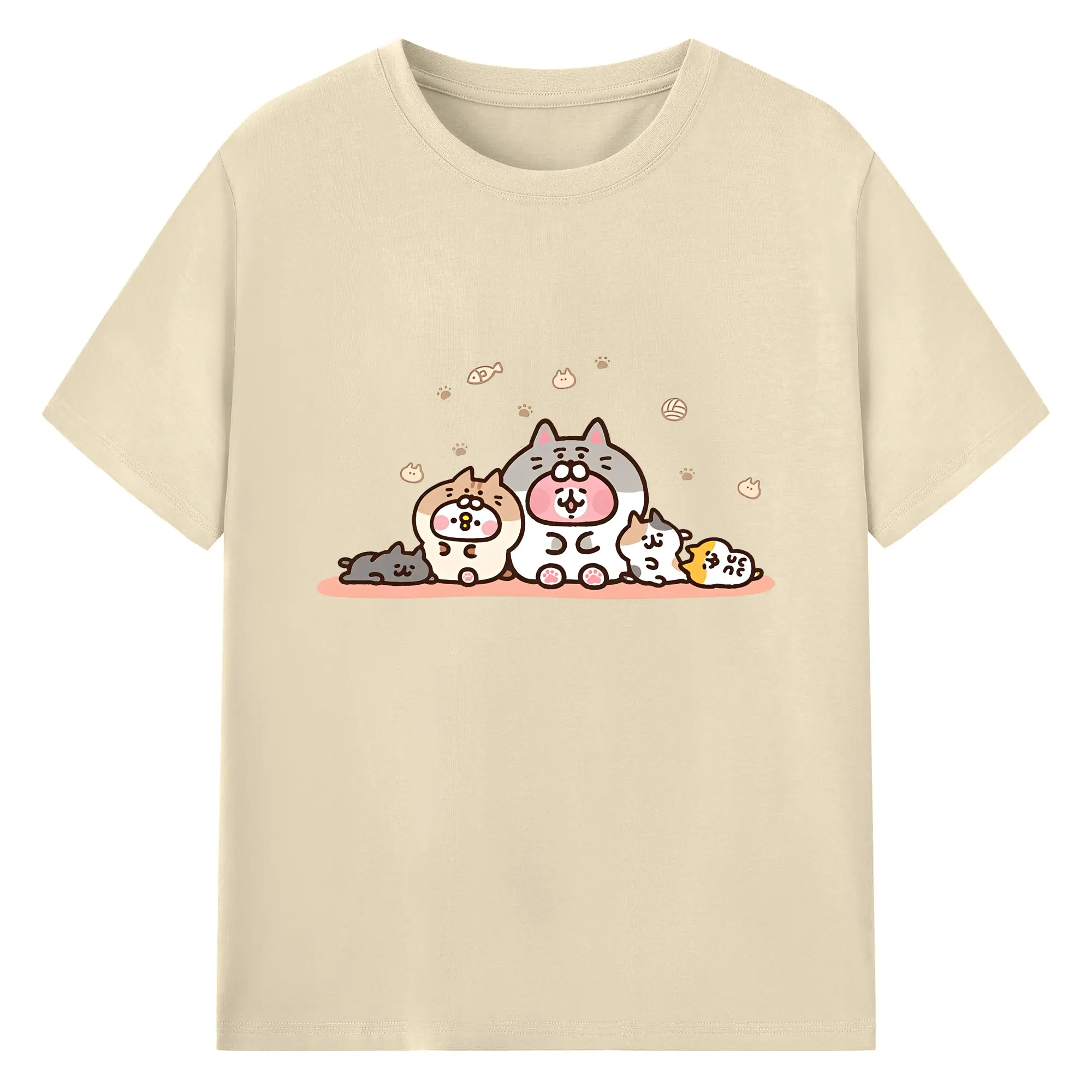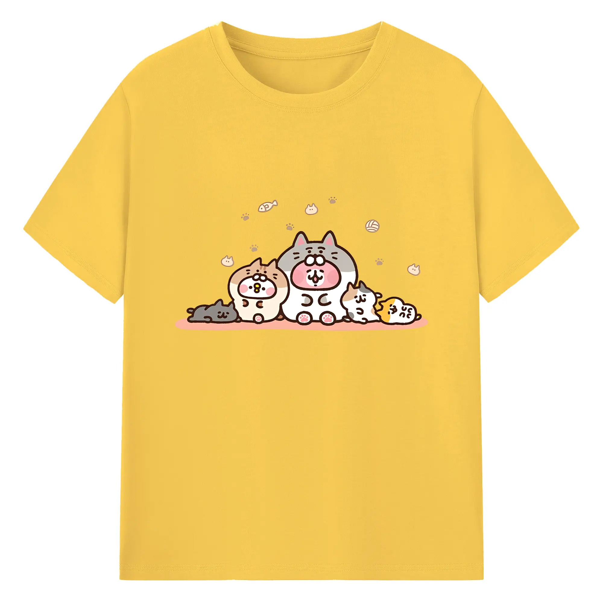 カナヘイの小動物のんびり猫 - 綿100% ヴィンテージ風 半袖Tシャツ ・ フロントプリント ・ 柔らか肌触り ・ 通気性 快適 ・ スポーツ カジュアル 外出用