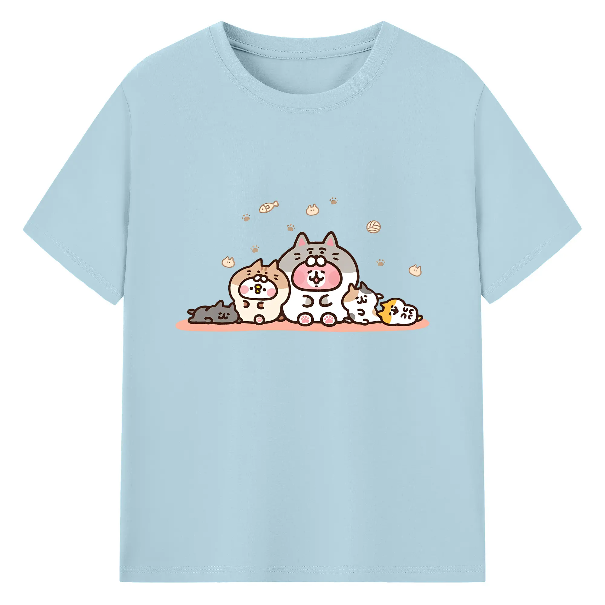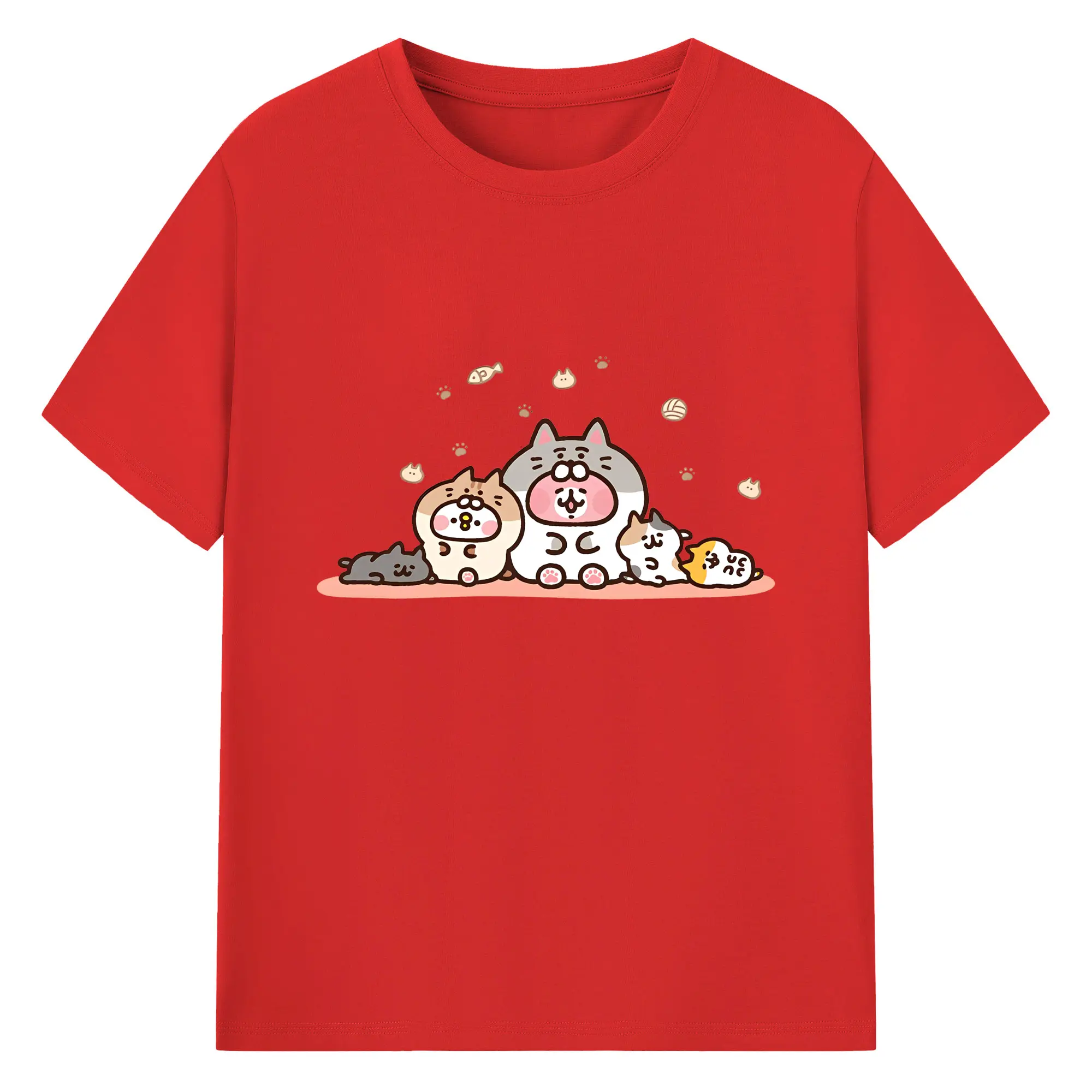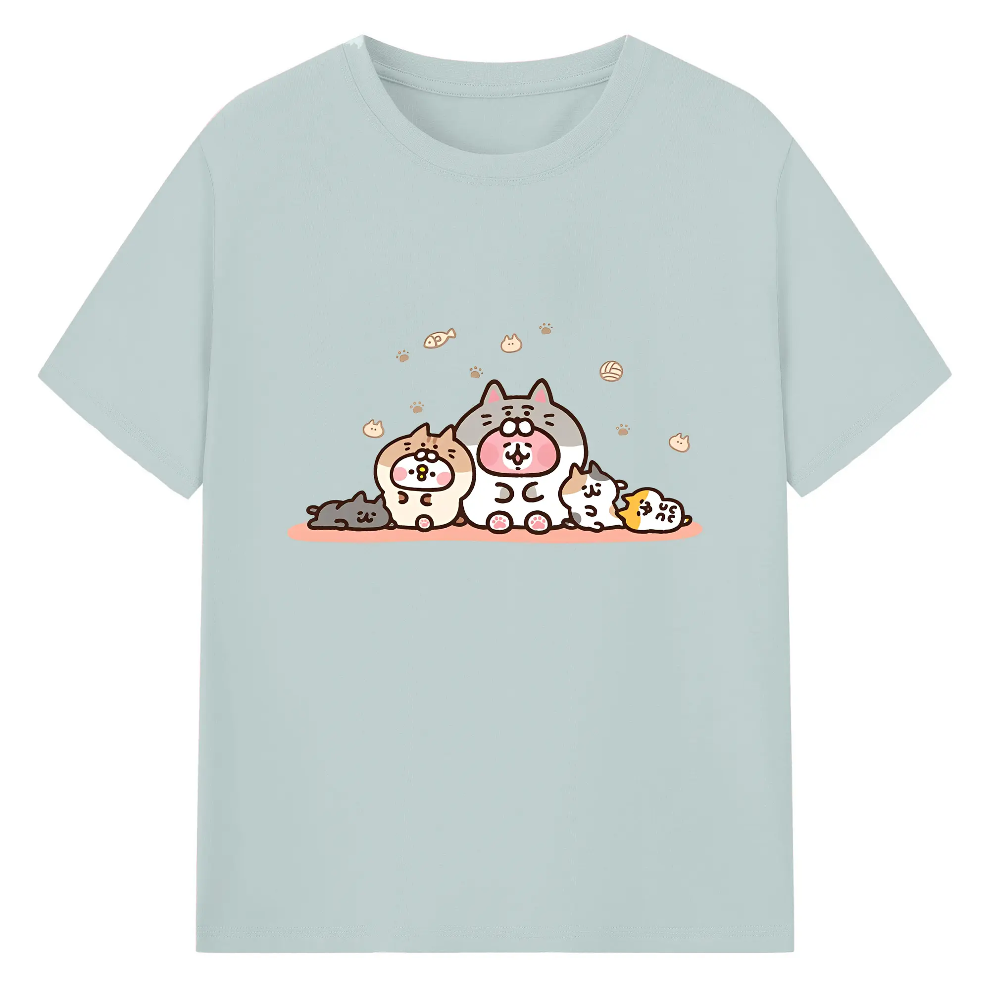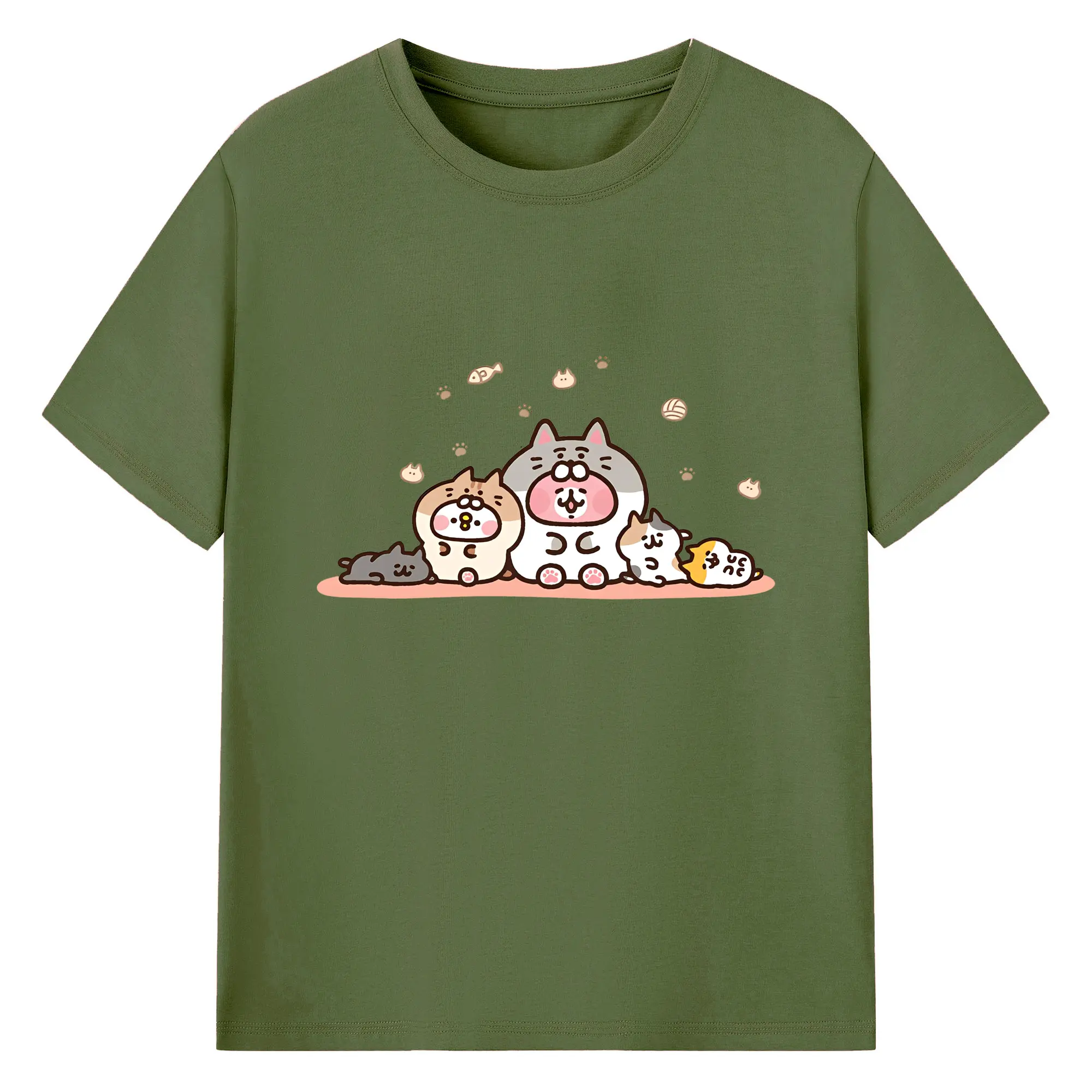 カナヘイの小動物のんびり猫 - 綿100% ヴィンテージ風 半袖Tシャツ ・ フロントプリント ・ 柔らか肌触り ・ 通気性 快適 ・ スポーツ カジュアル 外出用