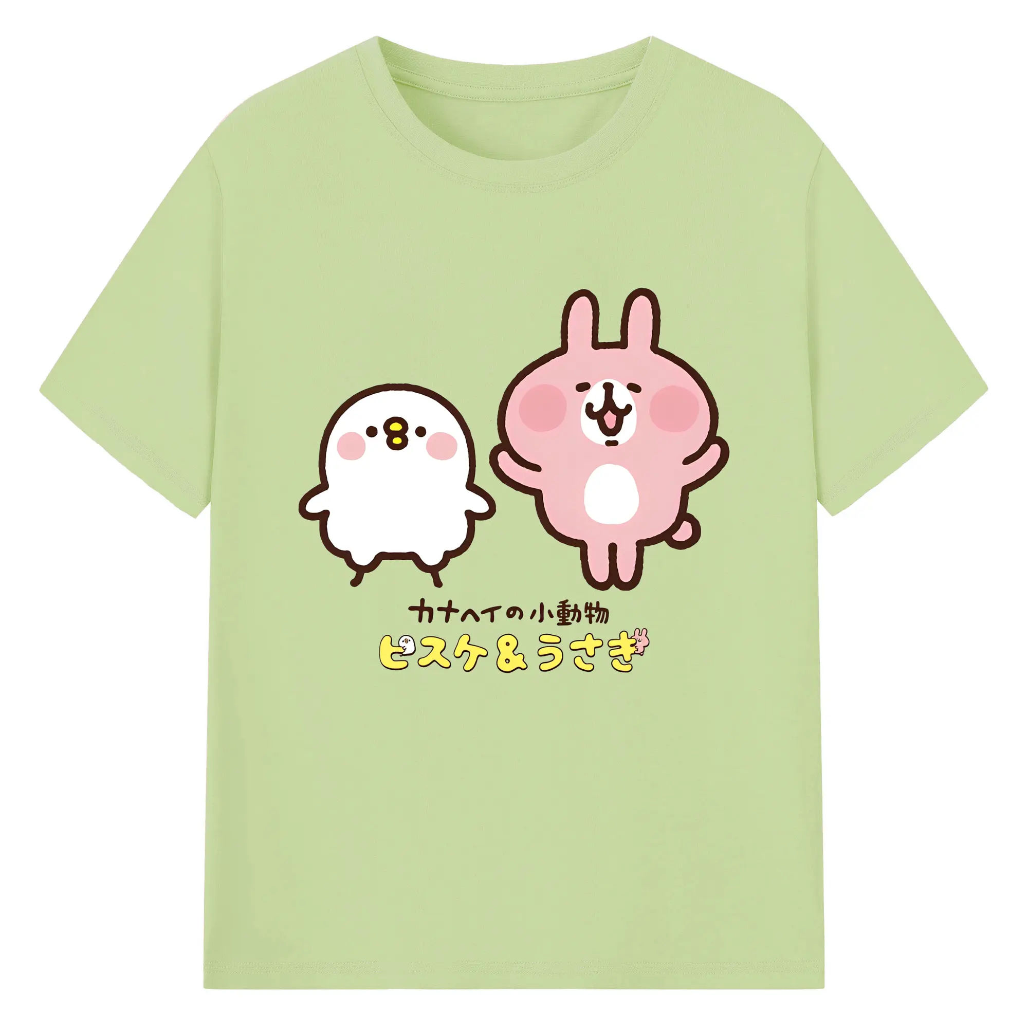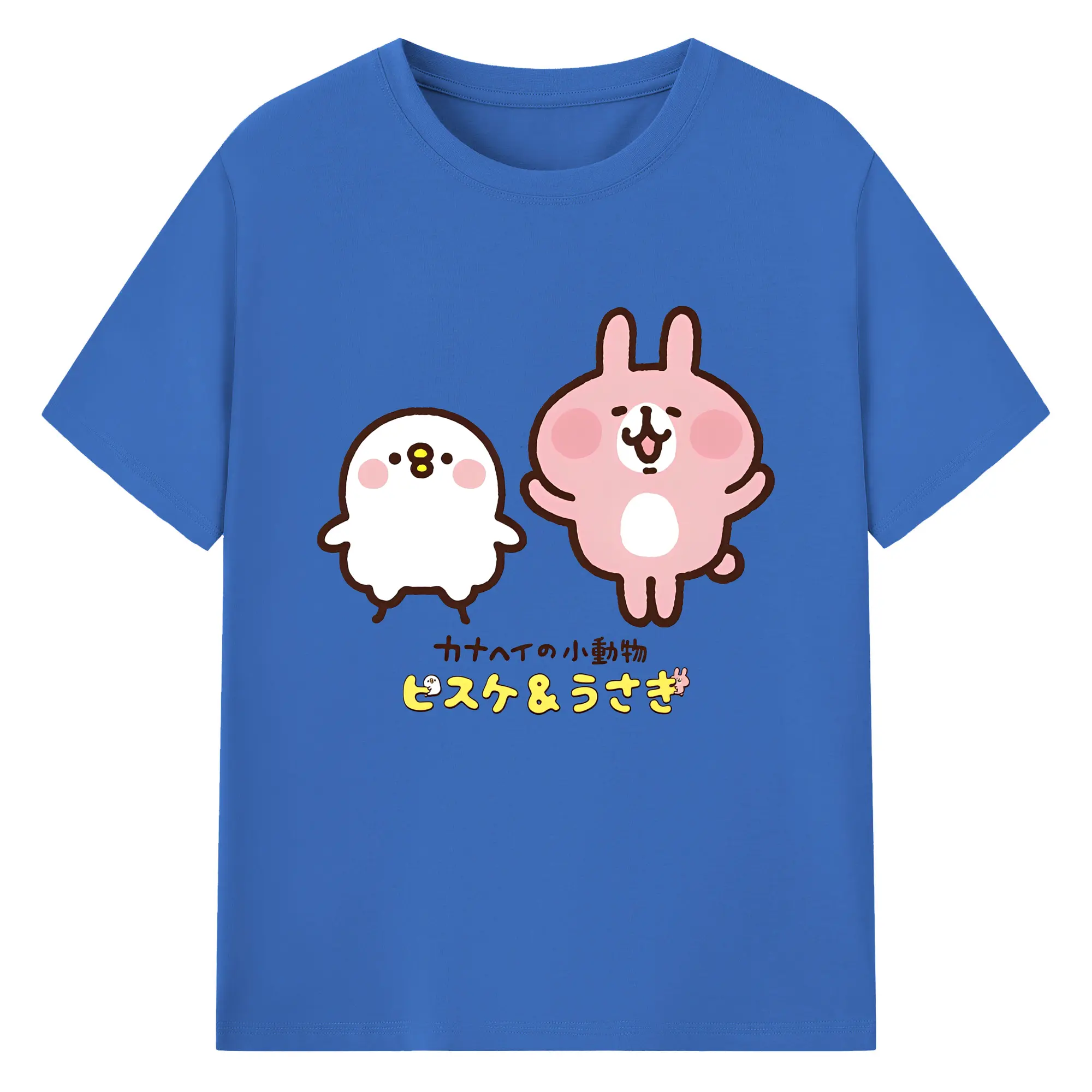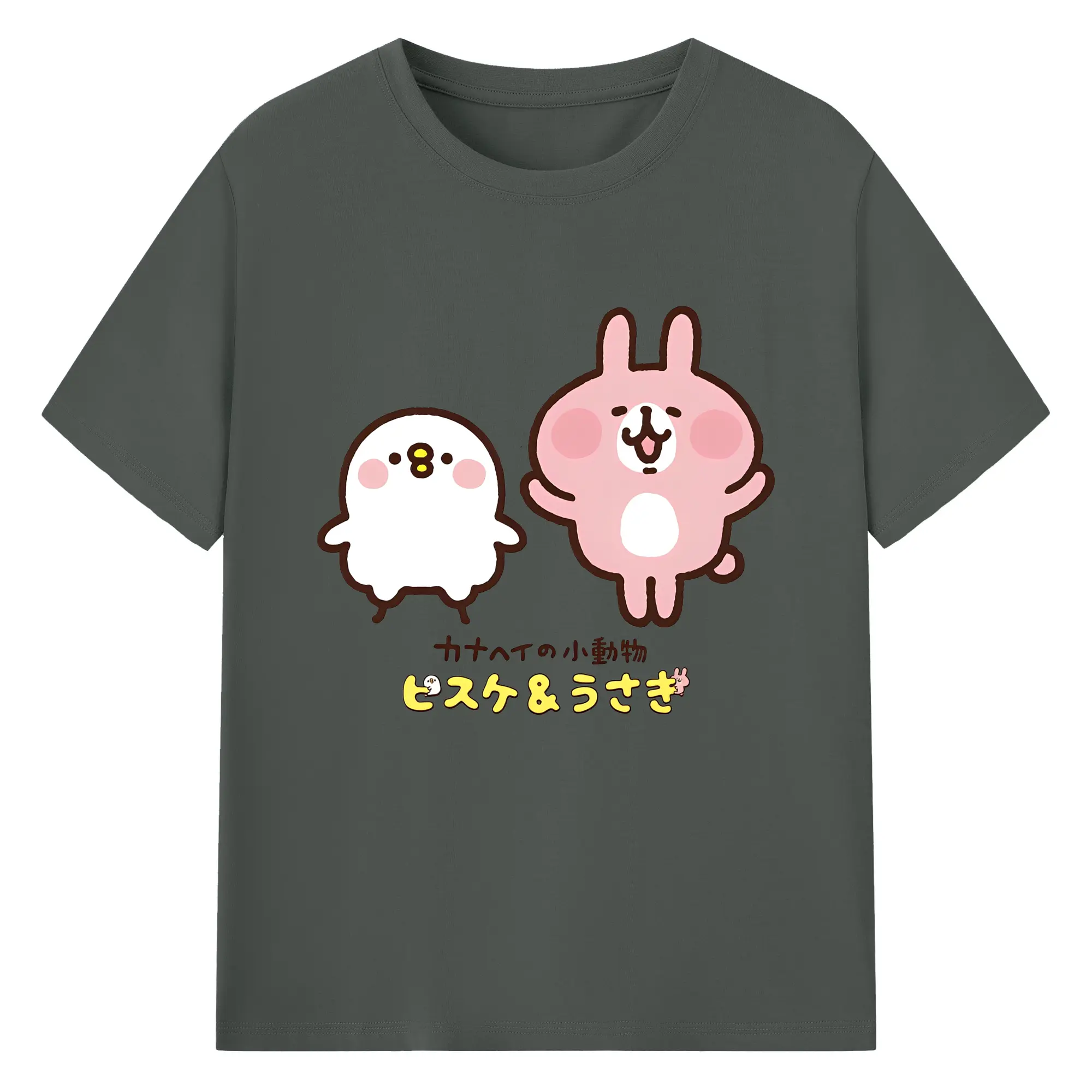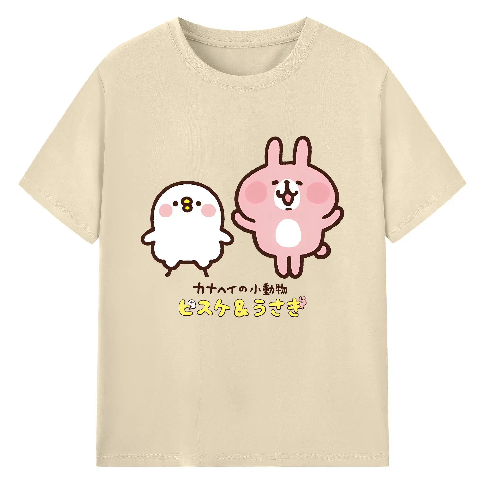 カナヘイの小動物 ピスケとうさぎ - 綿100% ヴィンテージ風 半袖Tシャツ ・ フロントプリント ・ 柔らか肌触り ・ 通気性 快適 ・ スポーツ カジュアル 外出用