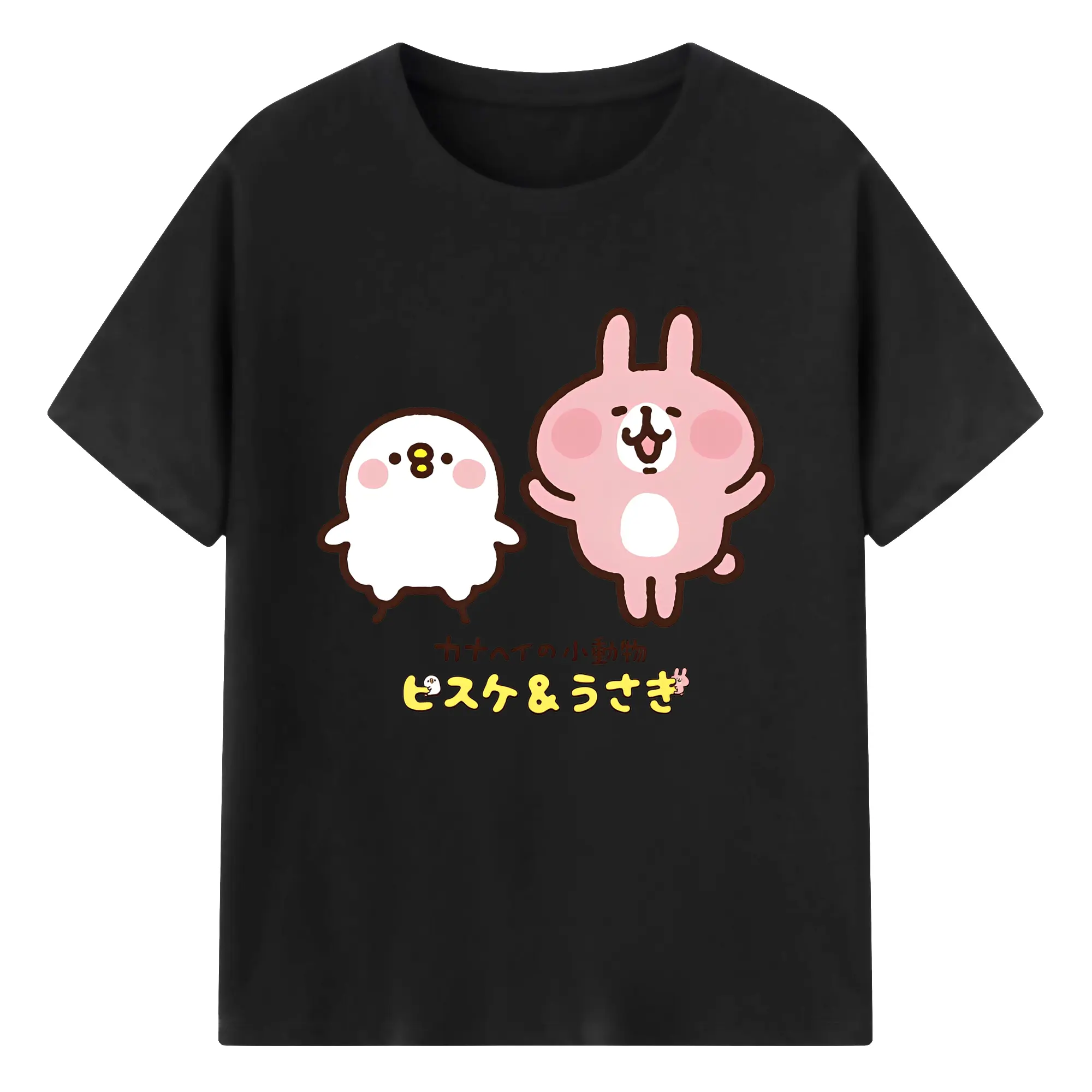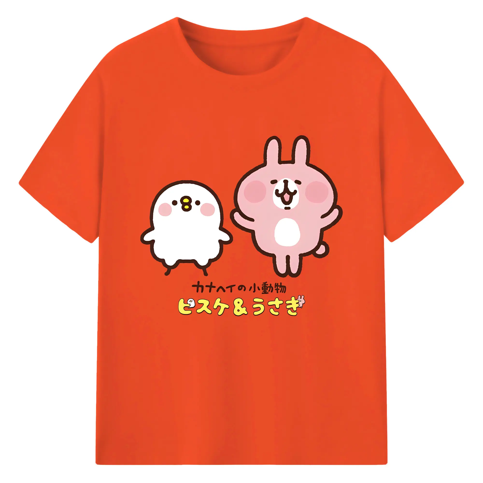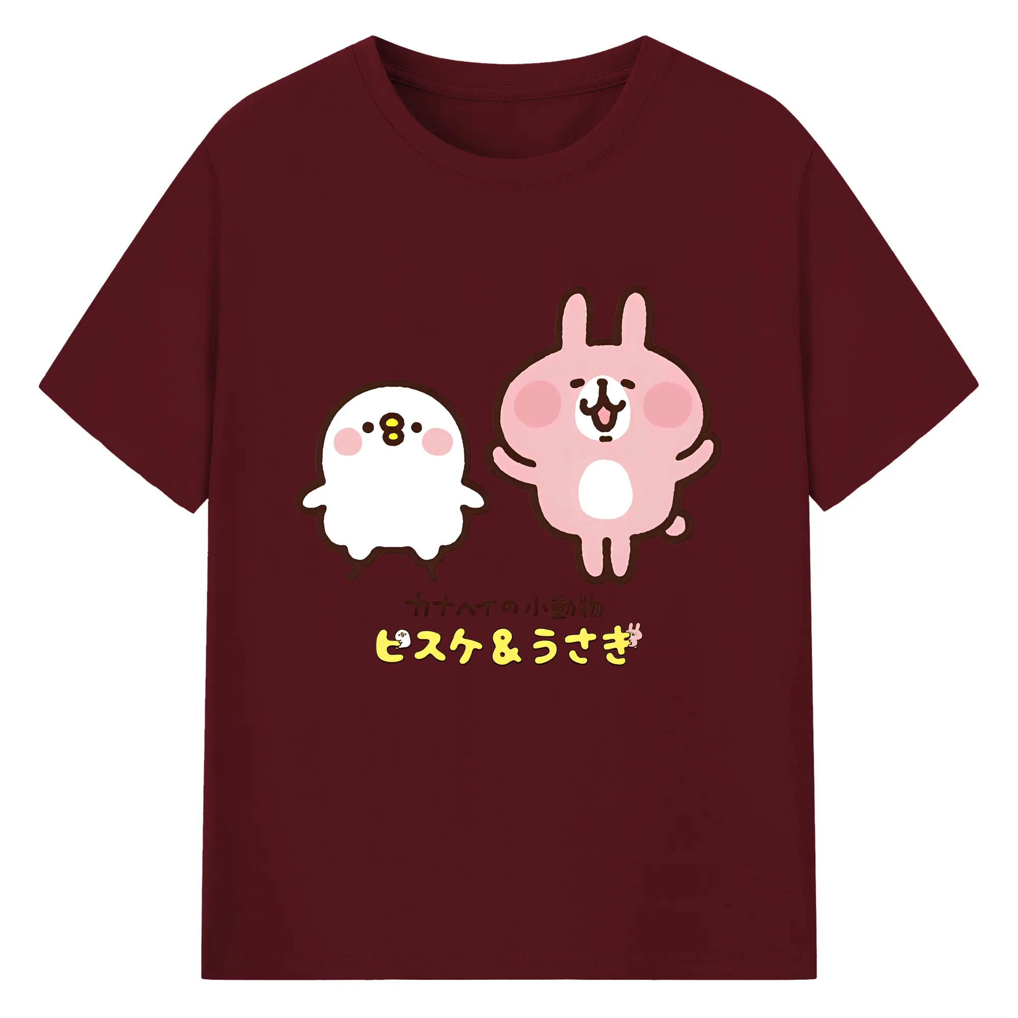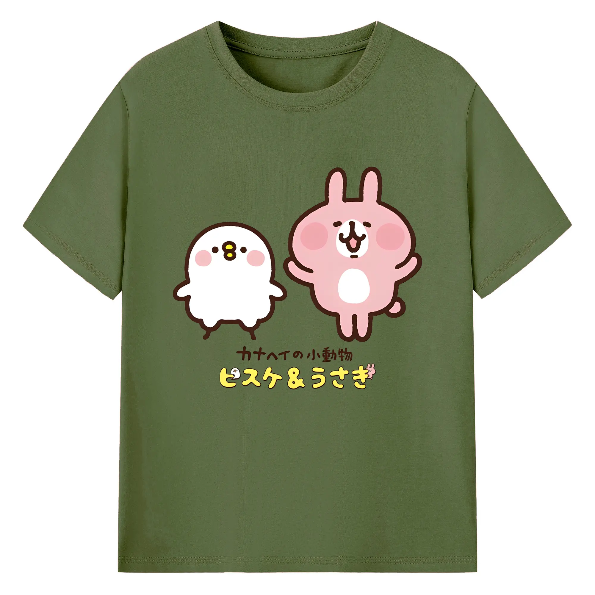カナヘイの小動物 ピスケとうさぎ - 綿100% ヴィンテージ風 半袖Tシャツ ・ フロントプリント ・ 柔らか肌触り ・ 通気性 快適 ・ スポーツ カジュアル 外出用