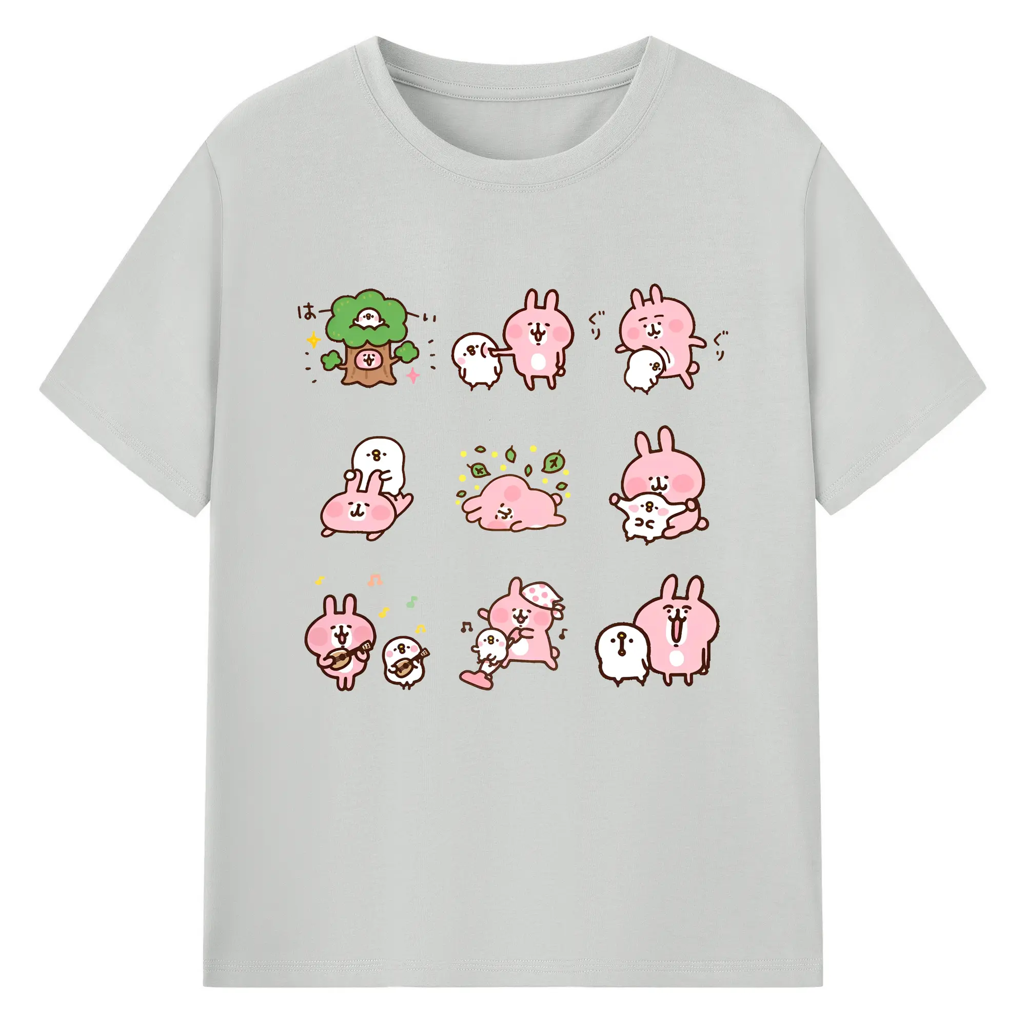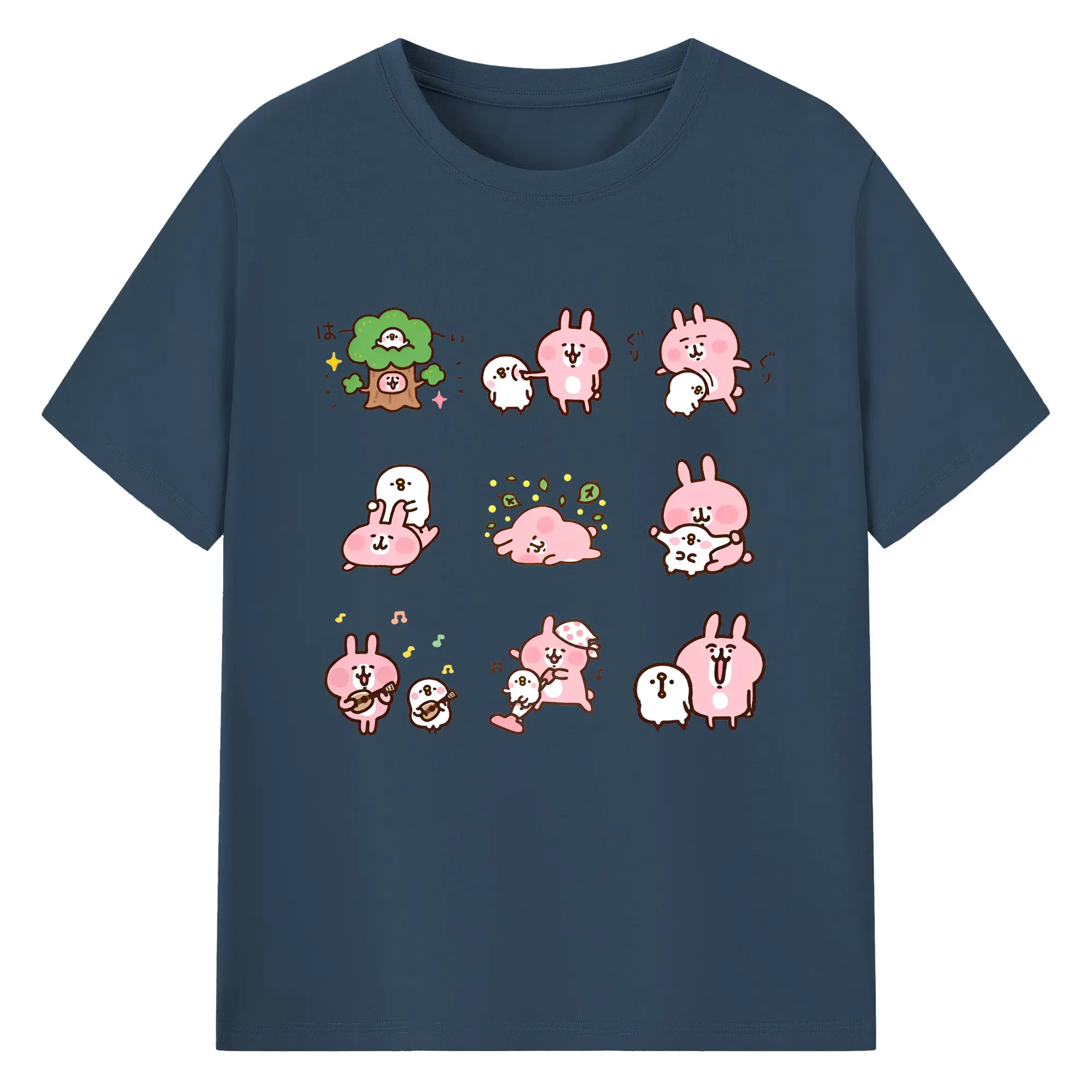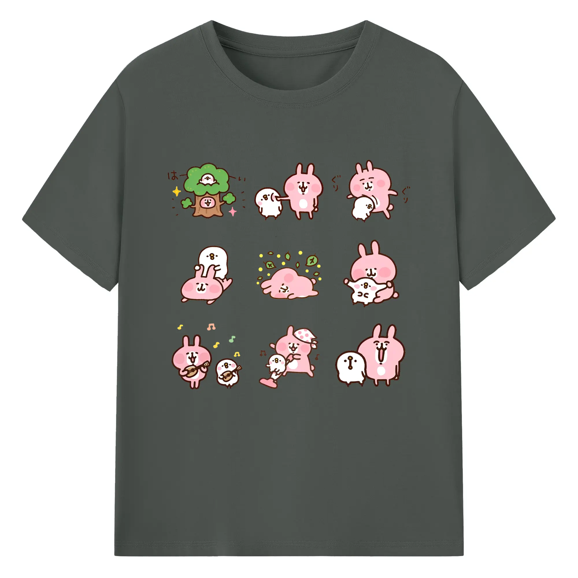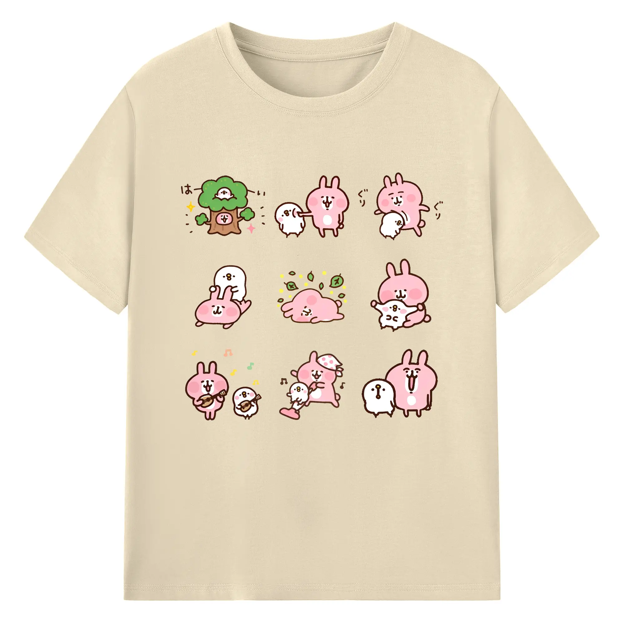 カナヘイの小動物かわいい仕草いっぱい - 綿100% ヴィンテージ風 半袖Tシャツ ・ フロントプリント ・ 柔らか肌触り ・ 通気性 快適 ・ スポーツ カジュアル 外出用