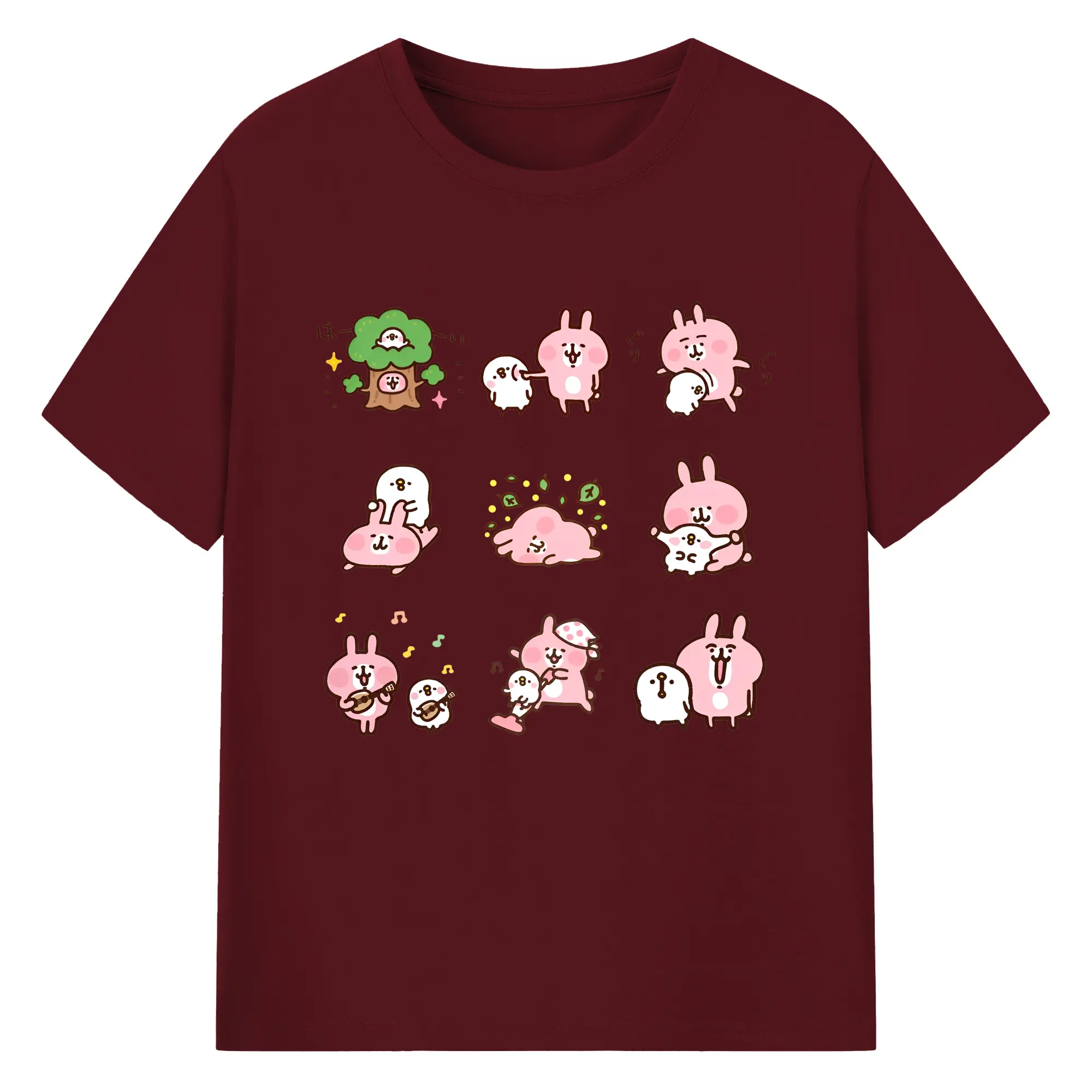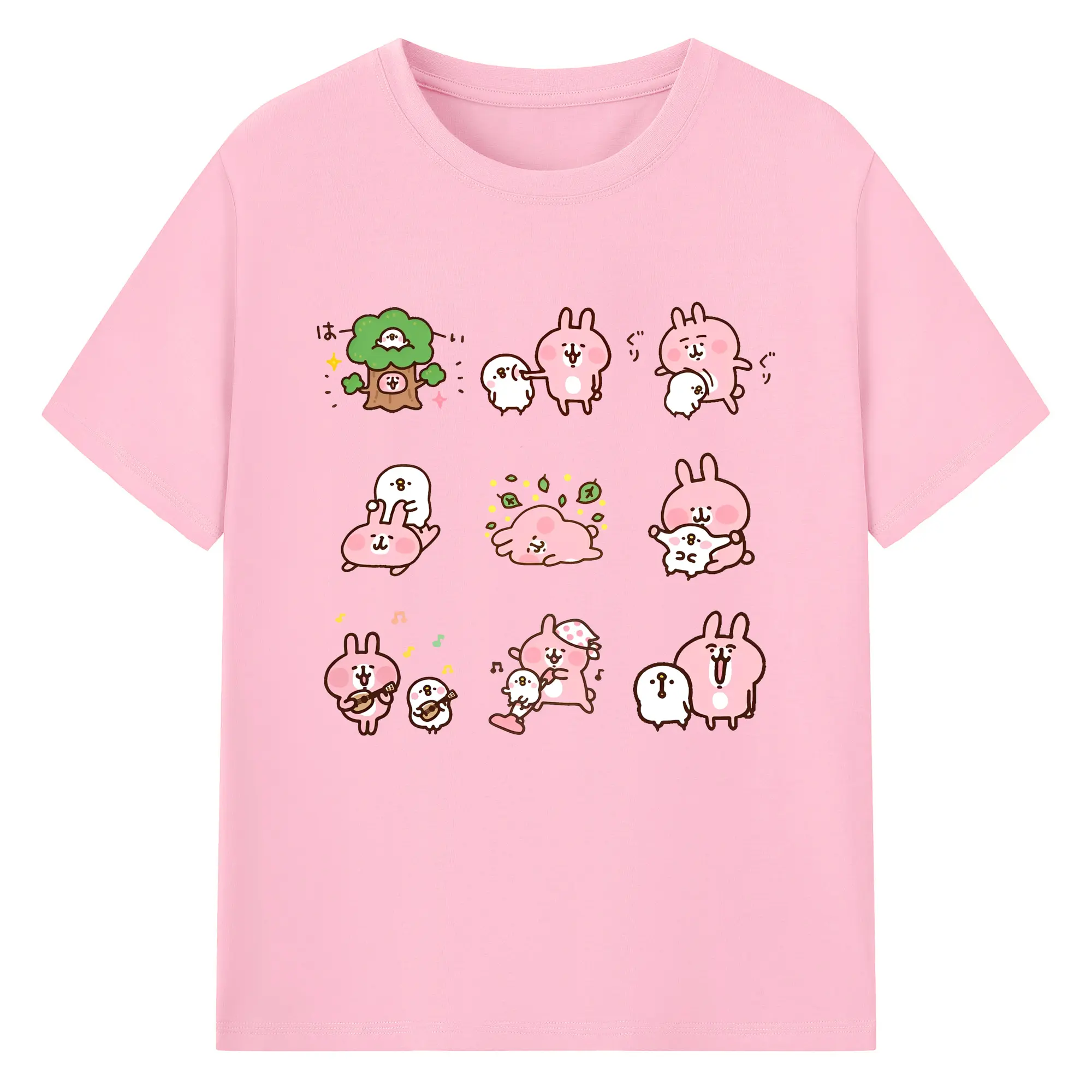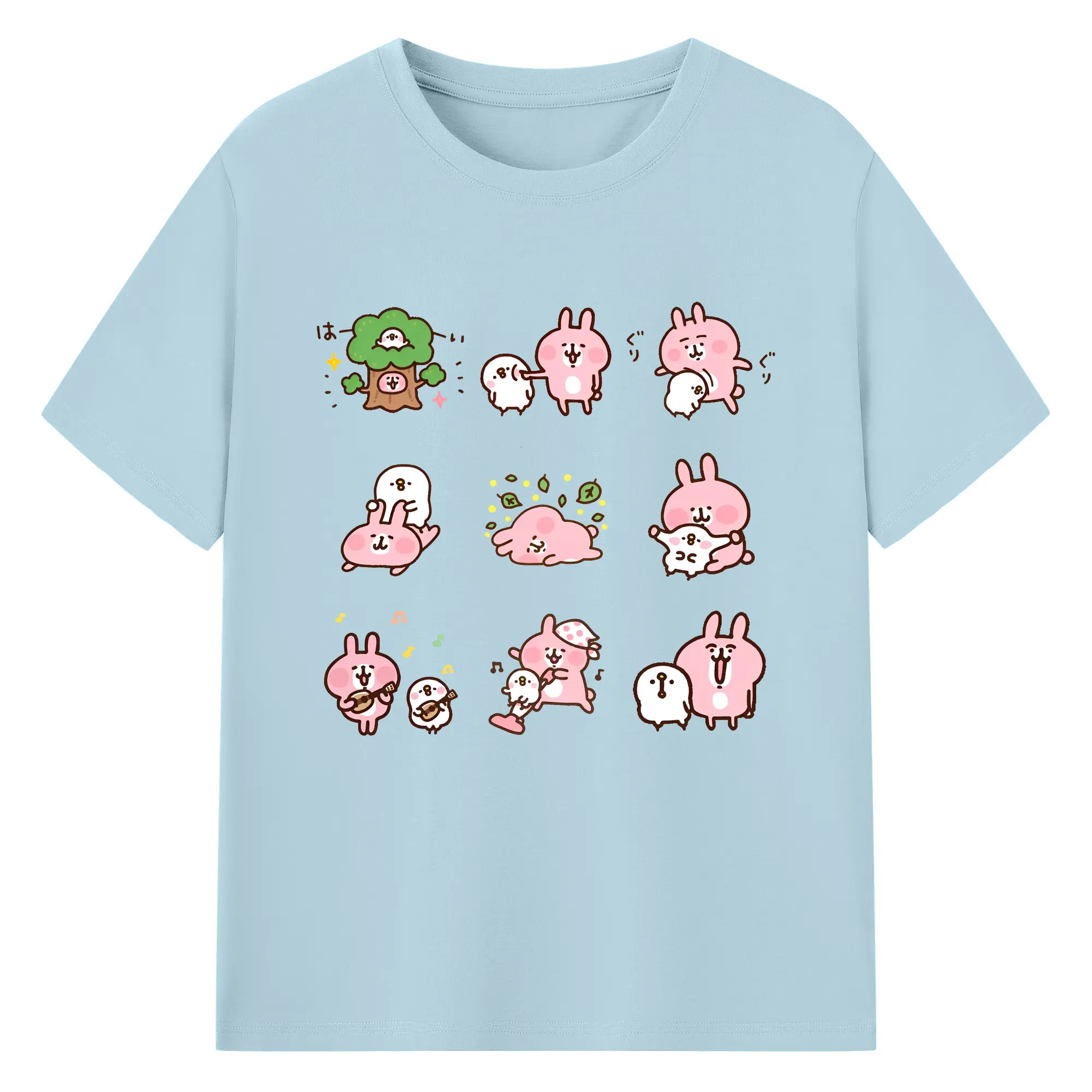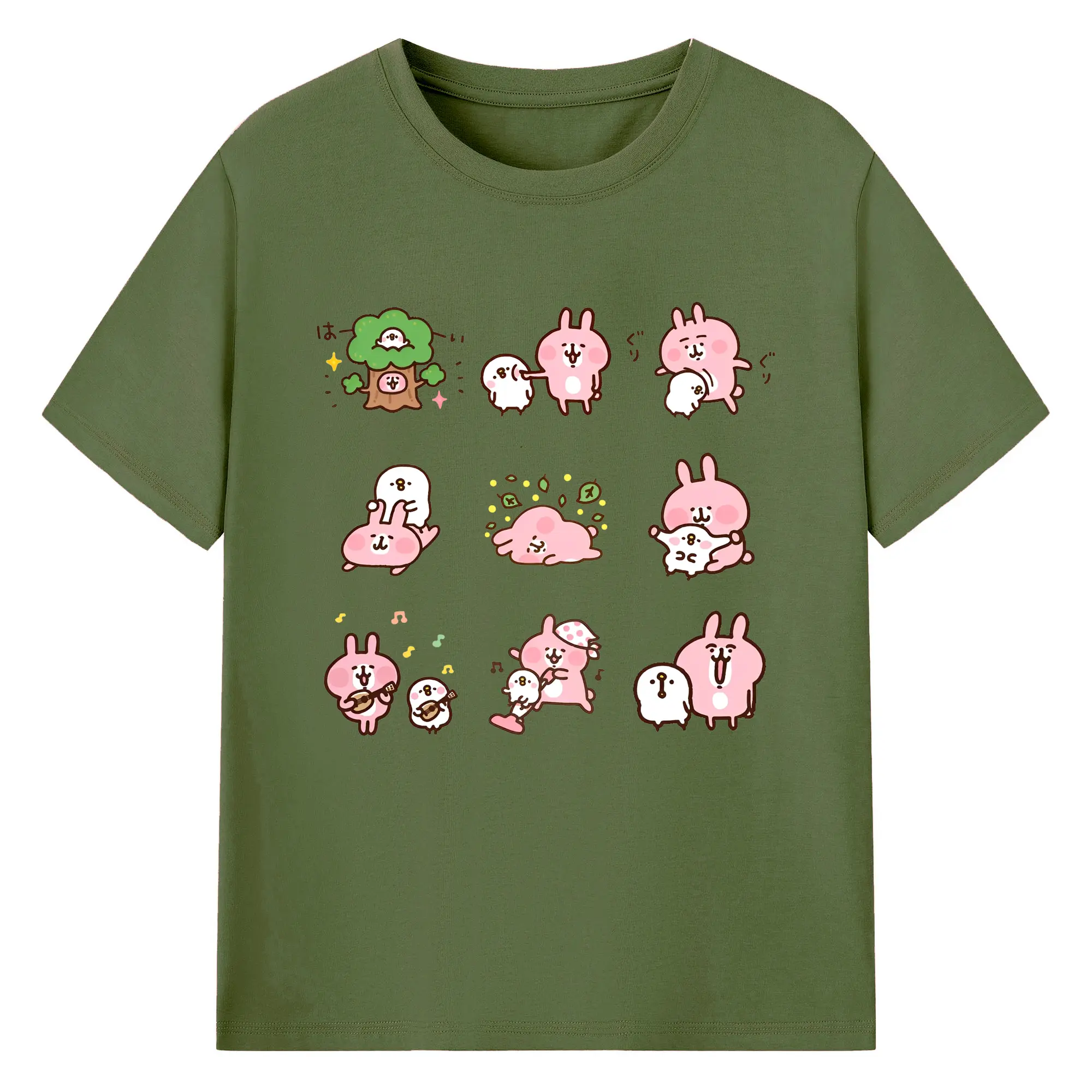 カナヘイの小動物かわいい仕草いっぱい - 綿100% ヴィンテージ風 半袖Tシャツ ・ フロントプリント ・ 柔らか肌触り ・ 通気性 快適 ・ スポーツ カジュアル 外出用