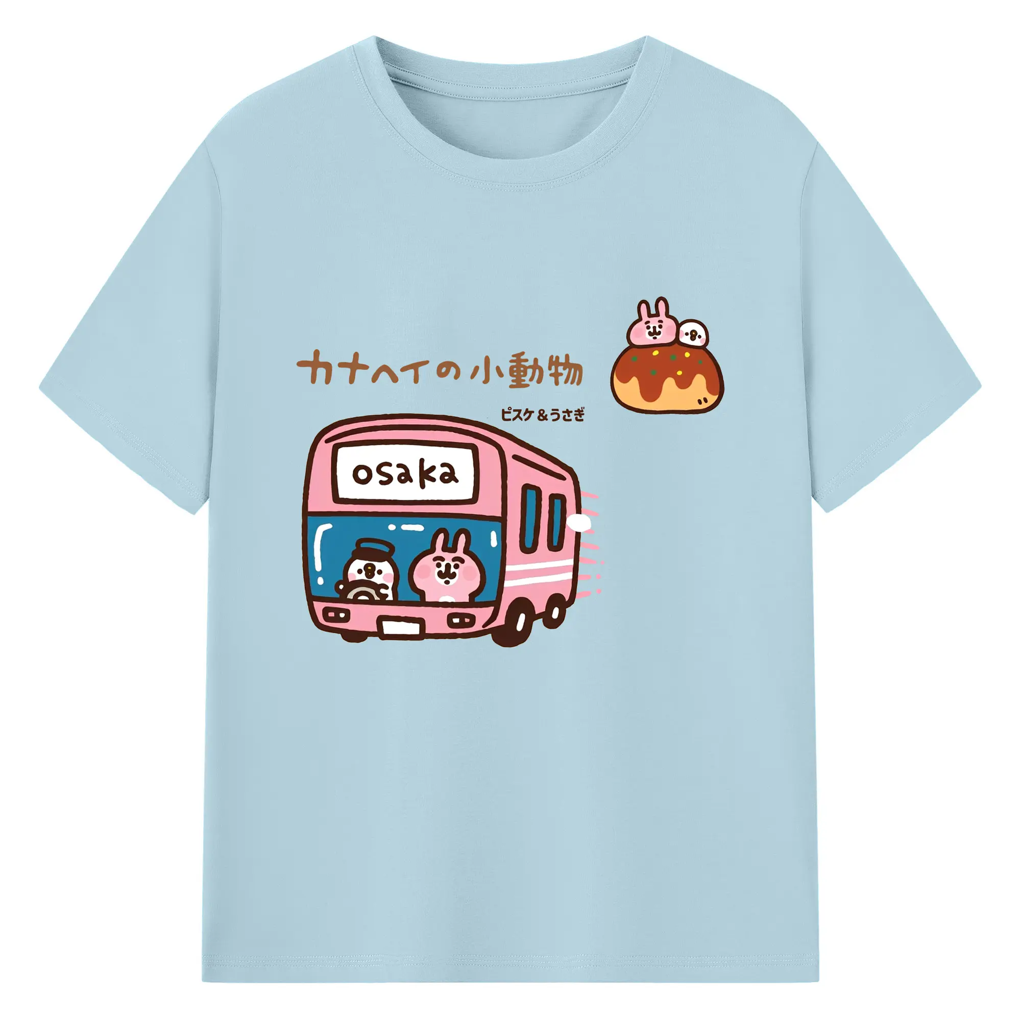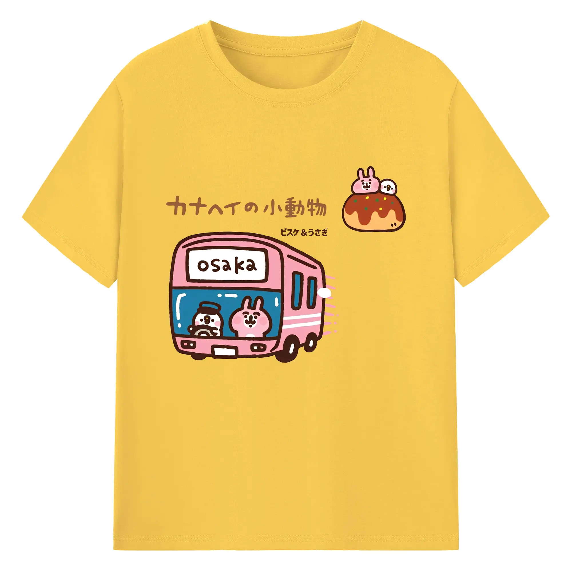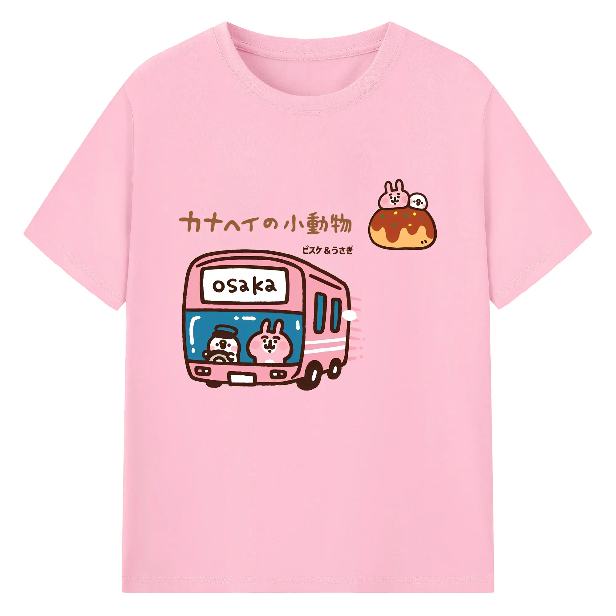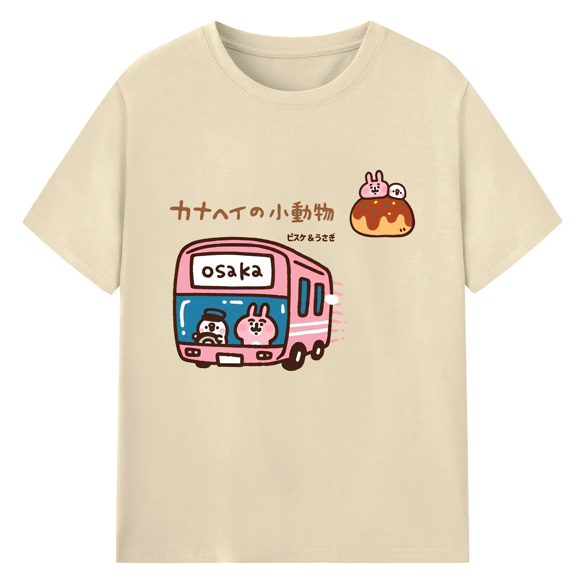 カナヘイの小動物ピスケ&うさぎのゆるっと道草旅 - 綿100% ヴィンテージ風 半袖Tシャツ ・ フロントプリント ・ 柔らか肌触り ・ 通気性 快適 ・ スポーツ カジュアル 外出用