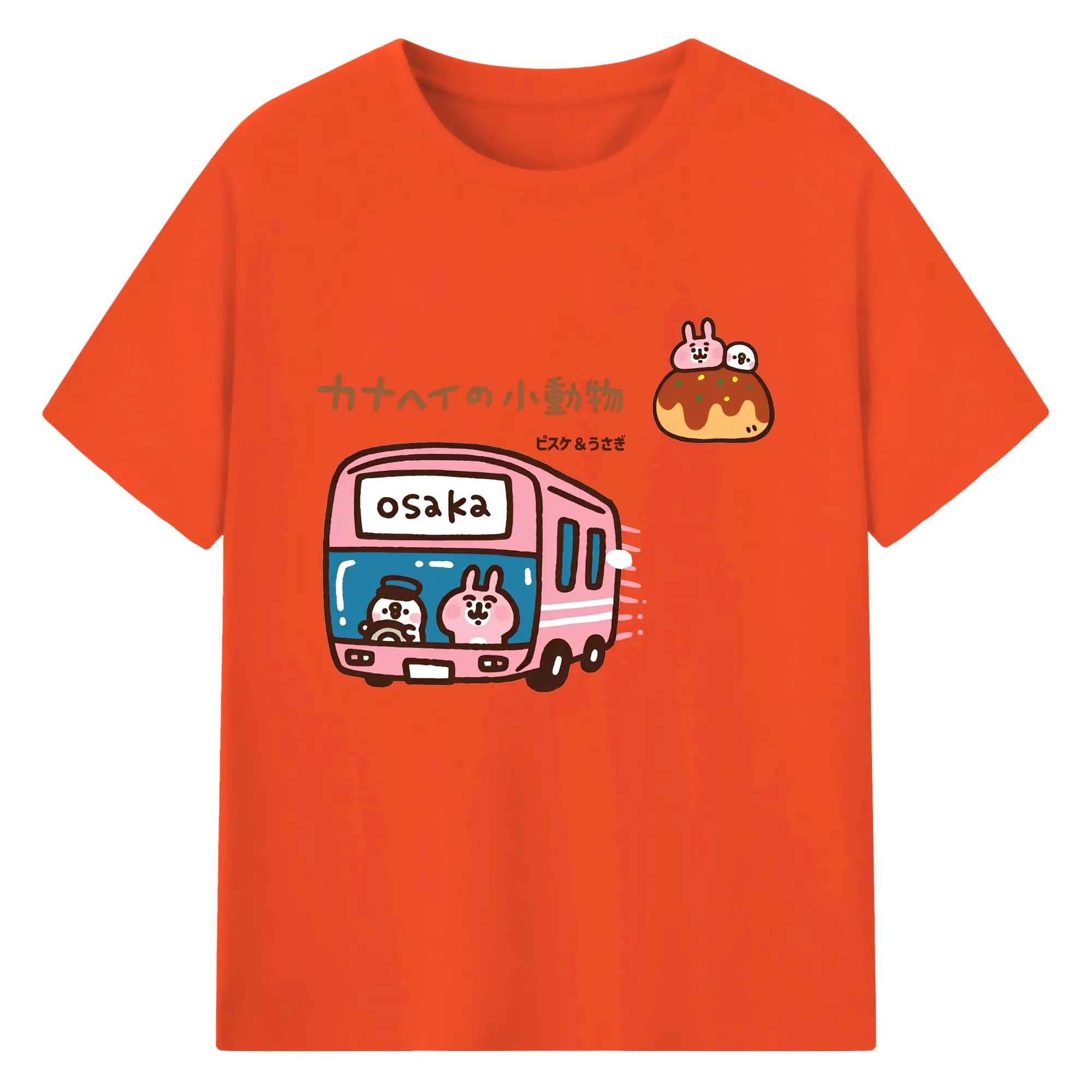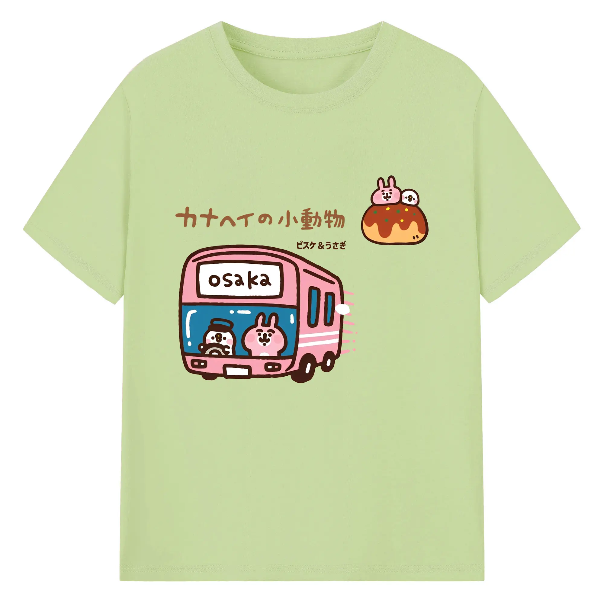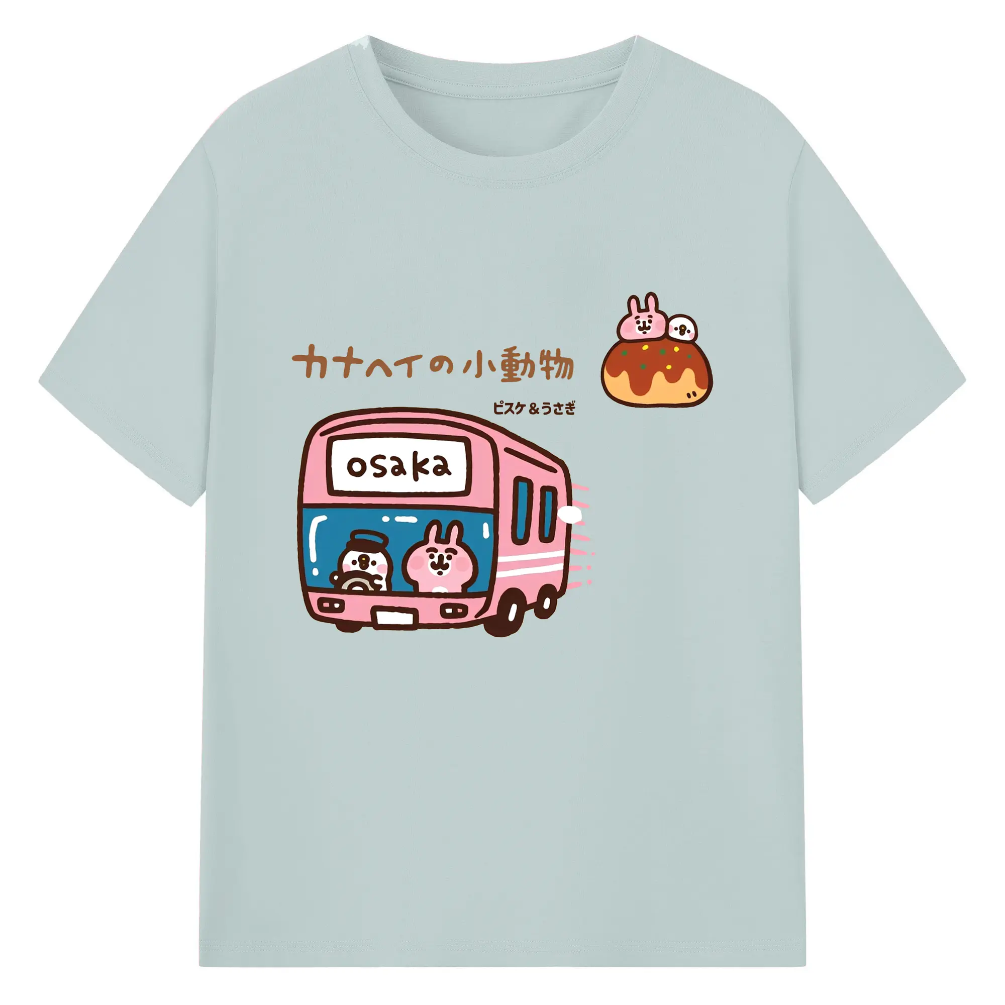 カナヘイの小動物ピスケ&うさぎのゆるっと道草旅 - 綿100% ヴィンテージ風 半袖Tシャツ ・ フロントプリント ・ 柔らか肌触り ・ 通気性 快適 ・ スポーツ カジュアル 外出用
