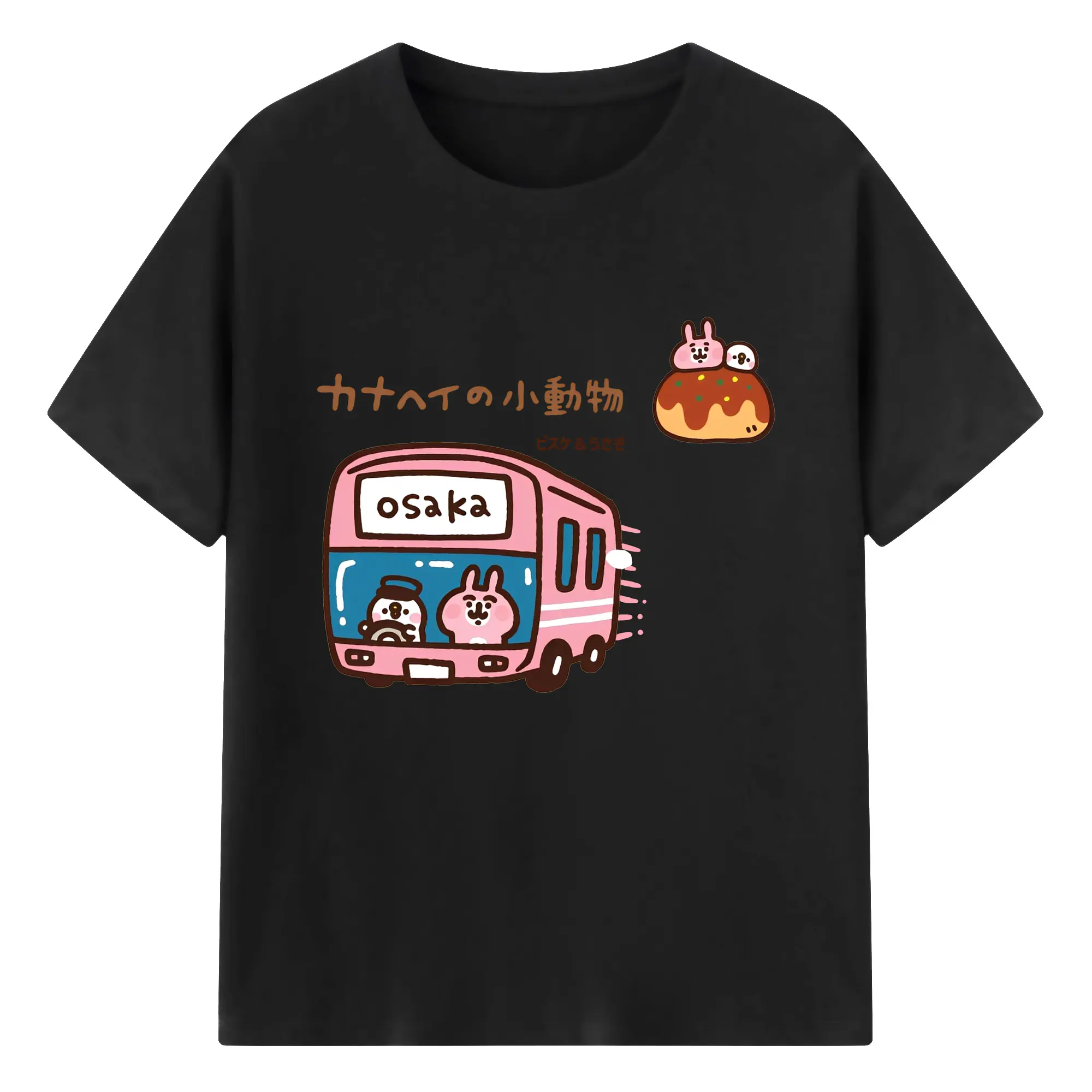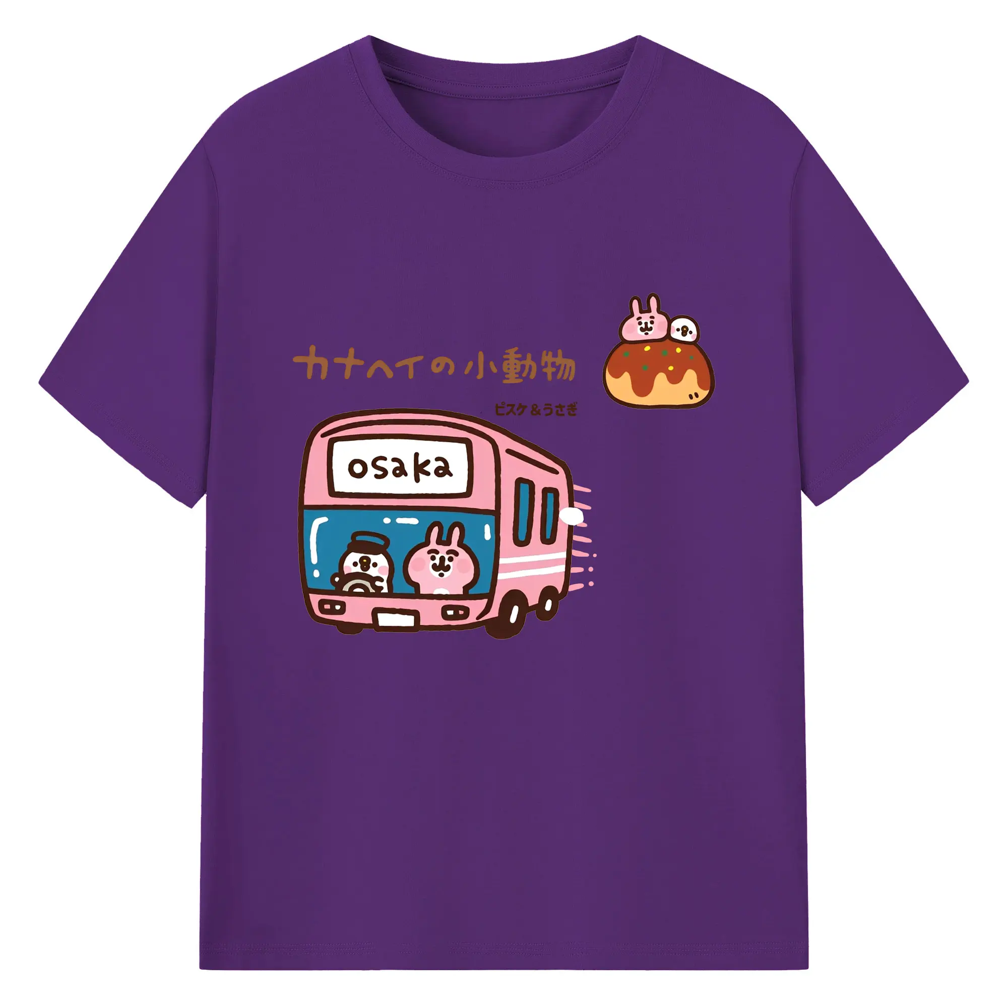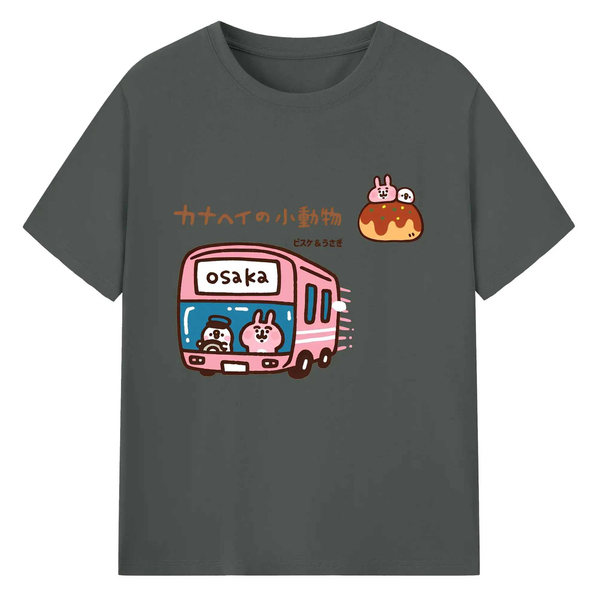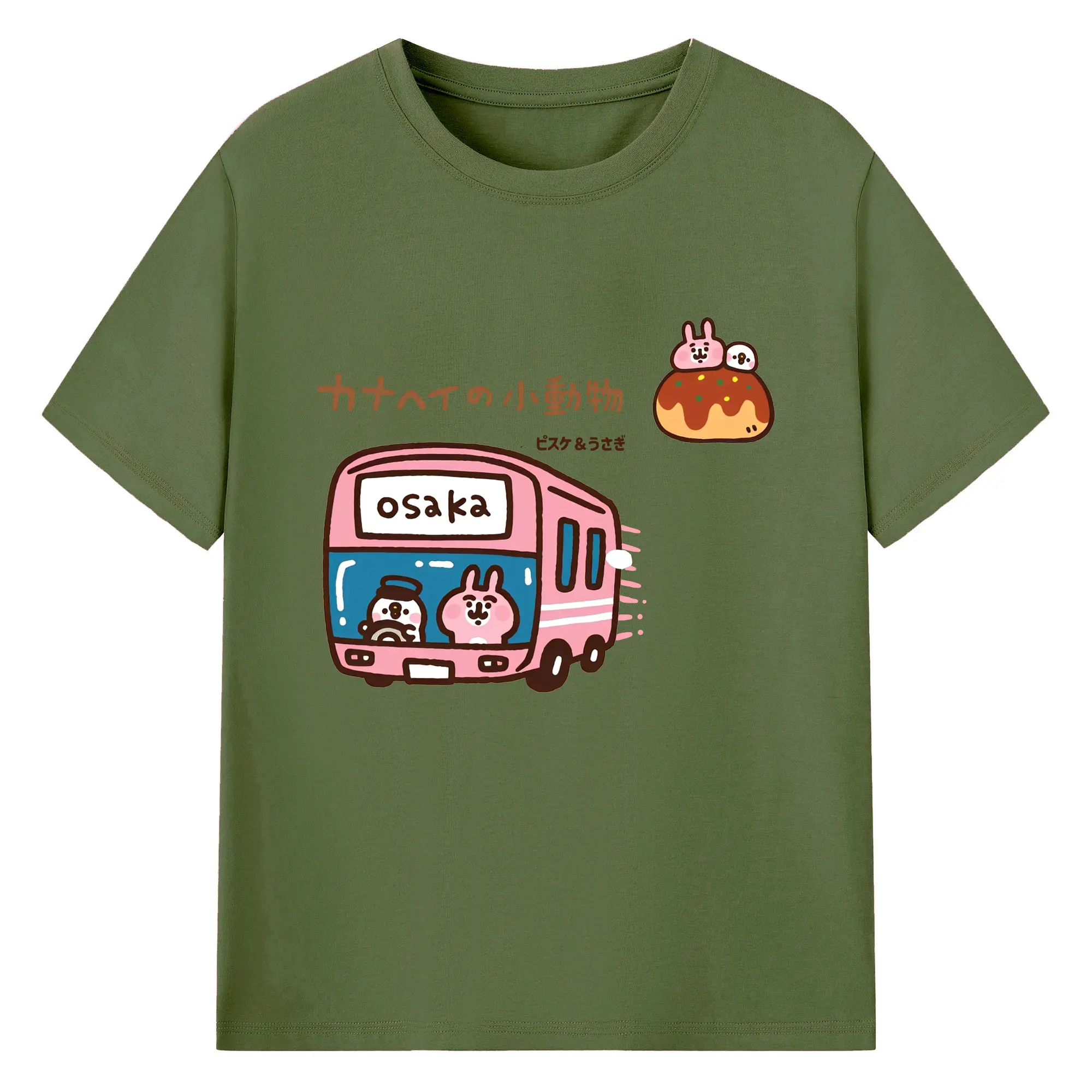 カナヘイの小動物ピスケ&うさぎのゆるっと道草旅 - 綿100% ヴィンテージ風 半袖Tシャツ ・ フロントプリント ・ 柔らか肌触り ・ 通気性 快適 ・ スポーツ カジュアル 外出用