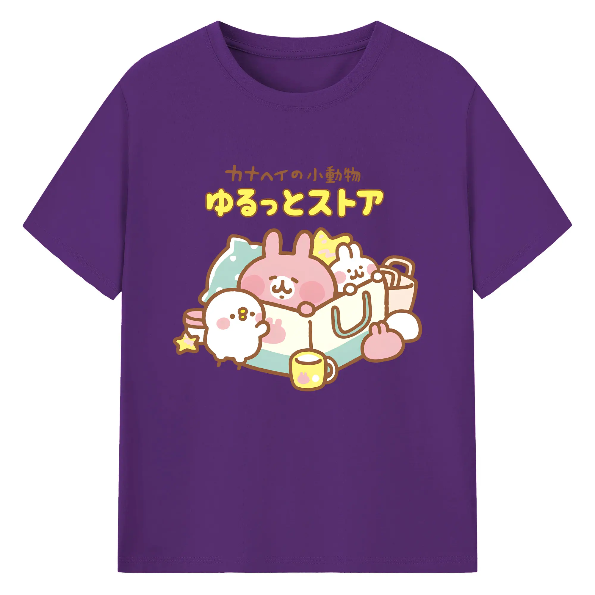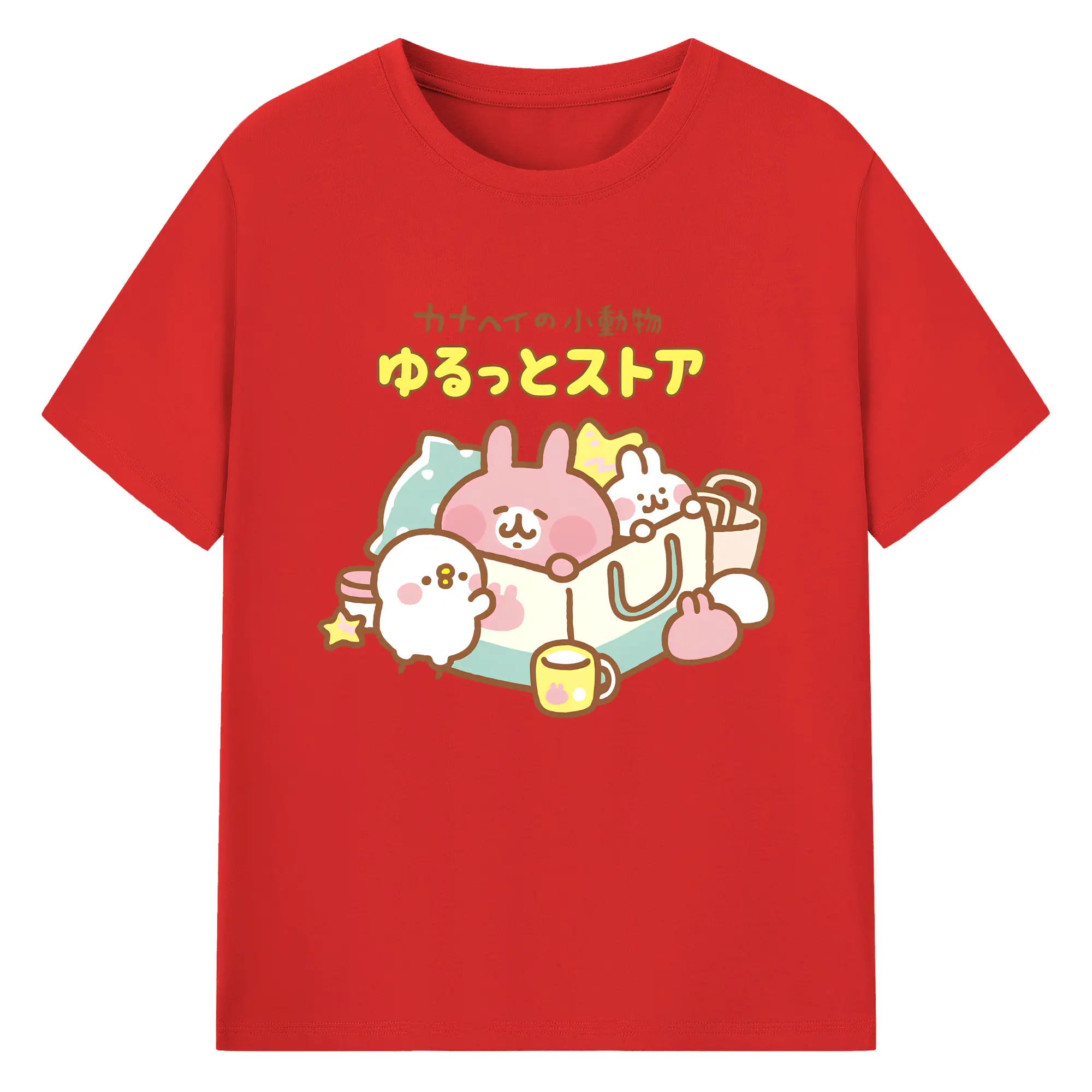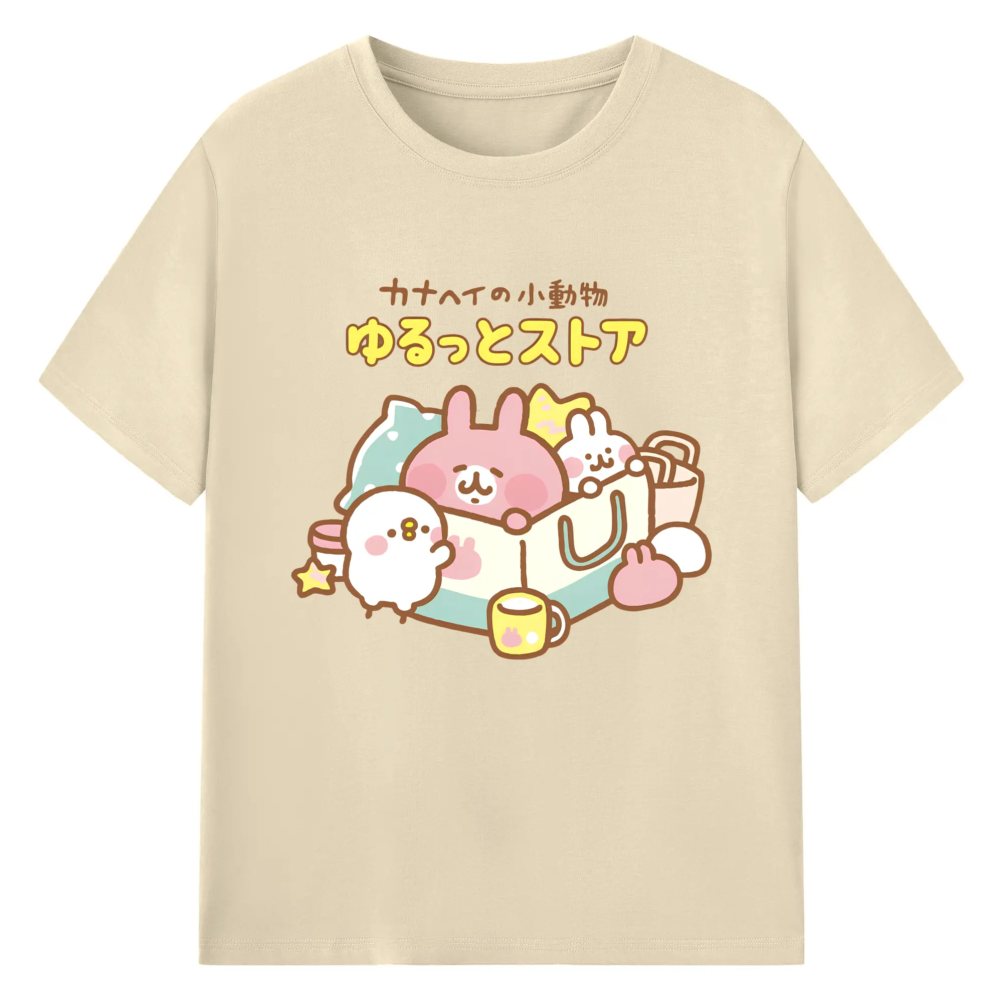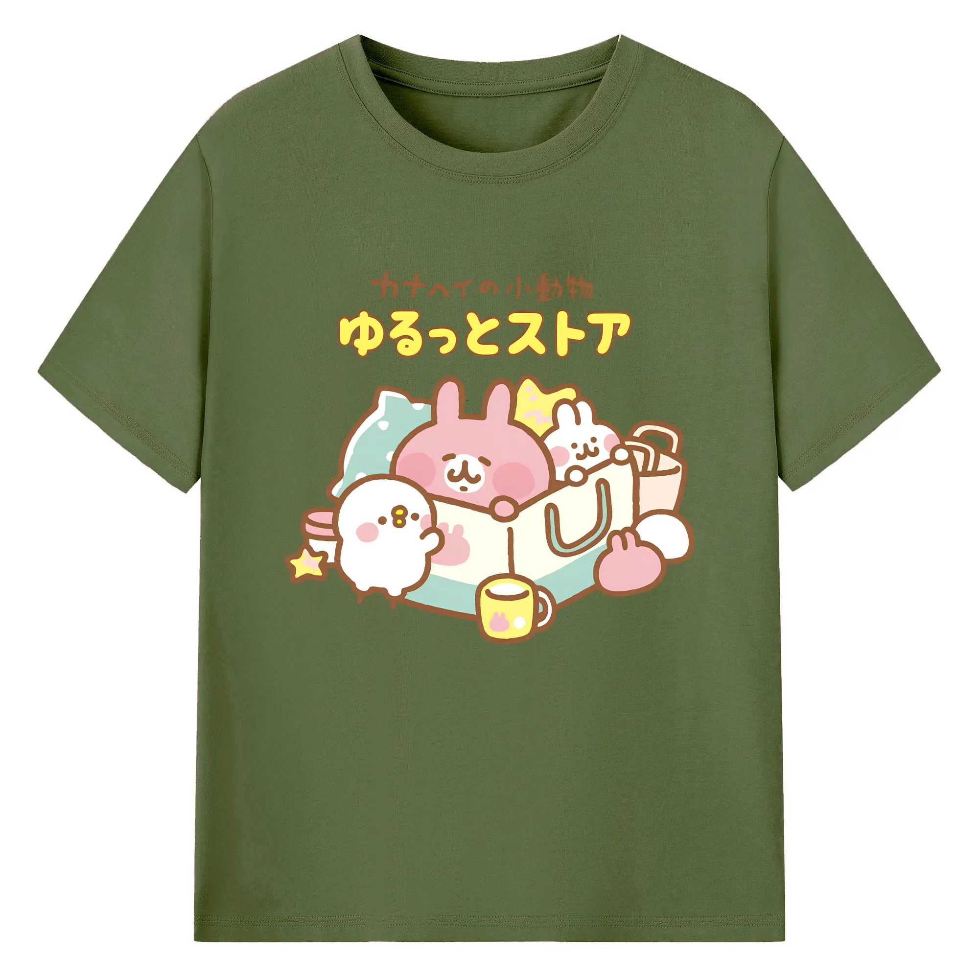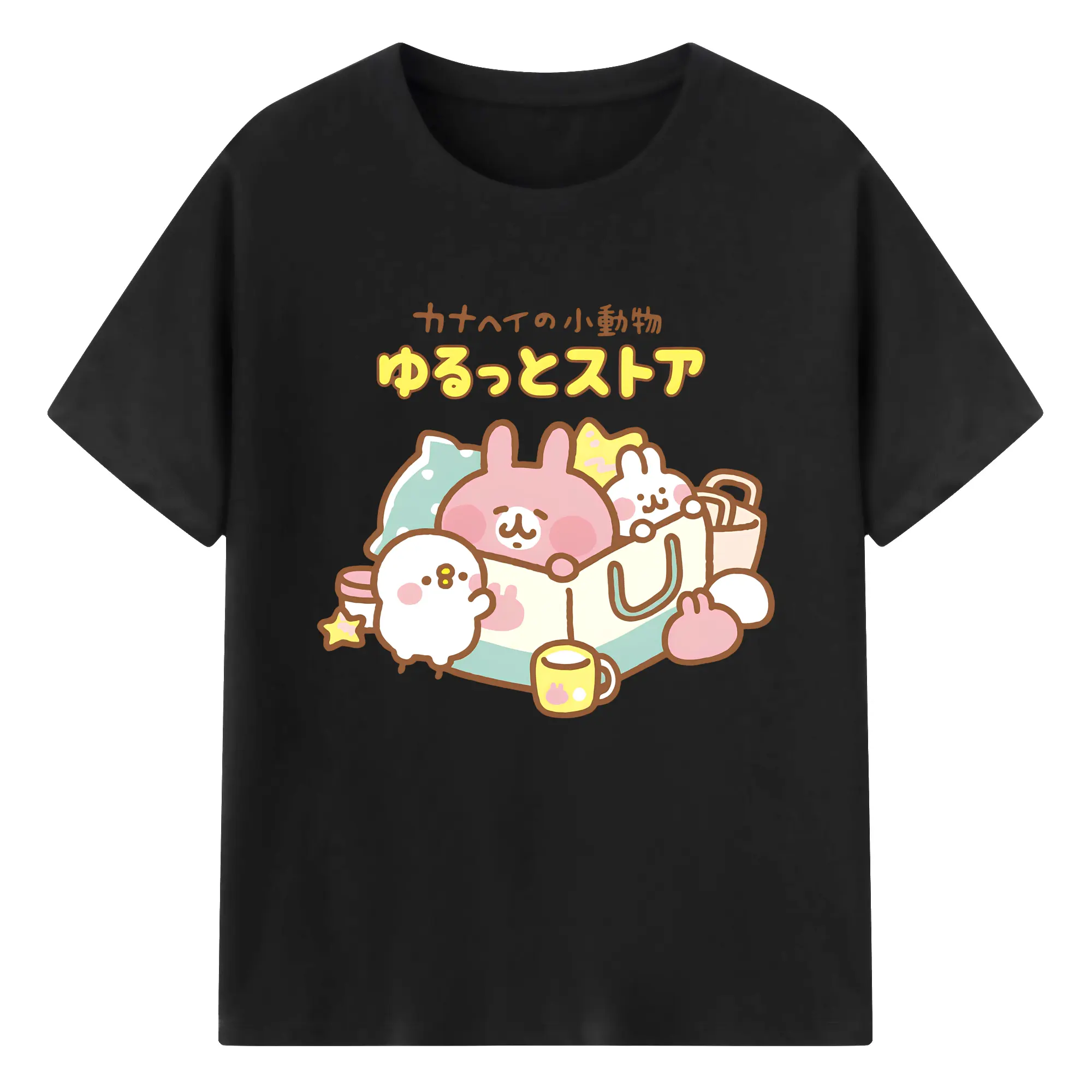 カナヘイの小動物ゆるっとストア - 綿100% ヴィンテージ風 半袖Tシャツ ・ フロントプリント ・ 柔らか肌触り ・ 通気性 快適 ・ スポーツ カジュアル 外出用