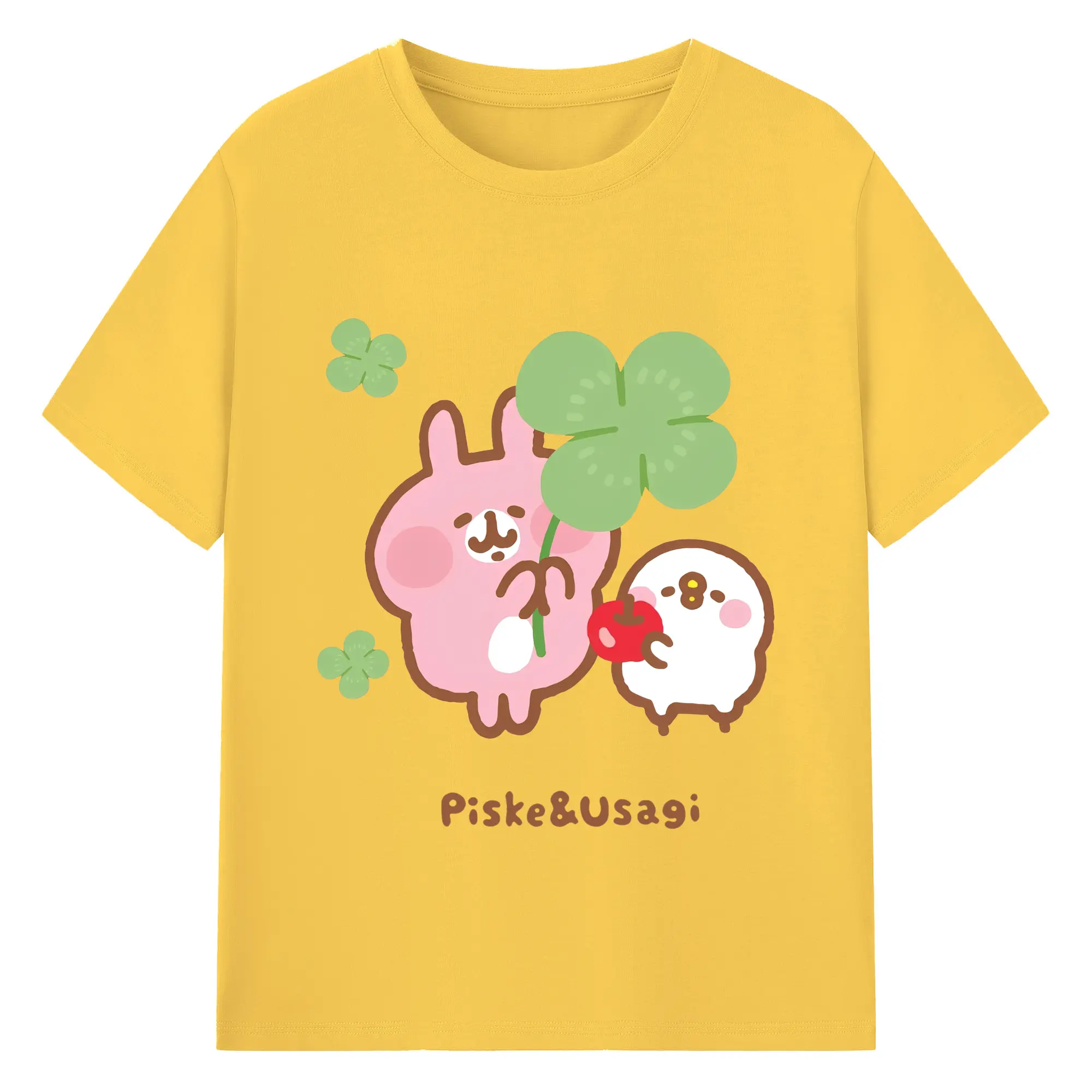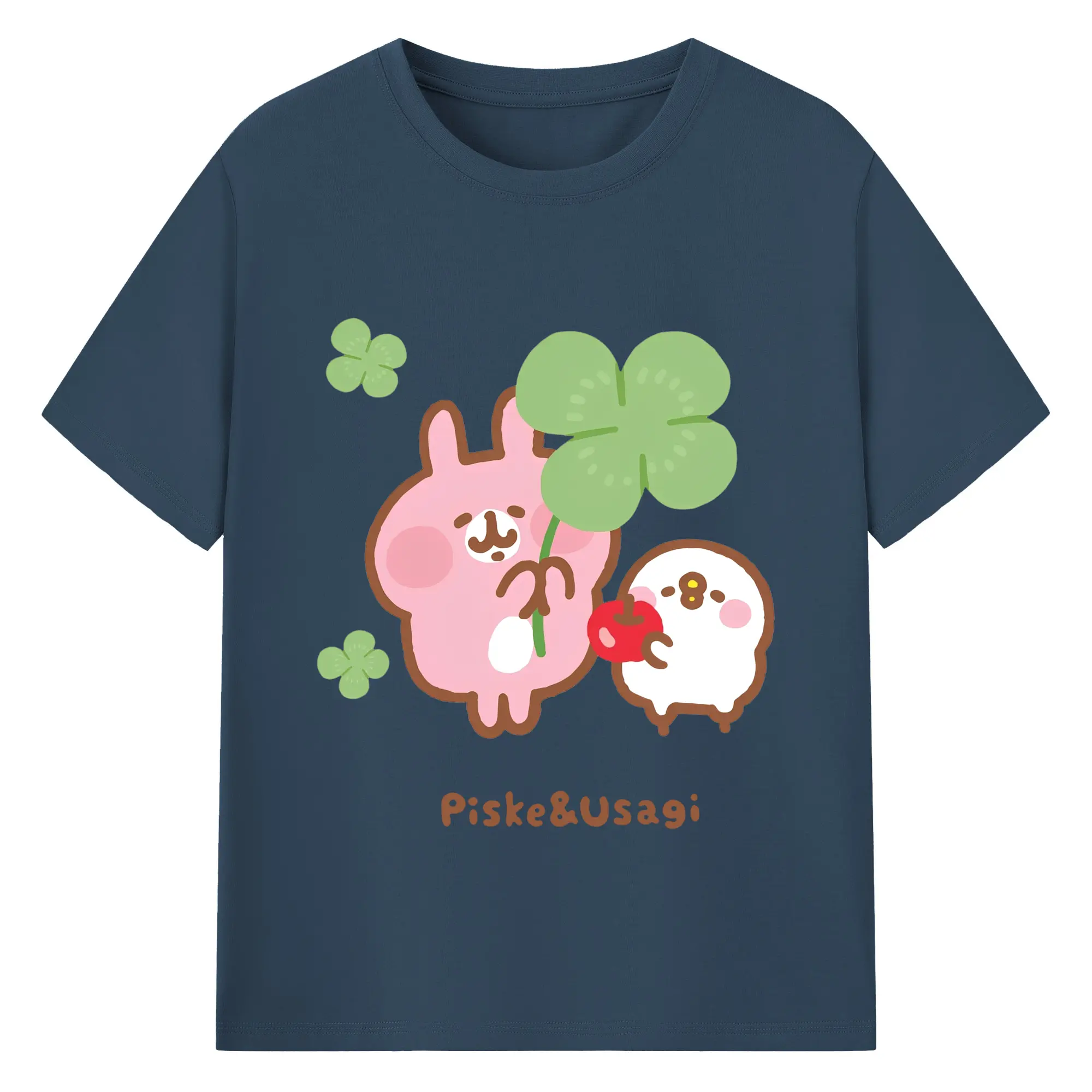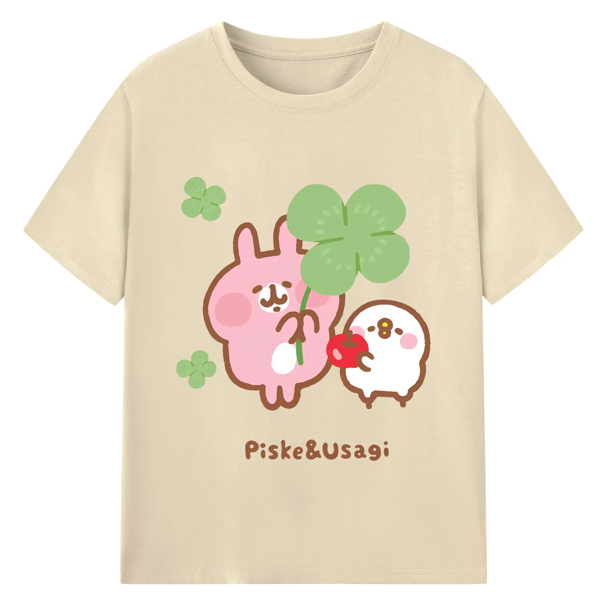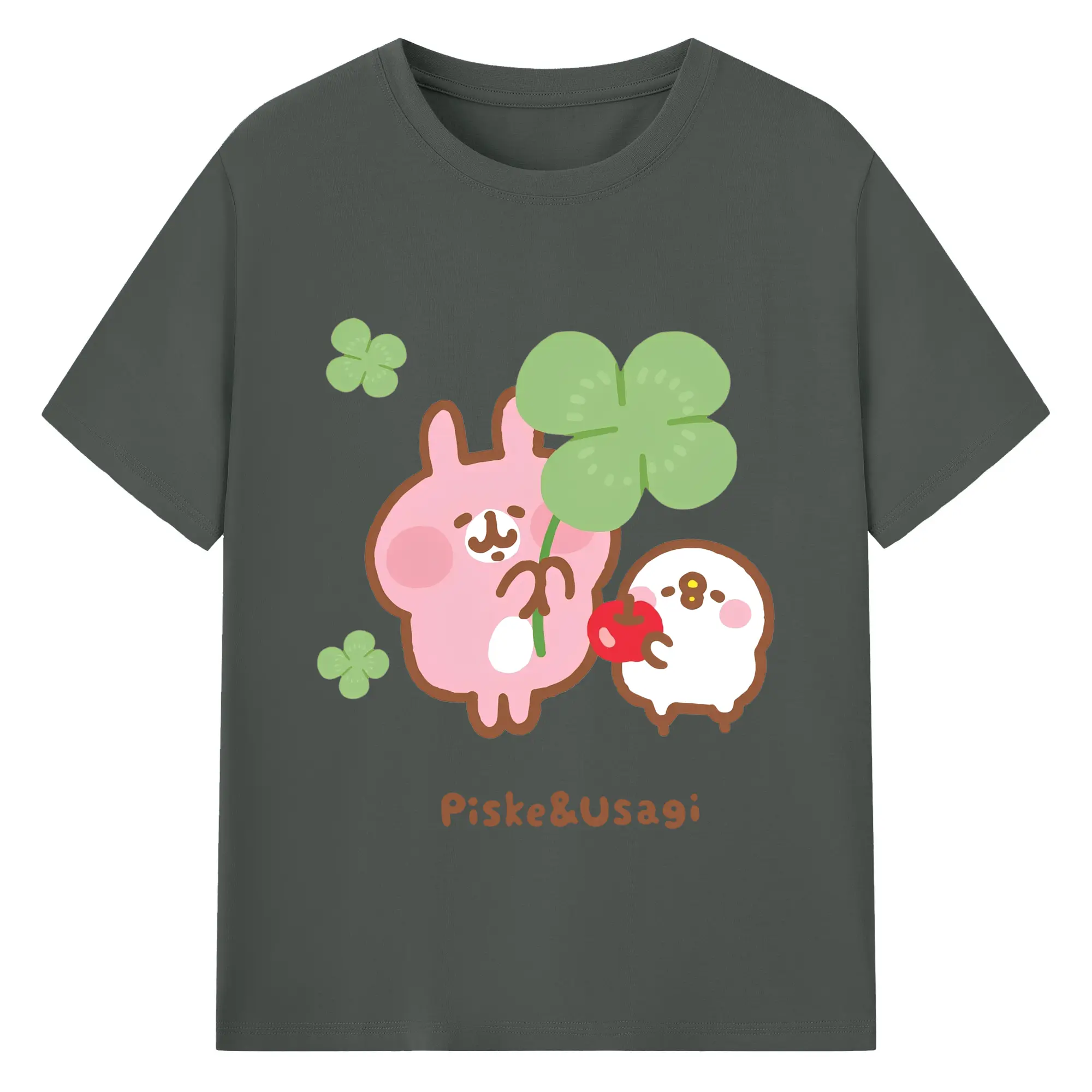 カナヘイの小動物ピスケ&うさぎ 幸運祈願限定 - 綿100% ヴィンテージ風 半袖Tシャツ ・ フロントプリント ・ 柔らか肌触り ・ 通気性 快適 ・ スポーツ カジュアル 外出用