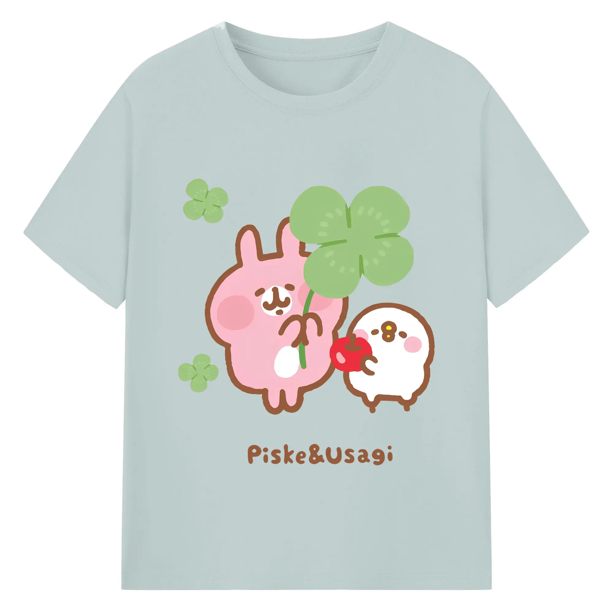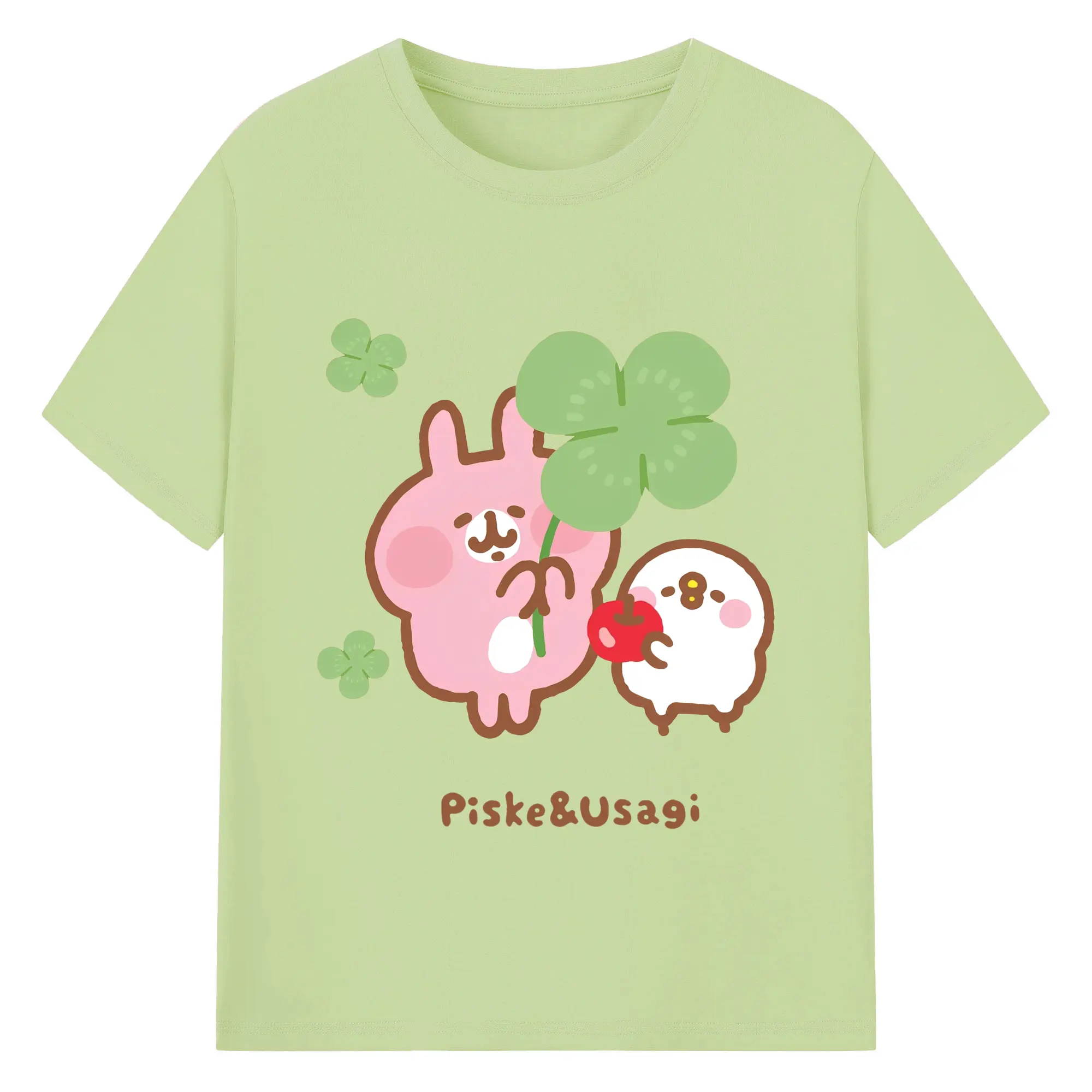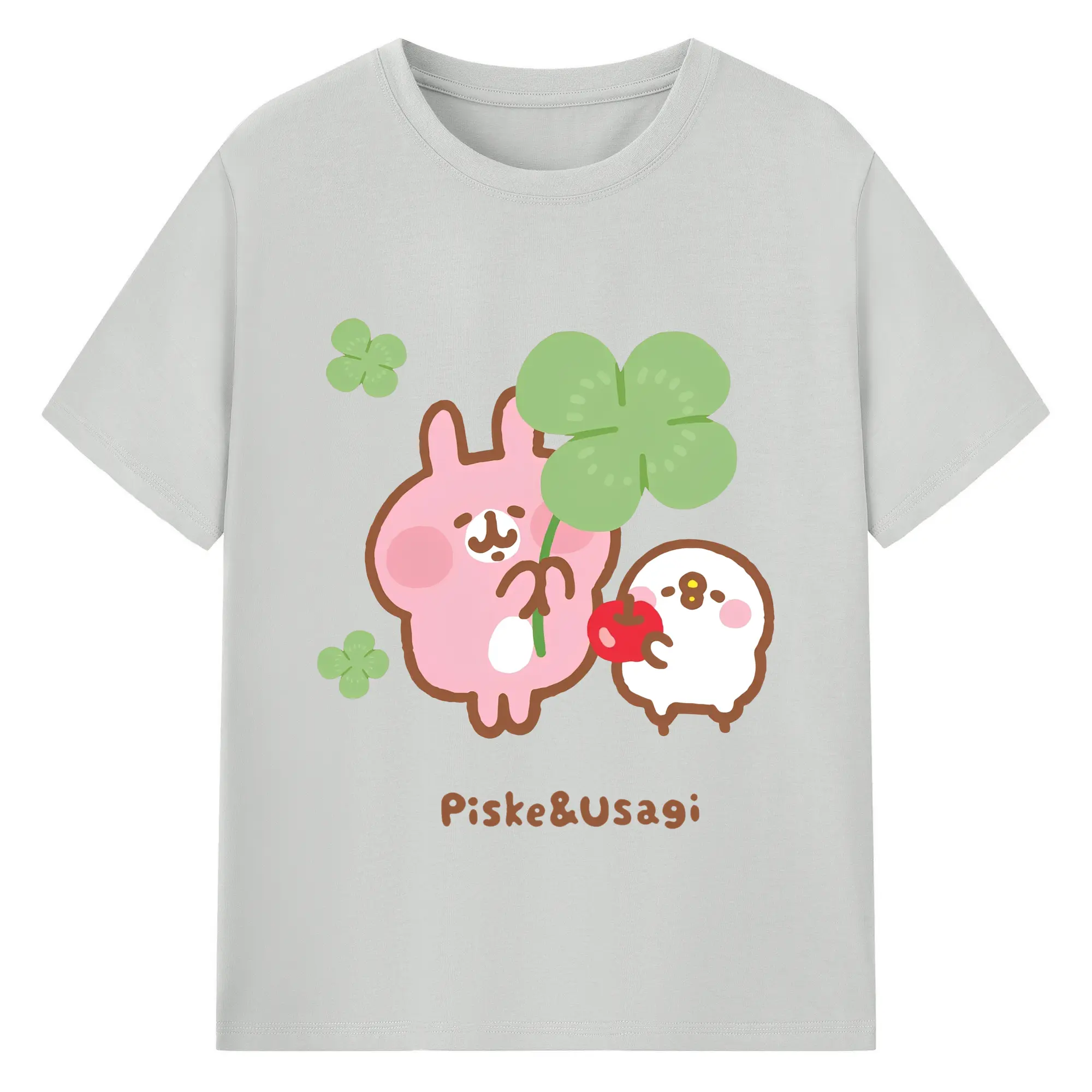 カナヘイの小動物ピスケ&うさぎ 幸運祈願限定 - 綿100% ヴィンテージ風 半袖Tシャツ ・ フロントプリント ・ 柔らか肌触り ・ 通気性 快適 ・ スポーツ カジュアル 外出用