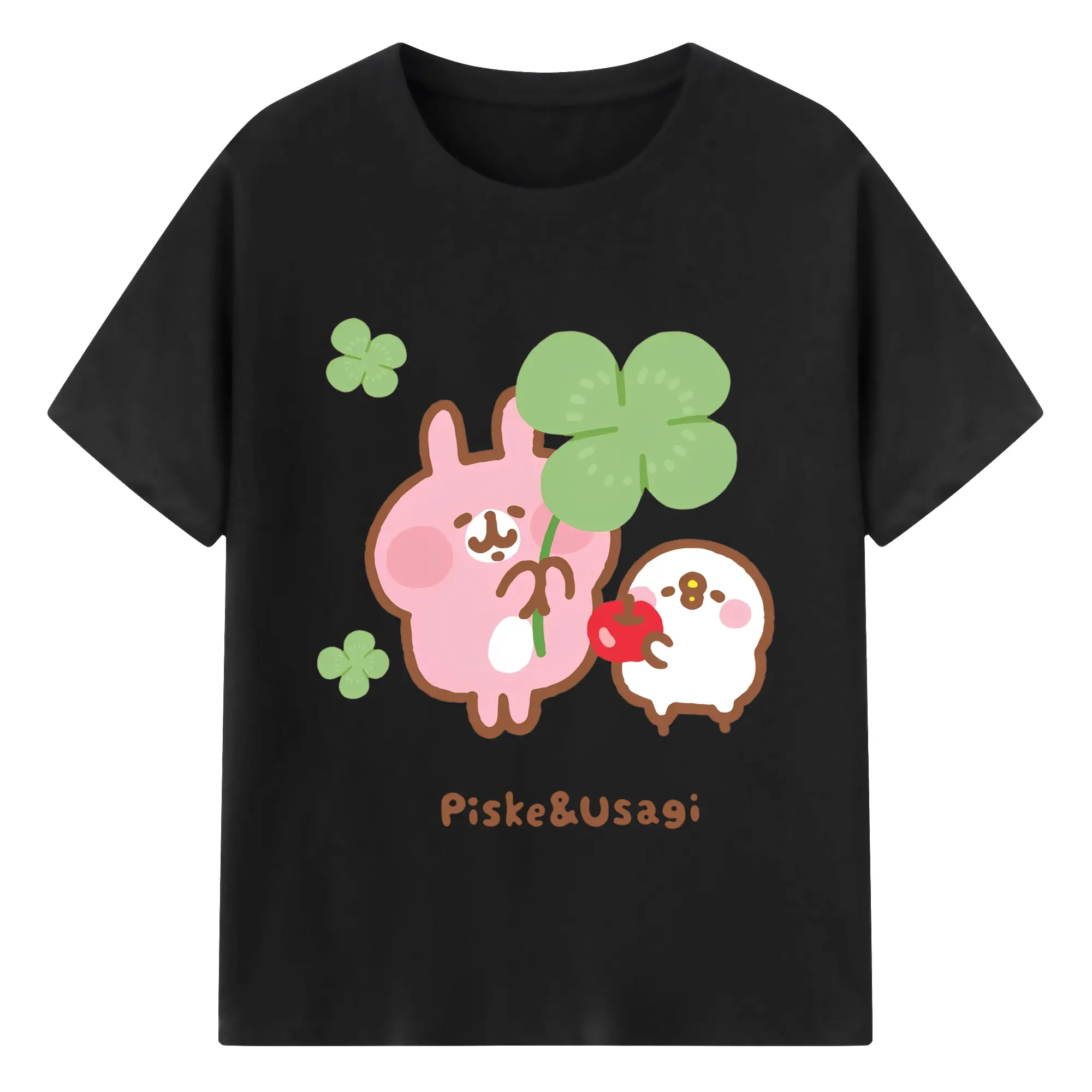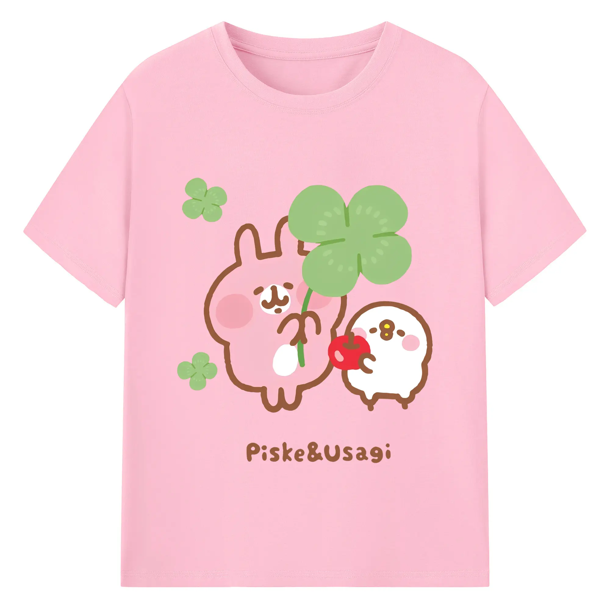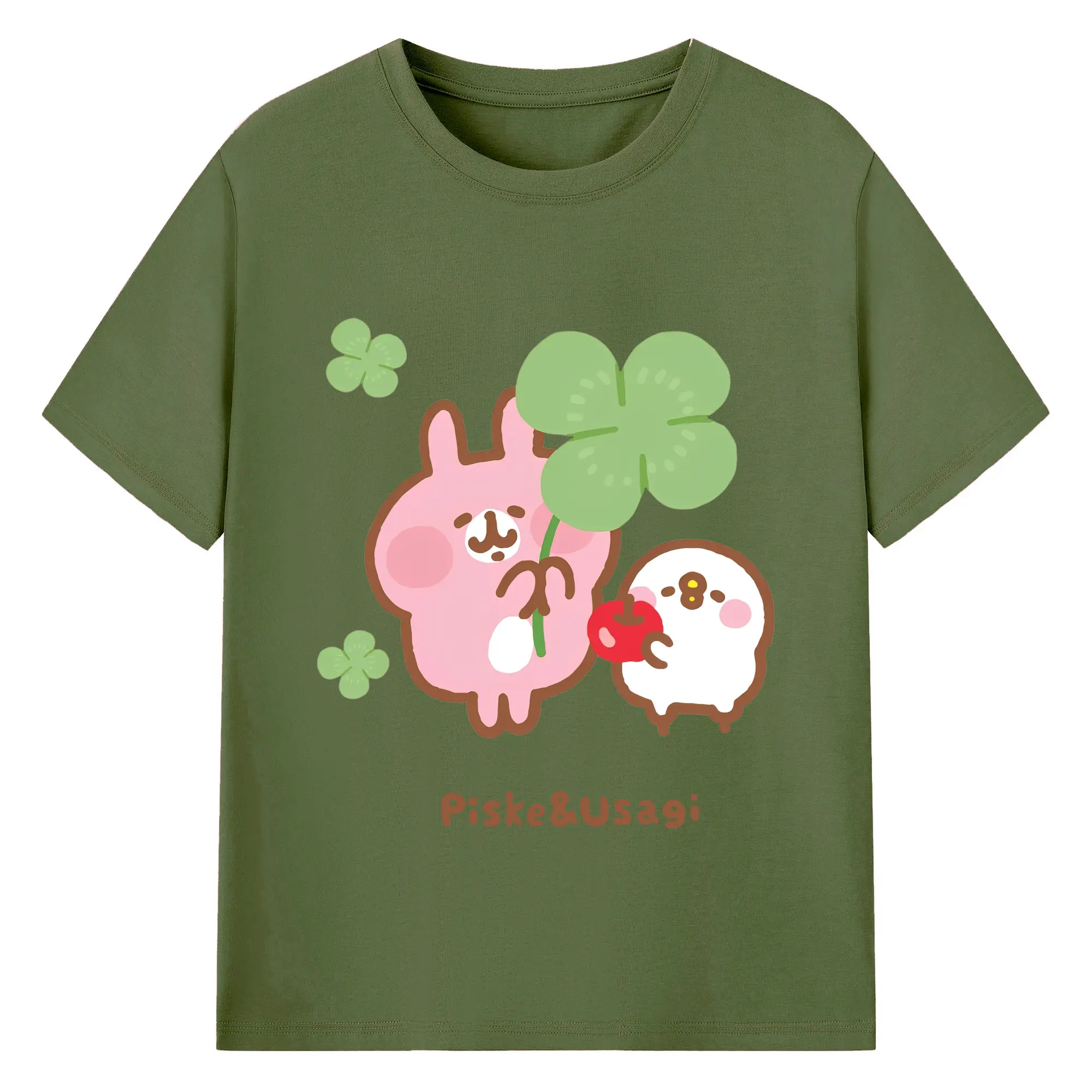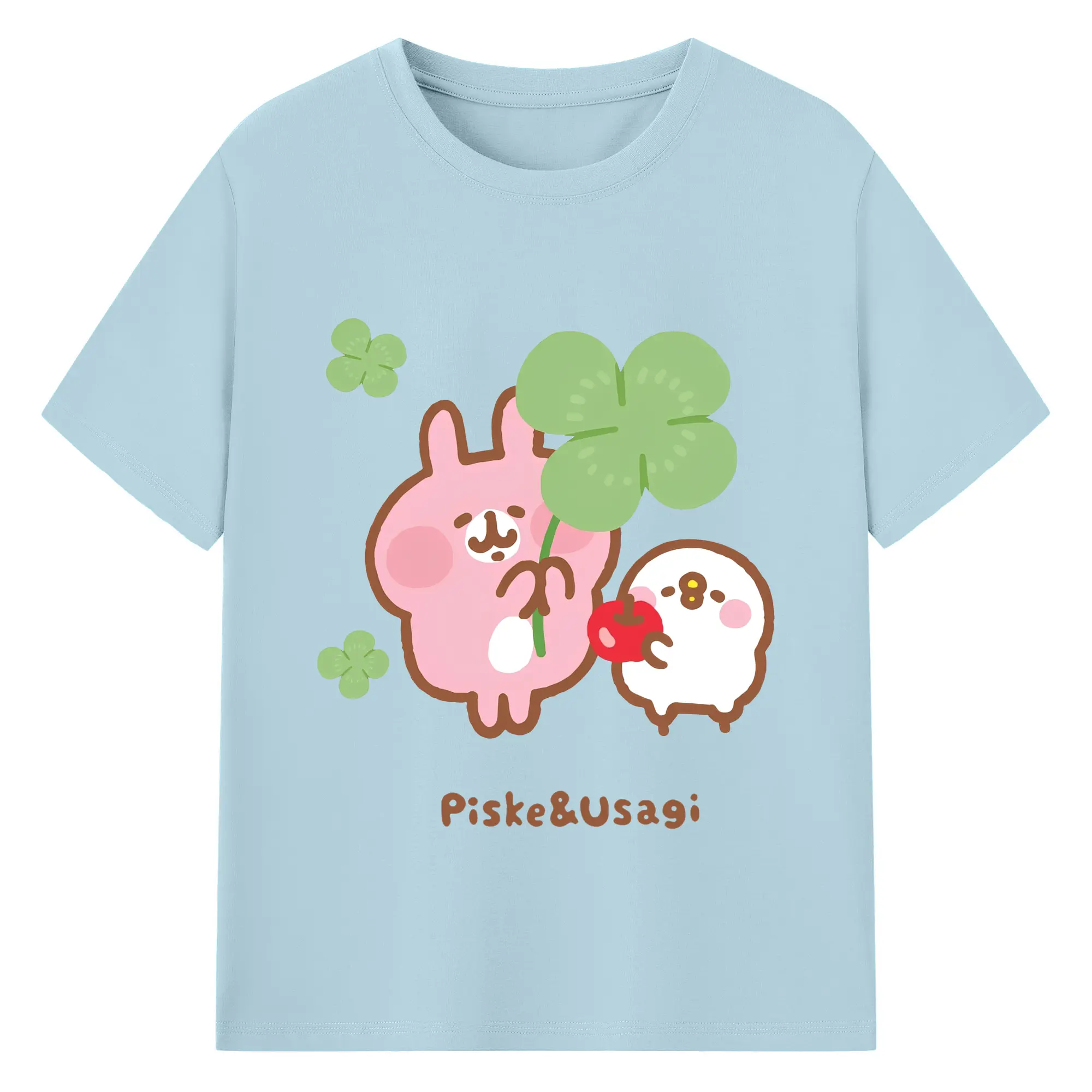 カナヘイの小動物ピスケ&うさぎ 幸運祈願限定 - 綿100% ヴィンテージ風 半袖Tシャツ ・ フロントプリント ・ 柔らか肌触り ・ 通気性 快適 ・ スポーツ カジュアル 外出用