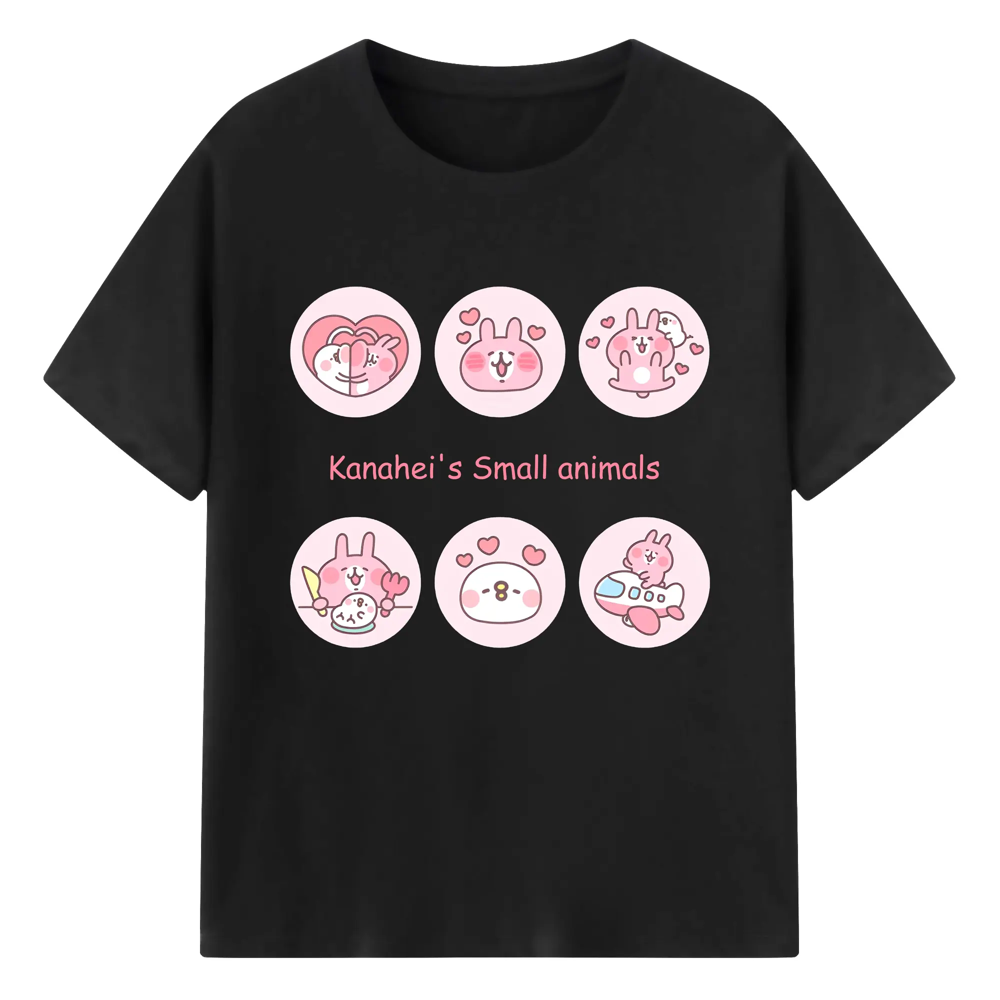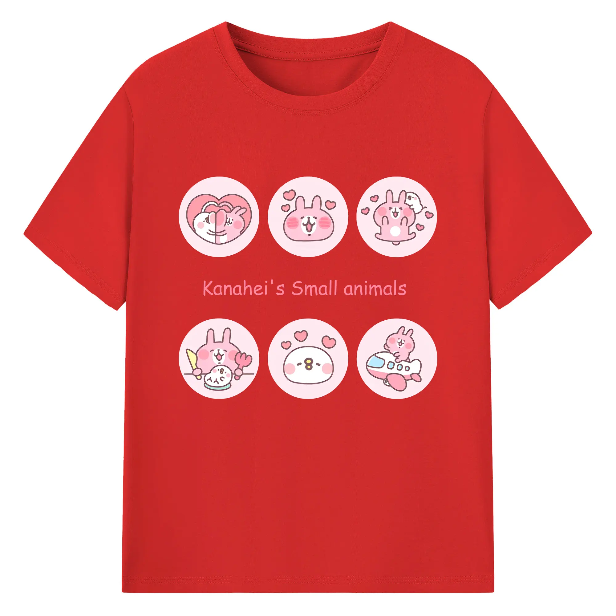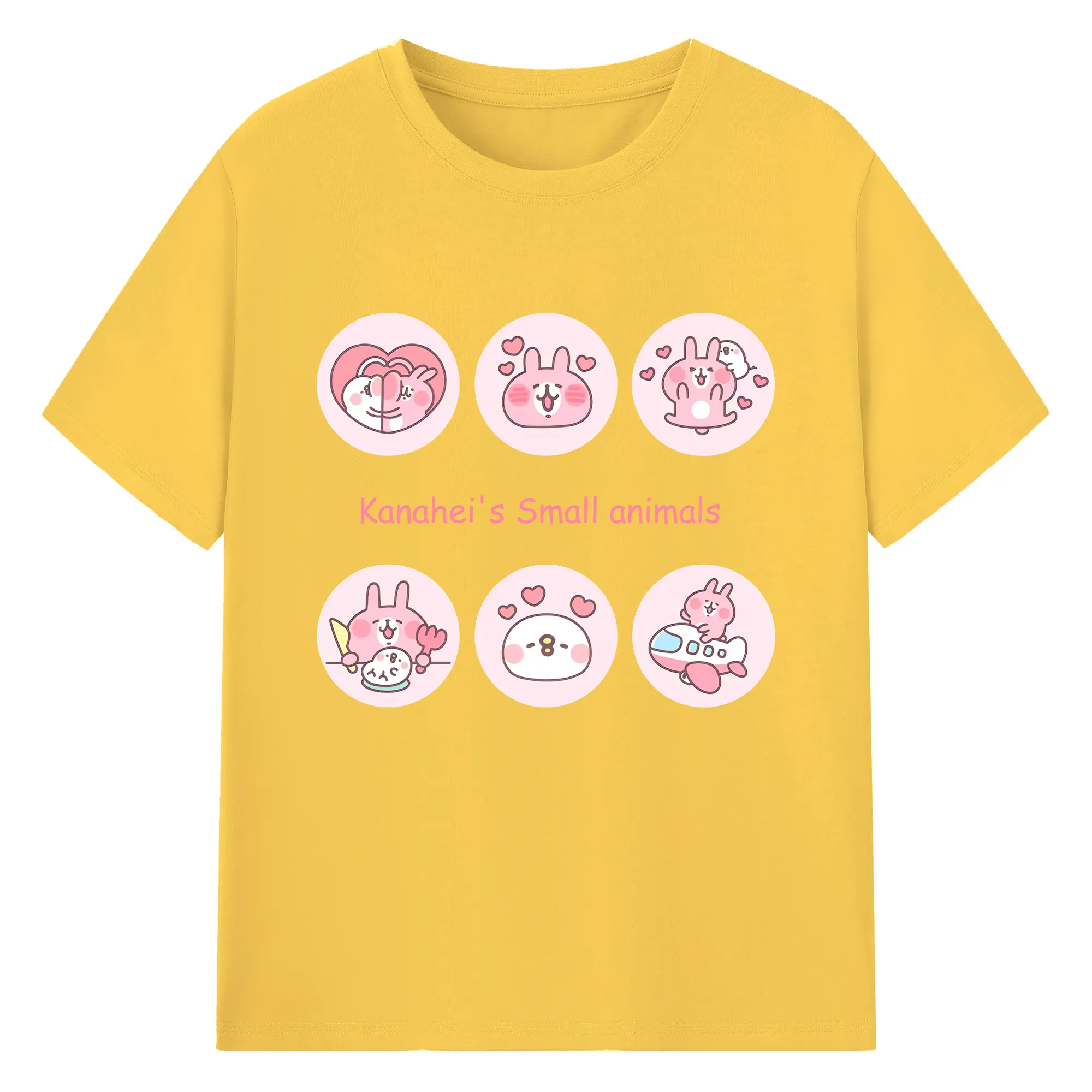 カナヘイの小動物笑顔あふれるハッピータイム - 綿100% ヴィンテージ風 半袖Tシャツ ・ フロントプリント ・ 柔らか肌触り ・ 通気性 快適 ・ スポーツ カジュアル 外出用