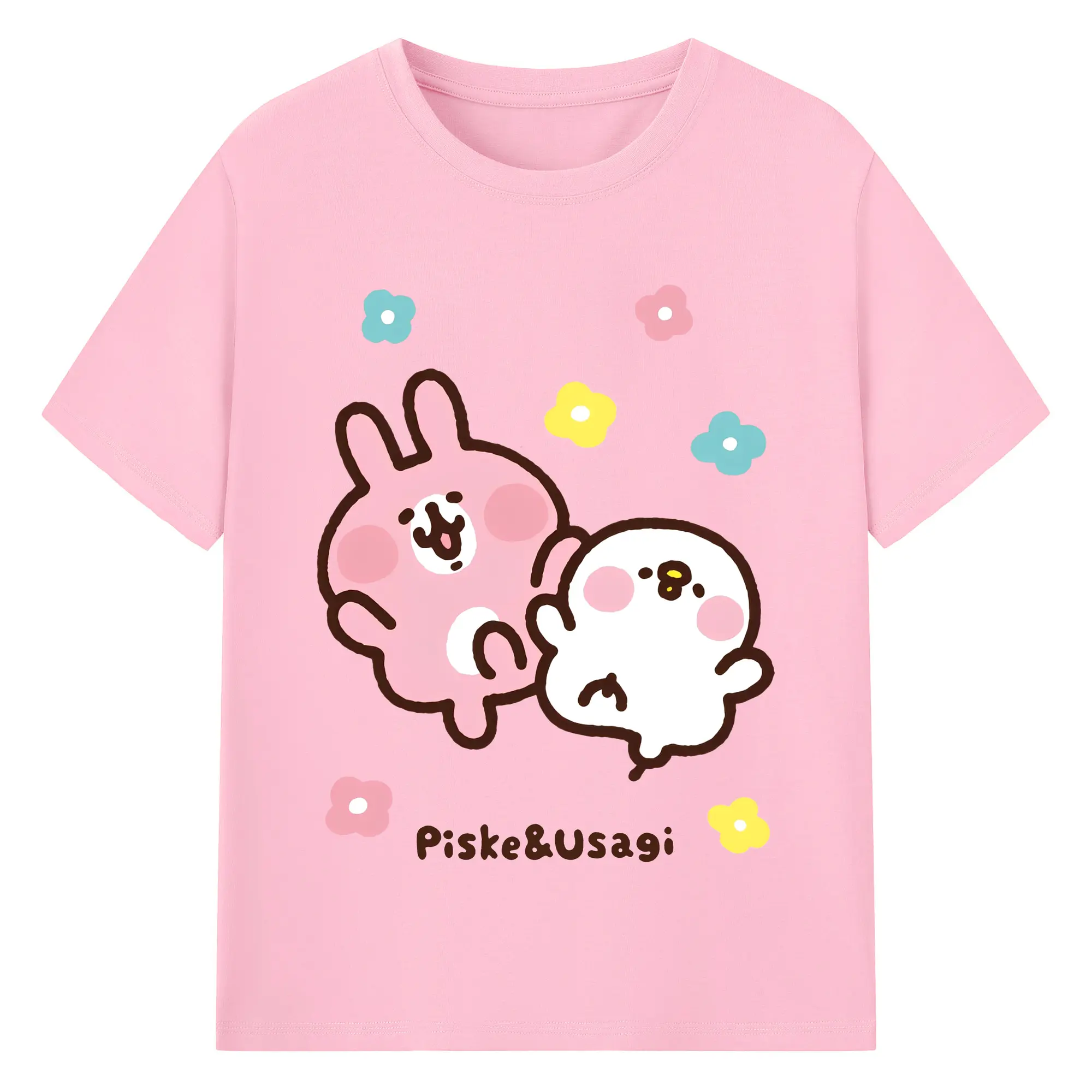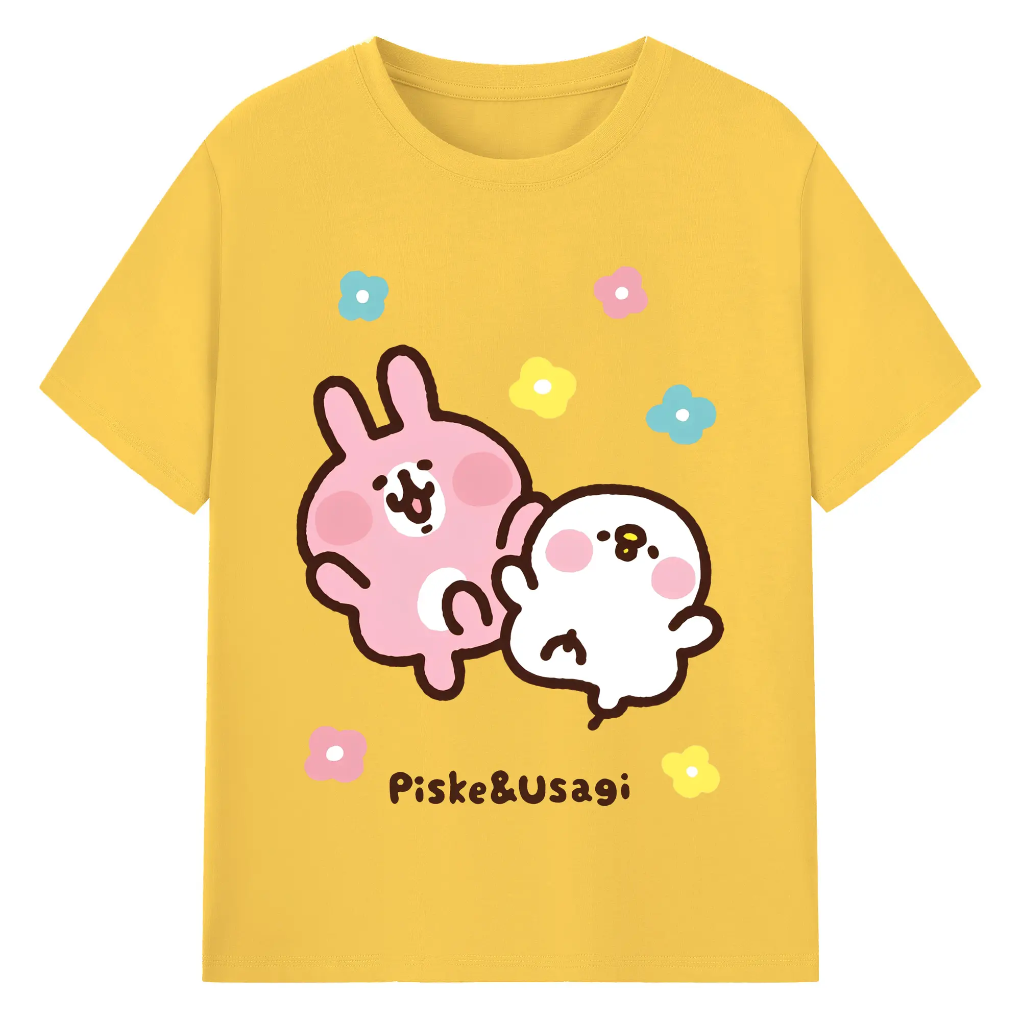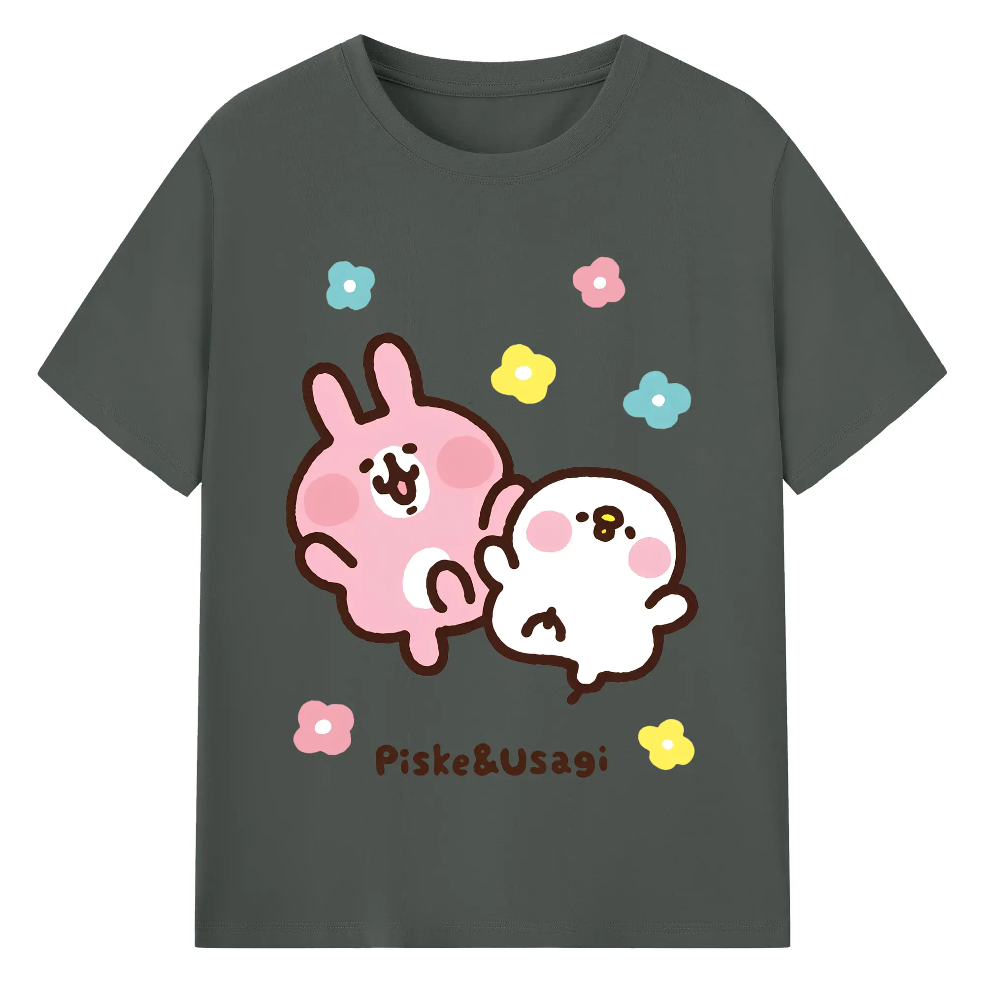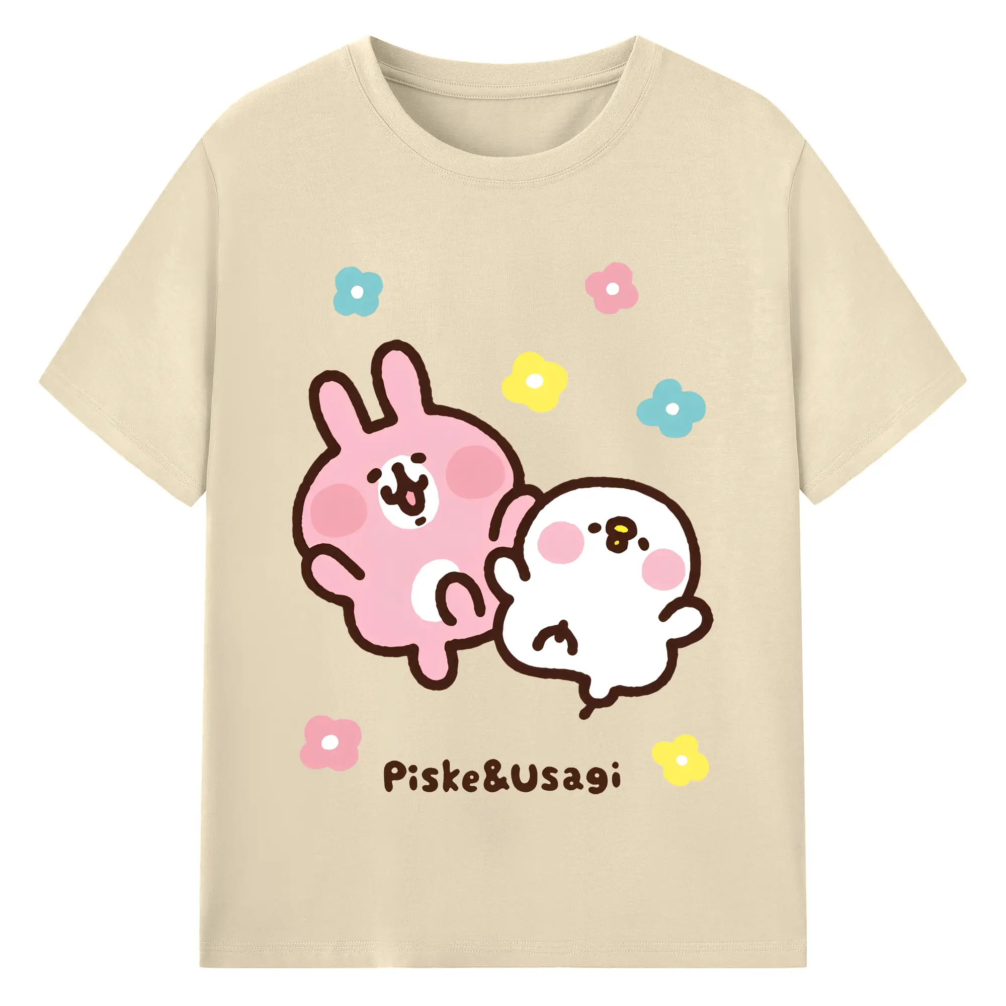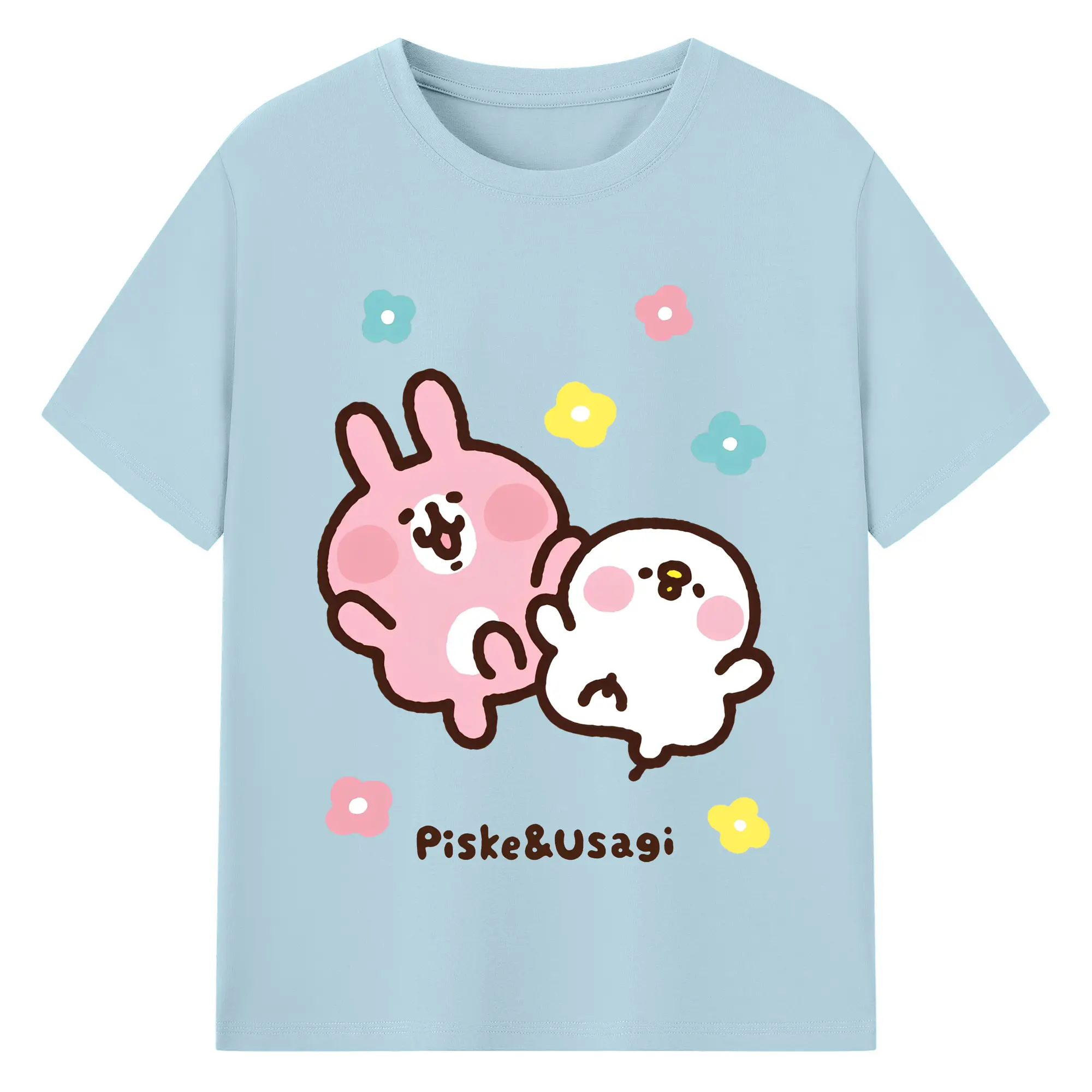 カナヘイの小動物かわいい仕草いっぱい - 綿100% 半袖Tシャツ ・ フロントプリント ・ 快適 通気性 ・ 日常使い 散歩 スポーツ用