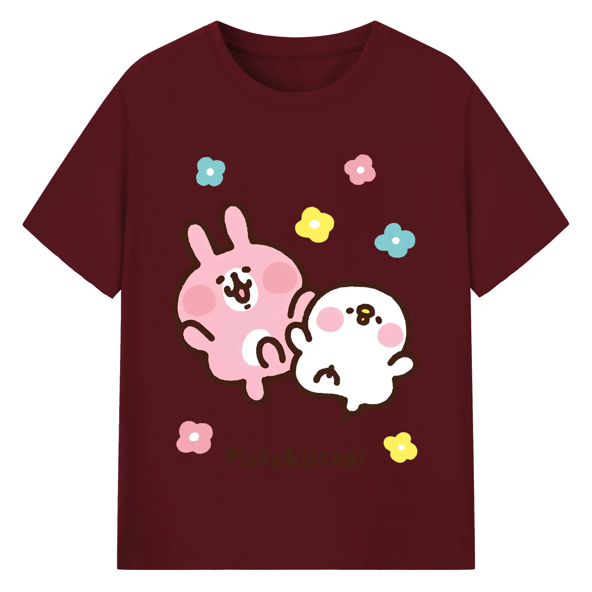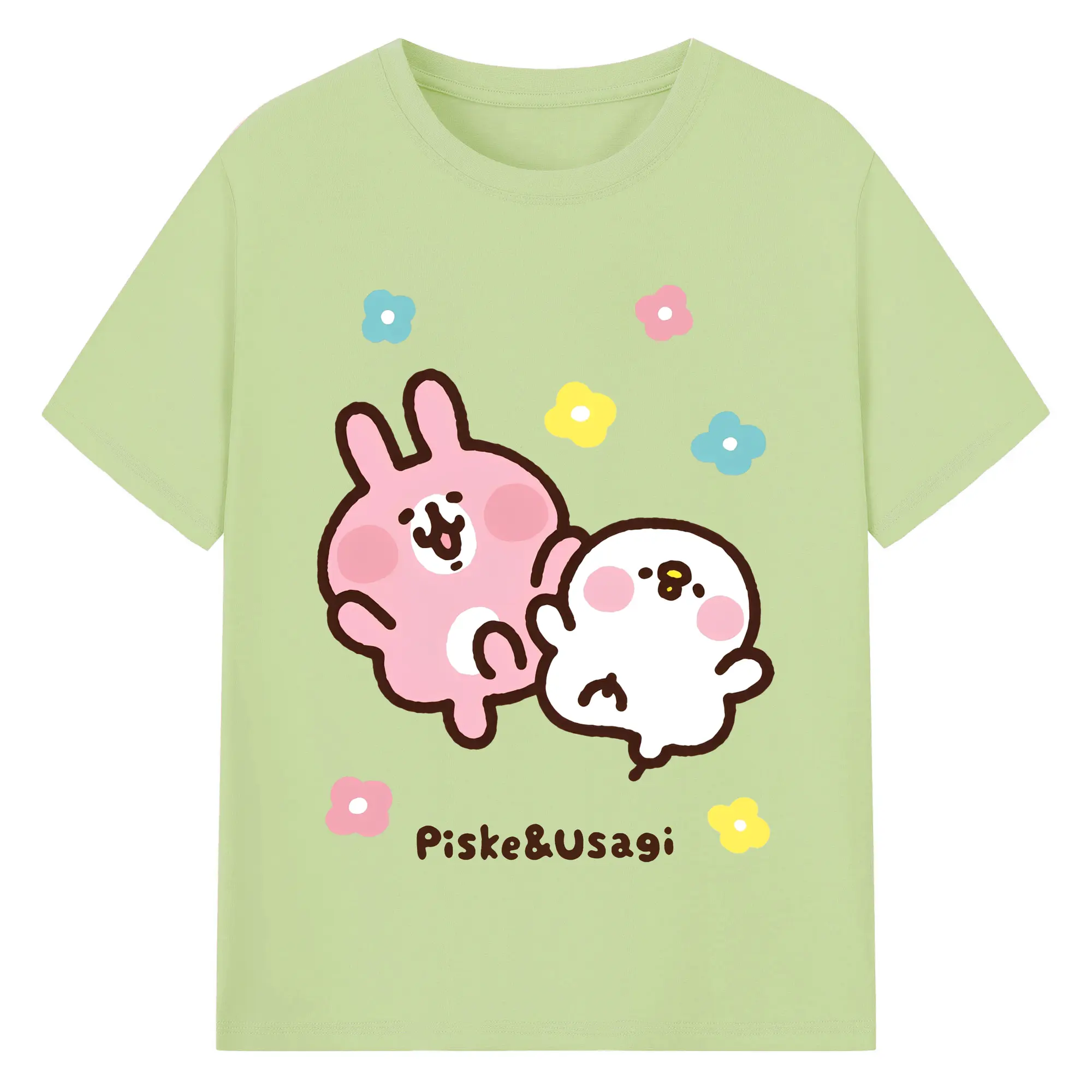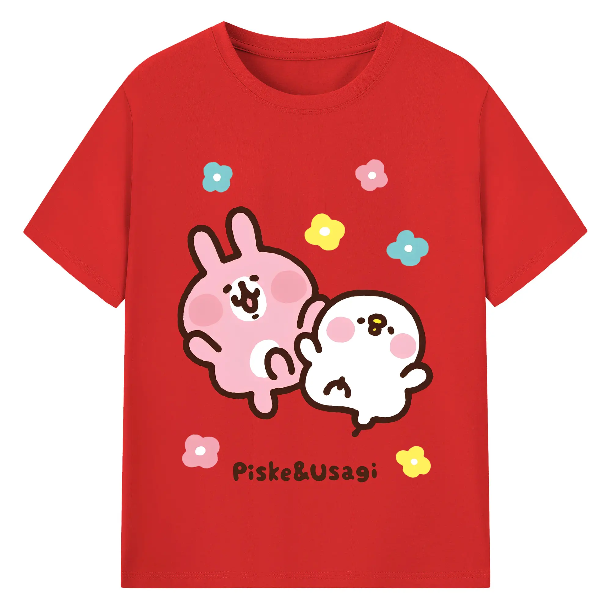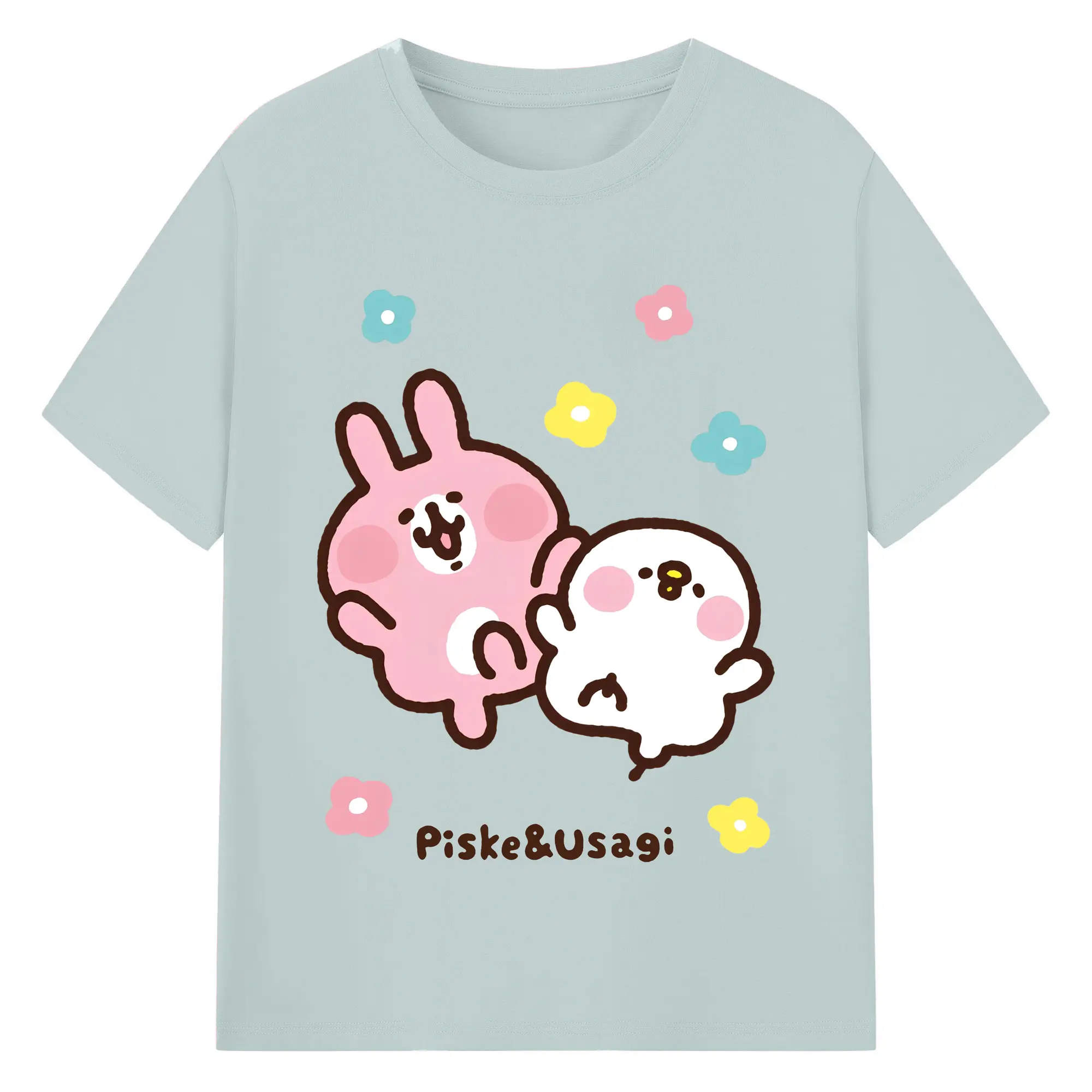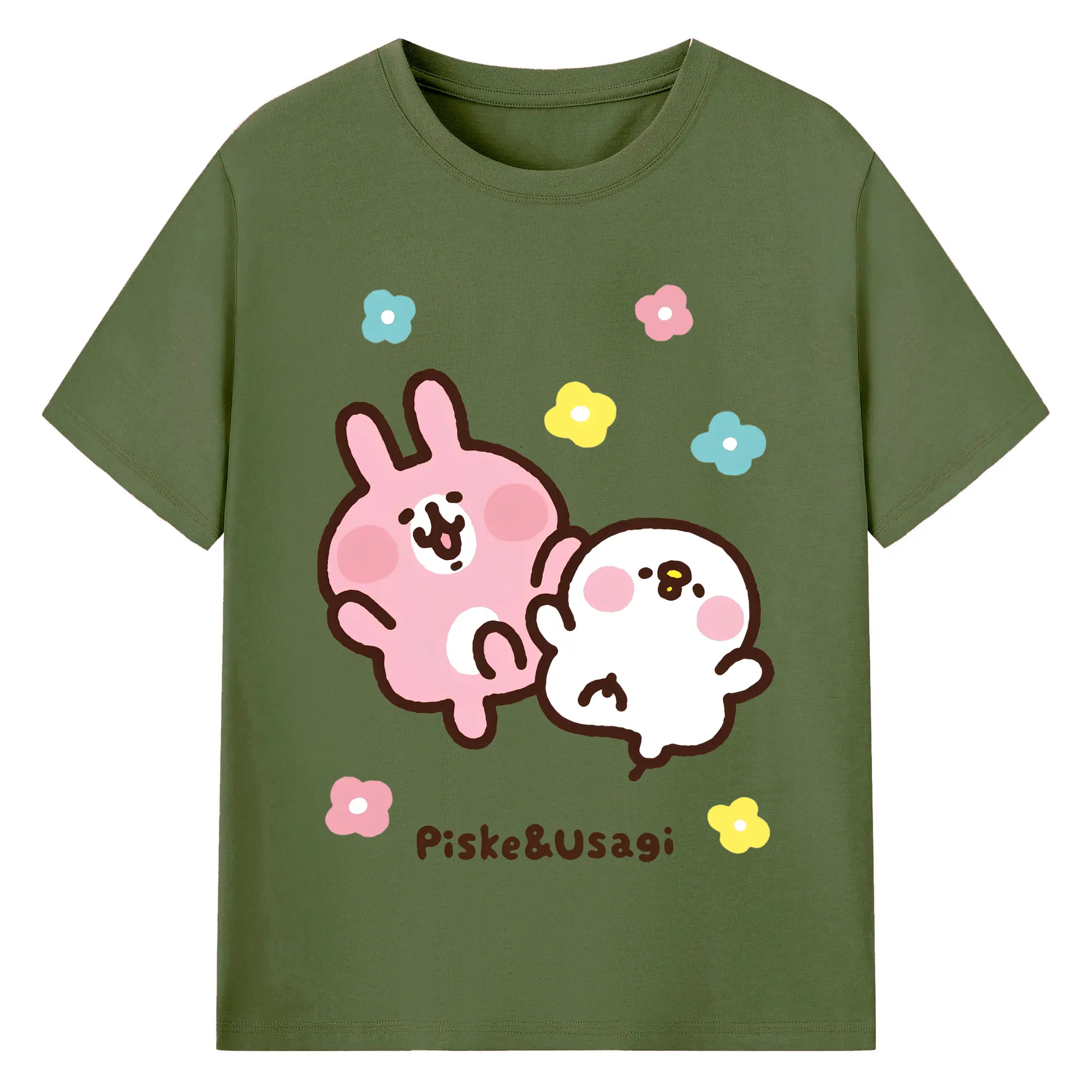 カナヘイの小動物かわいい仕草いっぱい - 綿100% 半袖Tシャツ ・ フロントプリント ・ 快適 通気性 ・ 日常使い 散歩 スポーツ用