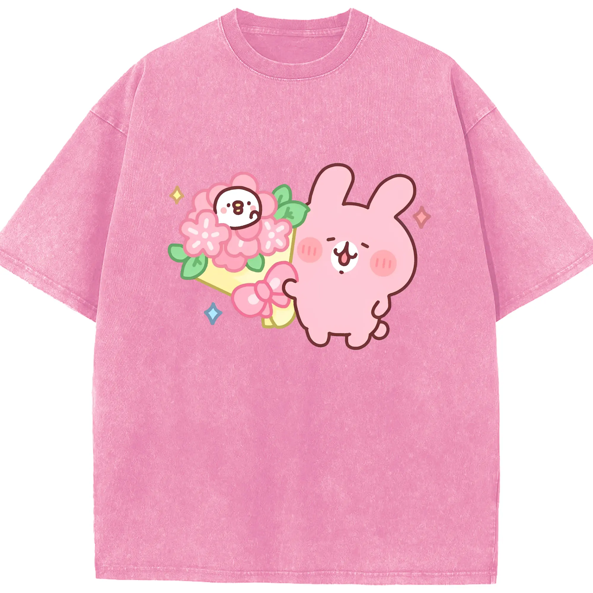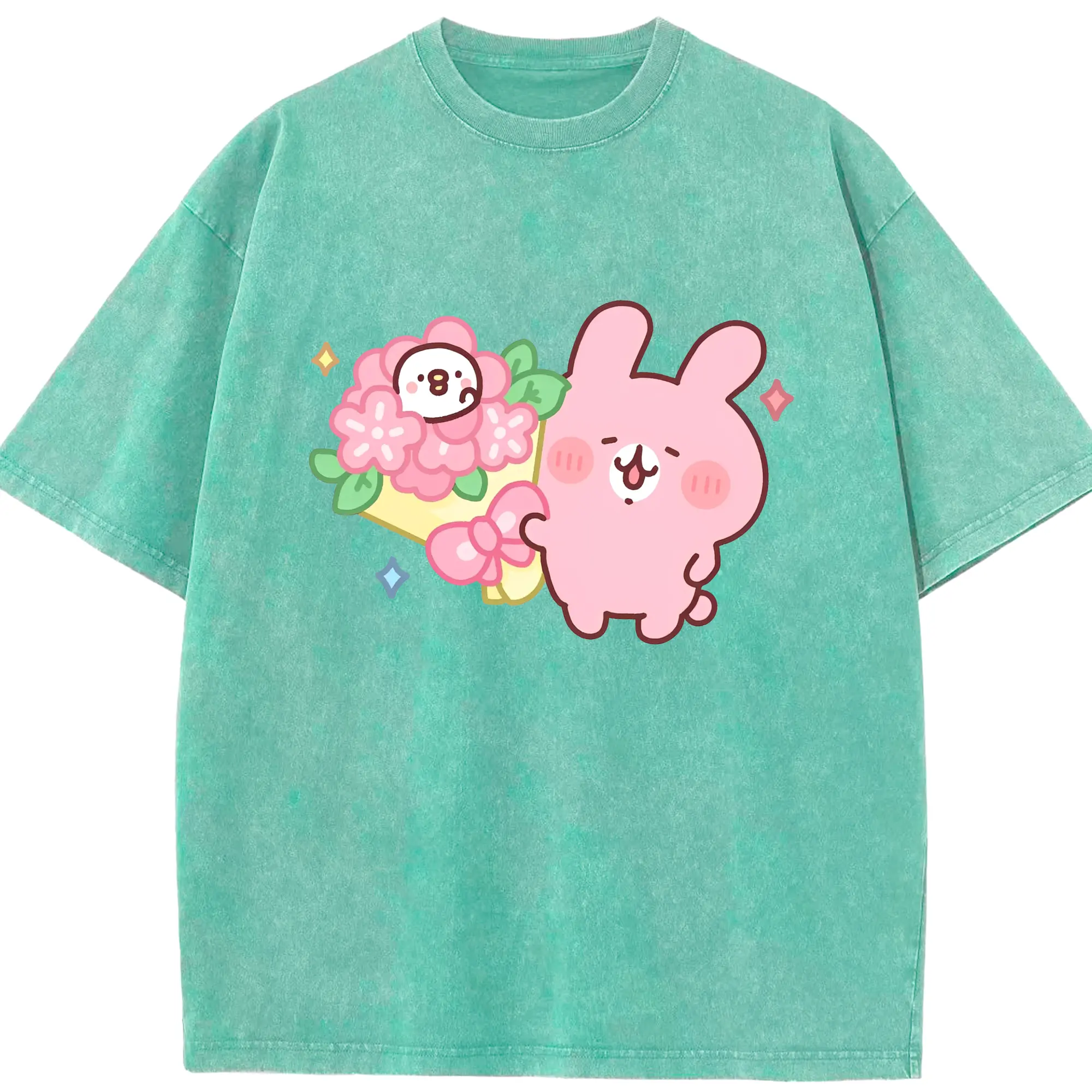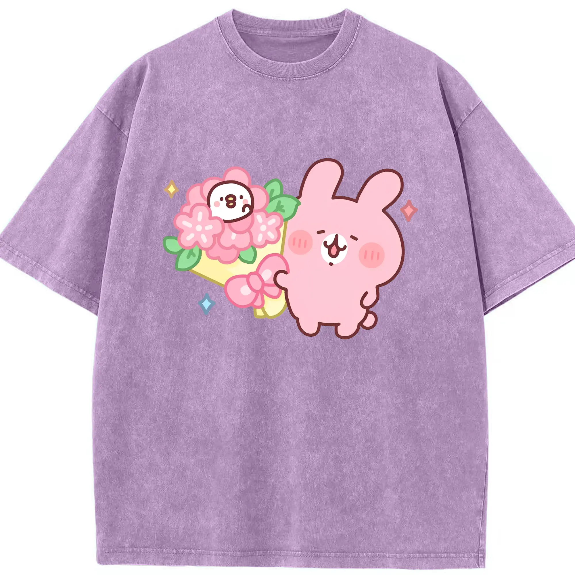 カナヘイの小動物 うさぎ ハッピーライフ - 綿100% 半袖Tシャツ ・ フロントプリント ・ 快適 通気性 ・ 日常使い 散歩 スポーツ用