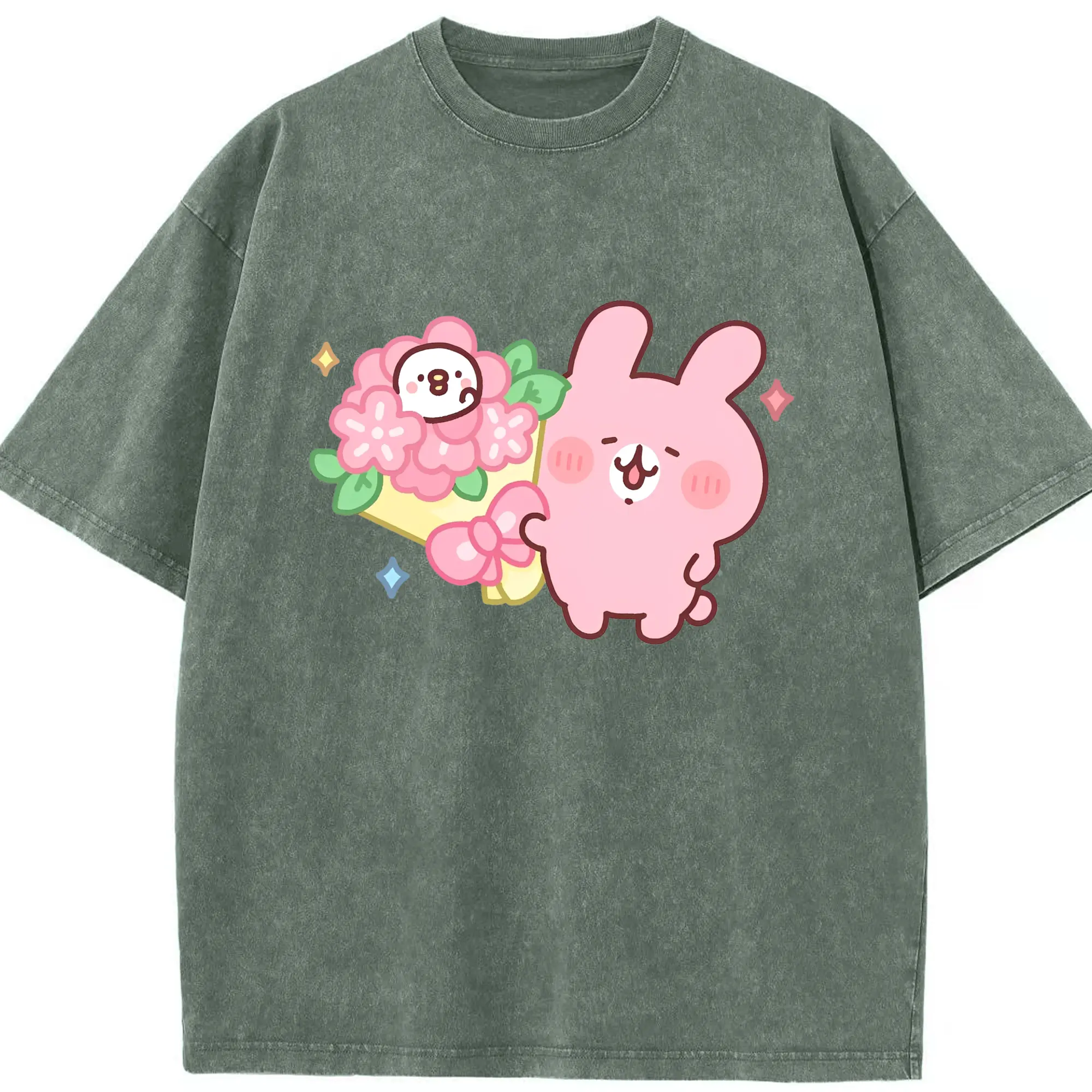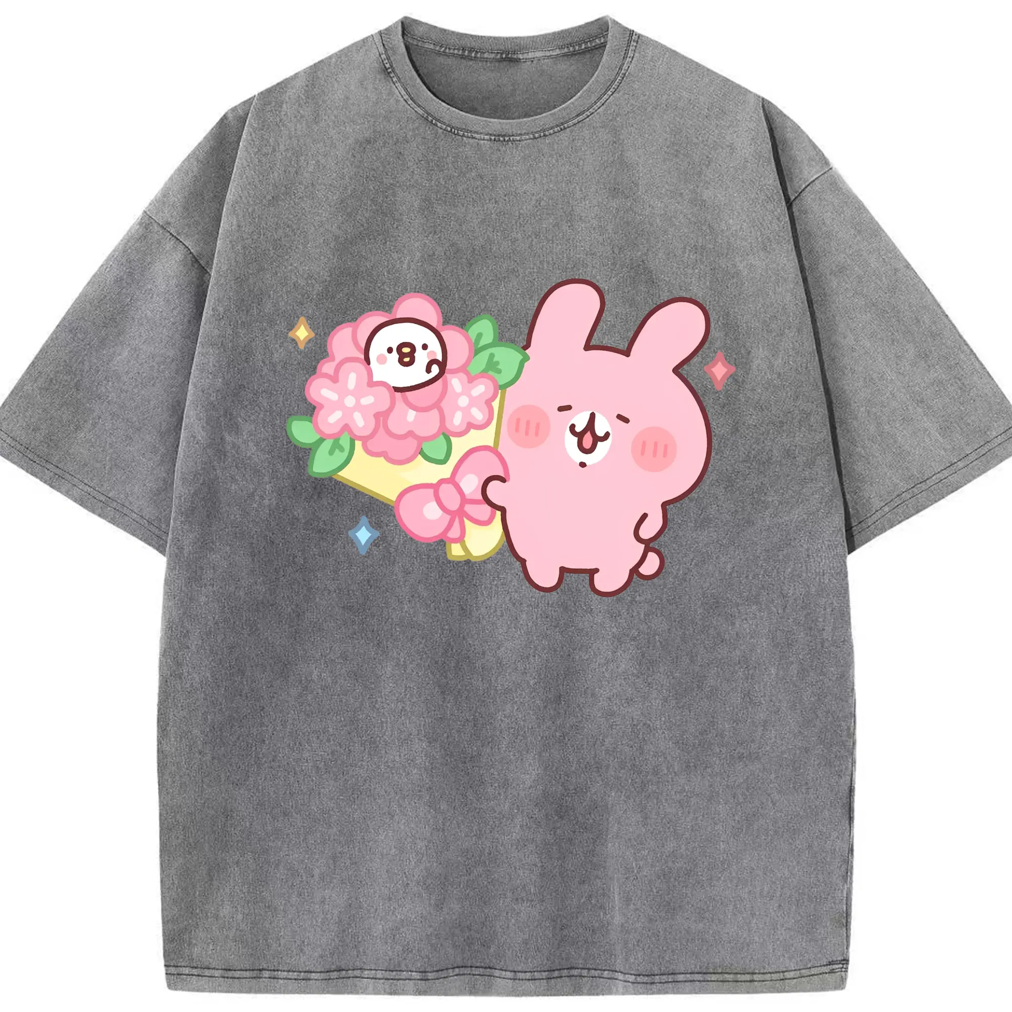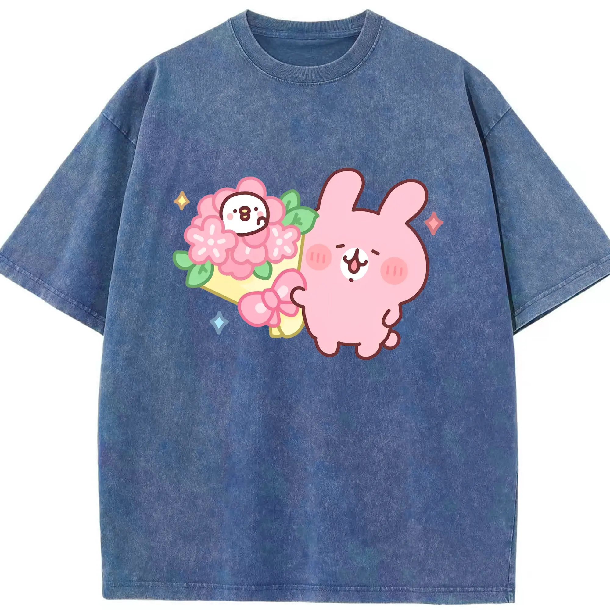 カナヘイの小動物 うさぎ ハッピーライフ - 綿100% 半袖Tシャツ ・ フロントプリント ・ 快適 通気性 ・ 日常使い 散歩 スポーツ用